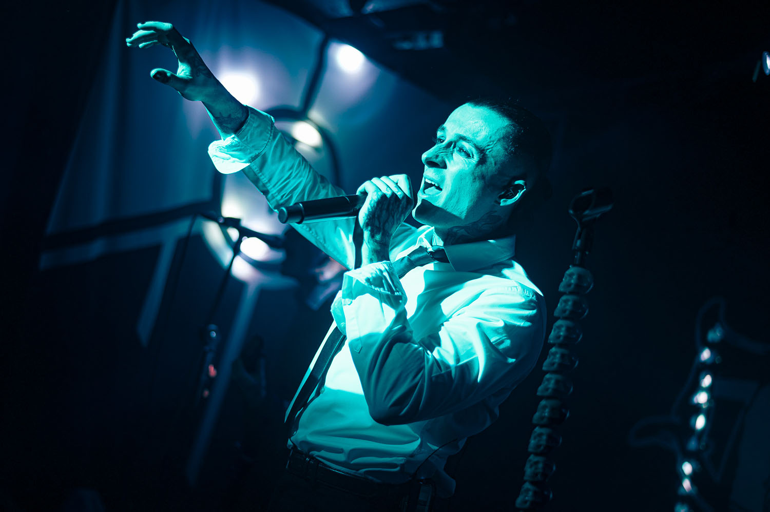 The Fallout was the first chance THE HARA have had, since forming nine years ago, to properly step away from doing live shows and focus on writing music, and Jack reminisces about the pinch-me moment of getting to trial two of the songs they were writing whilst touring with one of their favourite bands: ICE NINE KILLS. Out of the trial and into the fire, they play The System, and it hits with the efficacy of an avalanche – powerfully unstoppable from the first gritty synth and strobe-light assault. Where’s Wally, who has been a main character in the pit all night, takes a brief moment to pass water around, for THE HARA aren’t even close to being done with the crowd.