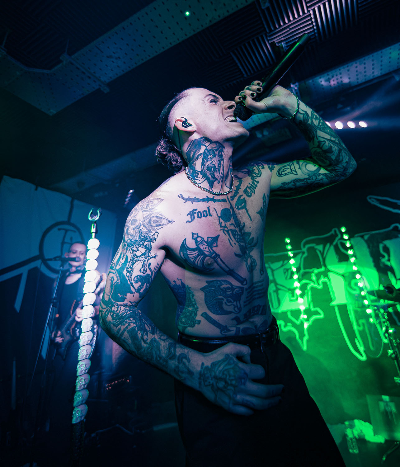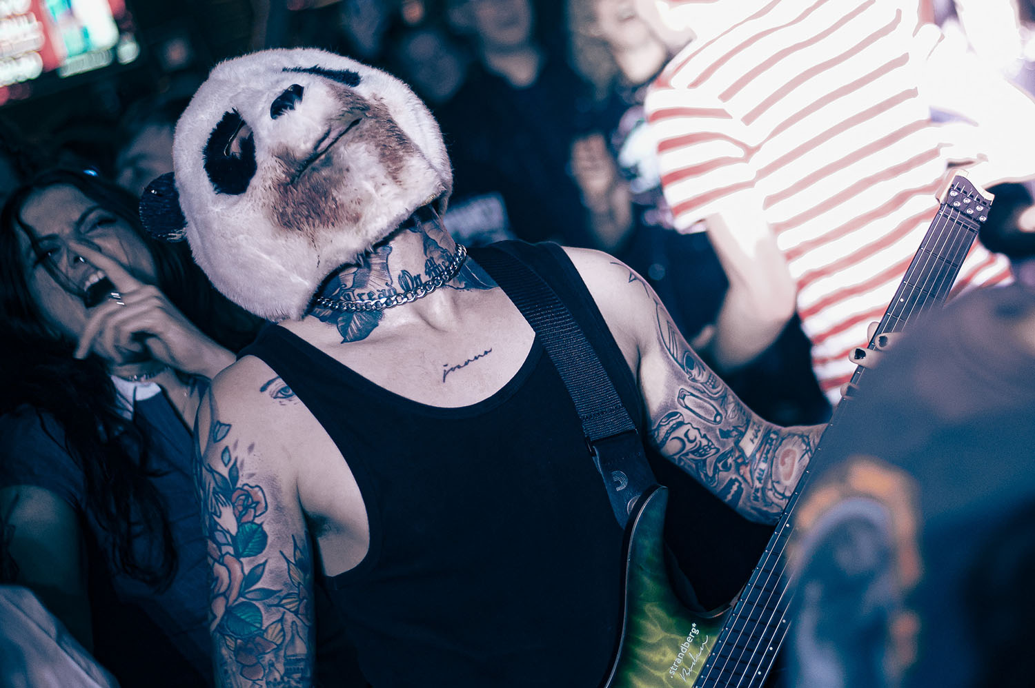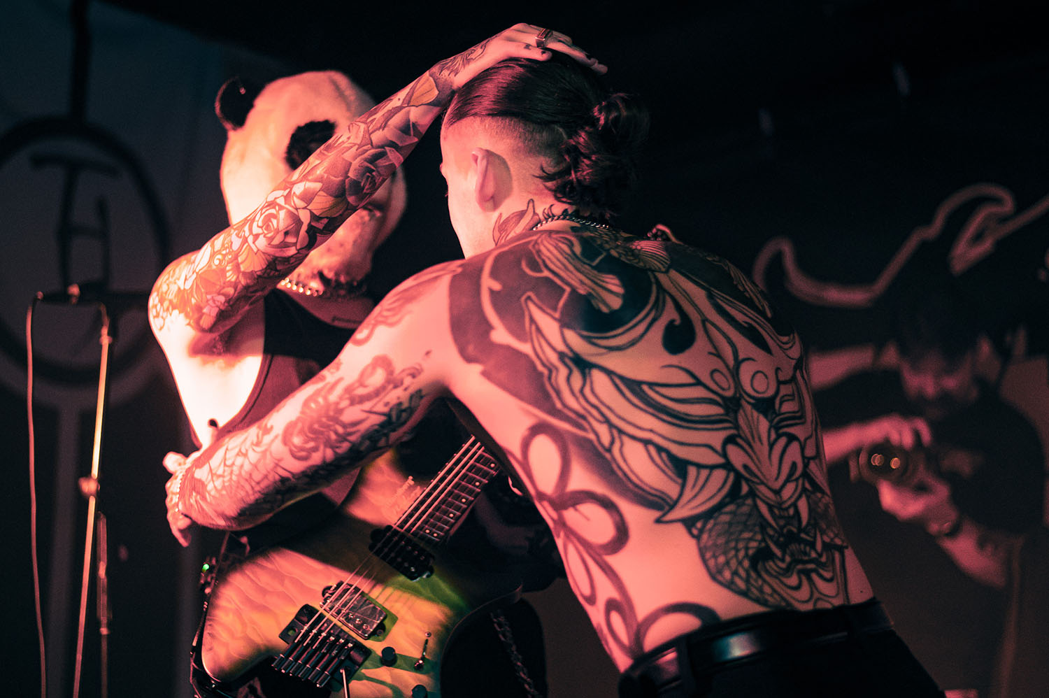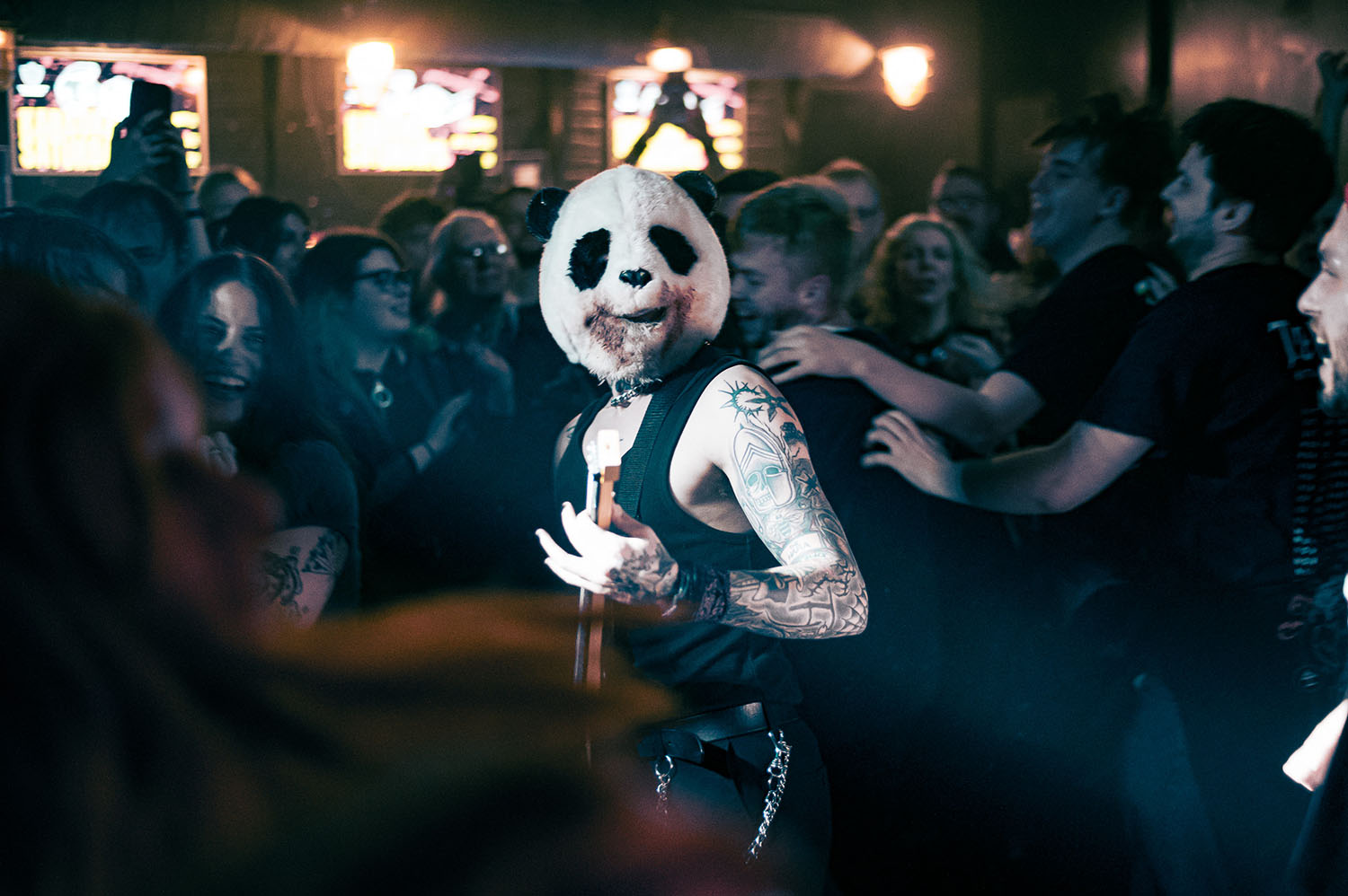 By the time The Fallout’s opening track, Trophy, comes on, Josh is shirtless and wearing “his skin like a Trophy, so they give a fuck about me”. Josh Taylor sings like a man fired up from a millennium of going into battle and still having more to give. THE HARA are fighting for the place they want, nay, deserve, on the bigger stages. And they are fighting hard. Bringing it back to one of their most live show-defining tracks, Animals, Zack dons a blood-soaked Panda head and returns to the crowd to “be fed” by a swirling circle pit of fans. Also on THE HARA live bingo card is a wall of death into Josh, which he survives far too easily. The finale, Friends, gets the whole crowd down on their knees, bellowing out “da da da”s as they leap around the Camden Assembly for one final celebration of a band and an album that are fast becoming key players in the British alternative metal scene.
