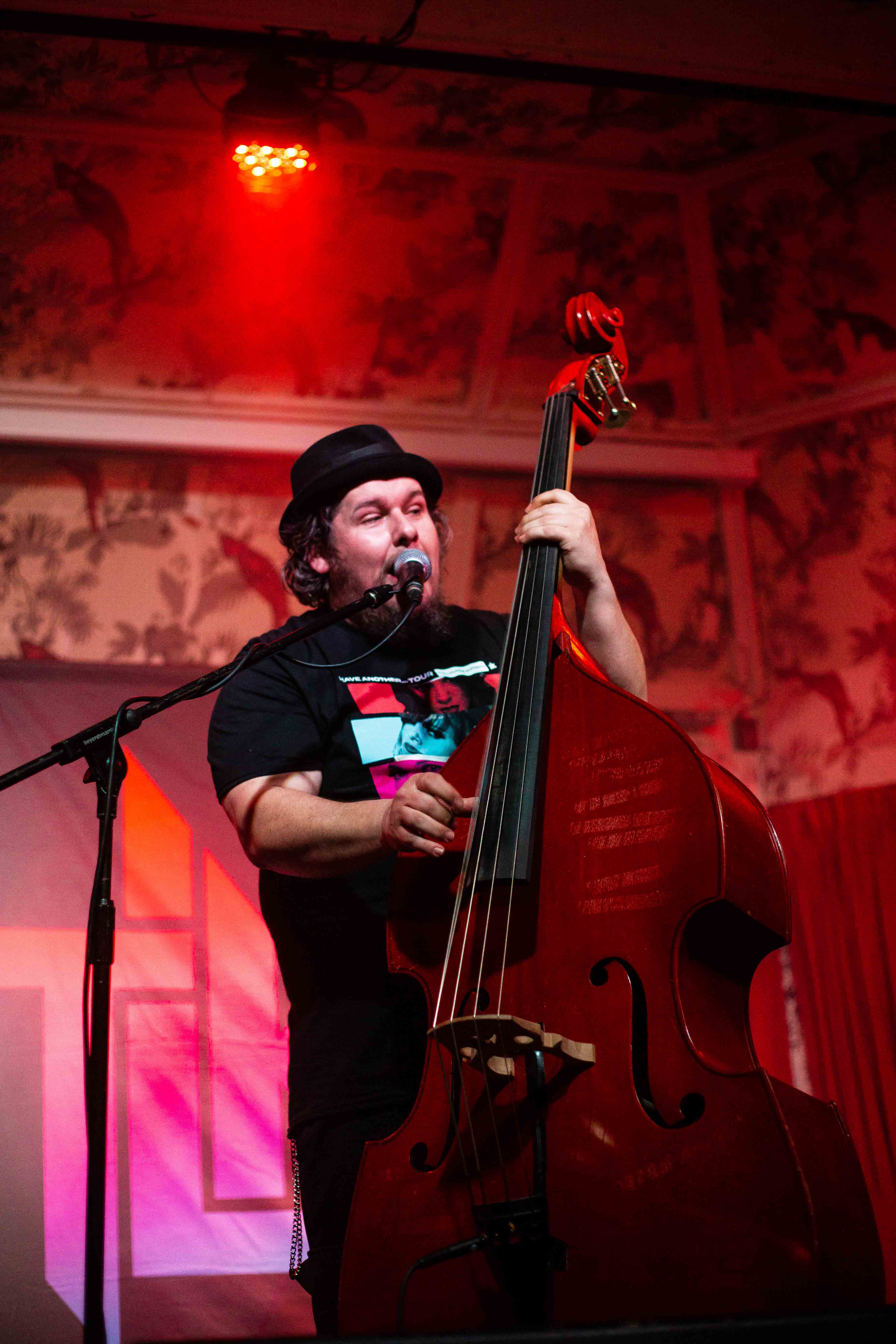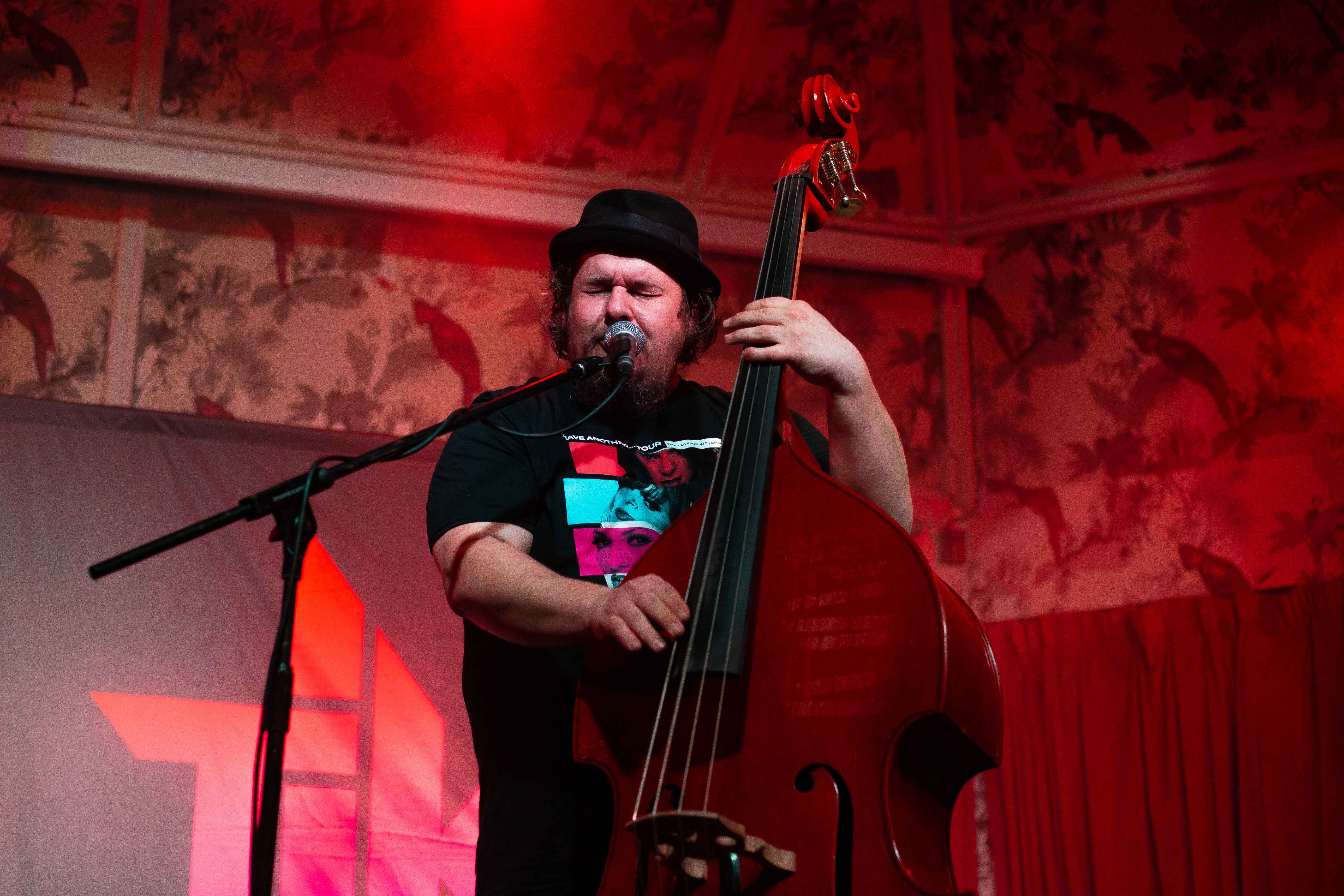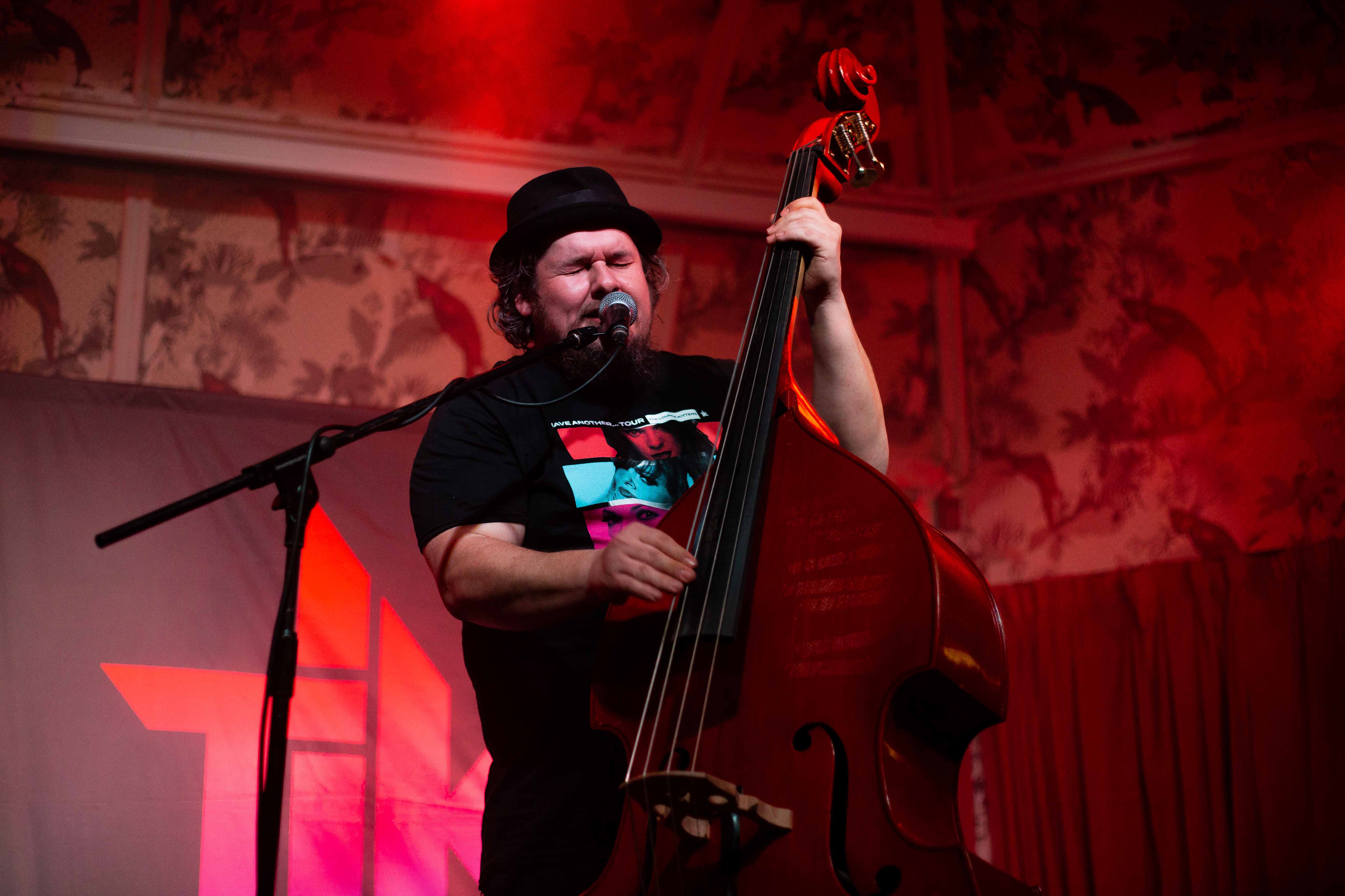 Before all that though, it falls to fellow Southampton native Grant Sharkey to open proceedings. Armed with simply a double bass and a microphone, the softly-spoken performer’s appearance is hardly that of your average rockstar, but then again, tonight is all about surprises. What follows over the next 45 minutes or so is a set that can only be described as a part RAG AND BONE MAN soul and part Nick Helm anarchic comedy, as the singer and his double-bass set about making every last punter laugh their head off for an entire performance, with a riotous set of often politically-charged songs from his ongoing project of twice-yearly releases currently sitting at 12 out of a proposed 40. Across the all-too-brief feeling set, Sharkey takes aim at racists (I’m Sorry To Hear You’re A Racist and Muslims), rips on Brexiteers (Pubes and Toenails (The Brexit Song)), takes potshots at sexists, transphobes and Donald Trump (Genitals), lampoons the Russian President (If I Were Vladimir Putin) and cracks jokes about countless others, in a relentlessly full-on set that doesn’t so much toe the line as it does proudly long jump it and stand there gleefully giggling.