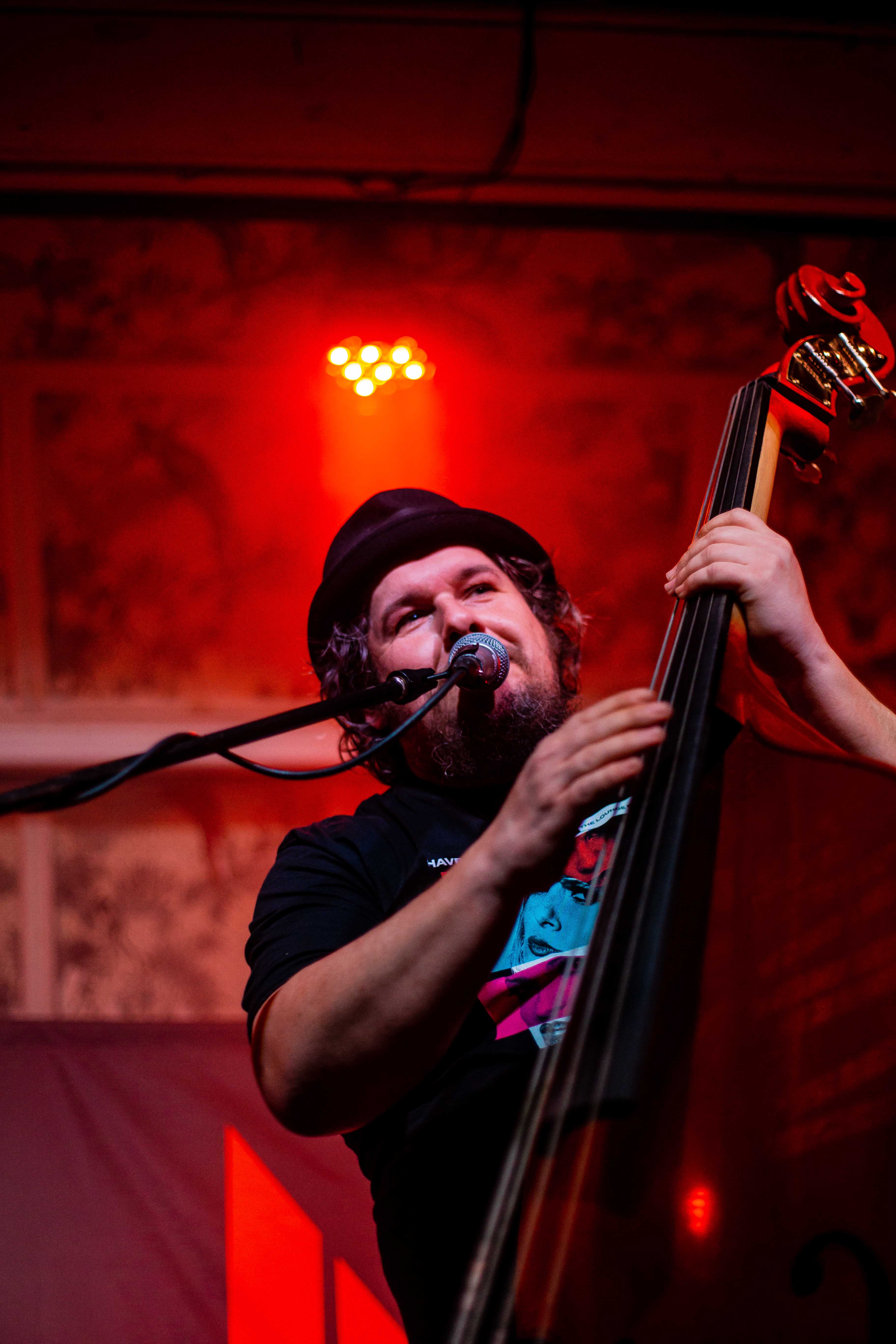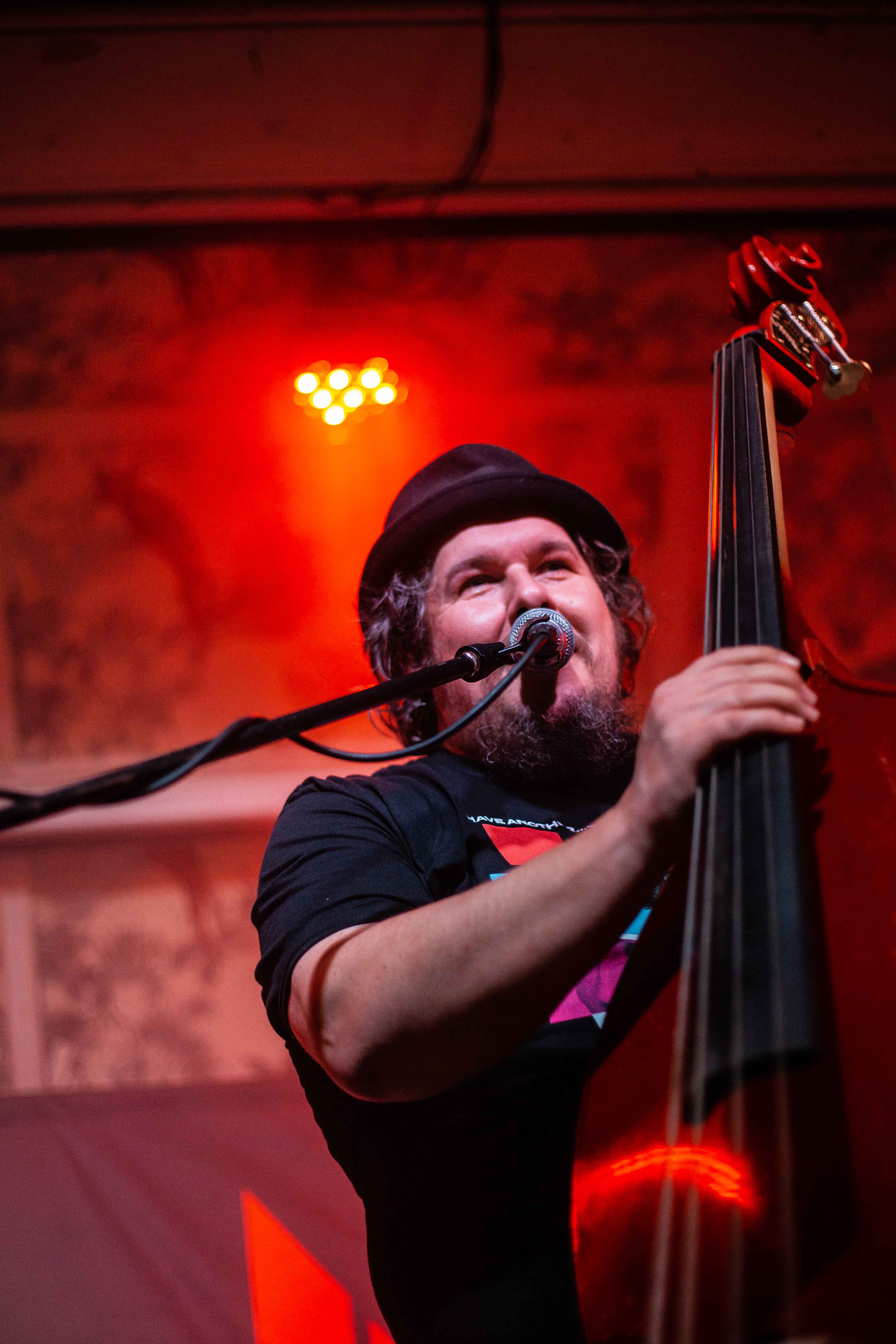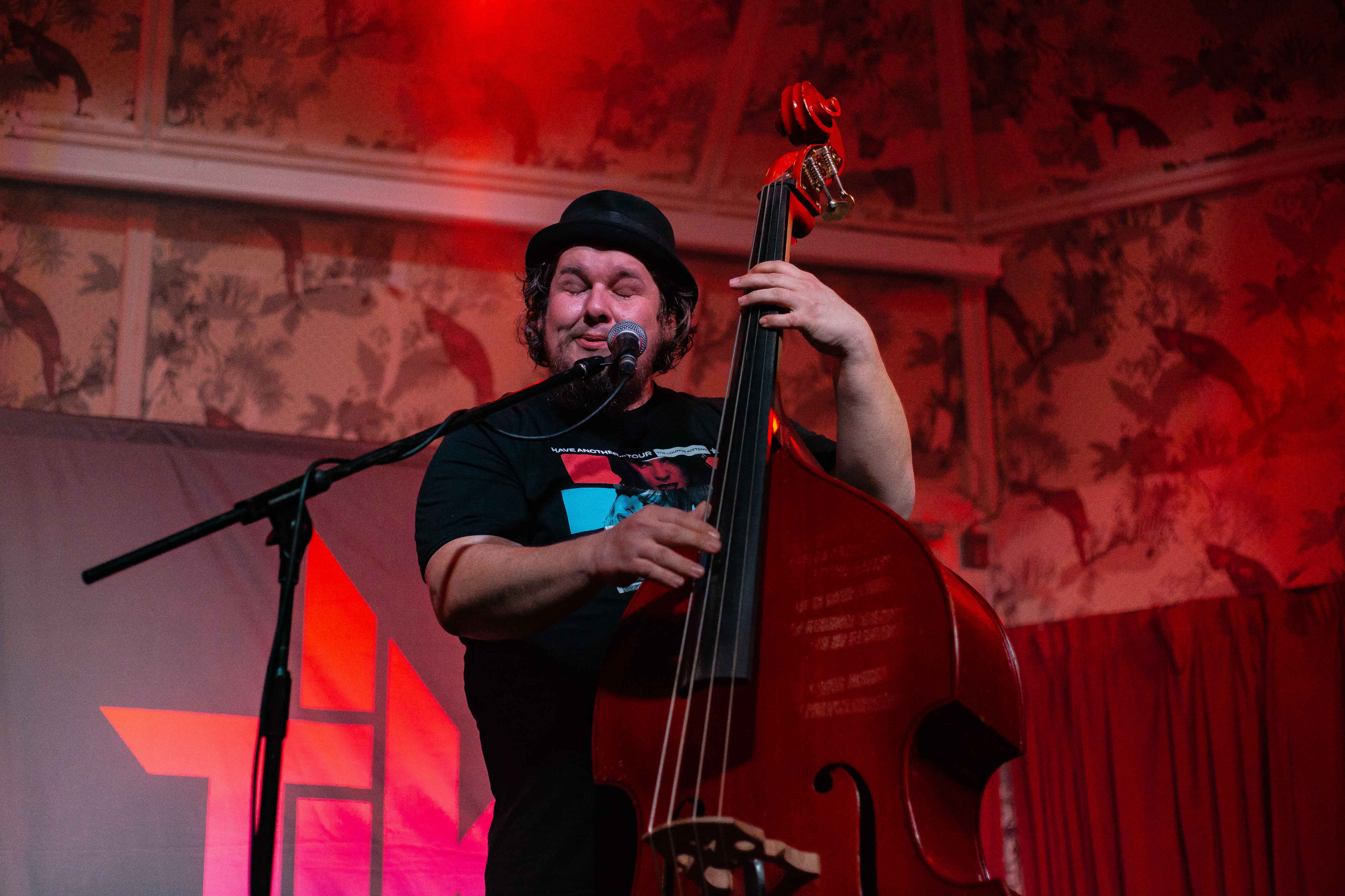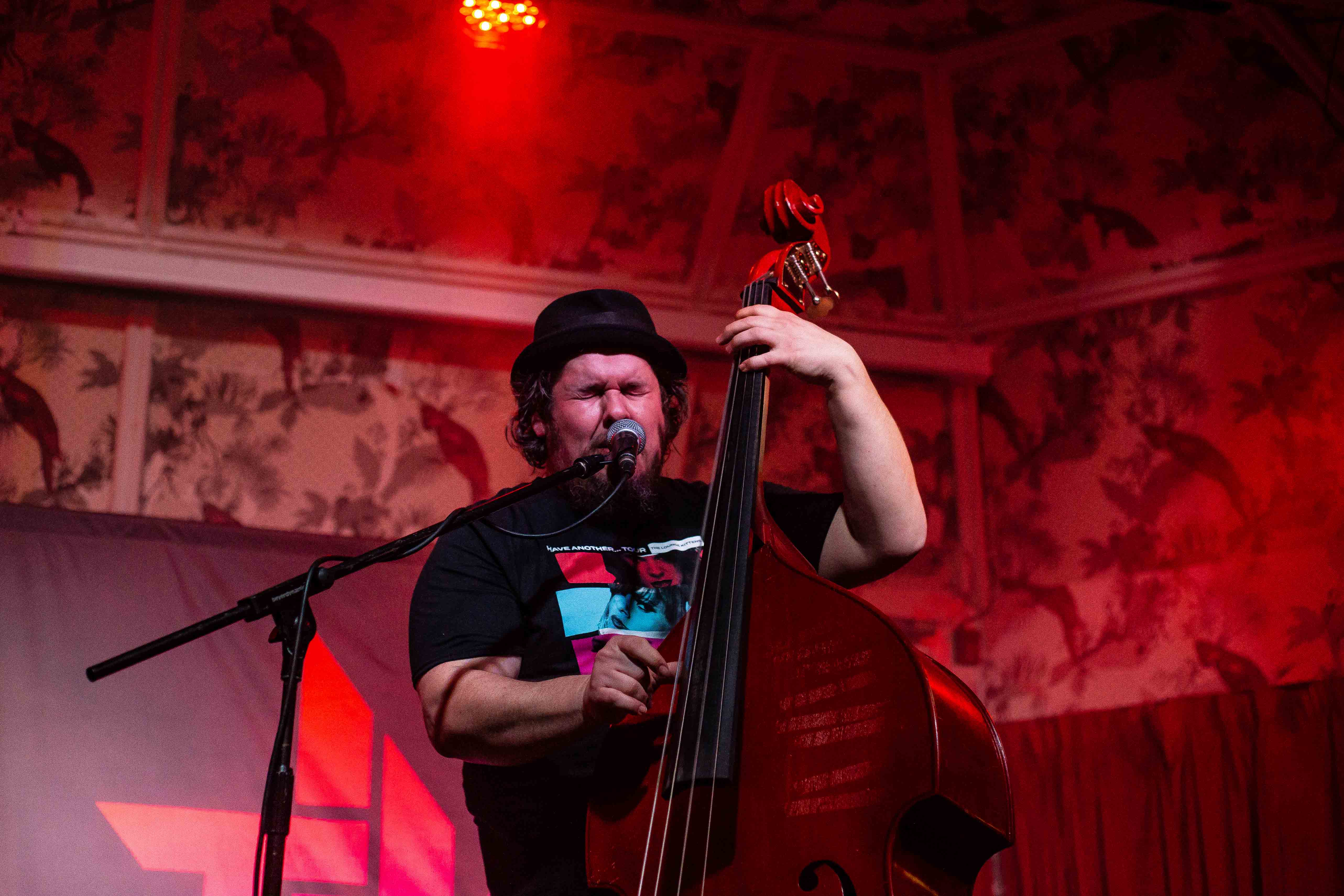 Before all that though, it falls to fellow Southampton native Grant Sharkey to open proceedings. Armed with simply a double bass and a microphone, the softly-spoken performer’s appearance is hardly that of your average rockstar, but then again, tonight is all about surprises. What follows over the next 45 minutes or so is a set that can only be described as a part RAG AND BONE MAN soul and part Nick Helm anarchic comedy, as the singer and his double-bass set about making every last punter laugh their head off for an entire performance, with a riotous set of often politically-charged songs from his ongoing project of twice-yearly releases currently sitting at 12 out of a proposed 40. Across the all-too-brief feeling set, Sharkey takes aim at racists (I’m Sorry To Hear You’re A Racist and Muslims), rips on Brexiteers (Pubes and Toenails (The Brexit Song)), takes potshots at sexists, transphobes and Donald Trump (Genitals), lampoons the Russian President (If I Were Vladimir Putin) and cracks jokes about countless others, in a relentlessly full-on set that doesn’t so much toe the line as it does proudly long jump it and stand there gleefully giggling.