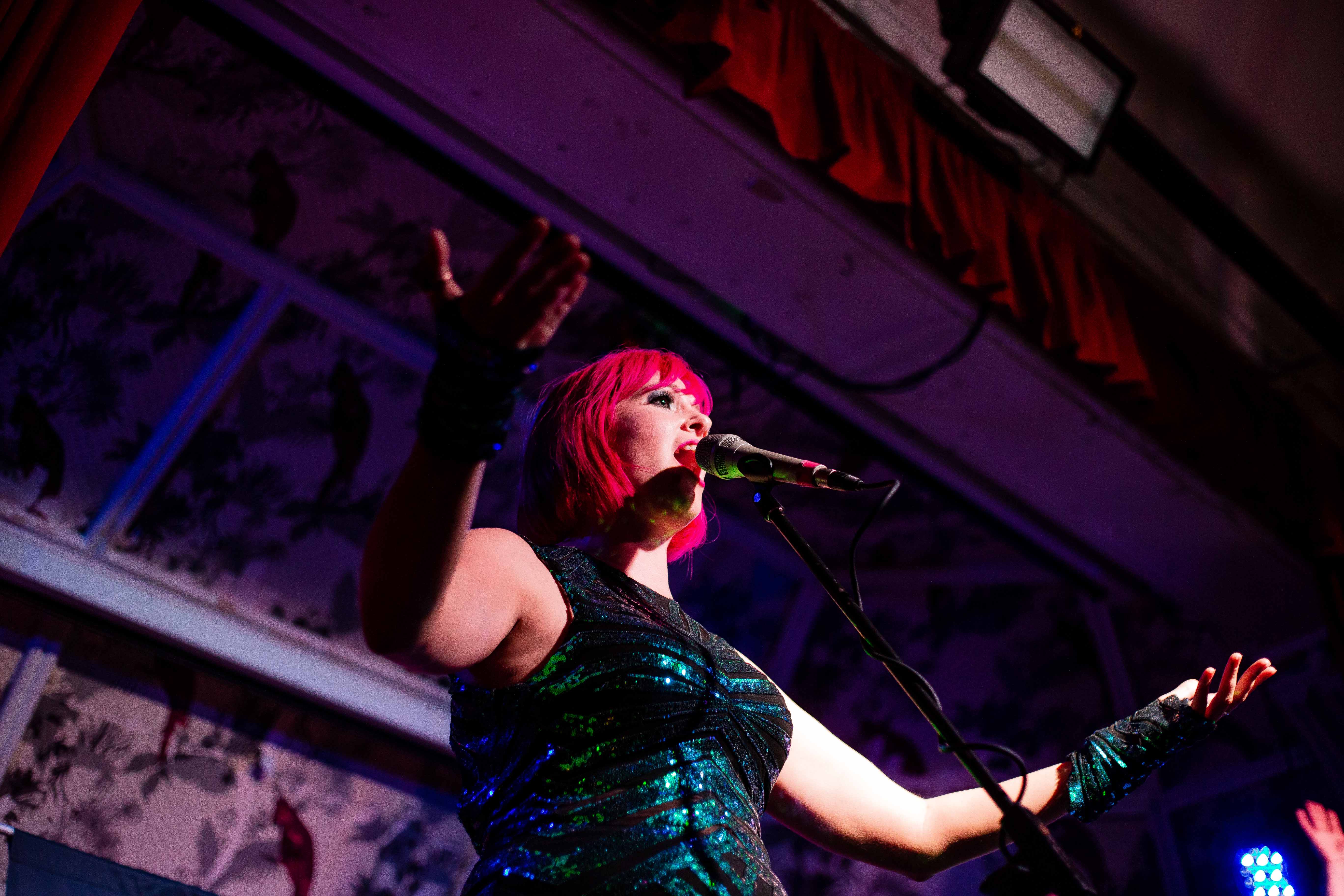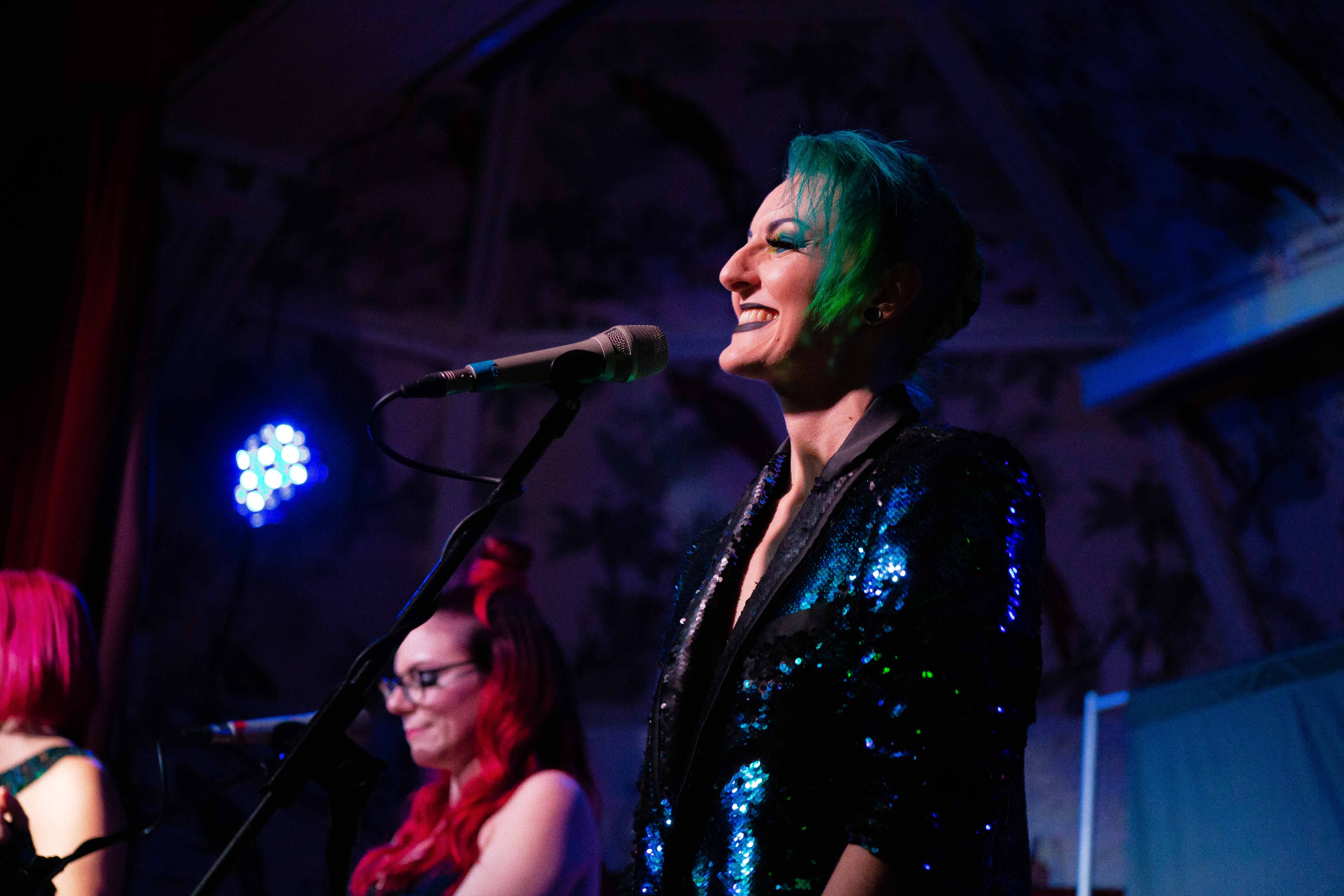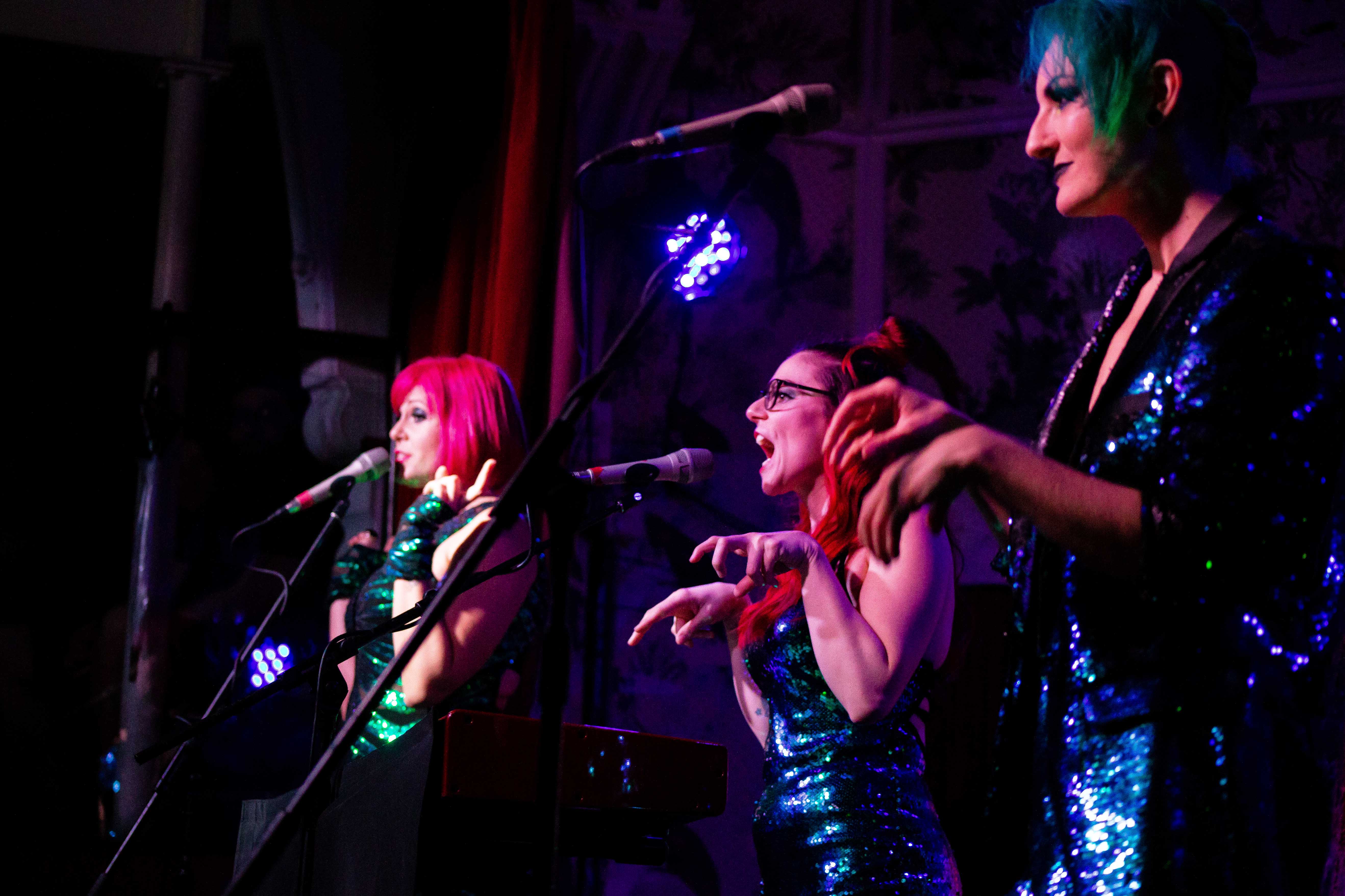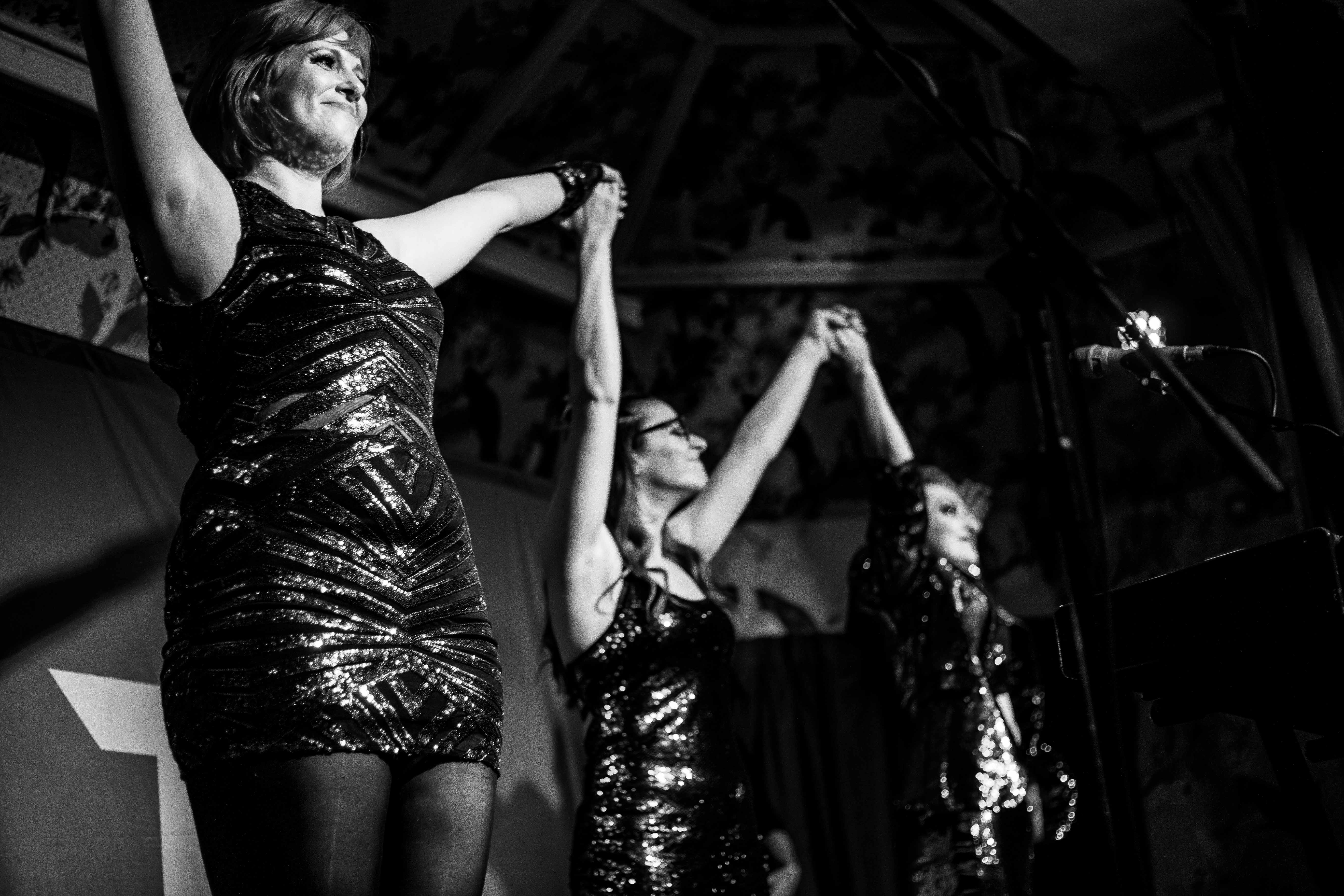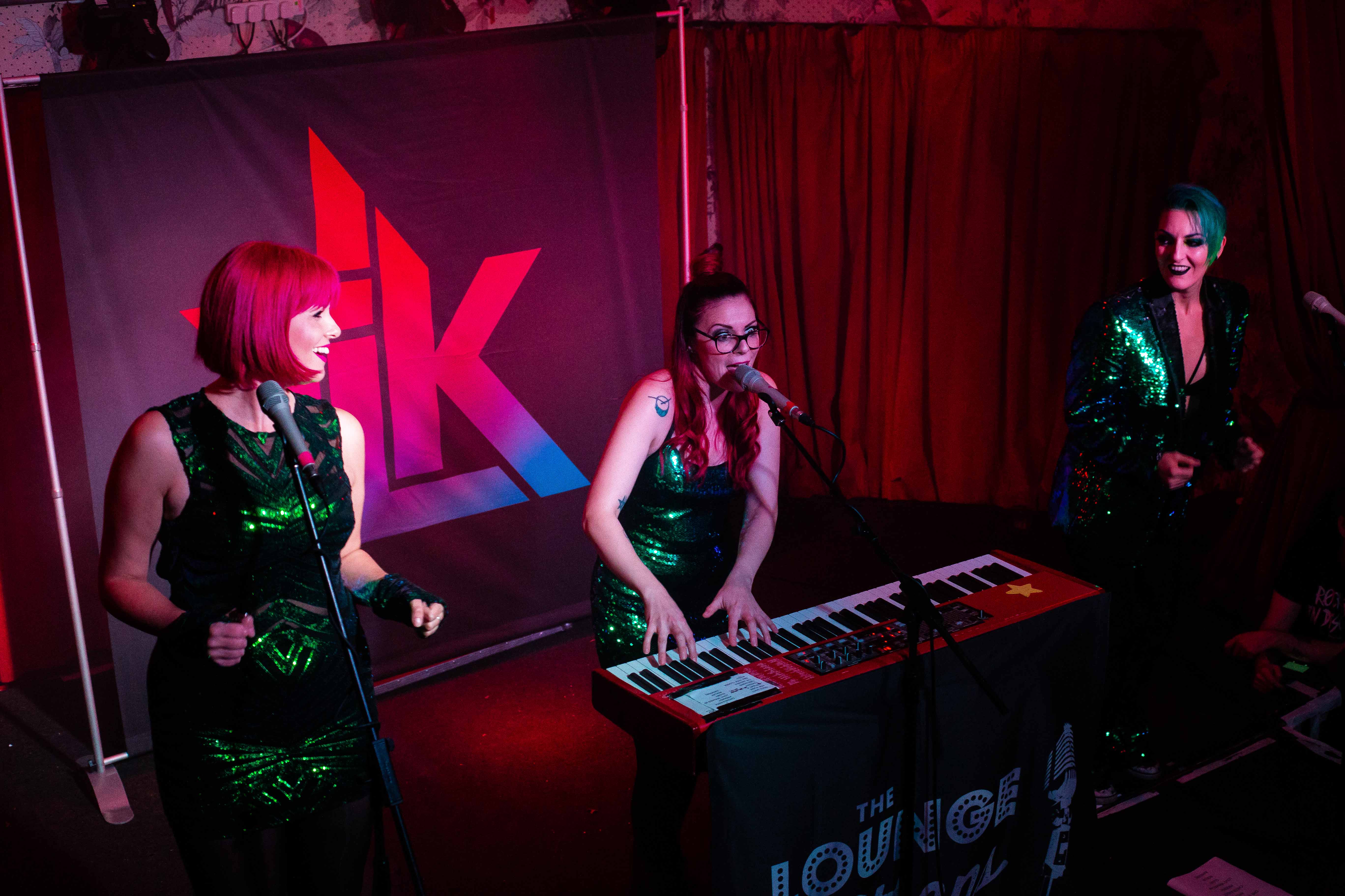 Tonight’s main attraction though, are of course THE LOUNGE KITTENS, and emerging on-stage in their trademark sequinned gear, the trio waste absolutely no time launching into a slow soulful build that begets their cover of DJ Fresh’s hit Gold Dust. An instant crowd-pleaser, it’s a cut that immediately gives each Kitten a chance to showcase their individual vocal prowess atop Jen’s effervescent keyboard playing. The band’s famous Pop Punk Medley soon follows, as the entire Deaf Institute bellows along to the painstakingly crafted fusion of some of the genre’s true greats including BLINK 182, GOOD CHARLOTTE, BOWLING FOR SOUP and PANIC! AT THE DISCO. The comedy chops of the Kittens are put to great effect here, particularly when they inject witty barbs into the likes of I Write Sins Not Tragedies that half the room can’t help but crack up at. More from the rock world follows next, with the trio’s bouncy take on SYSTEM OF A DOWN’s ridiculous Violent Pornography, before a total left-turn leads the by-now delighted crowd firmly into cheesy territory with a rendition of Lionel Richie’s All Night Long, leading to the brilliant sight of several metal band shirt-clad people absolutely bellowing their heads off to the pop classic.