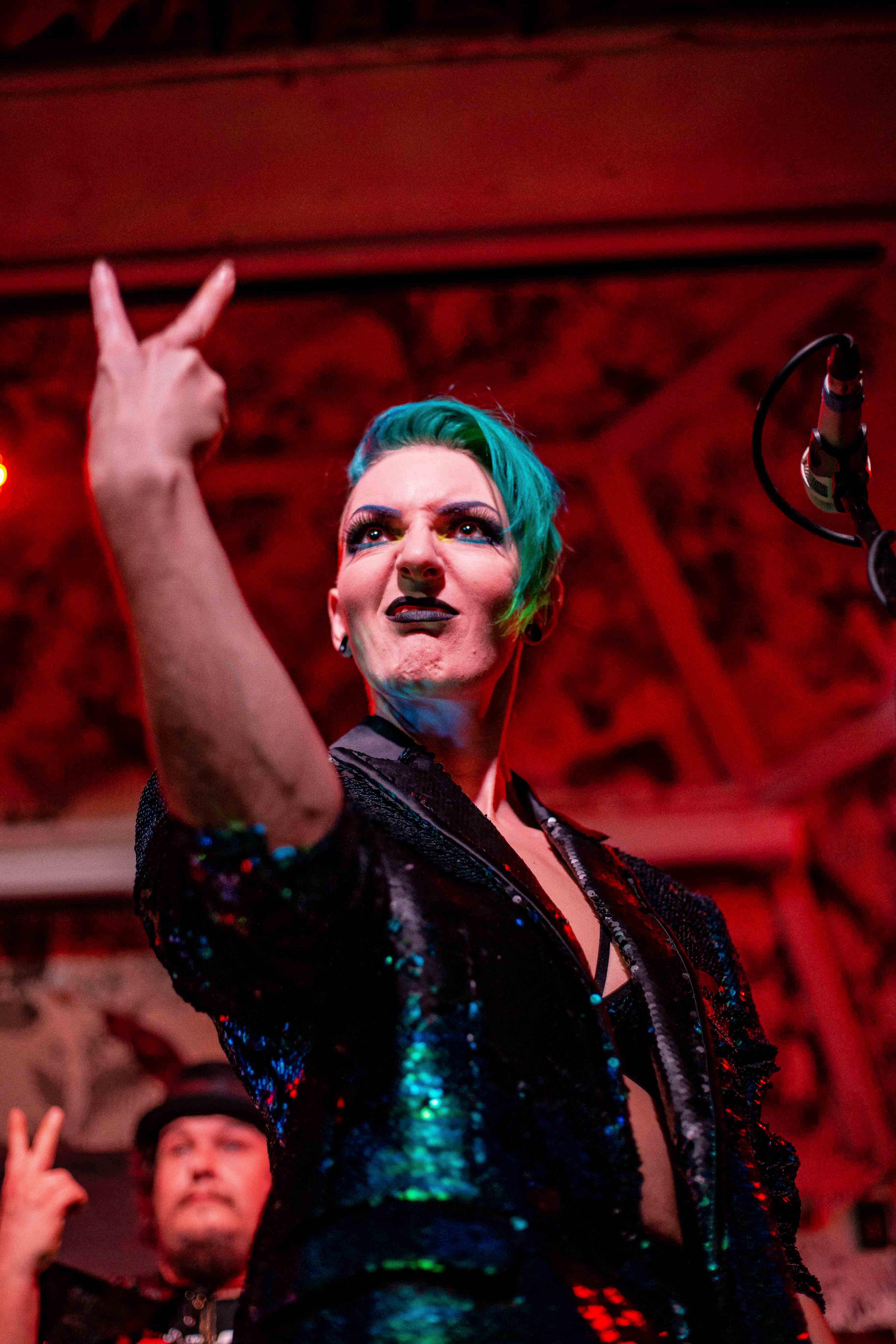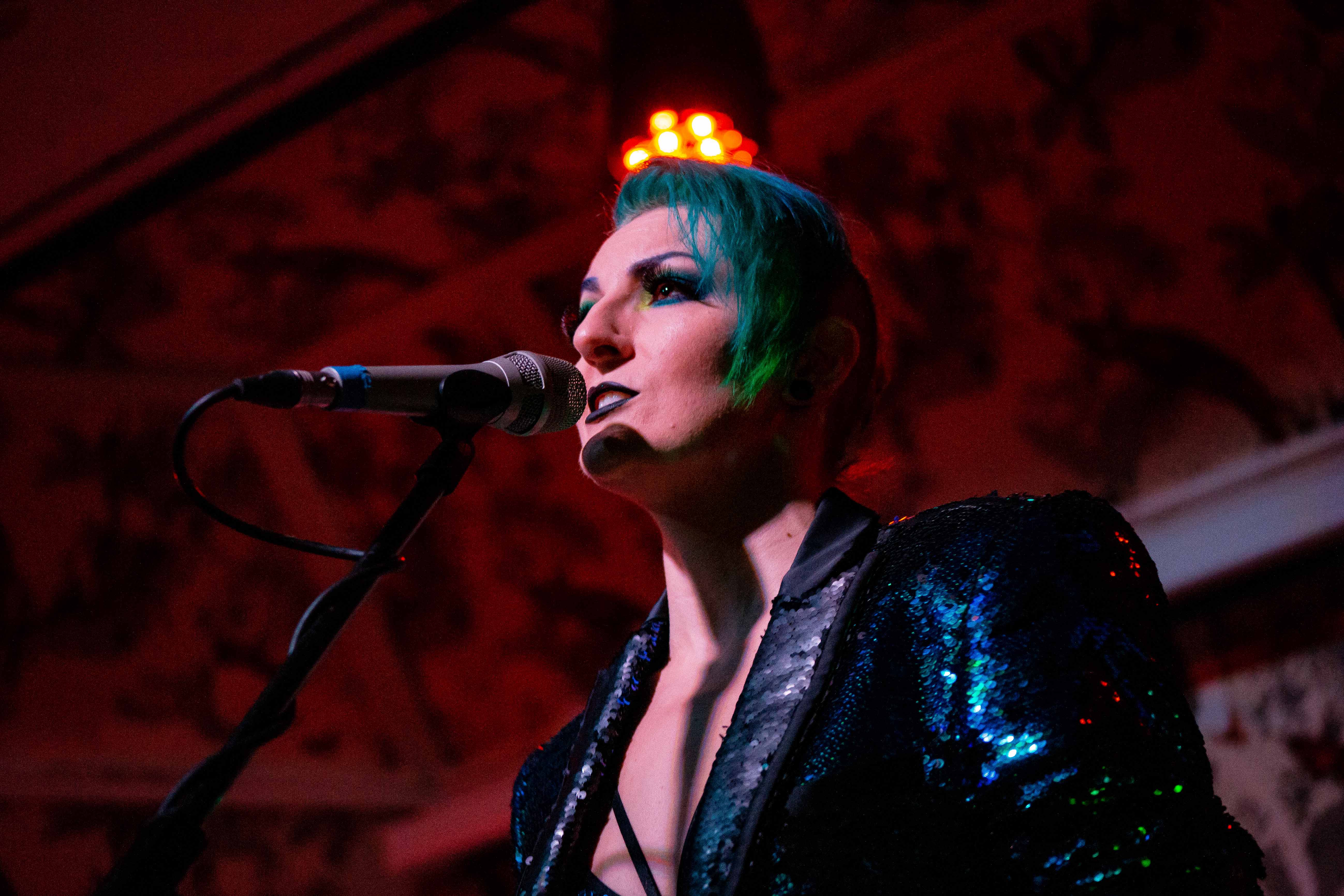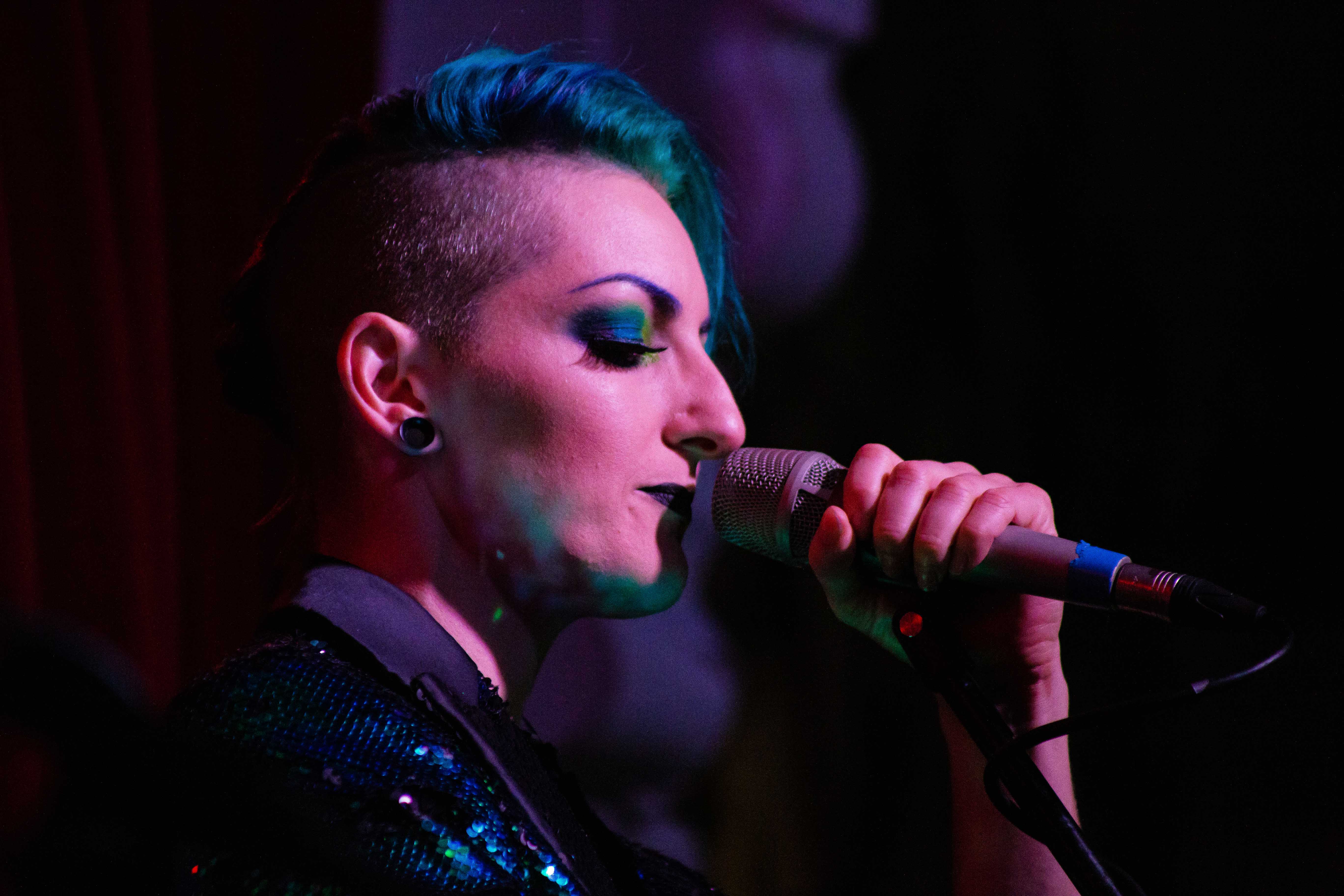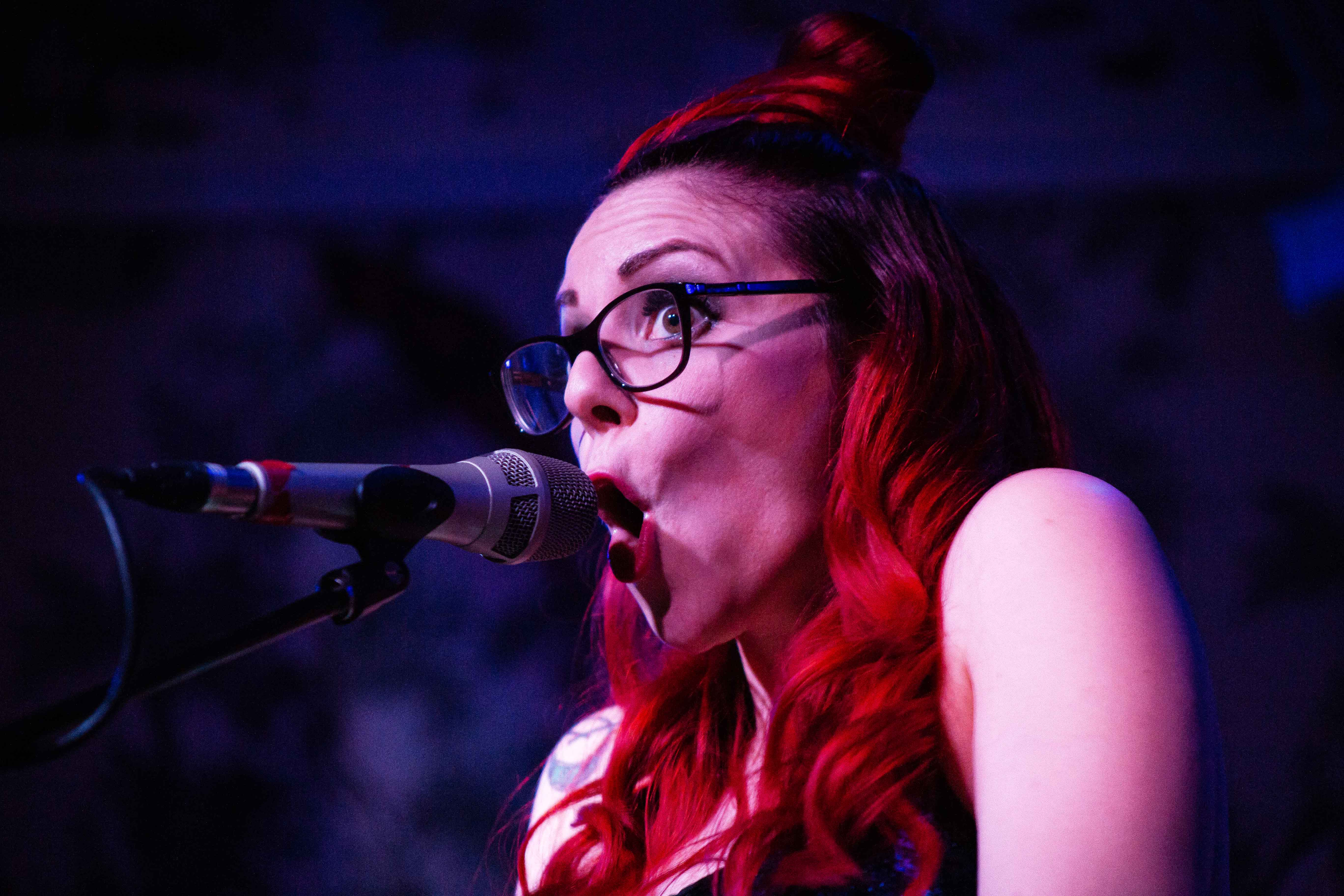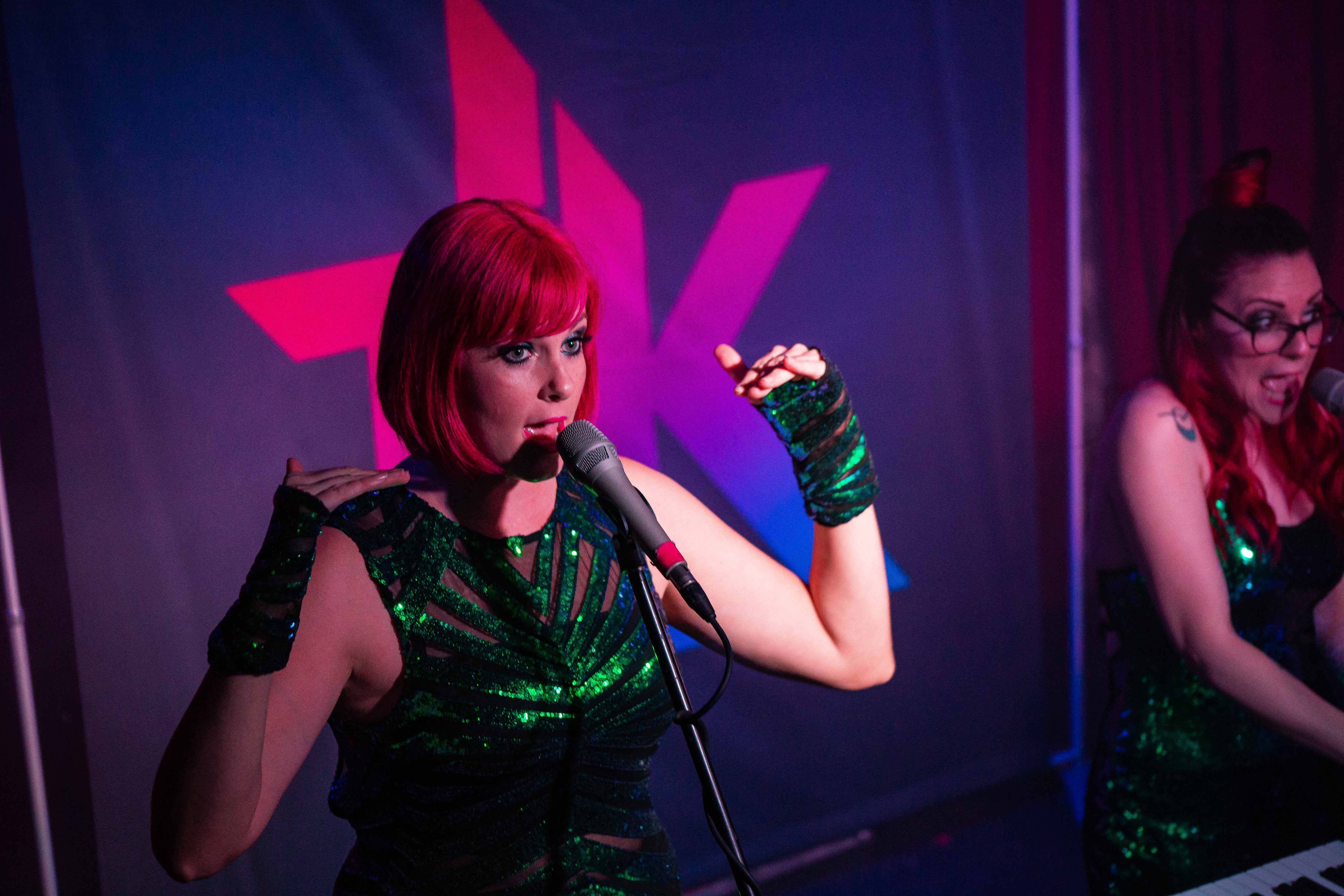 Tonight’s main attraction though, are of course THE LOUNGE KITTENS, and emerging on-stage in their trademark sequinned gear, the trio waste absolutely no time launching into a slow soulful build that begets their cover of DJ Fresh’s hit Gold Dust. An instant crowd-pleaser, it’s a cut that immediately gives each Kitten a chance to showcase their individual vocal prowess atop Jen’s effervescent keyboard playing. The band’s famous Pop Punk Medley soon follows, as the entire Deaf Institute bellows along to the painstakingly crafted fusion of some of the genre’s true greats including BLINK 182, GOOD CHARLOTTE, BOWLING FOR SOUP and PANIC! AT THE DISCO. The comedy chops of the Kittens are put to great effect here, particularly when they inject witty barbs into the likes of I Write Sins Not Tragedies that half the room can’t help but crack up at. More from the rock world follows next, with the trio’s bouncy take on SYSTEM OF A DOWN’s ridiculous Violent Pornography, before a total left-turn leads the by-now delighted crowd firmly into cheesy territory with a rendition of Lionel Richie’s All Night Long, leading to the brilliant sight of several metal band shirt-clad people absolutely bellowing their heads off to the pop classic.