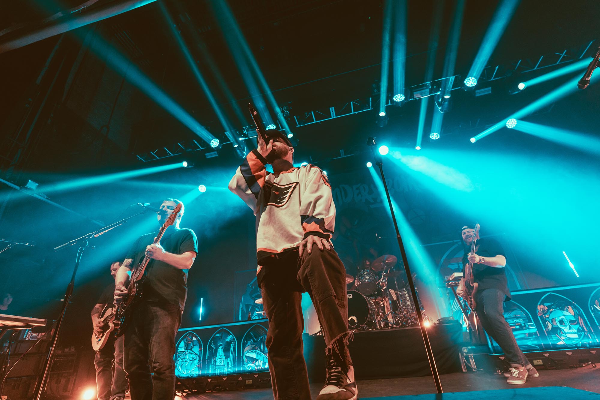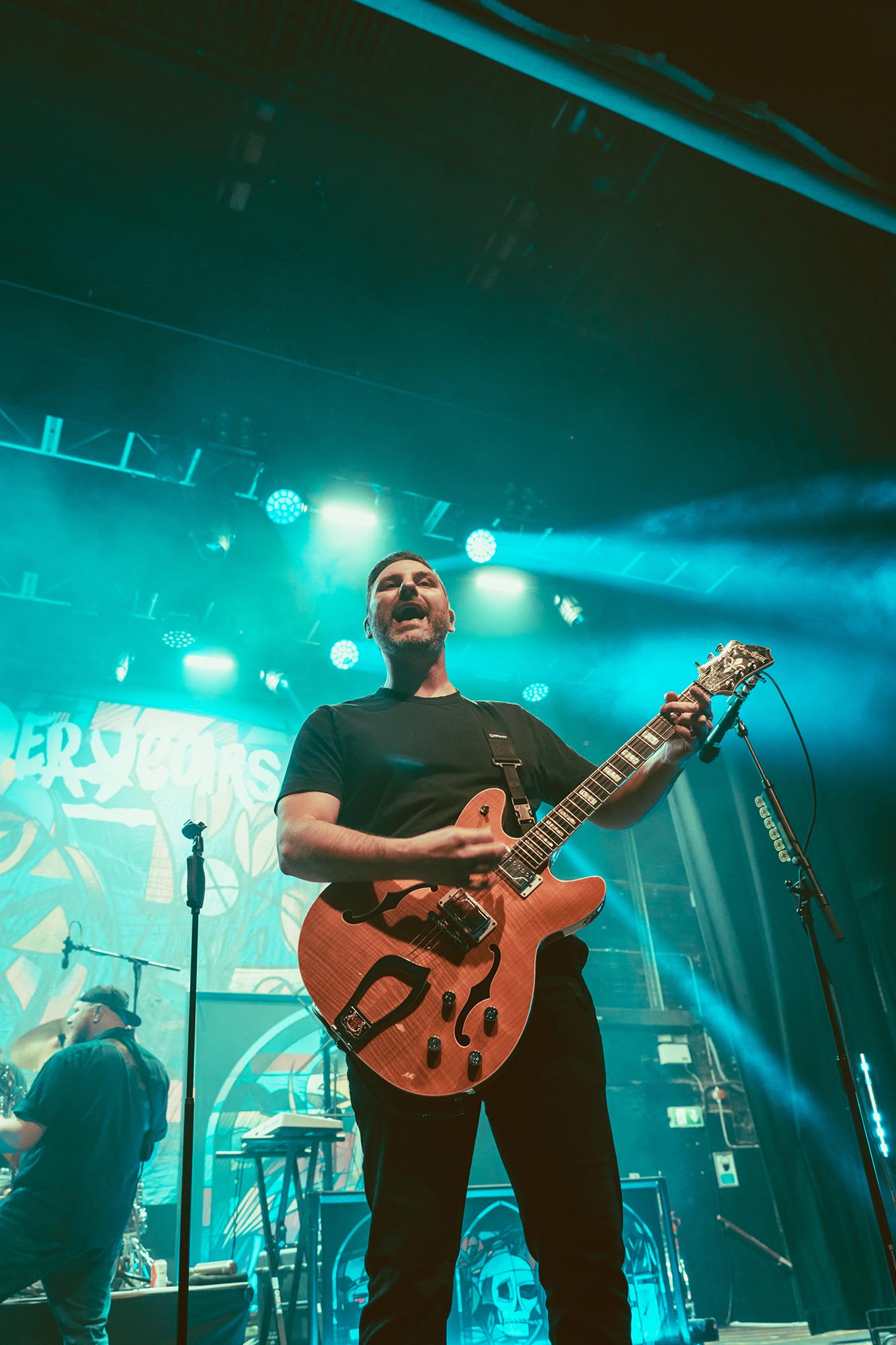 At one point in the set vocalist Dan Campbell talks about the struggles he had trying to write the album, especially as a follow up to The Greatest Generation and how he found comfort reading about Ernest Hemingway and which ultimately led to A Song For Ernest Hemingway being written which now with the context behind it feels more impactful. Another highlight was Stained Glass Ceilings which before this tour had not been played since 2018, the politically charged song feels just as relevant today as it did 10 years ago and the band chose to include the feature by LETLIVE.ās Jason Aaron Butler with a hologram of him on the stage. The benefit of slightly switching up the albums order meant they could close the first part of their set with Palm Reader and as the song closed with the two drum tracks filling the room it gives an impactful way to end the album