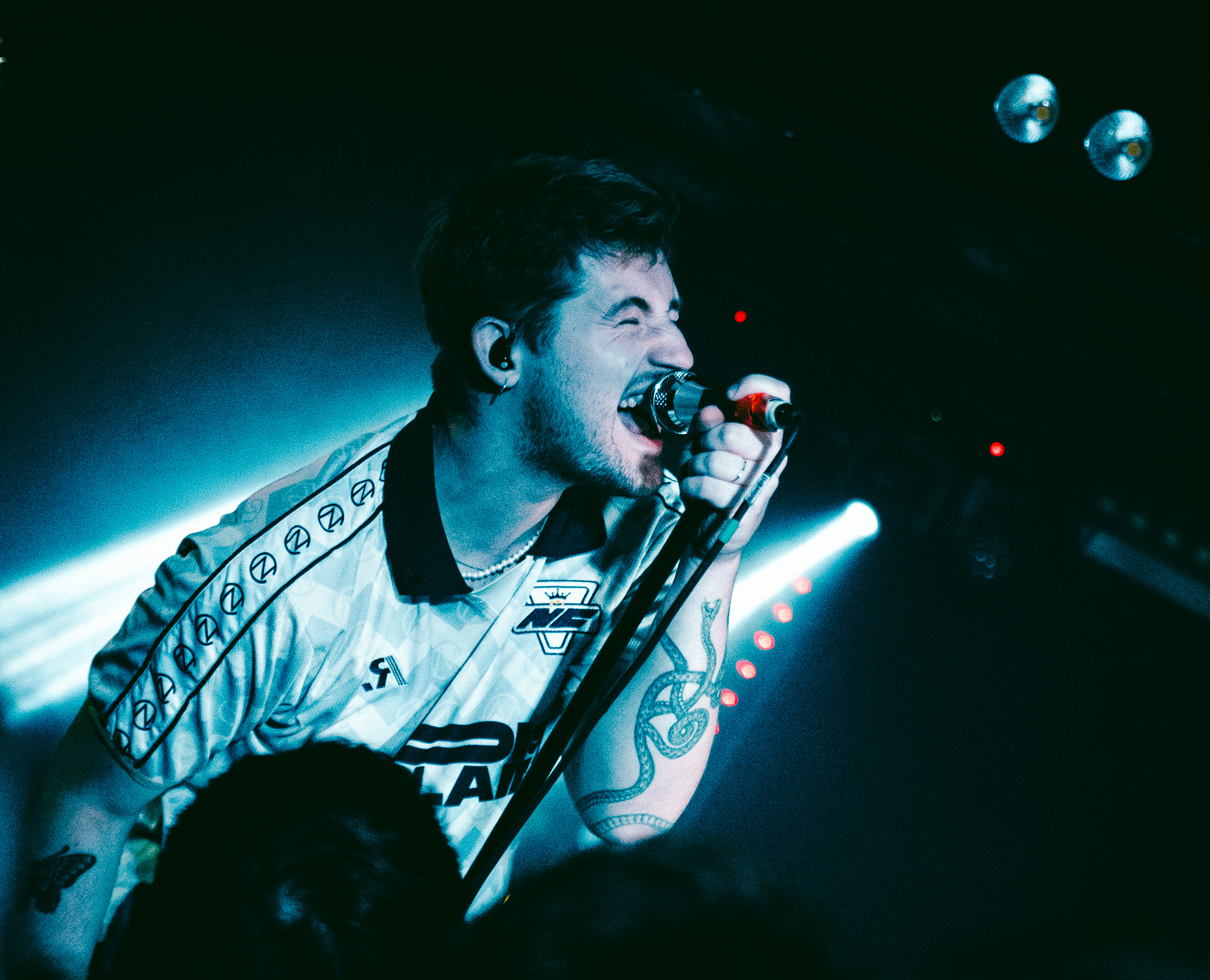 First up are LOVE IS NOISE, described to have a heavy layered sound and shoegaze melodies. They immediately bring the crowd to life with their first song In the shadow of your former self., followed closely by their newer single, and what seemed to be a fan favourite from their performance, Jawbreaker. The room reacted immediately, opening up the first of many mosh pits to appear throughout the night, this continues on until the crowd settle for a moment, as vocalist Cam Humphrey introduces one of their slower tempo songs Boutique, one by one the room is lit up with a sea of flashlights, creating a powerful atmosphere from start to finish. As the final notes of their set reverberated through the venue, it was clear that LOVE IS NOISE had set the tone for the night.