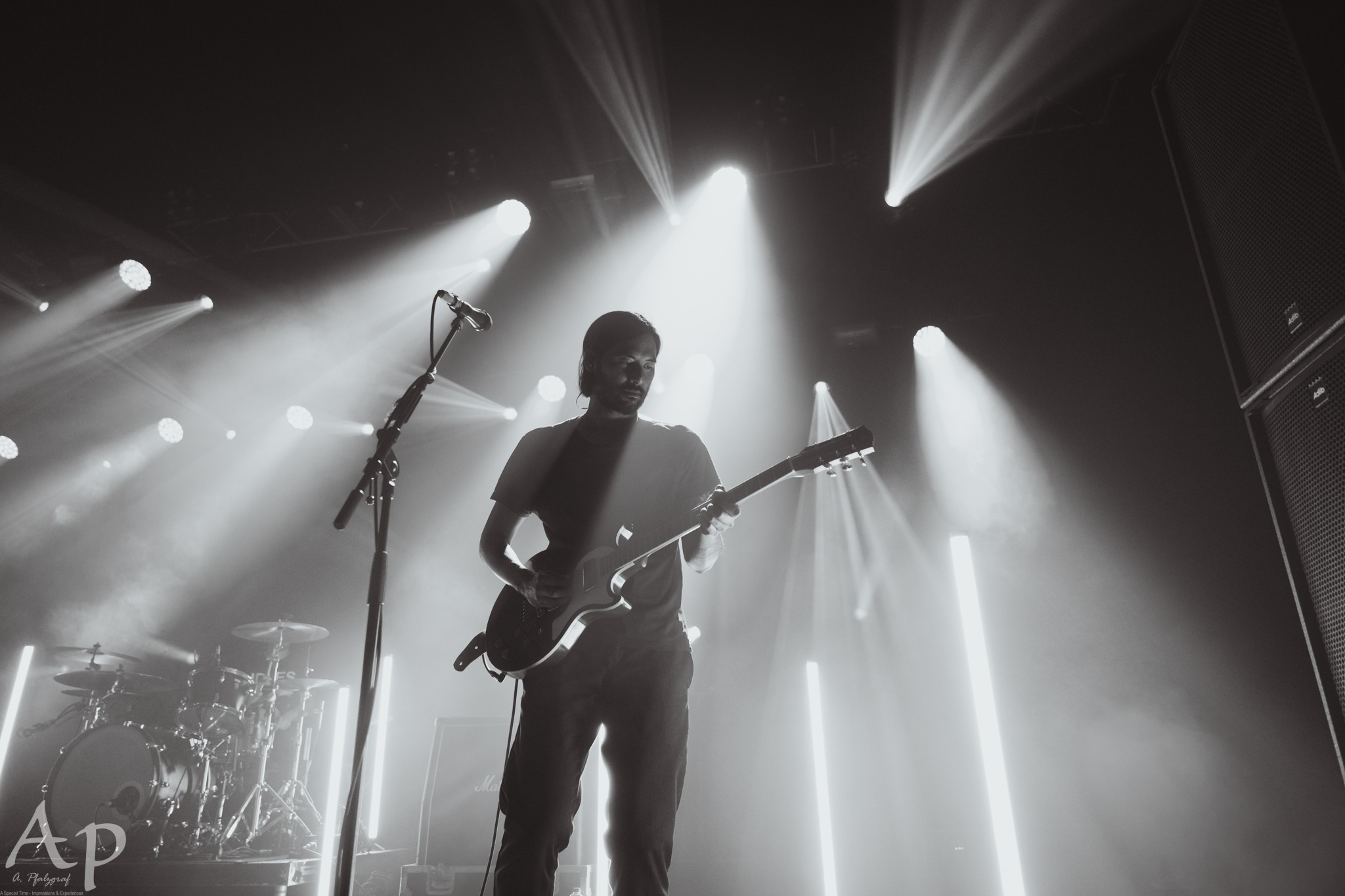 THRICE themselves have that same vitality, as the second half of their set proves; rather than resting on their laurels they became chameleons, constantly experimenting with their sound. They pull from across their storied catalogue, from throwing it back to The Illusion Of Safety, or modern stunner Horizons/East with The Dreamer to their elemental themed Alchemy Index EPs (Firebreather). It’s all delivered with the same enthusiasm and energy, the crowd going just as nuts for the new as the old. The light show too is, frankly, spectacular. Those light stands flit between colours, strobing white and more, the patterns adding a whole new dimension to the lighting rig’s own display. The band are often part silhouetted by them, with the overall effect being a dazzling feast for the senses.