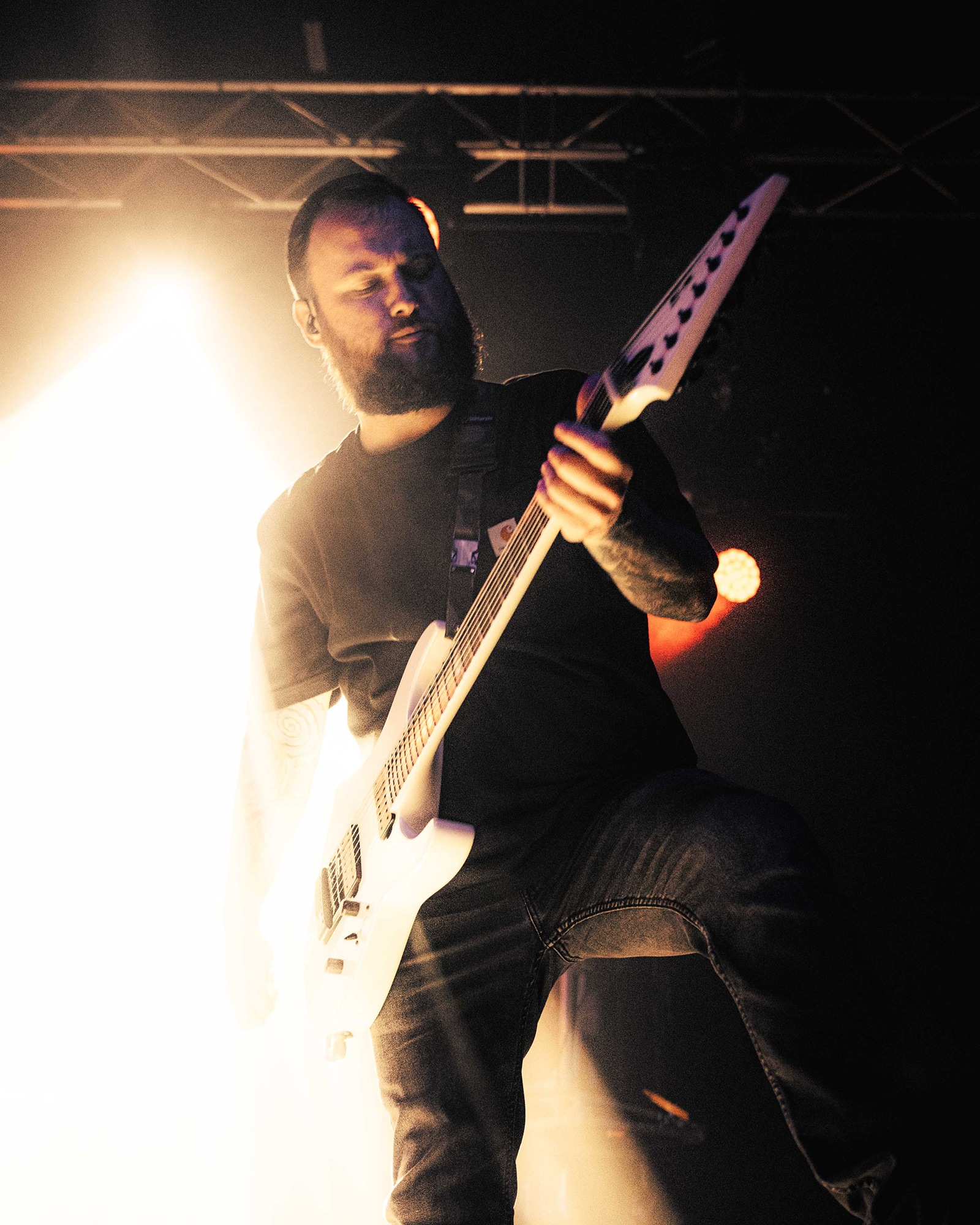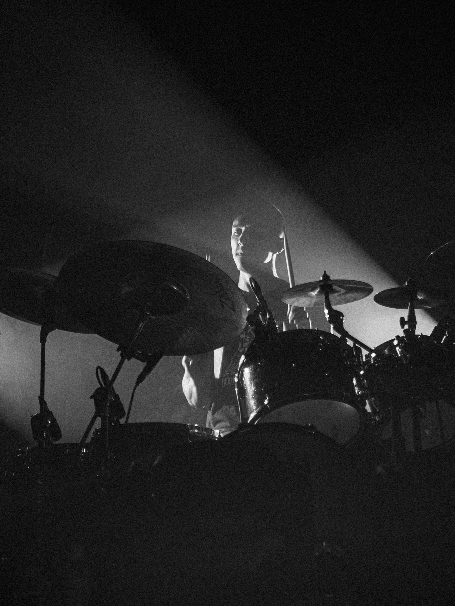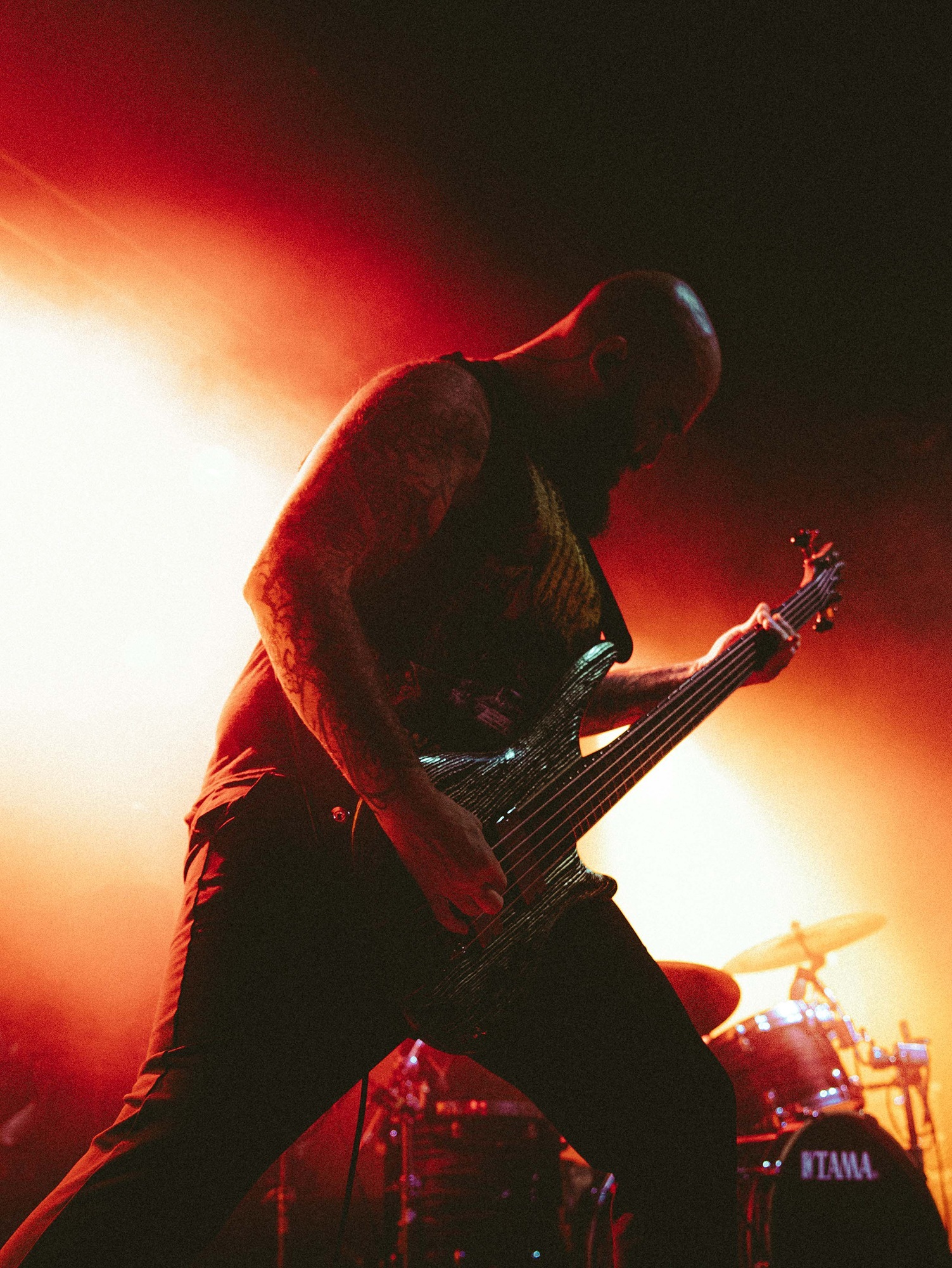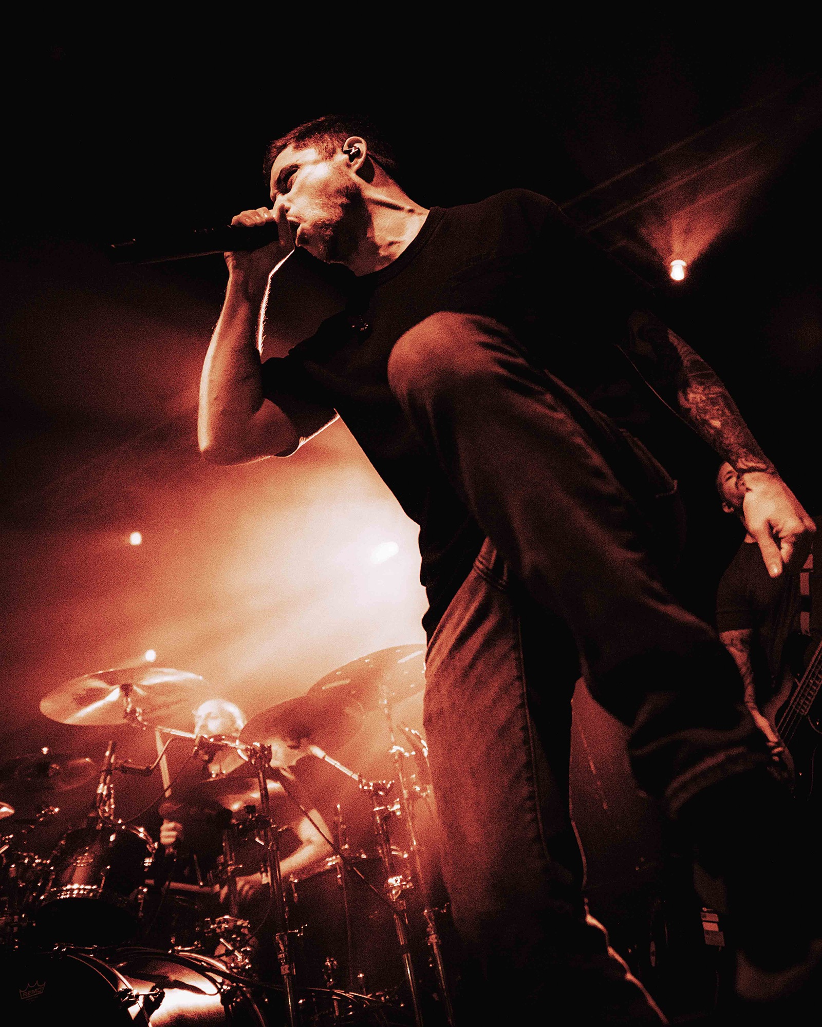 Much has been made of CJ McMahon‘s dismissal from the band and those that had experienced him live in years prior knew of his stage presence, so there was an air of trepidation towards new vocalist; Tyler Miller. Fortunately though, the AVERSIONS CROWN frontman does an impeccable job leading the charge as his range of guttural growls boom and he has enough energy and enthusiasm to keep eyes fixated towards him. What could have been a bumpy transition into the band’s fold seemingly has gone smoothly as he resembles a well-oiled cog in the THY ART machine.