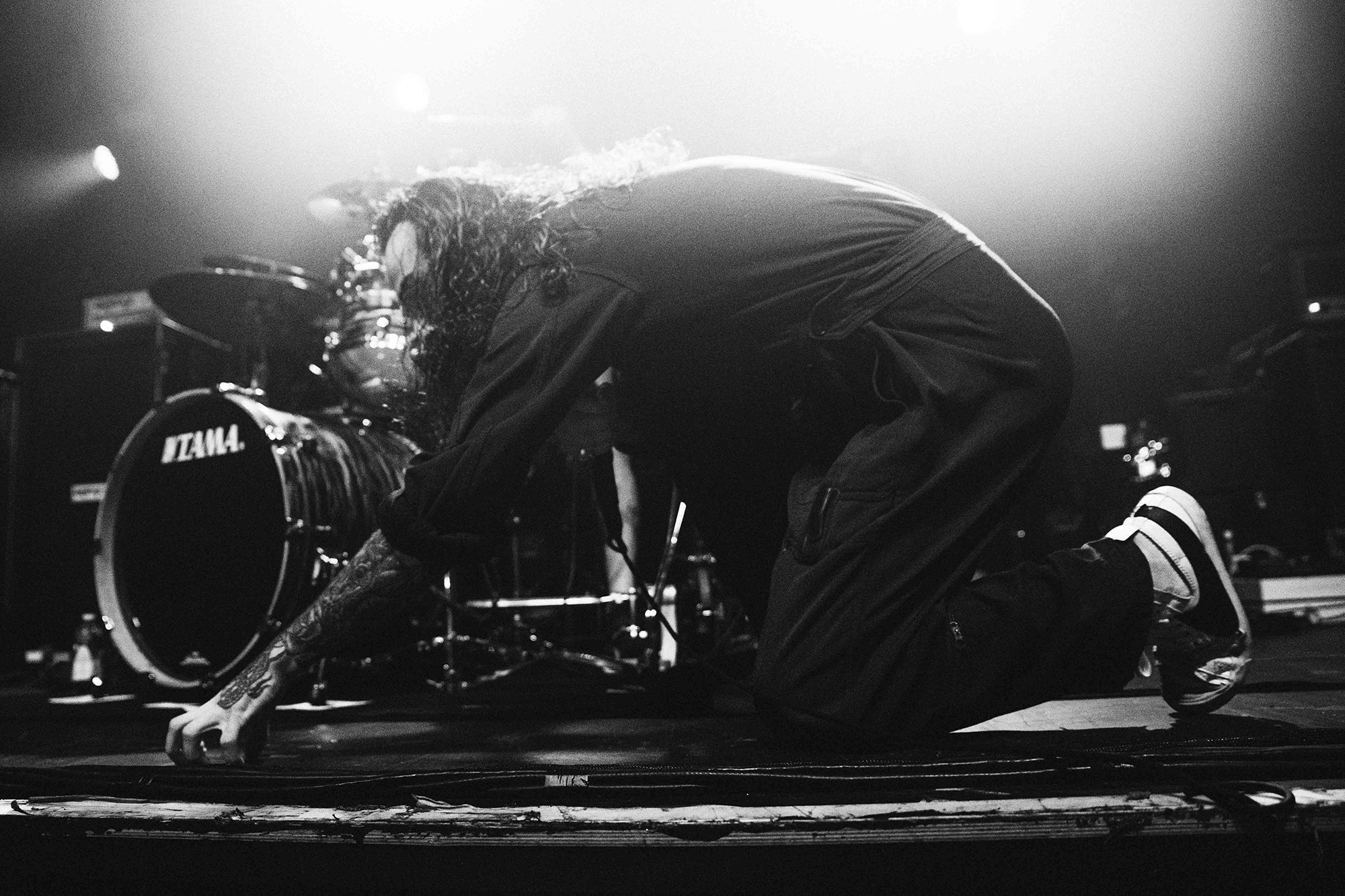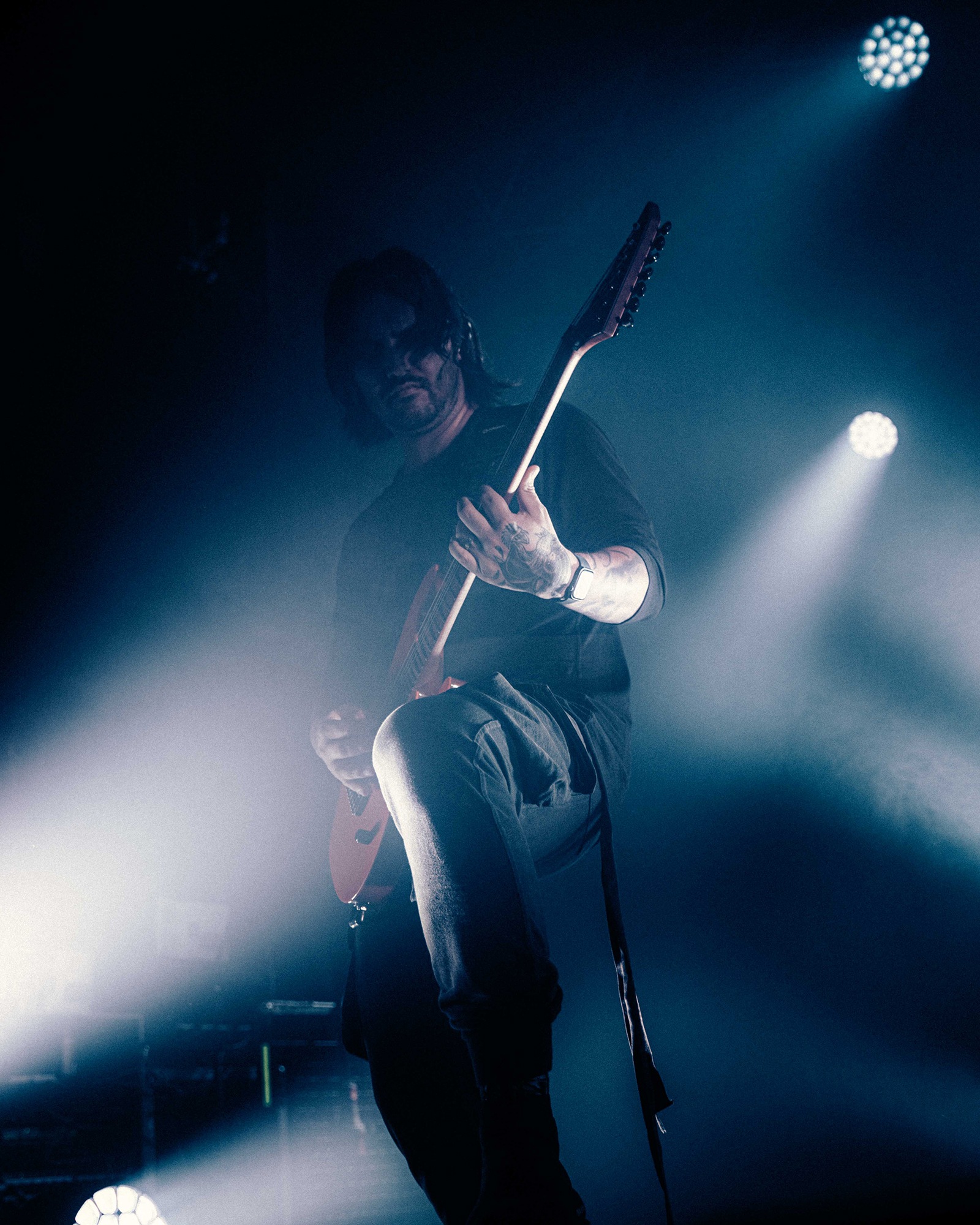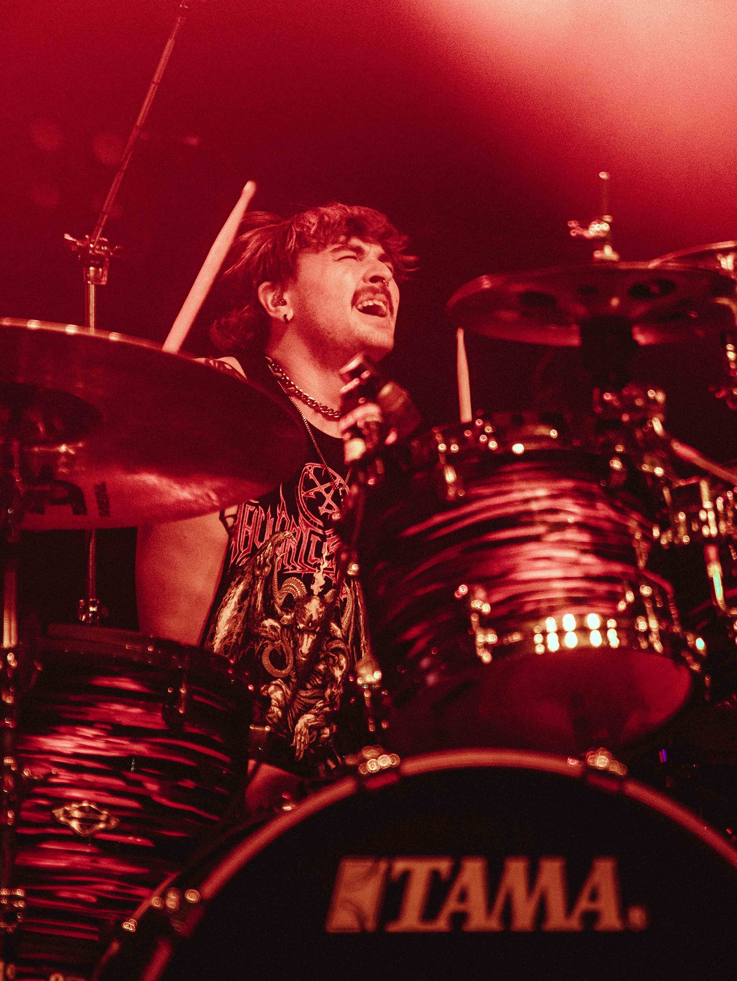 Much has been made of CJ McMahon‘s dismissal from the band and those that had experienced him live in years prior knew of his stage presence, so there was an air of trepidation towards new vocalist; Tyler Miller. Fortunately though, the AVERSIONS CROWN frontman does an impeccable job leading the charge as his range of guttural growls boom and he has enough energy and enthusiasm to keep eyes fixated towards him. What could have been a bumpy transition into the band’s fold seemingly has gone smoothly as he resembles a well-oiled cog in the THY ART machine.