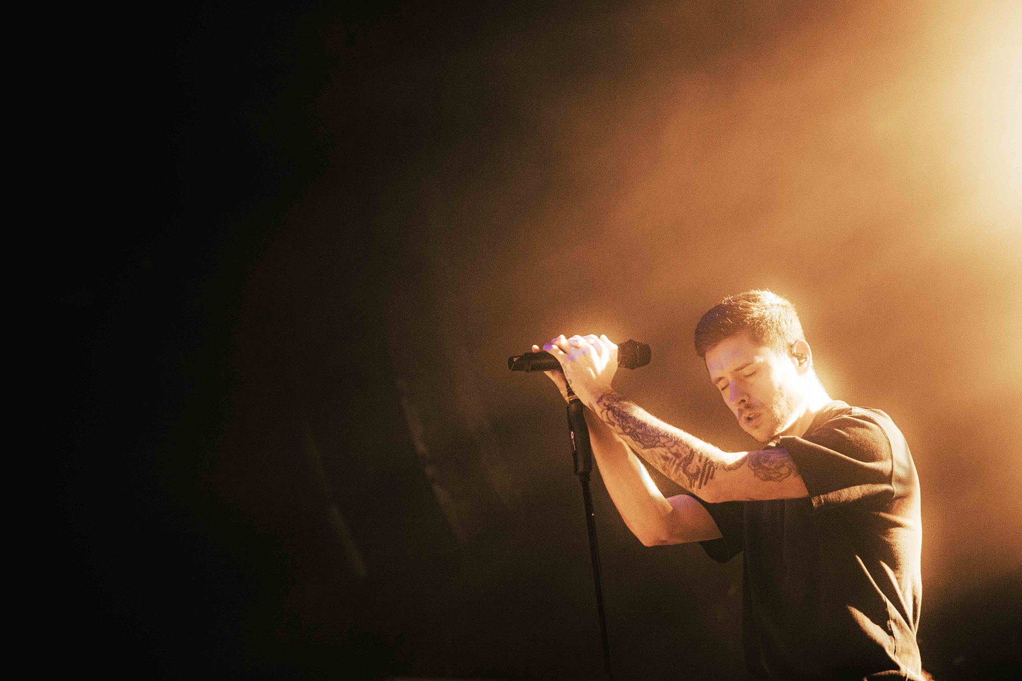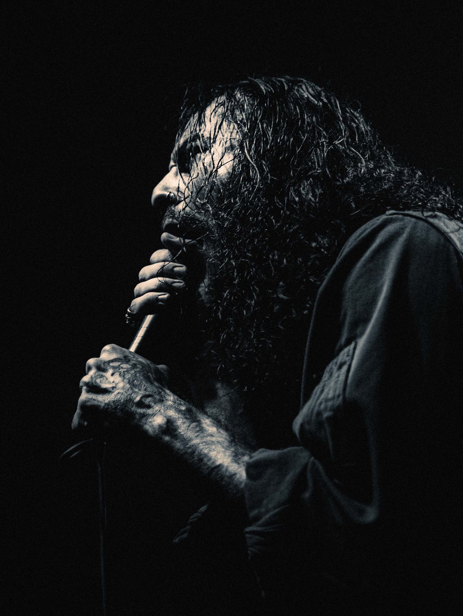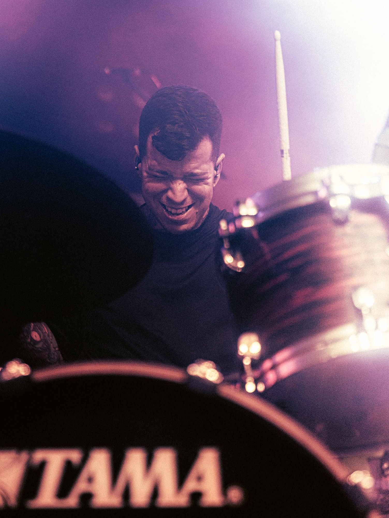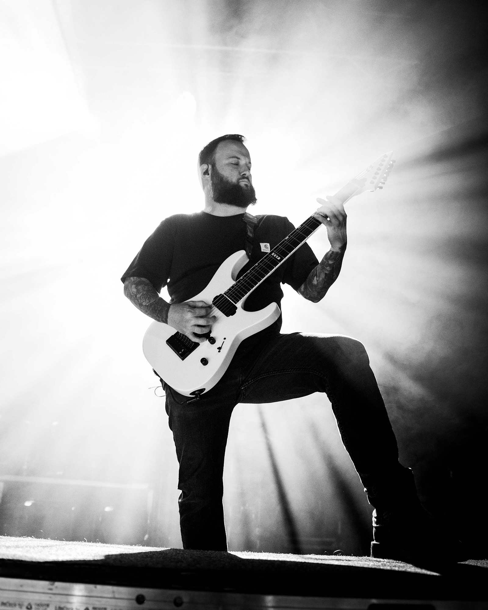 Much has been made of CJ McMahon‘s dismissal from the band and those that had experienced him live in years prior knew of his stage presence, so there was an air of trepidation towards new vocalist; Tyler Miller. Fortunately though, the AVERSIONS CROWN frontman does an impeccable job leading the charge as his range of guttural growls boom and he has enough energy and enthusiasm to keep eyes fixated towards him. What could have been a bumpy transition into the band’s fold seemingly has gone smoothly as he resembles a well-oiled cog in the THY ART machine.