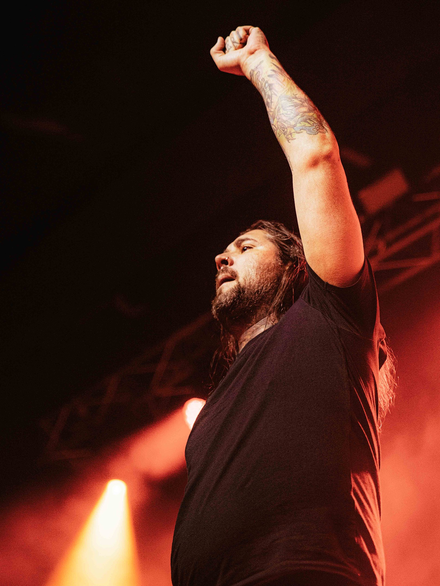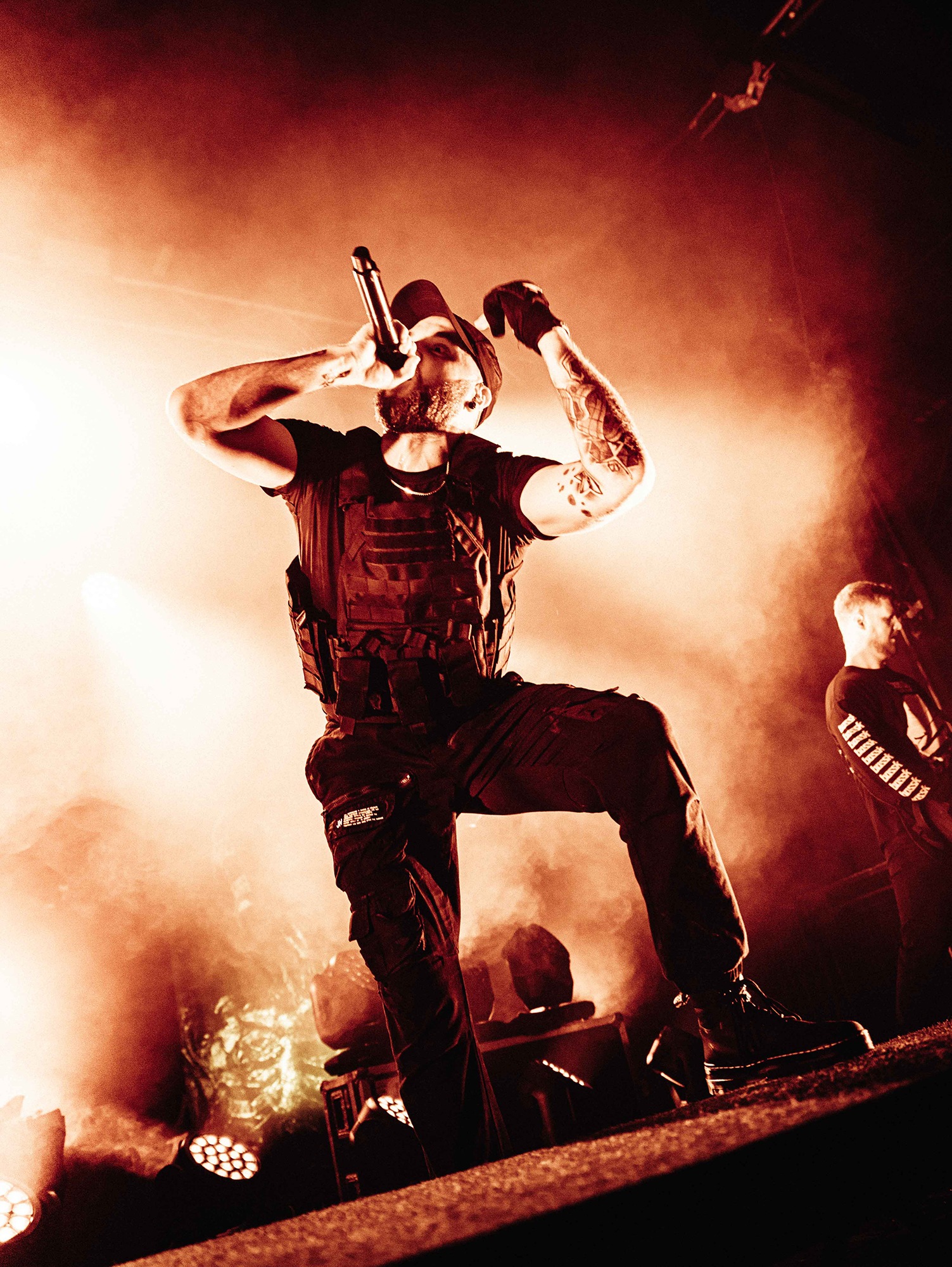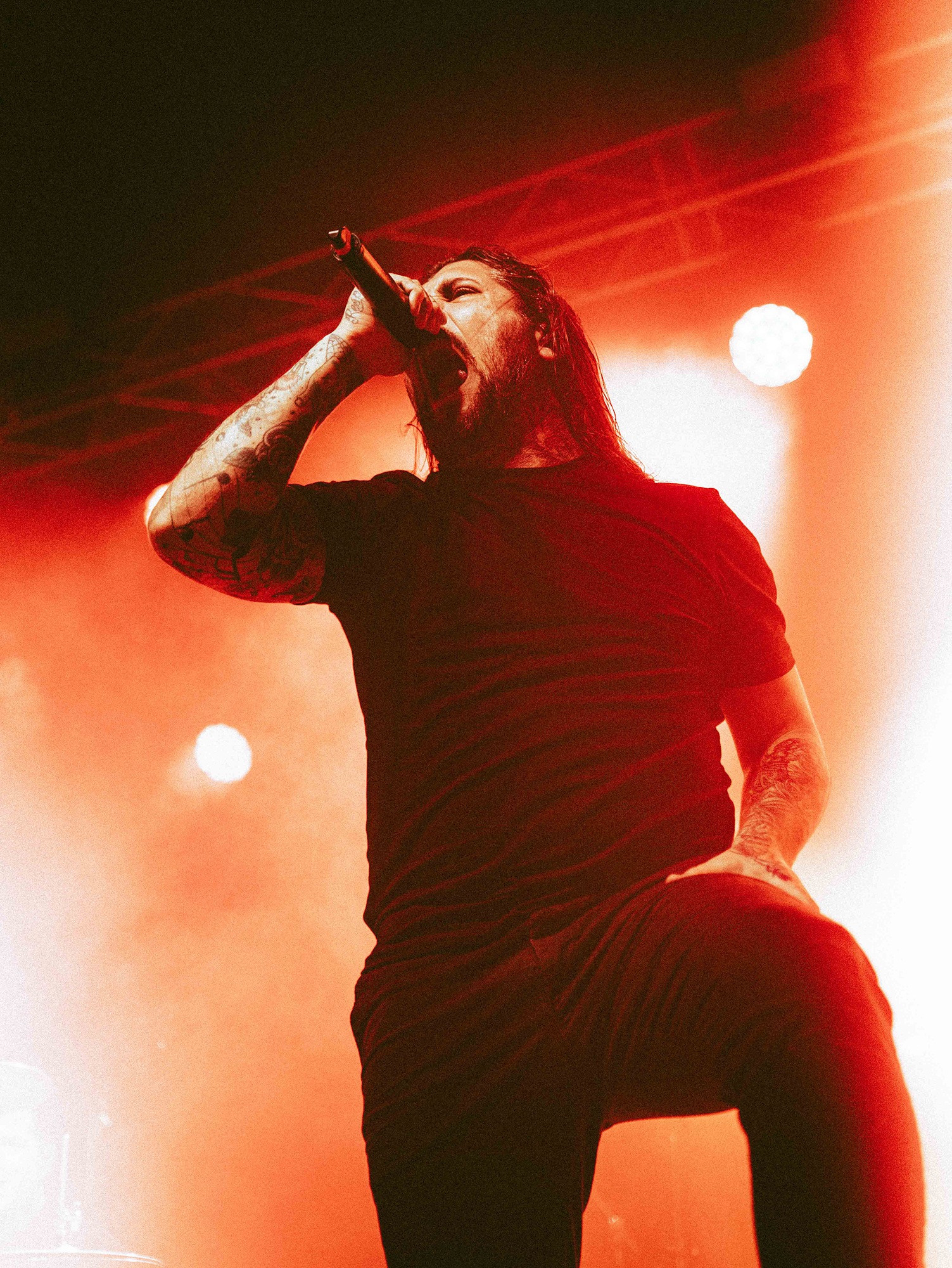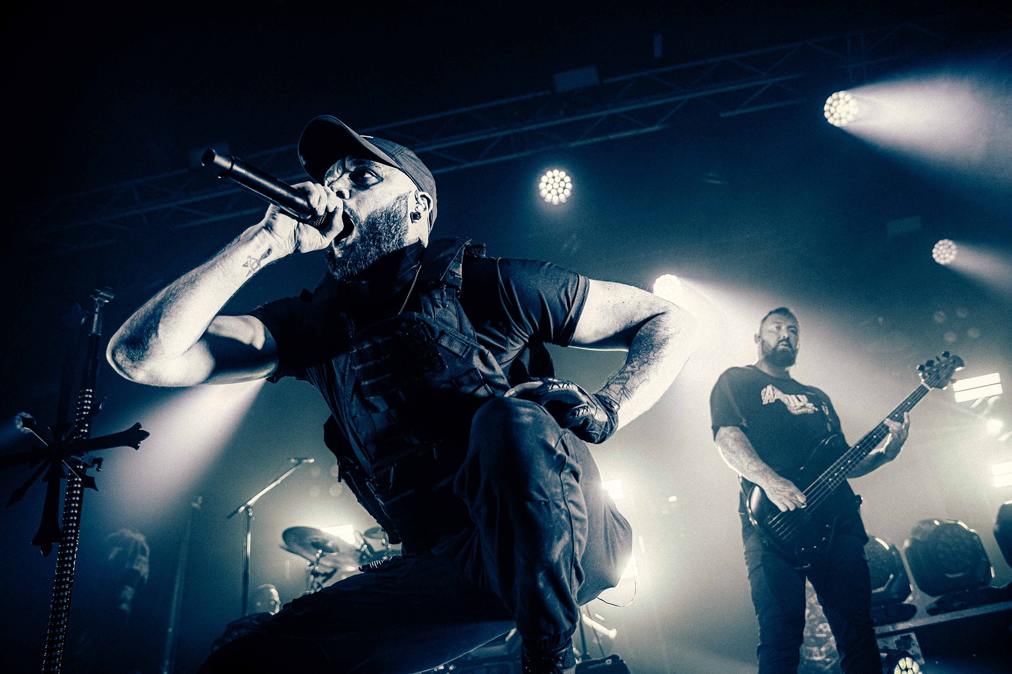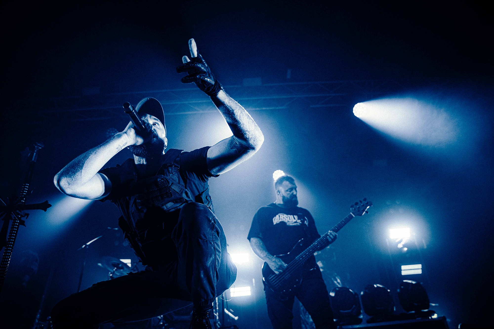 With tonight’s show in Manchester sold-out, numerous bodies are congregated as California’s SPITE arrive to the stage and right from the off, the band set the tempo sky-high. A one-two opening punch of Made To Please and Caved In (both taken from last year’s brutal Dedication To Flesh) has the crowd bouncing and the pits raging as the groove-laden riffs hammer home and Darius Tehrani snarls and shrieks with the utmost ease. Tehrani prowls the large stage with endless enthusiasm, demanding more from the crowd, who willingly oblige, and over the course of 30-high octane minutes, the band succeed in setting an opening statement of intent.