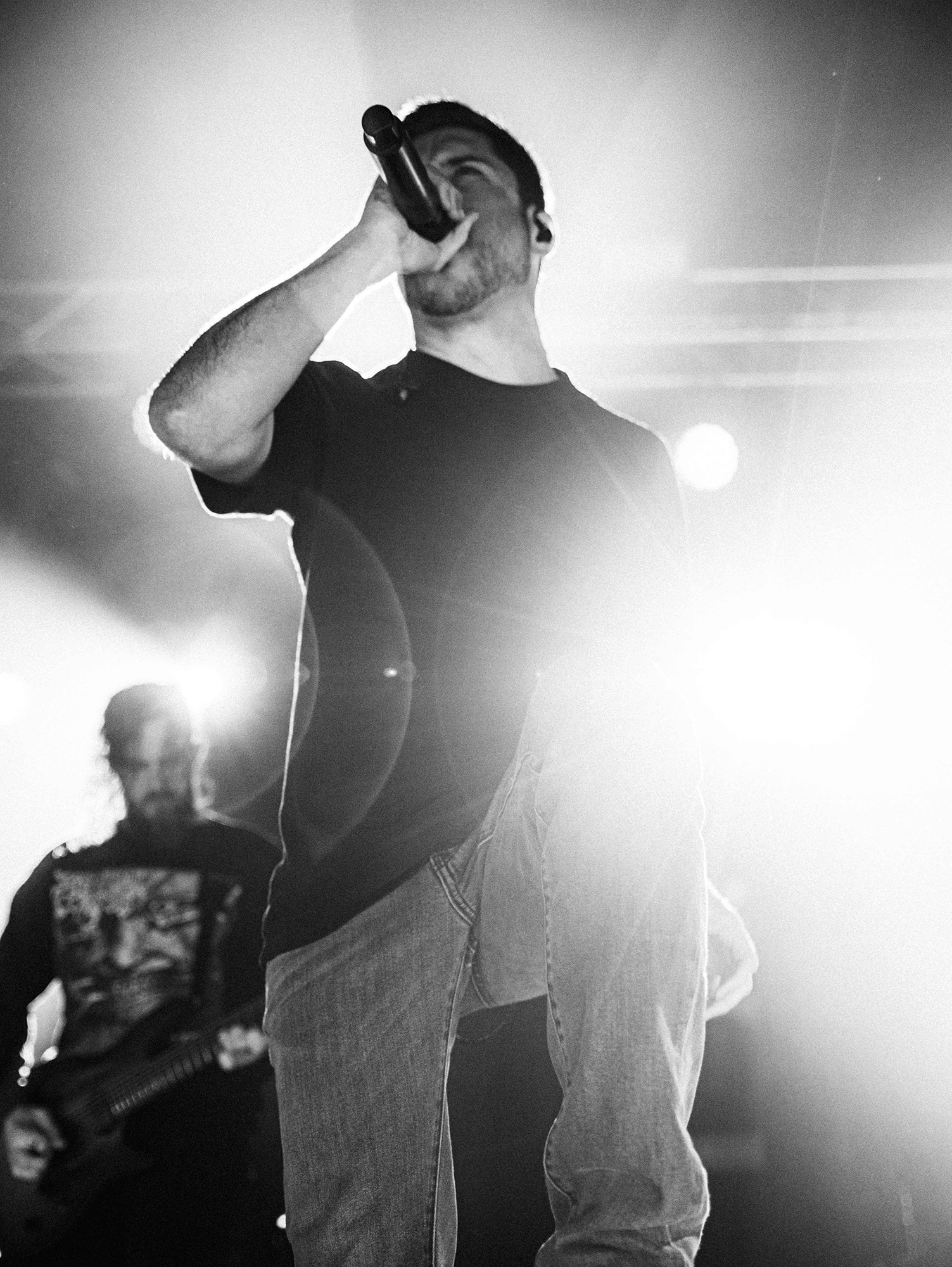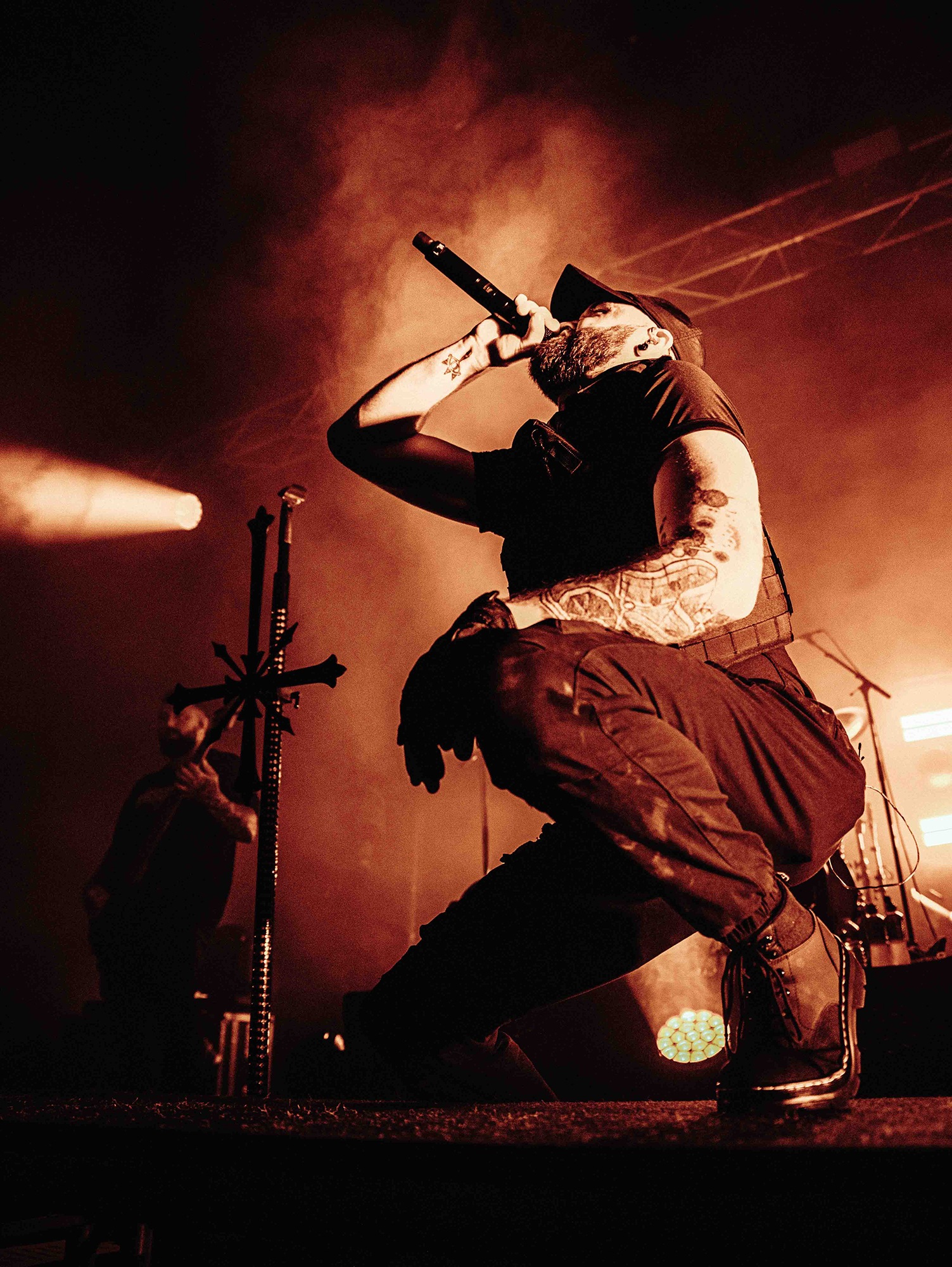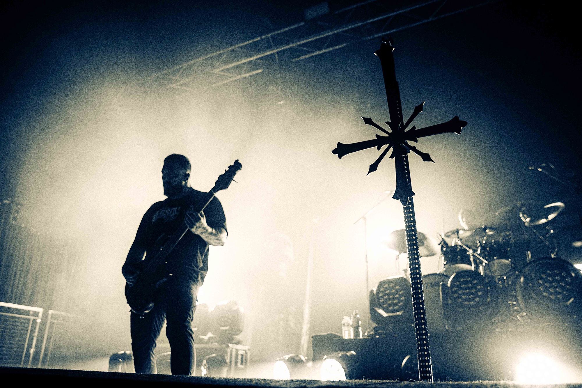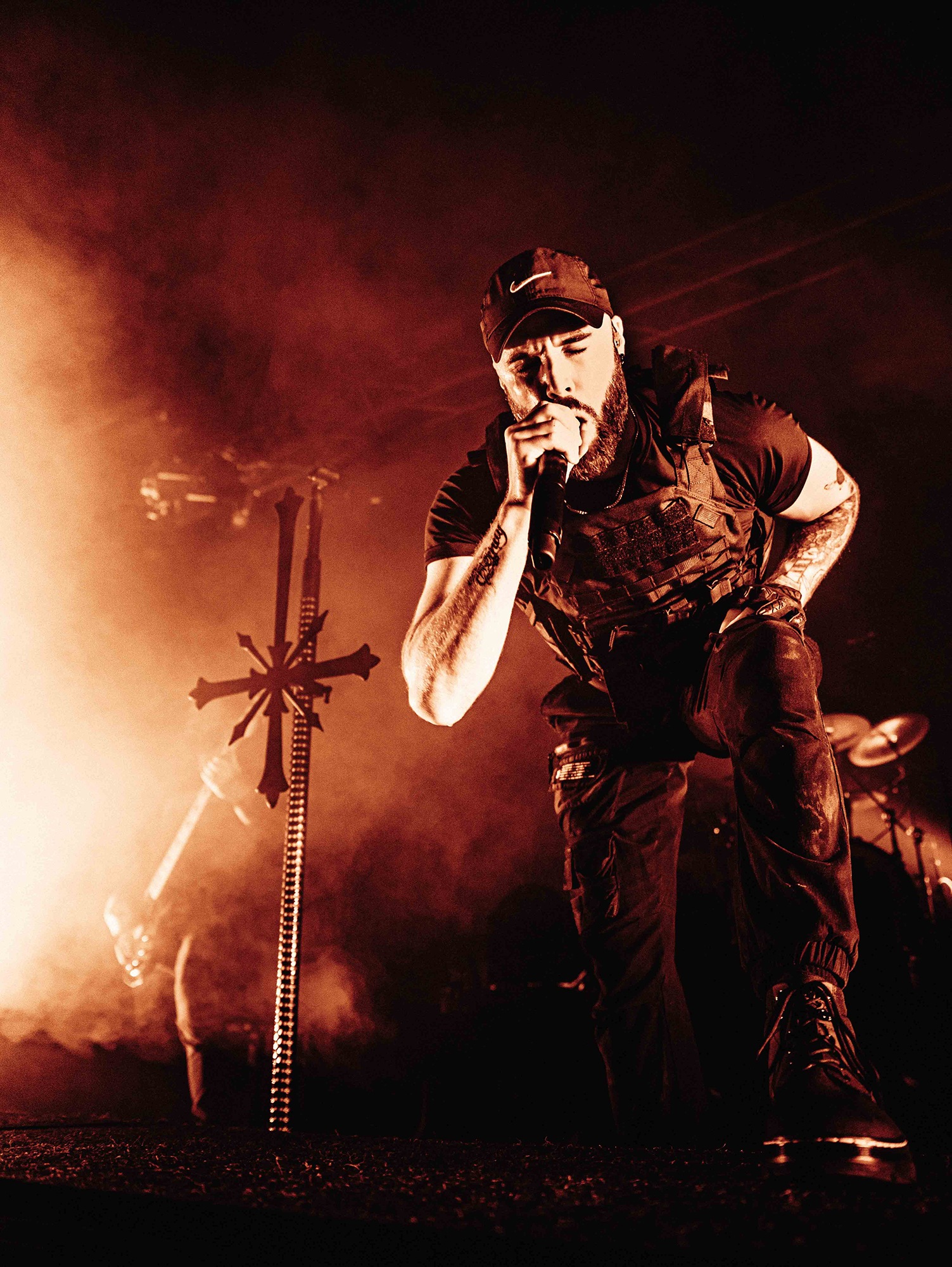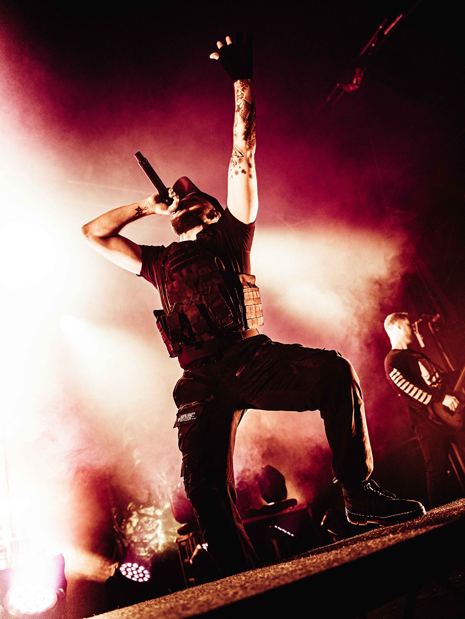 With tonight’s show in Manchester sold-out, numerous bodies are congregated as California’s SPITE arrive to the stage and right from the off, the band set the tempo sky-high. A one-two opening punch of Made To Please and Caved In (both taken from last year’s brutal Dedication To Flesh) has the crowd bouncing and the pits raging as the groove-laden riffs hammer home and Darius Tehrani snarls and shrieks with the utmost ease. Tehrani prowls the large stage with endless enthusiasm, demanding more from the crowd, who willingly oblige, and over the course of 30-high octane minutes, the band succeed in setting an opening statement of intent.