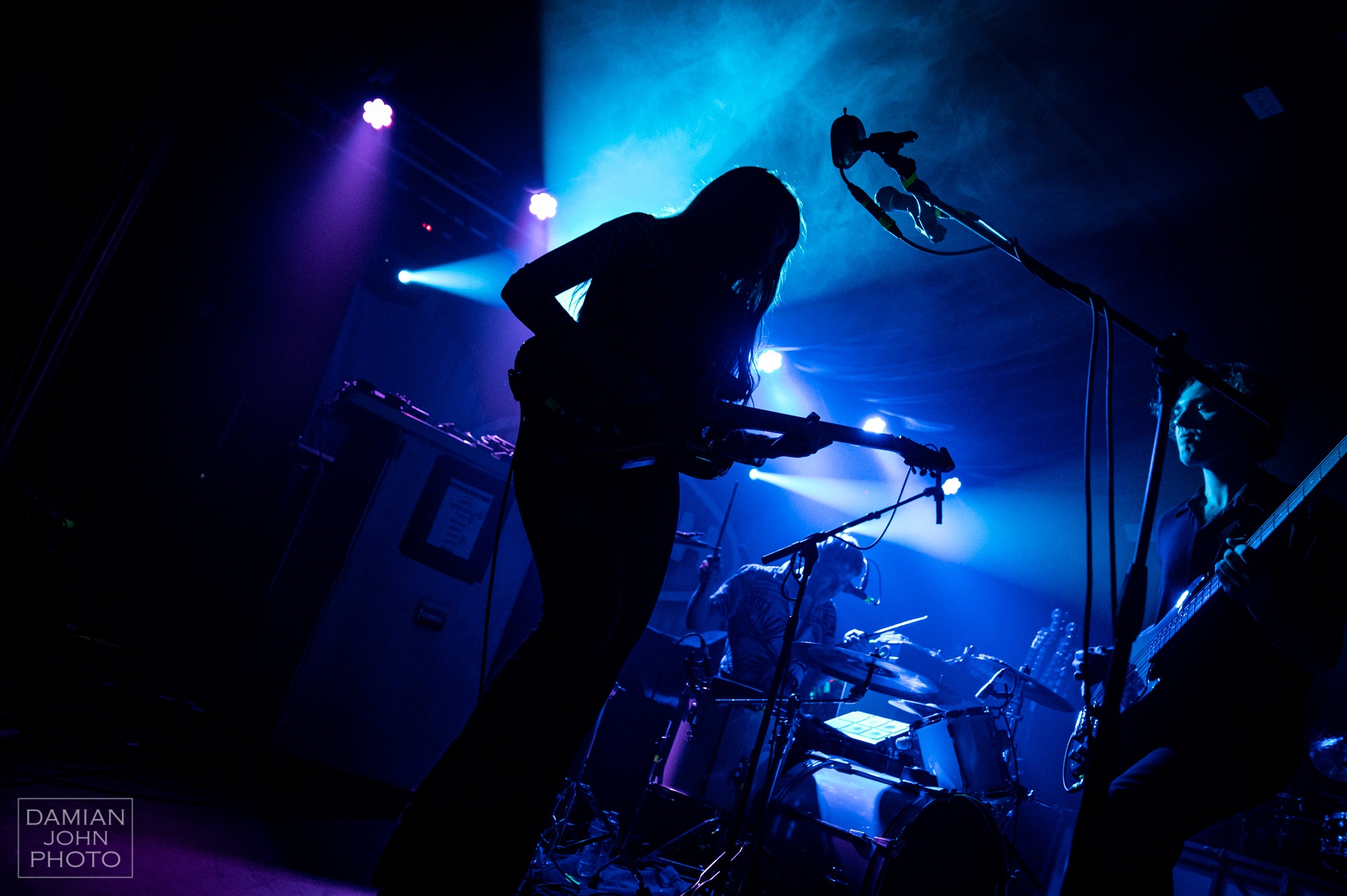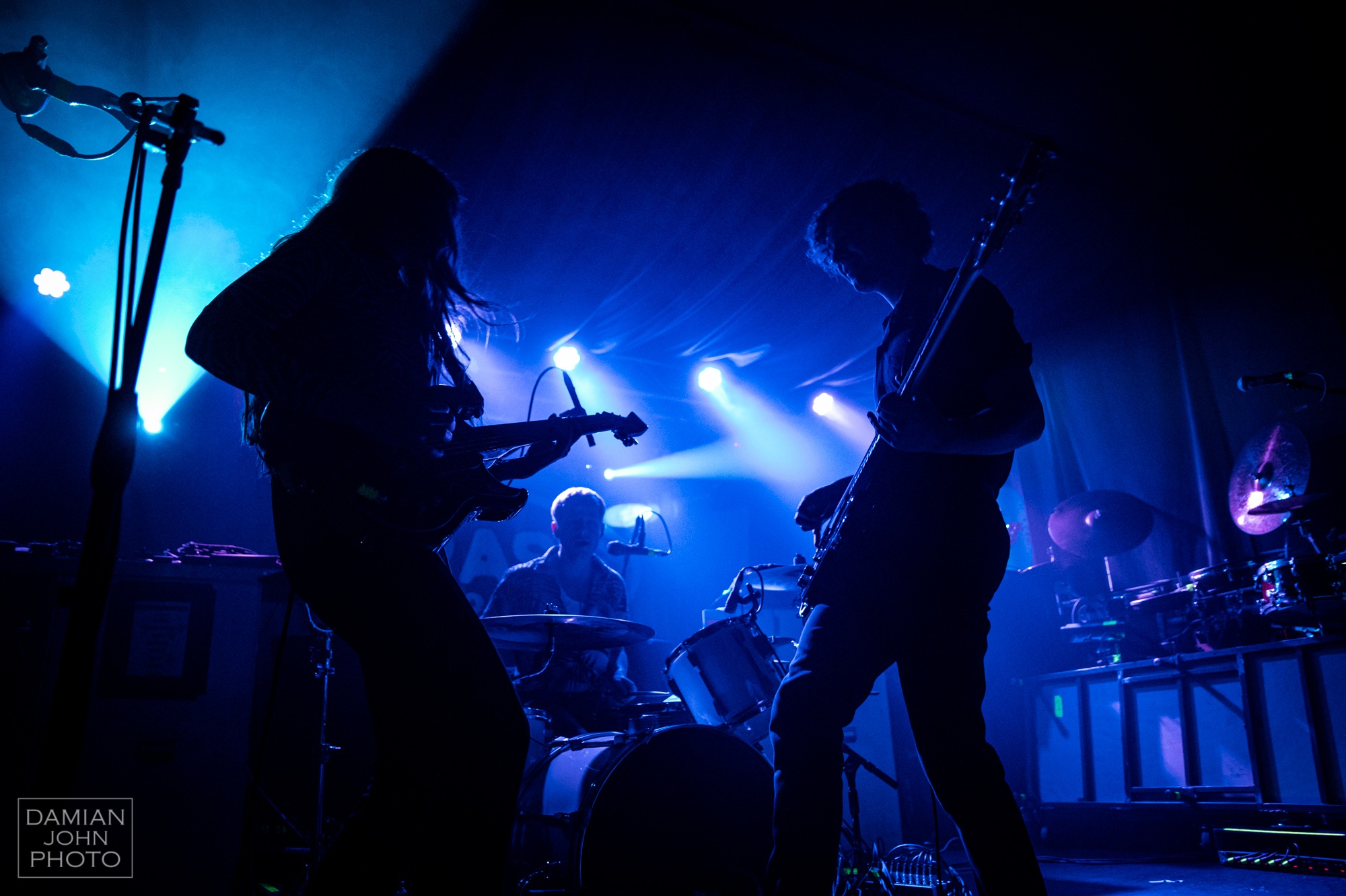 Then entered Manchester-based trio CALVA LOUISE. The members all hail from different areas of the world, but met in London to form the punk band. Throughout the set, the band played songs which featured some Spanish elements which the crowd ate up, and threw in some more aggressive elements every now and then to get the crowd moving. Venezuelan vocalist Jess Allanic made a statement by jumping into the crowd to play a jumpy guitar solo, which the crowd loved, forming a circle around her and all headbanging in time. The band smiled the whole way through their set, making for a joyful atmosphere that the crowd delivered back to them. It was also great to see bassist Alizon Taho in the pit for the rest of the bands’ performance, moshing along with the fans, clearly having a great time.