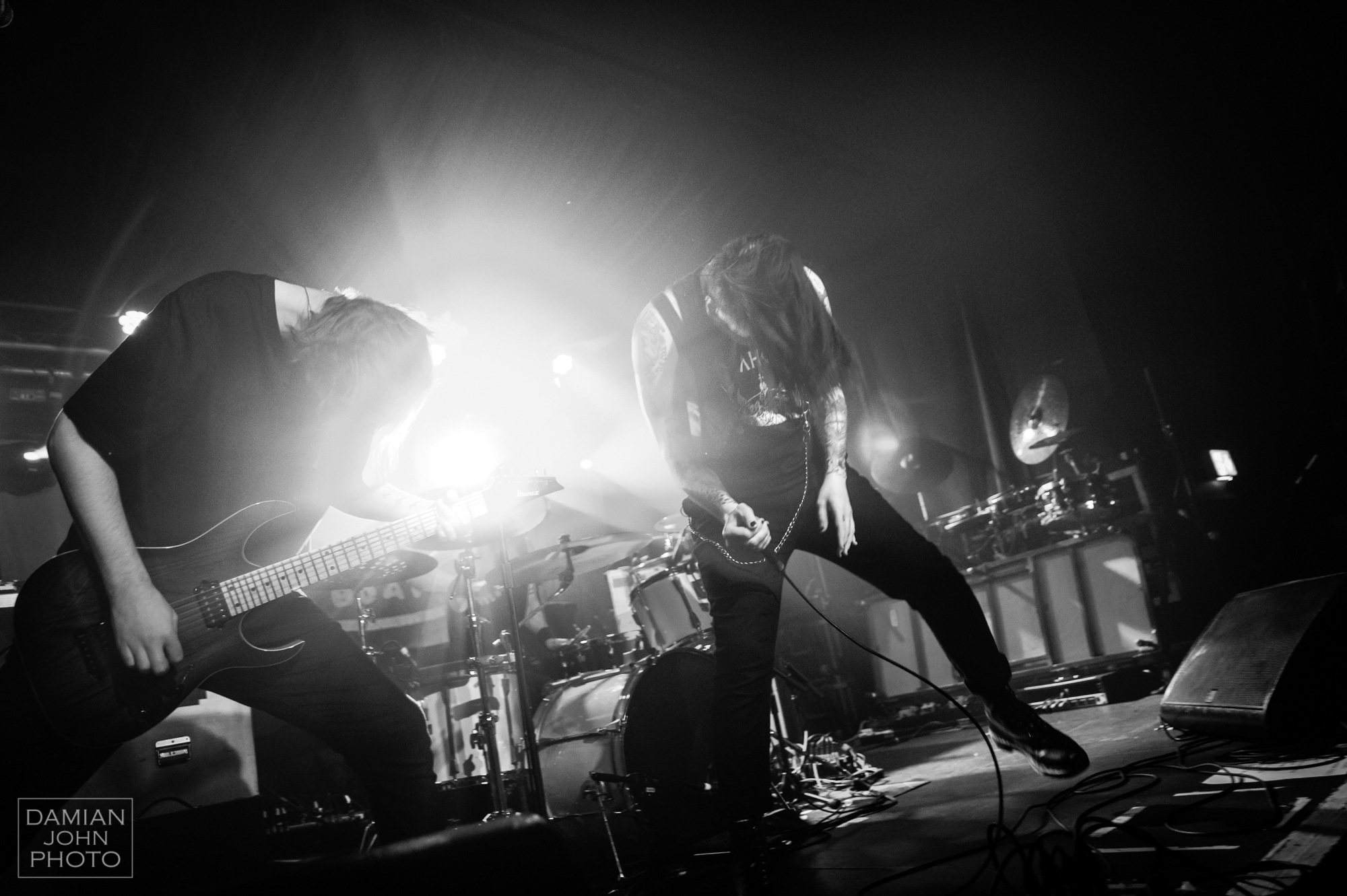 First up was Liverpool based metalcore group DEATH BLOOMS who faced a slight challenge with their early set time, kicking off within 15 minutes of the doors opening. With another gig going on at the same venue, queues outside seemed to get mixed up, resulting in a relatively slim turnout for this first act’s performance. However, even with these slight setbacks, the band put on a hard hitting performance, opening with the punchy Shut Up from their newest album Life Is Pain which was only released in October. Vocalist Paul Barrow encouraged the crowd to get moving and start up the pits, which eventually they complied with. The job of the first support act is to wake up the crowd and get them hyped for the oncoming acts, and considering the band consisted of only three members on stage tonight, they still managed to create a huge sound. A standout track being One Release in which the chorus consists of an aggressive shout of “pit, pit, get in the pit!” where if the queues didn’t impact the turnout, would be sure to create quite the stir.
