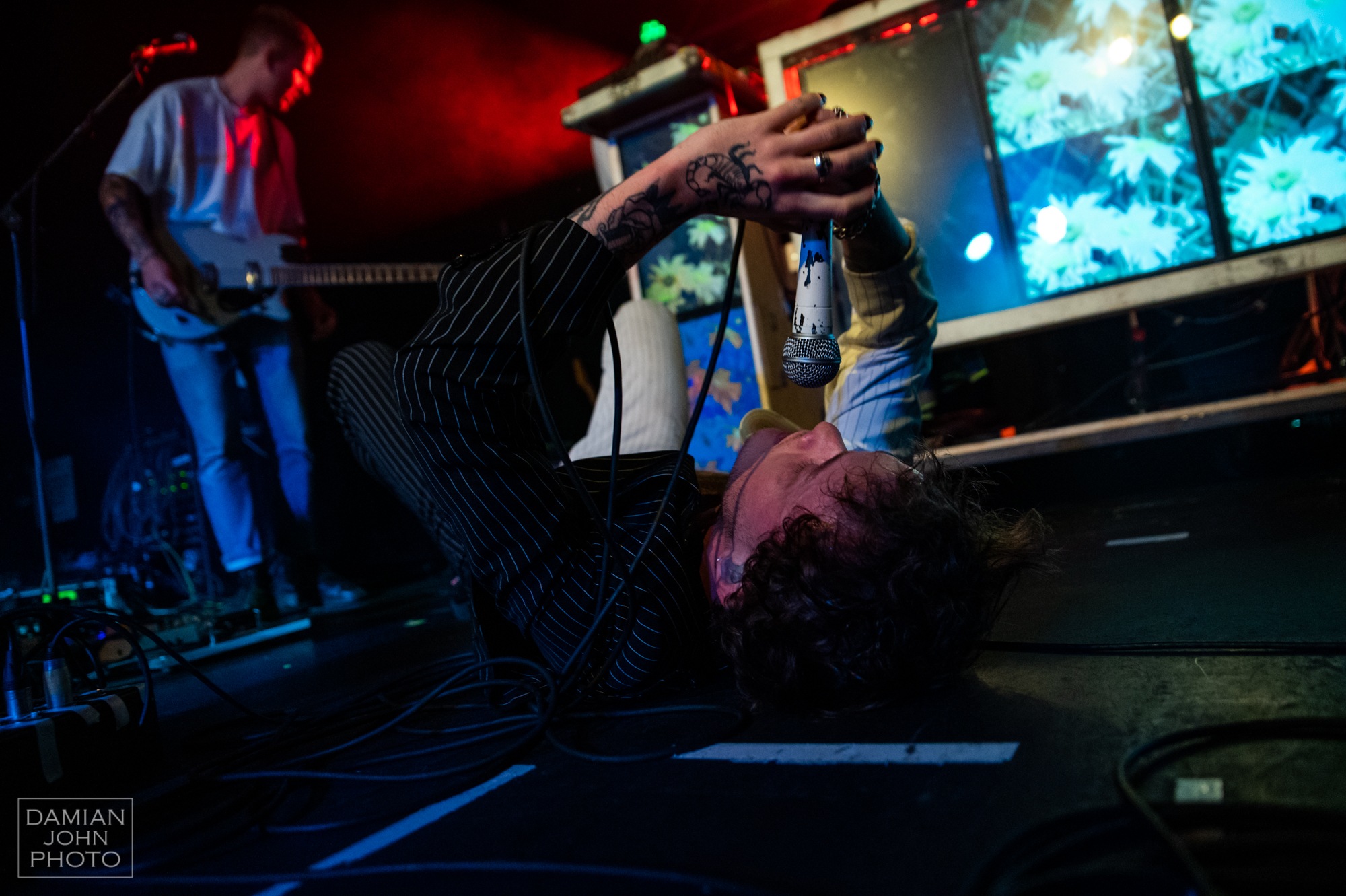 Any member of the audience who had never heard of STRANGE BONES before the gig, would definitely remember their name from now on. Making an entrance with a set of screens displaying lively visuals placed around the drum kit, the band didn’t waste any time getting into the action. The Blackpool four-piece is comprised of three brothers plus one, making for great chemistry on stage. Visually the members were well styled and definitely all fit the punk aesthetic. The attitude they all displayed only furthered this, resulting in a really entertaining set. Their vocalist, Bobby Bentham, probably spent more time in the mosh pit with the fans than he did on stage. This only made the lively crowd even more active, resulting in pits for every song. STRANGE BONES have worked with previous support CALVA LOUISE before, clearly having a good friendship as they brought out their vocalist/guitarist Jess Allanic to partake in some of their punchy riffs. The band put on a great show, and definitely made their mark, but this wasn’t the last we would see of their vocalist for the rest of the night.