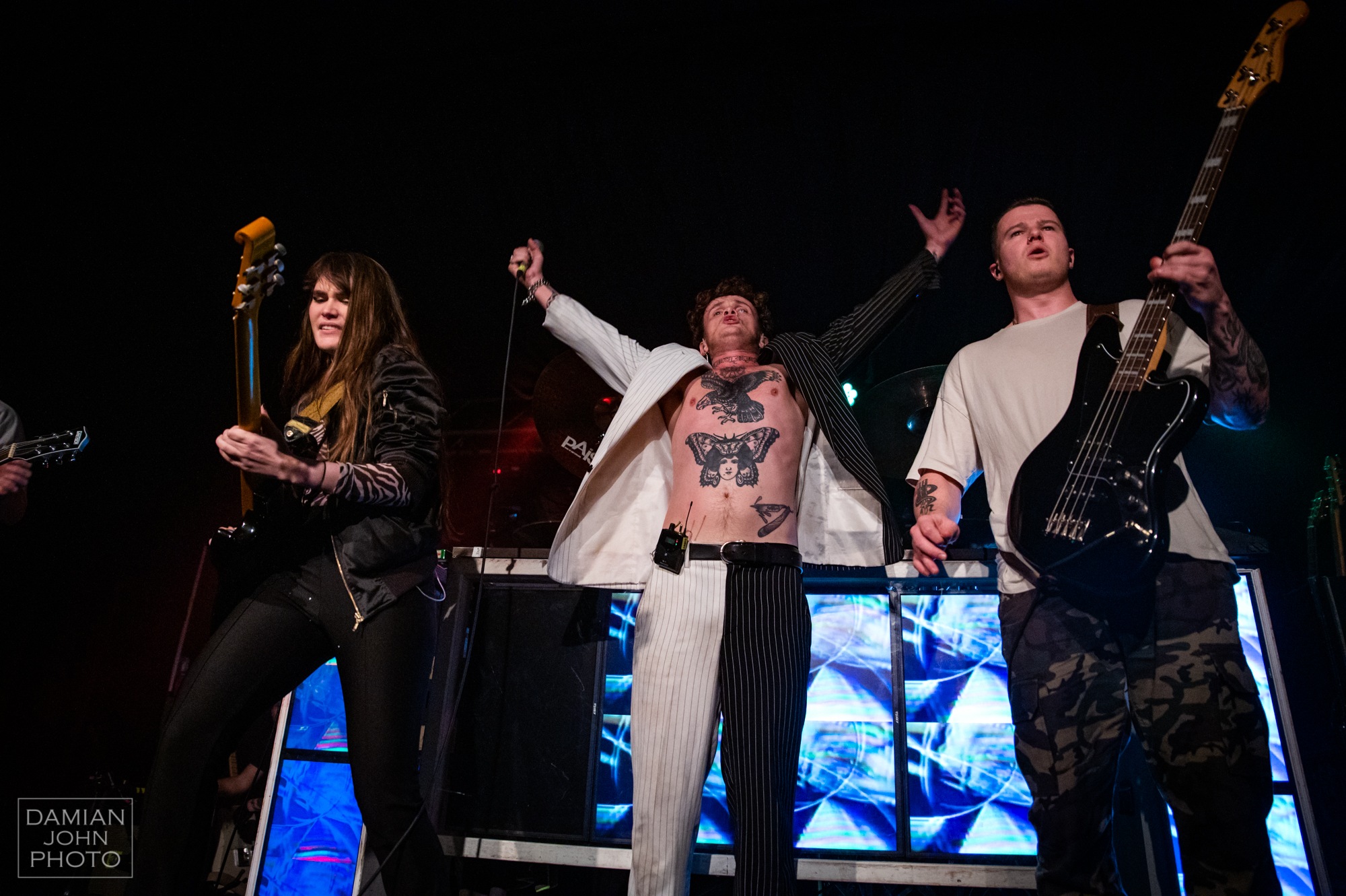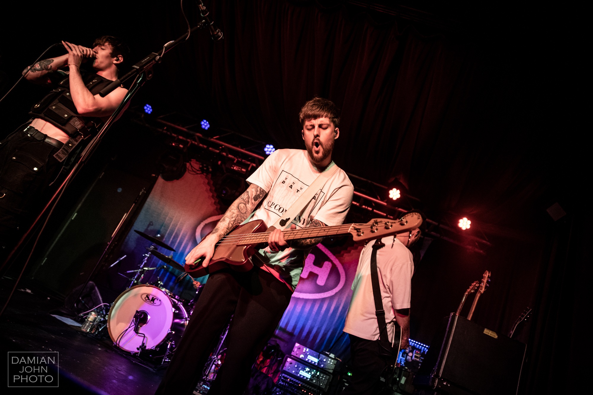 Finally, onto the main act of the night, TRASH BOAT. Opening with one of their strong singles, Silence Is Golden, from their new album, the band wanted to kick off with one of their heavier tracks, getting the crowd going straight away. This paid off, resulting in a mosh pit half the size of the crowd, where there was a mutual understanding that if you fell, you got picked up. These good vibes continued throughout the whole set, with vocalist Tobi Duncan making a couple of speeches about how we should all be accepted no matter what we identify as or for who we want to be, saying, “present yourself however you choose, use what pro-nouns you choose, be whatever gender presentation you choose. Don’t expect a damn thing from anyone else, as you might not get it and you’ll be disappointed. Validate yourself.” These words made the concert feel like a safe and inclusive place, which the crowd really appreciated and presented TRASH BOAT in a positive light. The band also wanted to show off their playful side, with Duncan complaining that the band’s bassist James Grayson never got sweaty at gigs which they envied, in which Grayson responded by pouring a bottle of water over his head. These light-hearted moments make concerts more fun and memorable for the audience, which will only make them want to see the band live again.