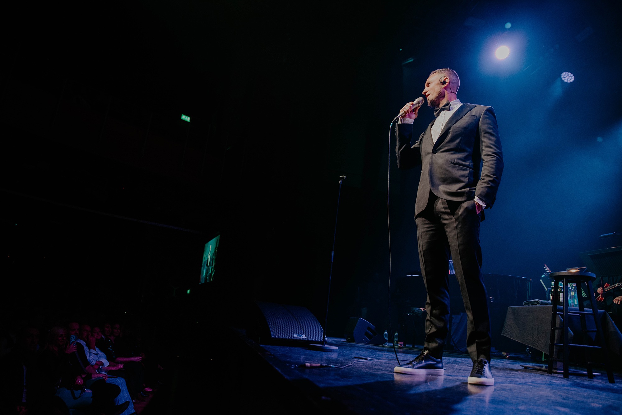The weather outside was frightful. But the glow of the O2 Arena was somewhat delightful. Having navigated icy pavements like Bambi’s first time on the lake, we arrived at the O2 to a rather strange sight. Music lovers clad in jeans and t-shirts floated over the main arena for a night with ROSALIA while a subsection donned their finery and slipped inside Indigo; the smaller entertainment venue. Patrons young and old gathered to make casual chit chat over the soft piping of jazz music. Were it not for the few ALTER BRIDGE shirts dotted throughout the room, no one would be blamed for thinking this was going to be a sophisticated awards show. This merchandise served as a reminder as to the reason we’d gathered in the first place. The stage’s backdrop consisted of the artwork for TREMONTI SINGS SINATRA’s eponymous album released earlier this year.