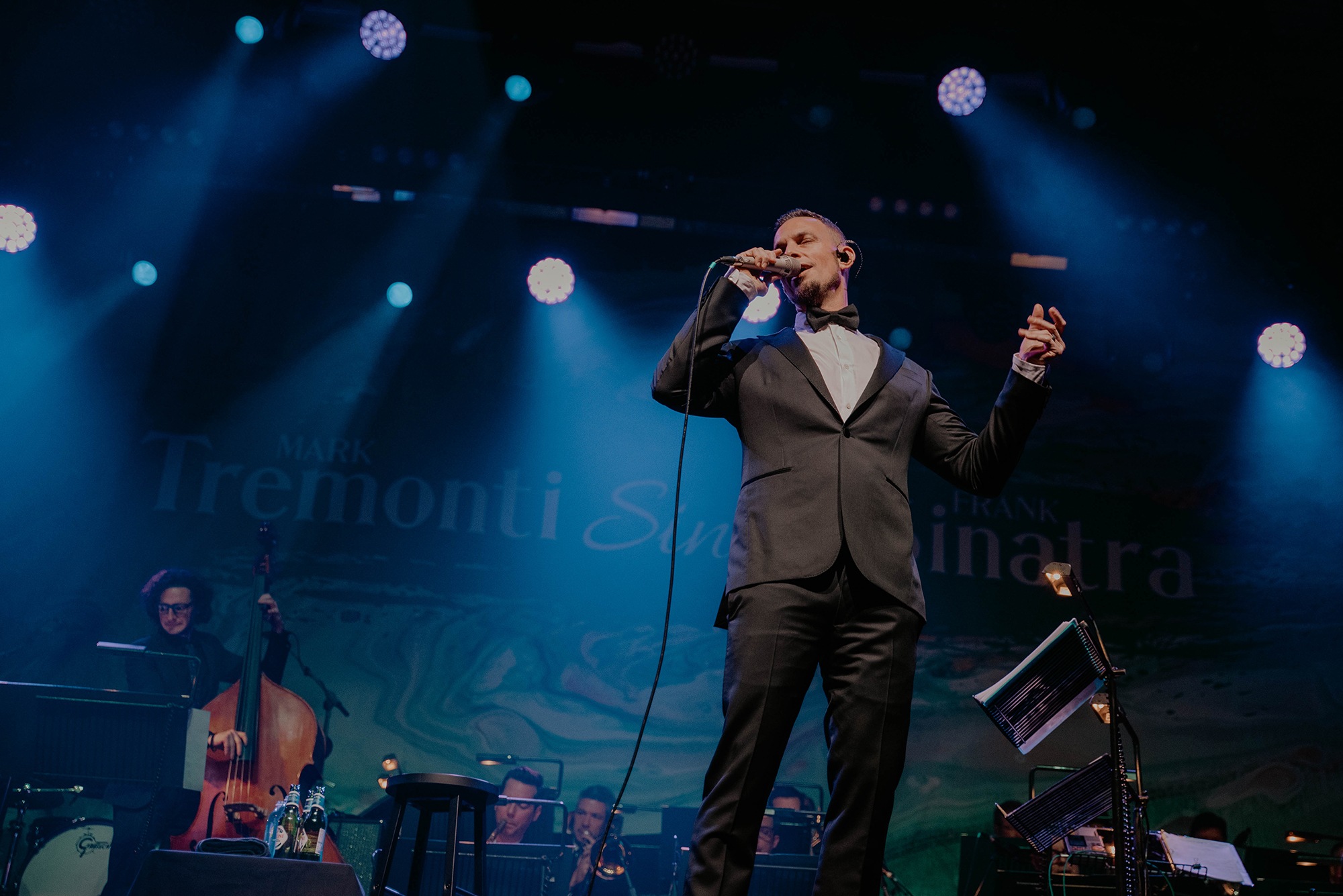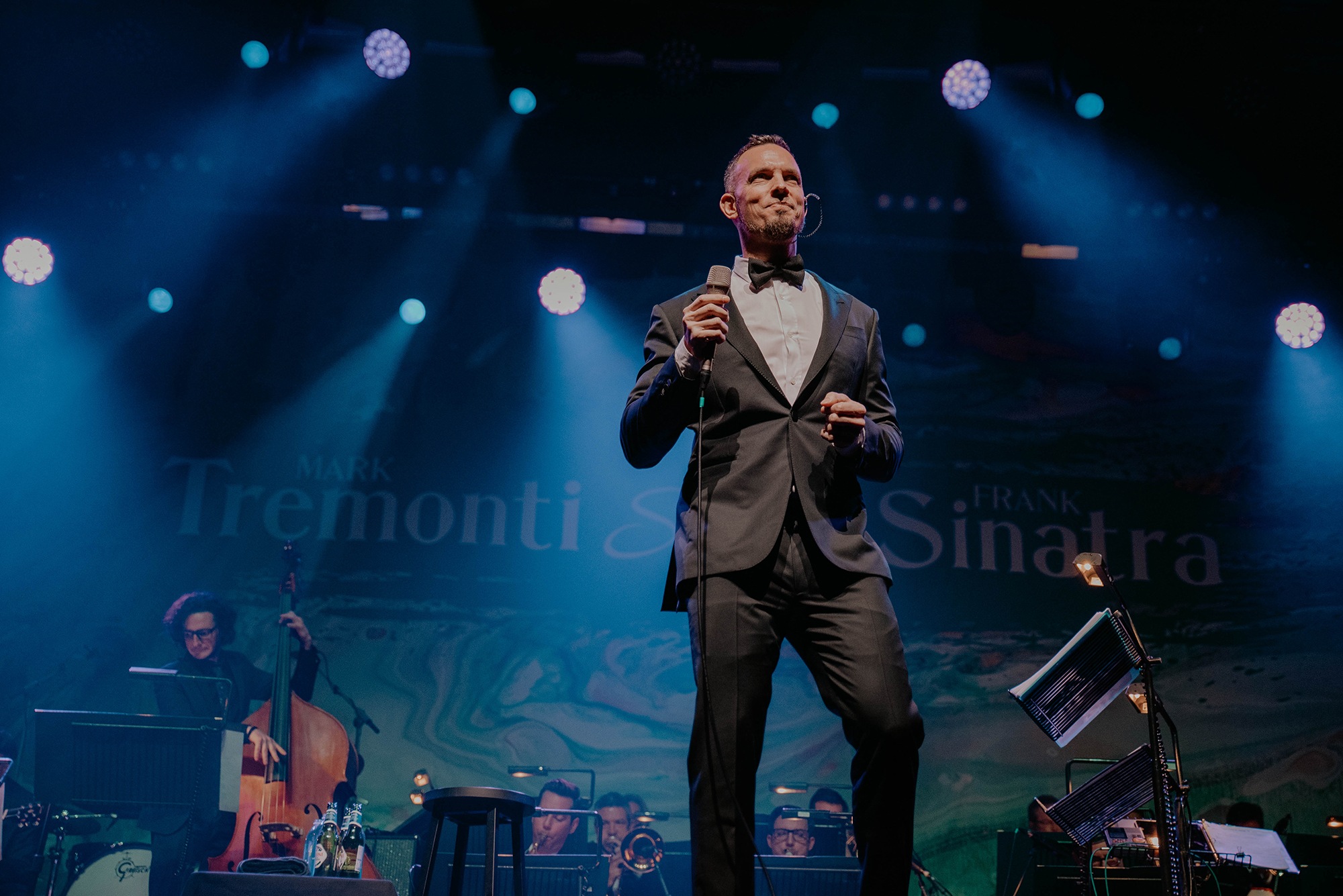 After a short introduction, the live band took their seats and sizzled into Fun Time. A swinging number which instantly put smiles on faces. To be in the presence of a portion of Frank Sinatra’s ensemble as well as musicians from a prestigious London orchestra was exhilarating in a way we never thought we’d experience outside of a metal concert. Yet with feet tapping and people swaying in their seats, the comfort zone expanded. Mark Tremonti would saunter onto the stage in a suit and bow tie accessorised with possibly the biggest grin we’d ever seen. His excitement was infectious as Come Fly With Me flowed effortlessly from the thrash metal fan.