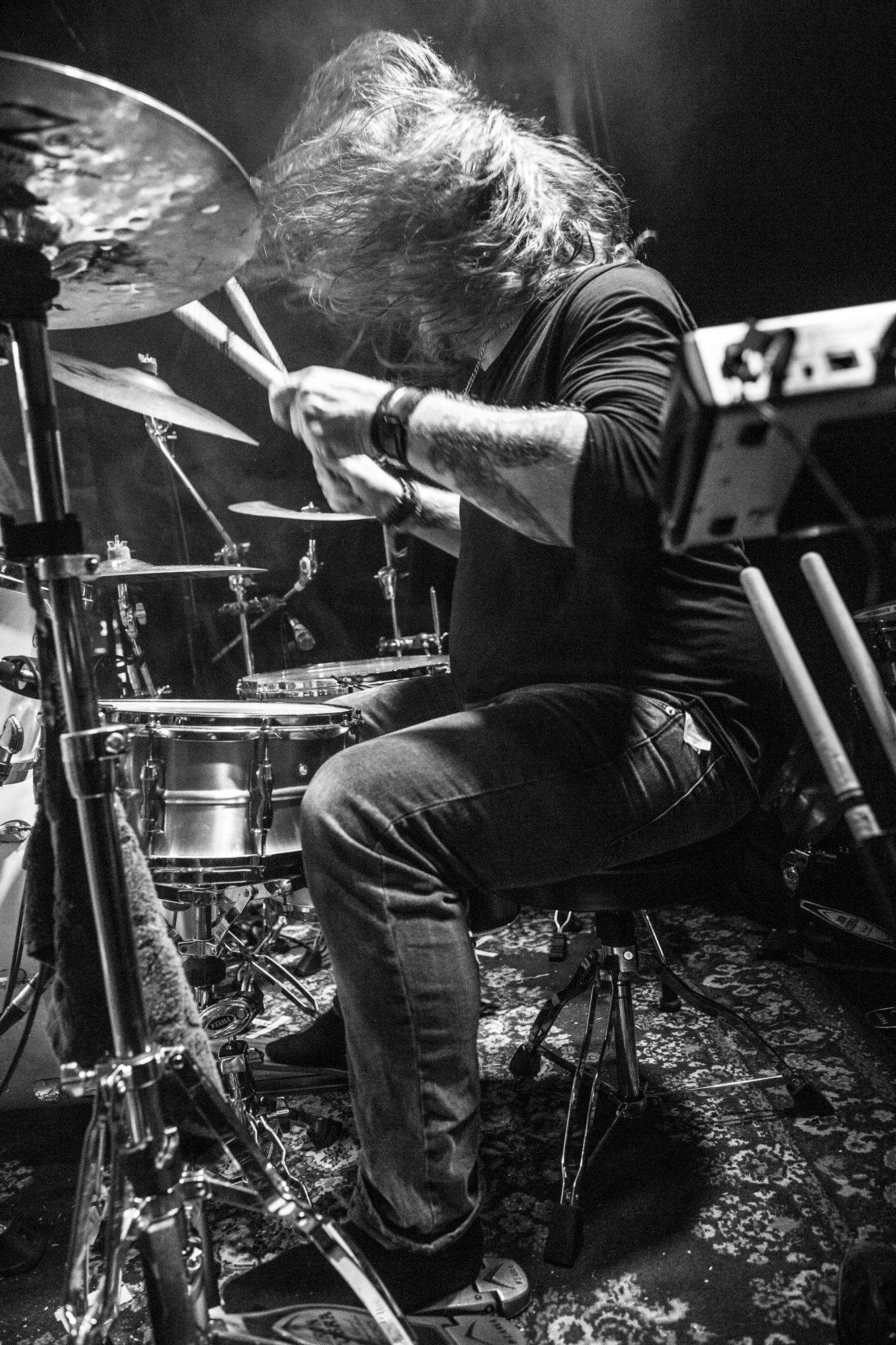 Long-time fans of the bands are in for a treat tonight. The band performs music from all of their albums, excluding their death metal debut. Naturally, Sub Rosa In Æternum receives the most attention, with Hungry Waters and Saturn Coming Down proving themselves as live highlights. The headliners represent the beloved Down Below album too, with the more intricate Nightbound, The Lament and Lacrimosa. The catchy In Remembrance, the heavier Suspiria De Profundis and the riff-tastic Melancholia are brilliant exhibitions of the band’s talents and even get members of the audience dancing away. It’s a shame there aren’t more attendees packing out the venue, but Johannes acknowledges that other gigs are happening tonight. The thinner audience density doesn’t inhibit TRIBULATION‘s performance at all, which is highly spirited and enthralling, especially guitarist Joseph Tholl. Johannes dedicates the song RÃ¥nda to the outstanding director David Lynch, who passed away last month.