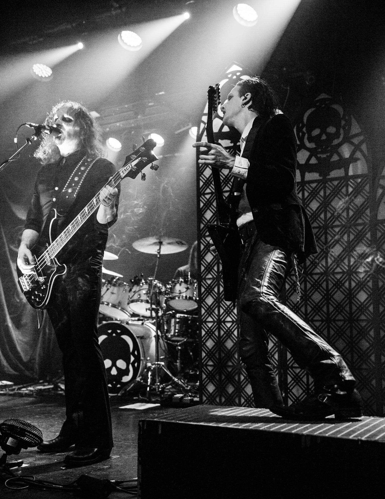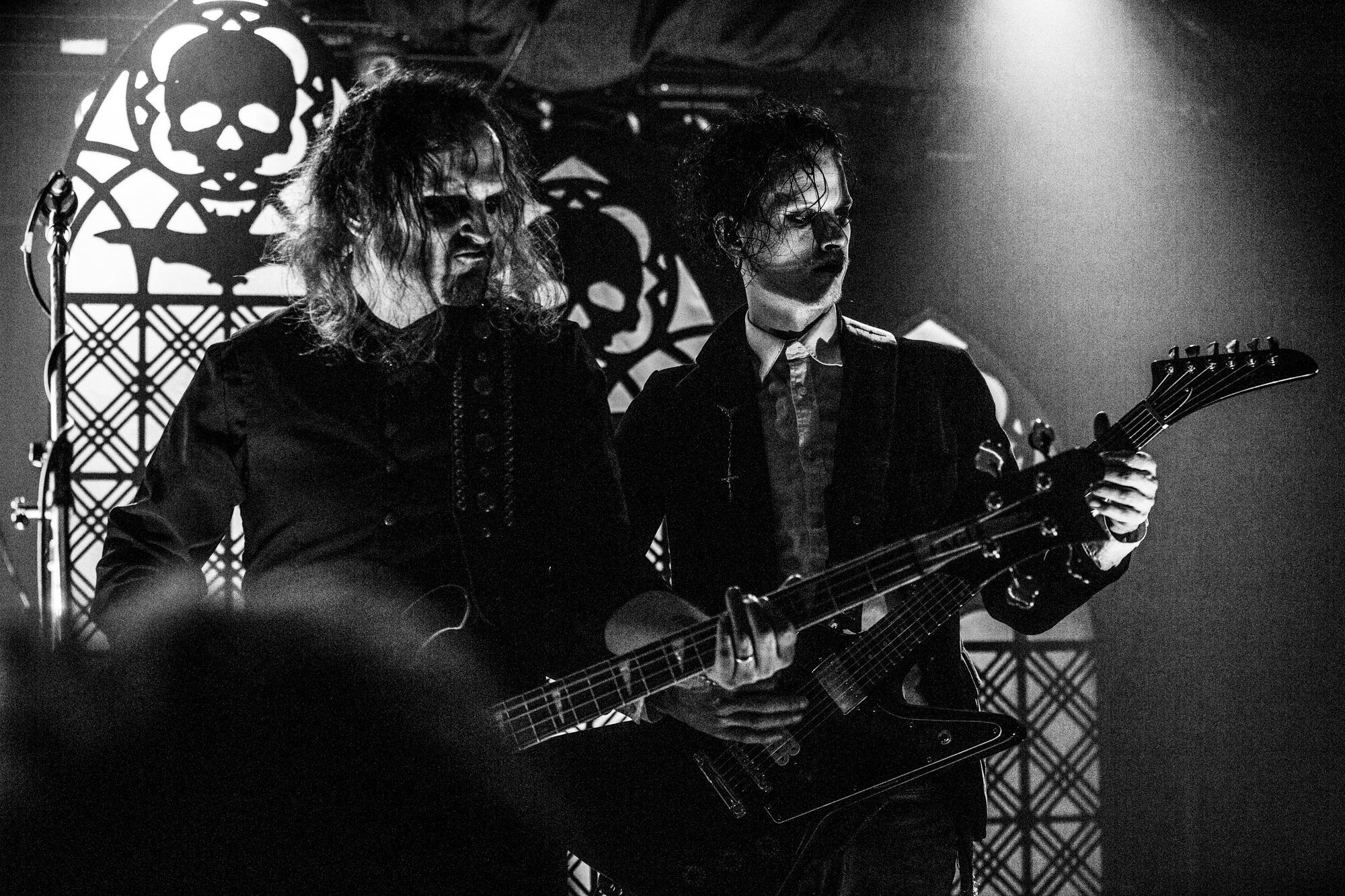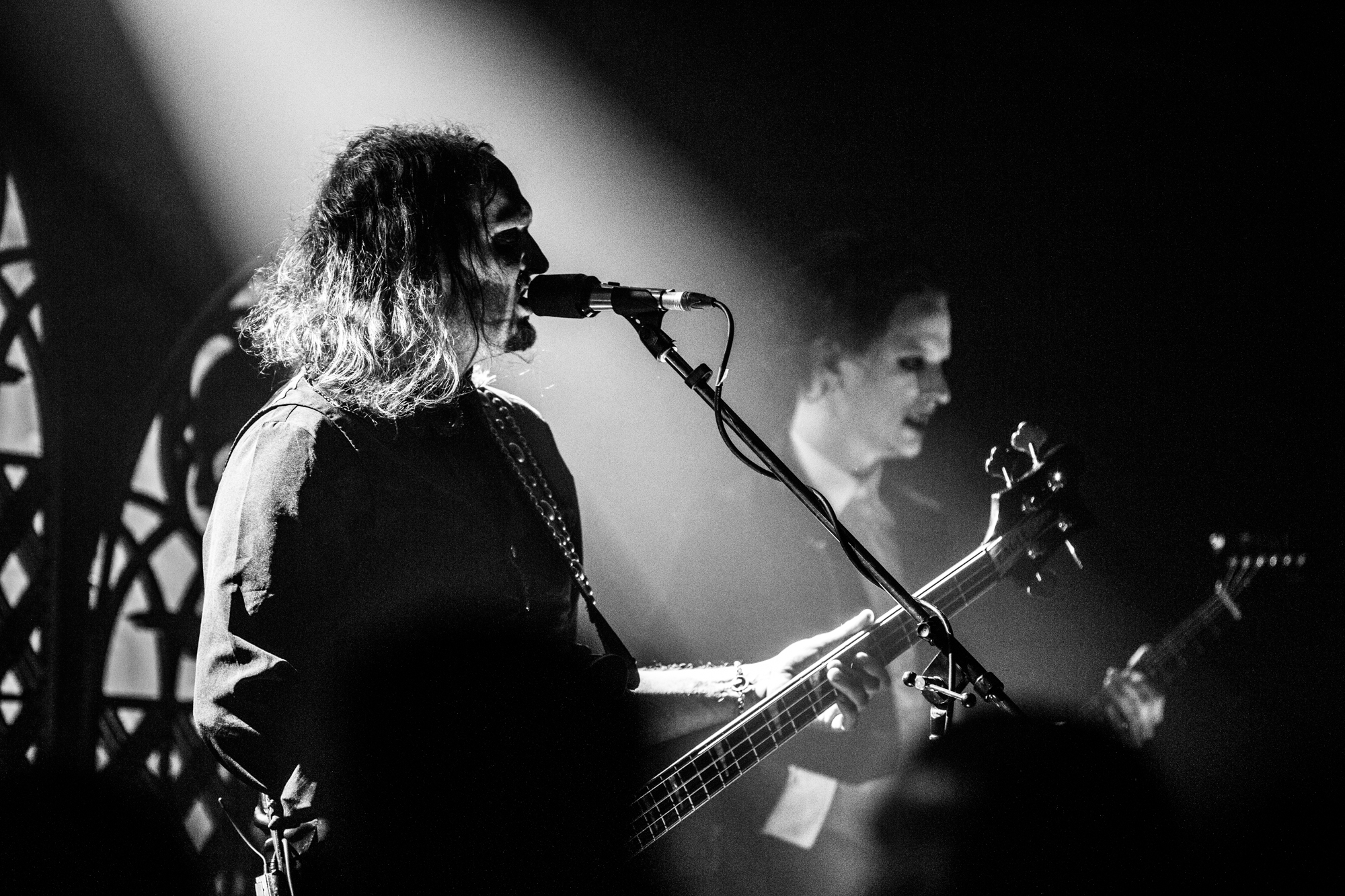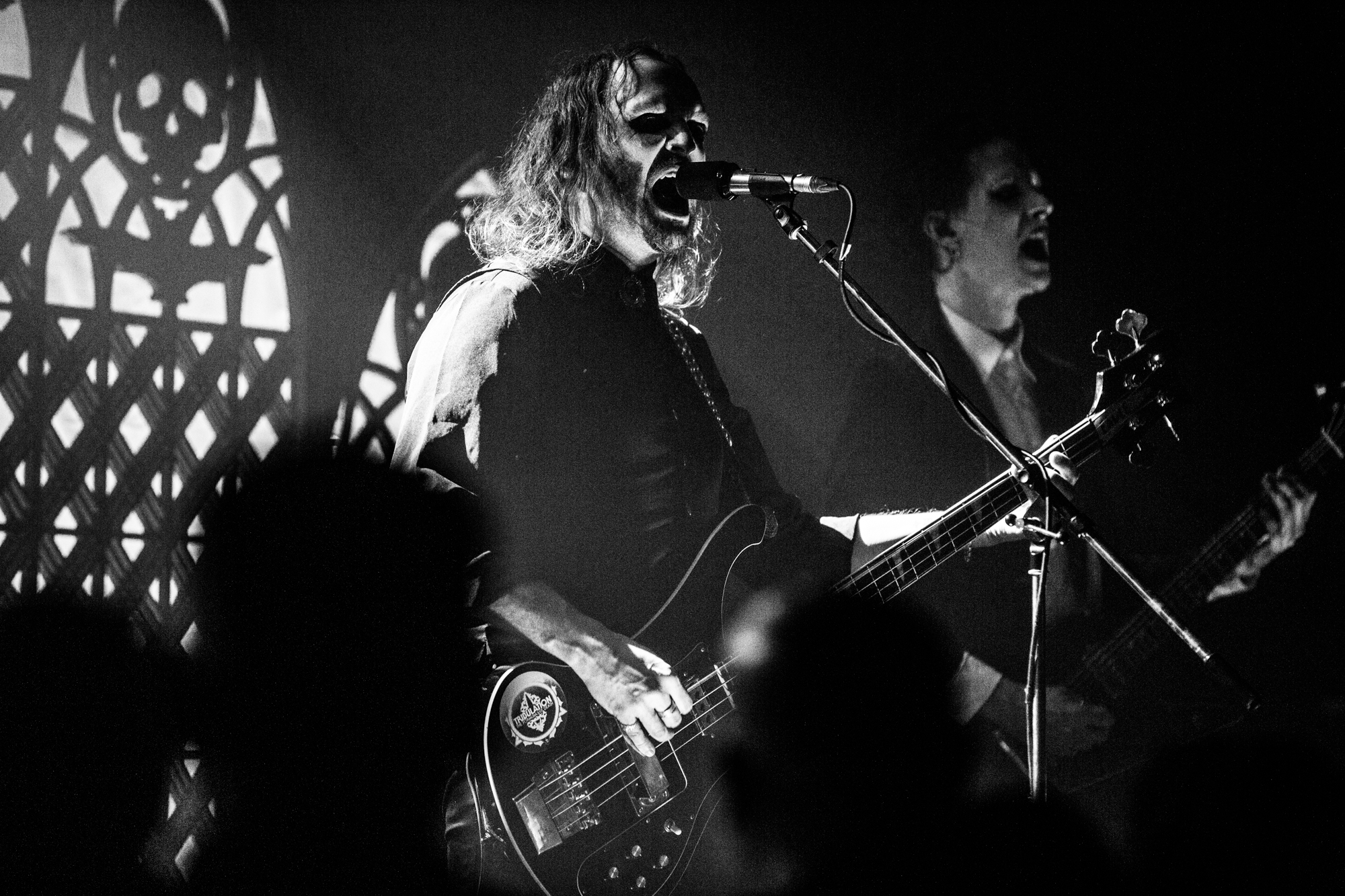The headliners TRIBULATION have some large shoes to fill after their support. During the changeover, the crew assembles kitsch stage props of gothic church window-style designs with a skull and bat, suggesting this is going to be a particularly visible spectacle. The winding introduction of opener The Unrelenting Choir whets the appetite before the quartet launches full steam into Tainted Skies, featuring a modernised take on the gothic richness of THE CULT and FIELDS OF THE NEPHILIM. Last year, the Swedes released their sixth album Sub Rosa In Æternum, another decadent goth rock affair, yet with the shiny new inclusion of MOONSPELL-like clean vocals, in addition to Johannes Andersson‘s death metal growls that set TRIBULATION apart from other musicians occupying the goth rock revival.
