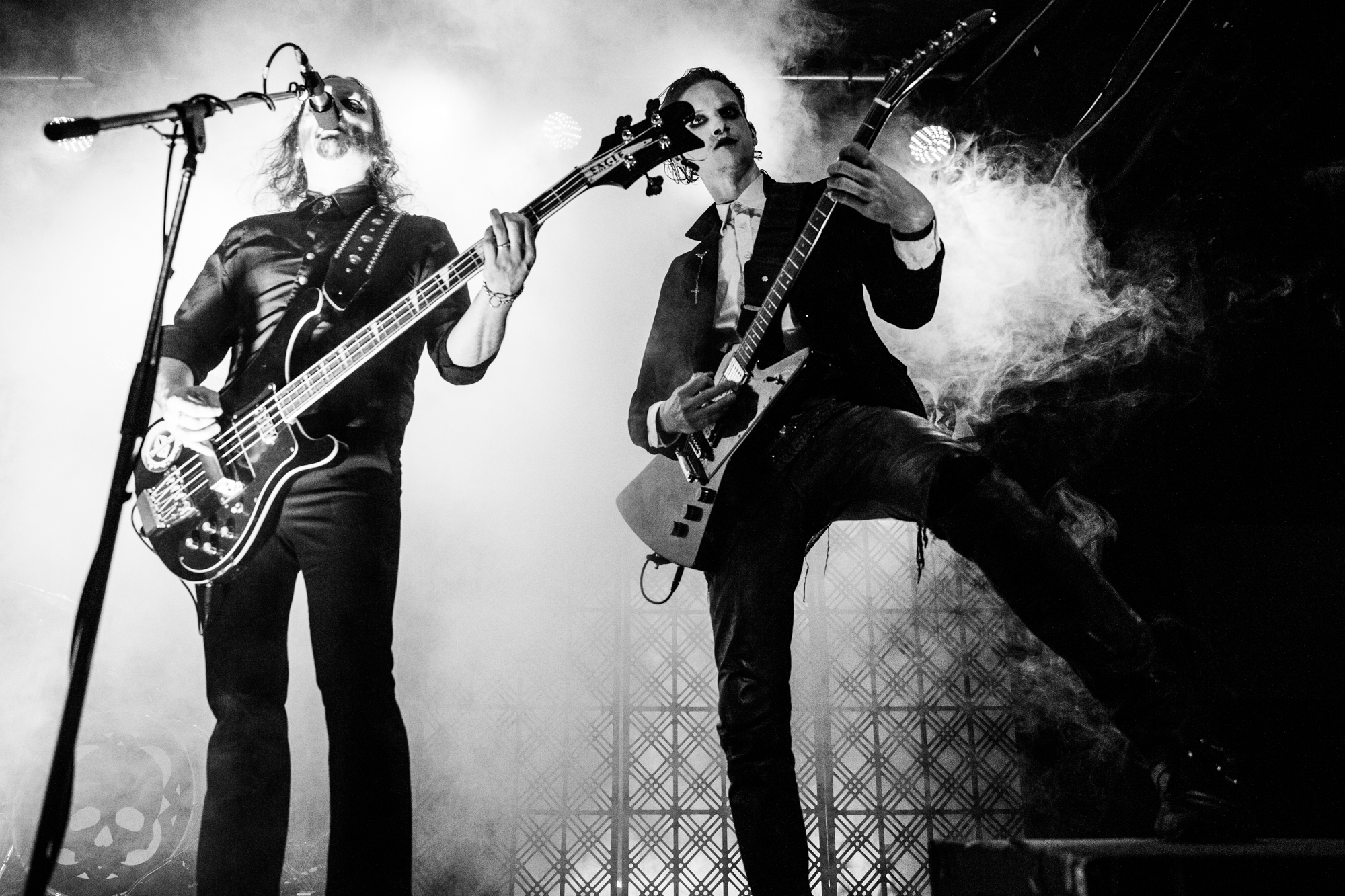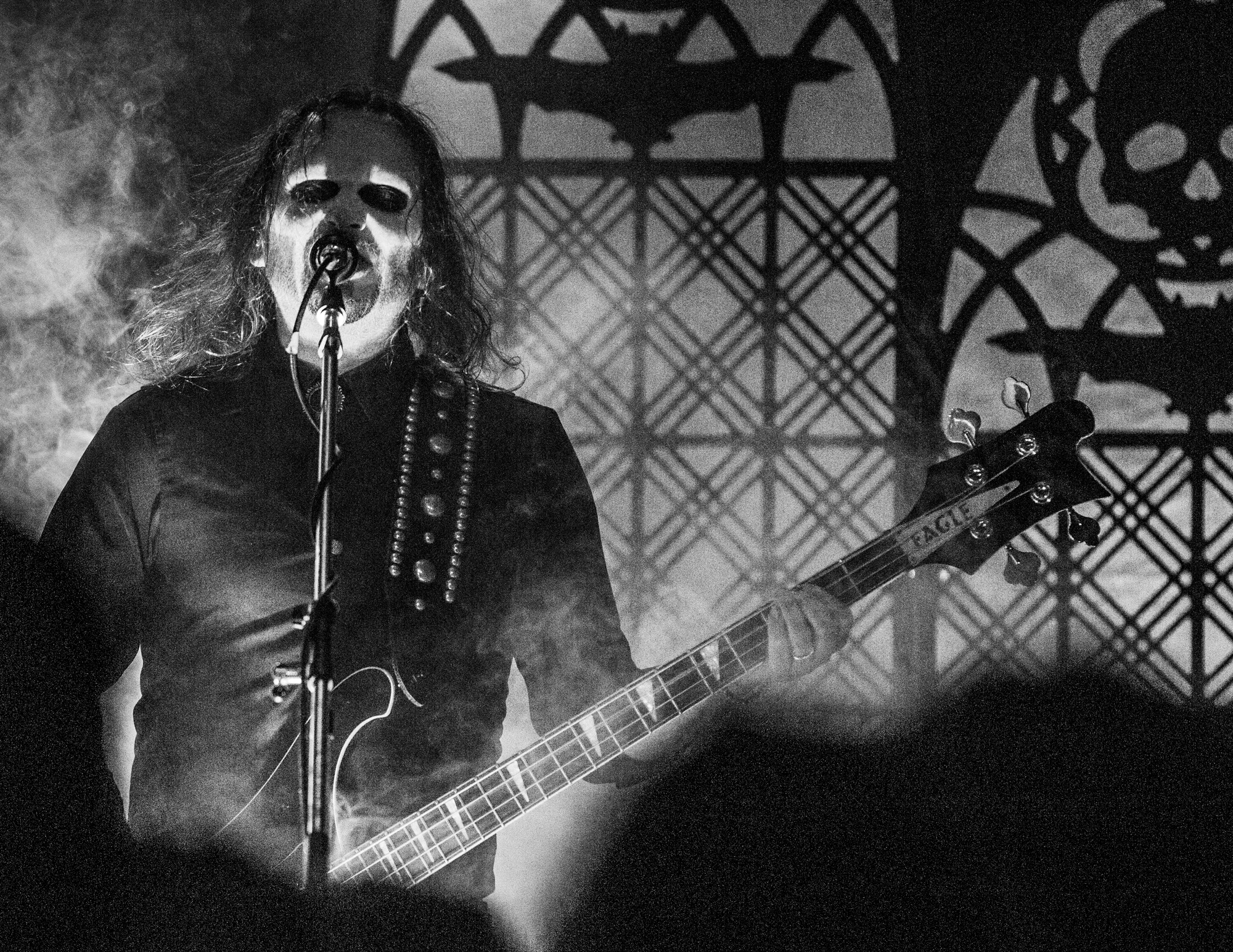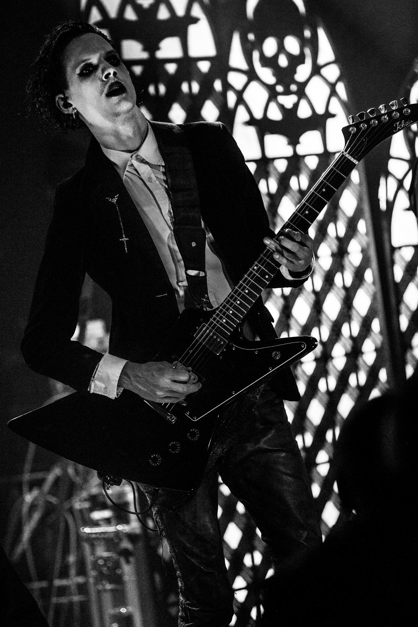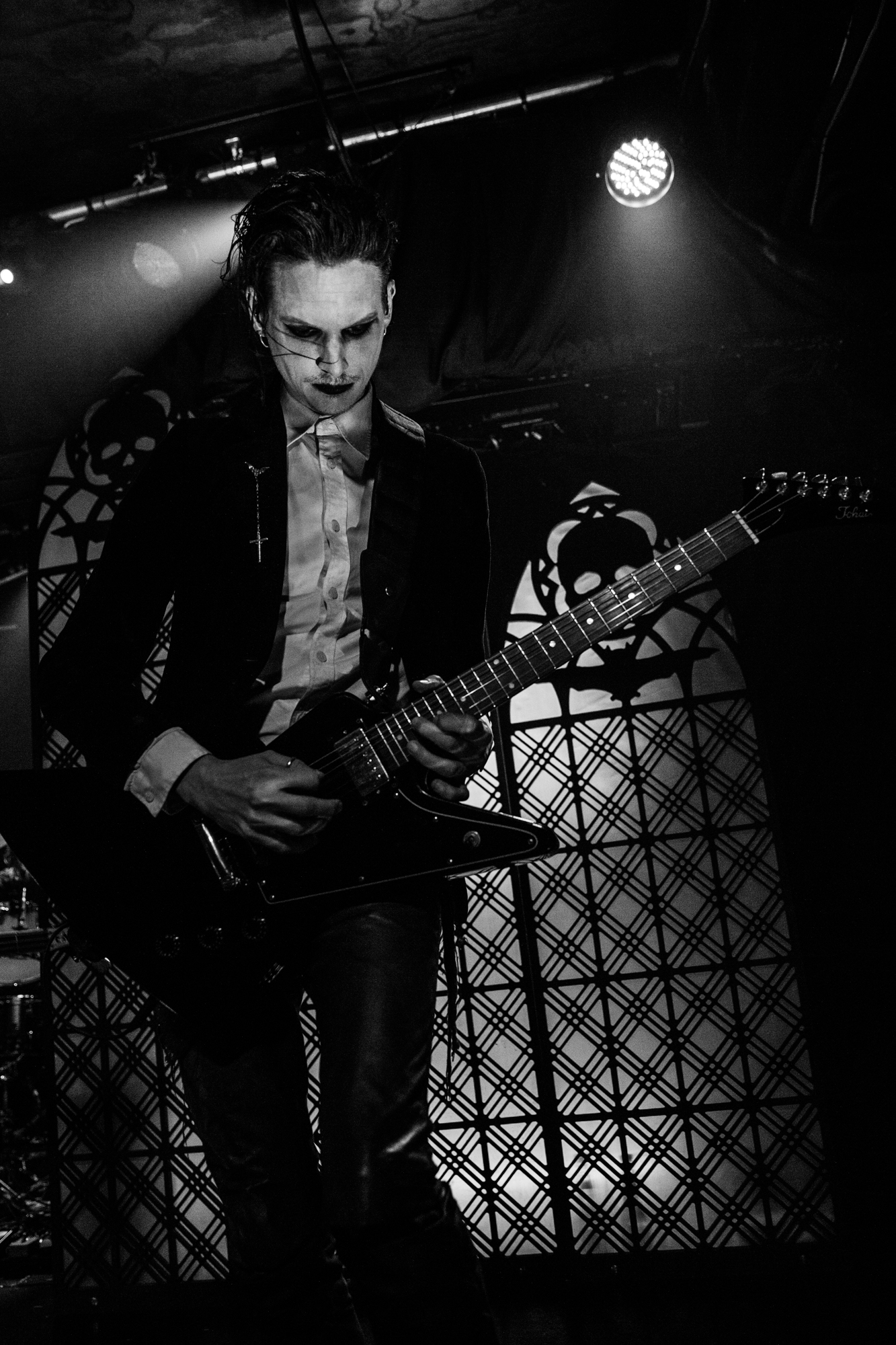 The headliners TRIBULATION have some large shoes to fill after their support. During the changeover, the crew assembles kitsch stage props of gothic church window-style designs with a skull and bat, suggesting this is going to be a particularly visible spectacle. The winding introduction of opener The Unrelenting Choir whets the appetite before the quartet launches full steam into Tainted Skies, featuring a modernised take on the gothic richness of THE CULT and FIELDS OF THE NEPHILIM. Last year, the Swedes released their sixth album Sub Rosa In Æternum, another decadent goth rock affair, yet with the shiny new inclusion of MOONSPELL-like clean vocals, in addition to Johannes Andersson‘s death metal growls that set TRIBULATION apart from other musicians occupying the goth rock revival.