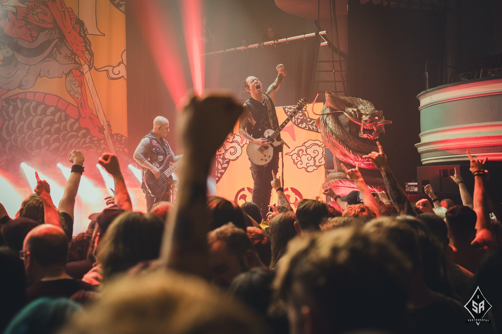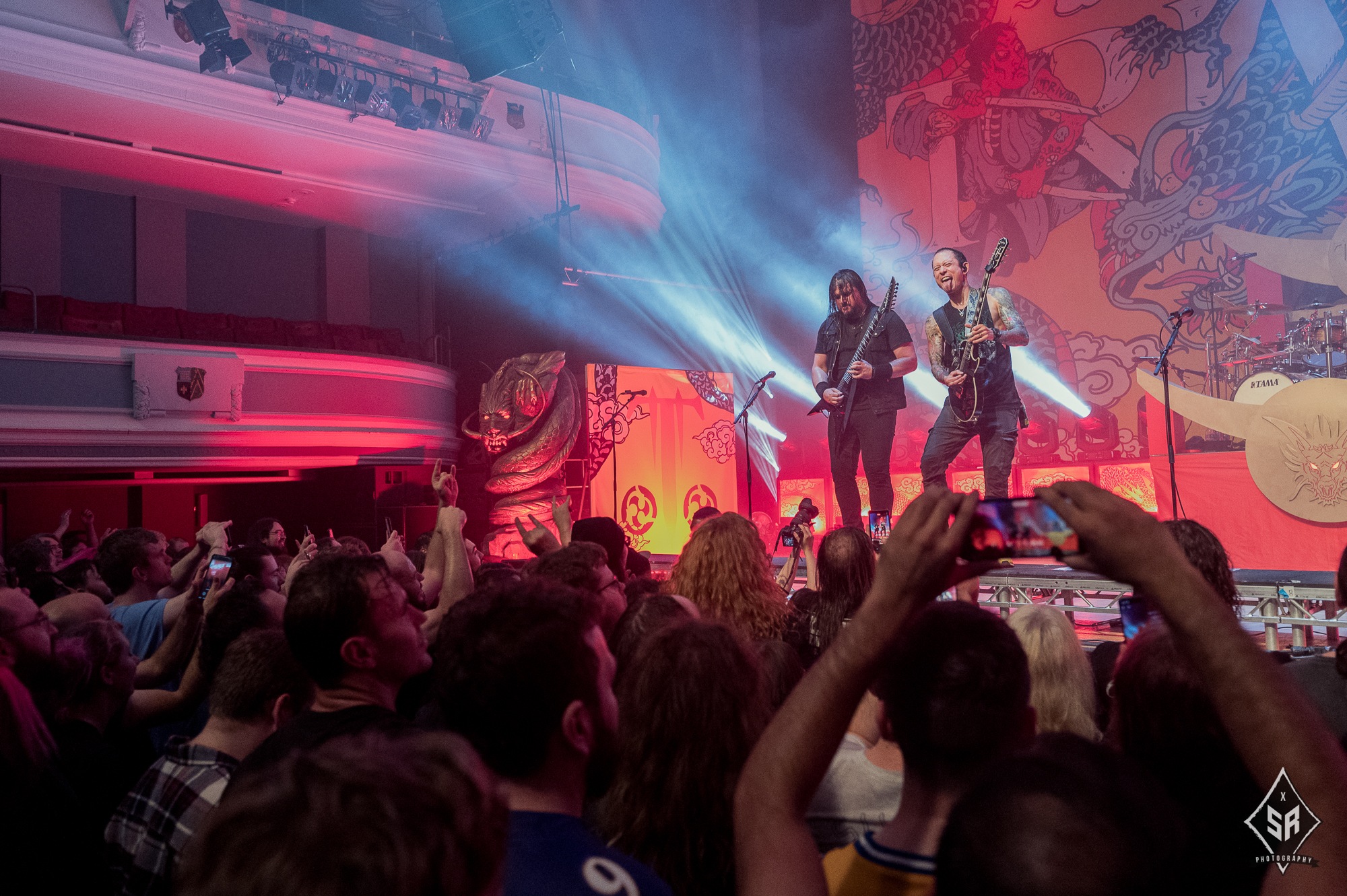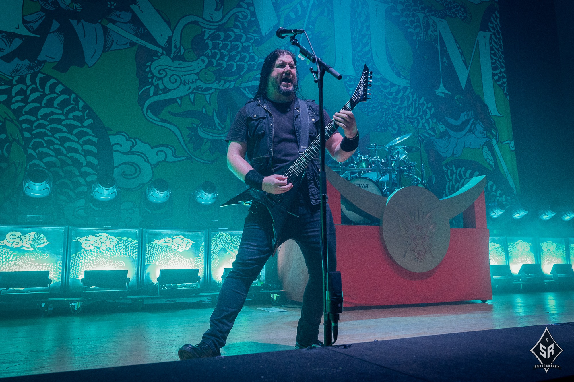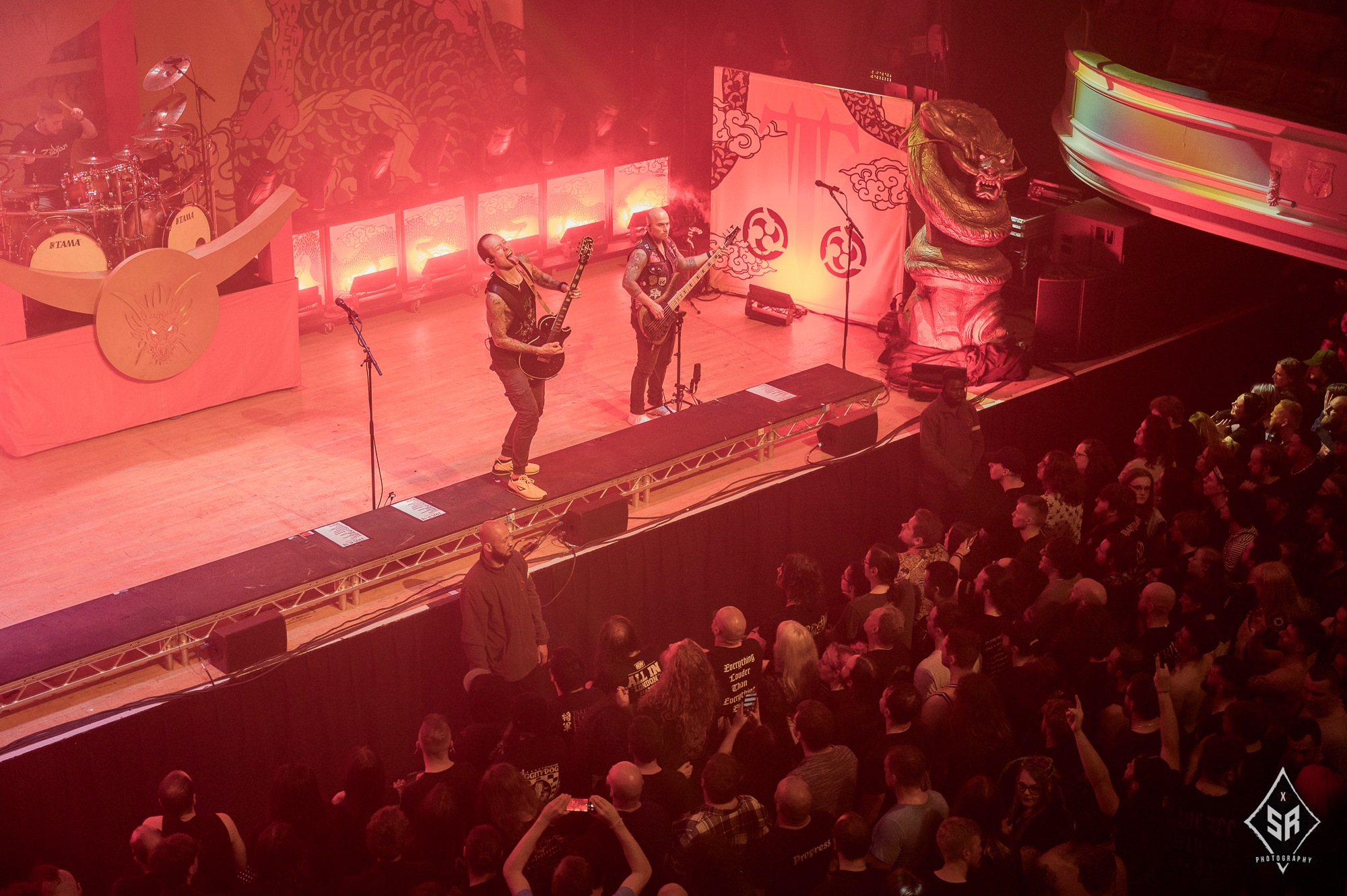 Down From The Sky rewinds the clock to the days of Shogun as the thundering call of “The vampires feed on the wars of mankind!” has the Stoke legions screaming back the words to Heafy, the opening drum salvo of Pull Harder On The Strings Of Your Martyr and its timeless chorus has the crowd feeling a kid on Christmas morning and Catastrophist‘s chorus simply soars like a phoenix.