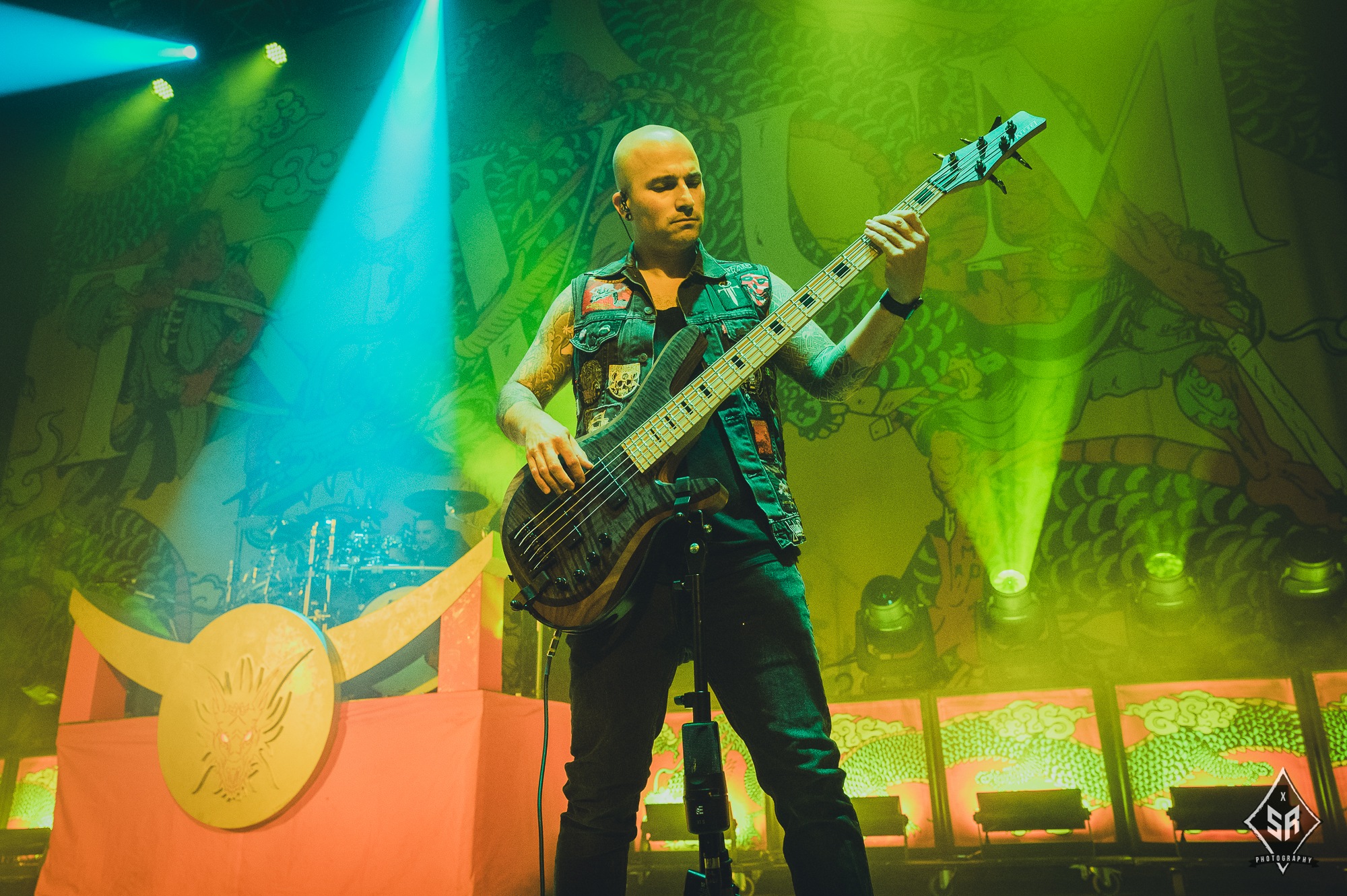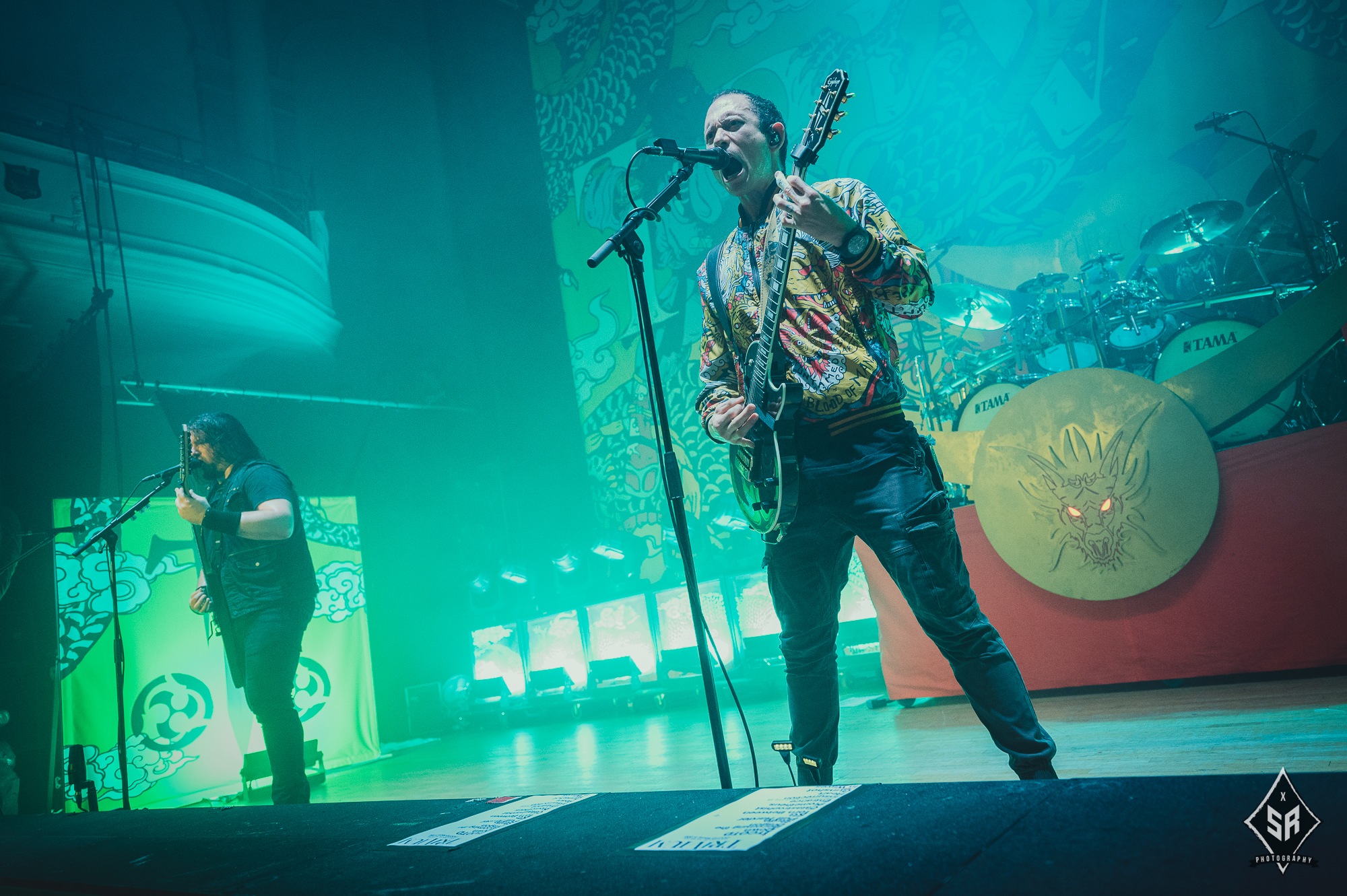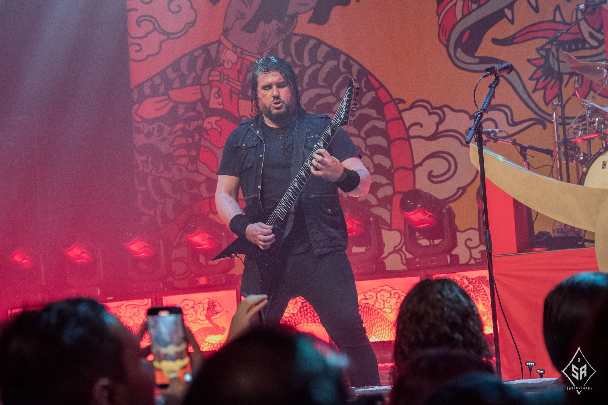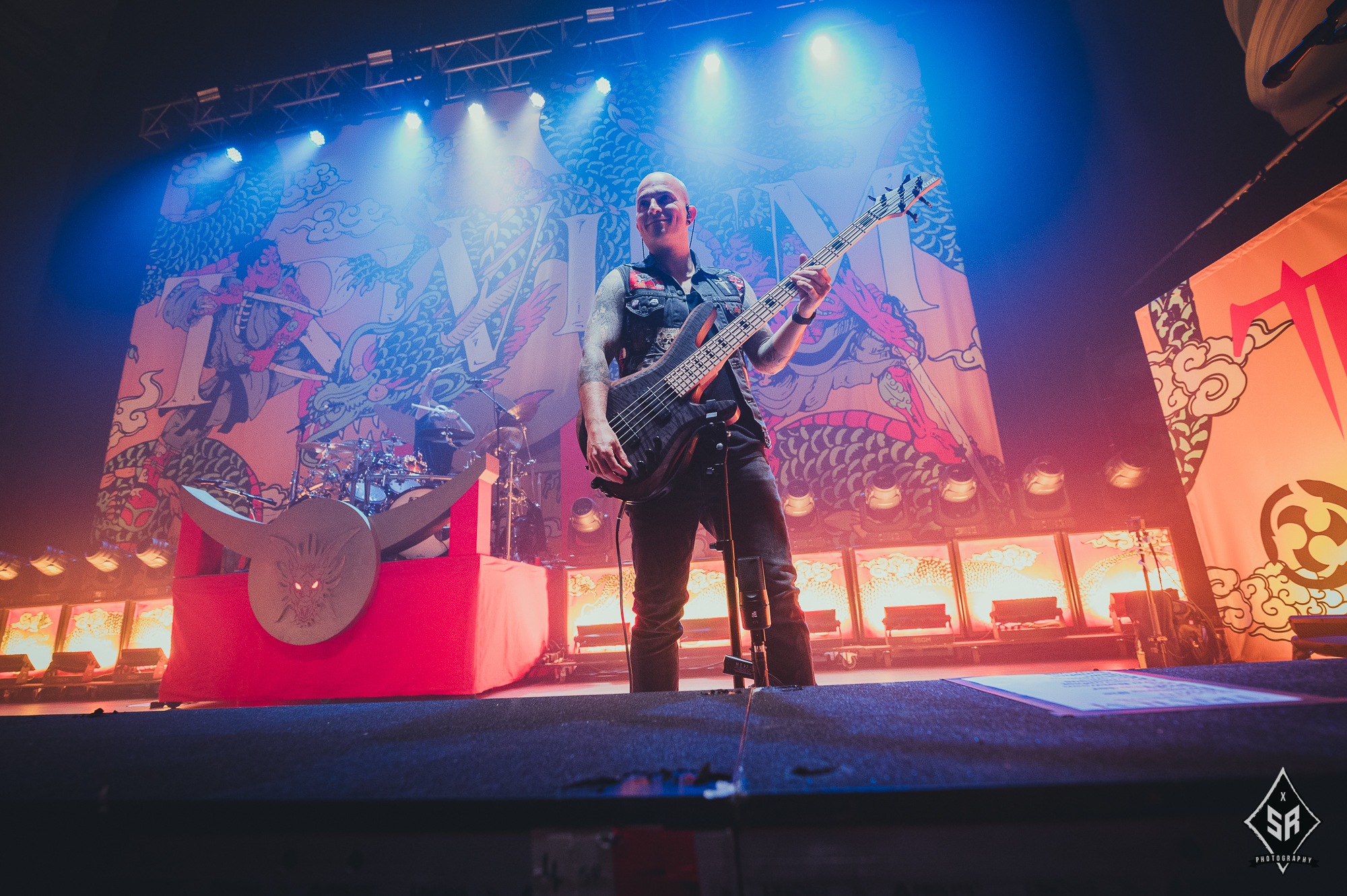 Down From The Sky rewinds the clock to the days of Shogun as the thundering call of “The vampires feed on the wars of mankind!” has the Stoke legions screaming back the words to Heafy, the opening drum salvo of Pull Harder On The Strings Of Your Martyr and its timeless chorus has the crowd feeling a kid on Christmas morning and Catastrophist‘s chorus simply soars like a phoenix.