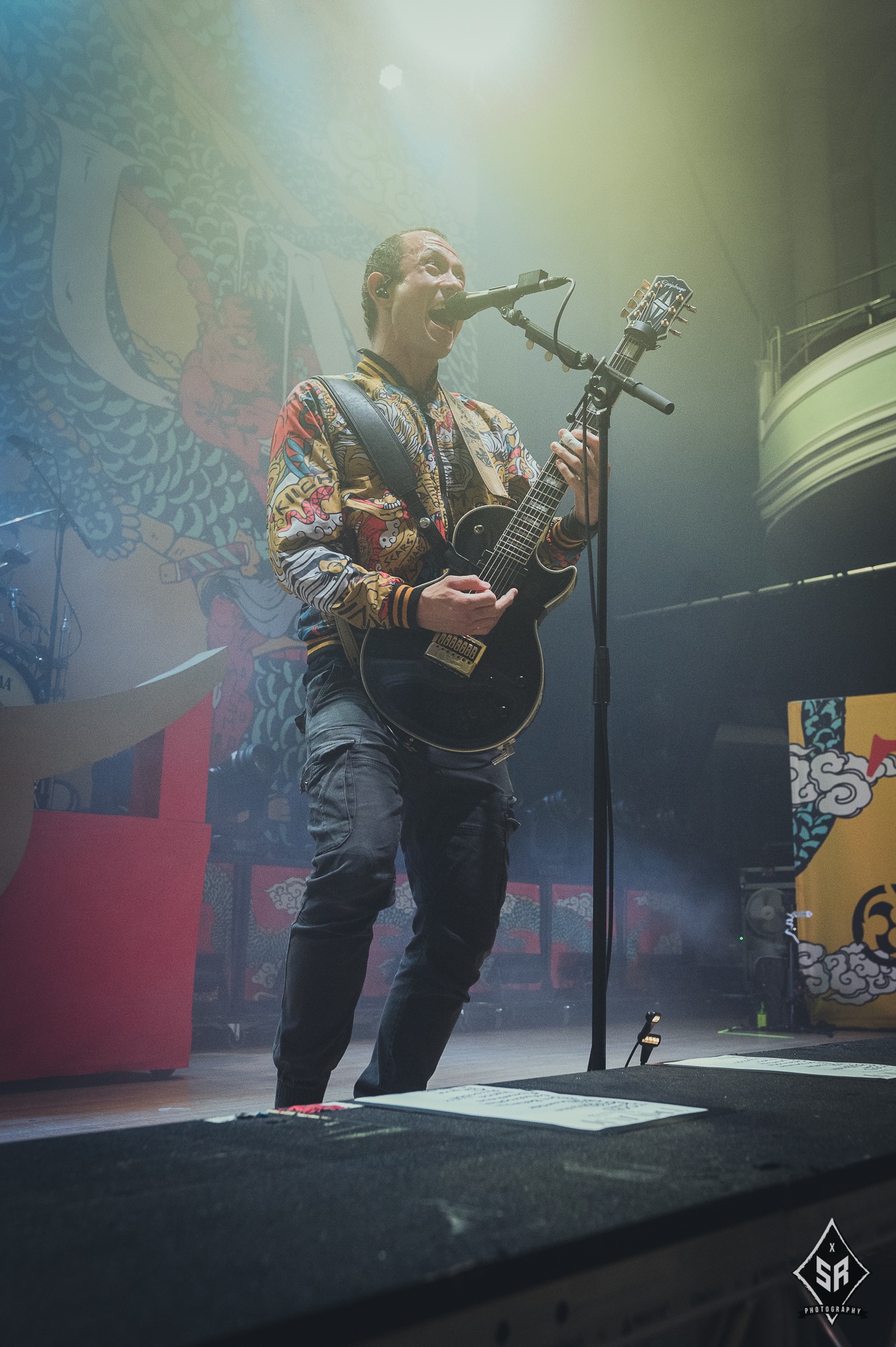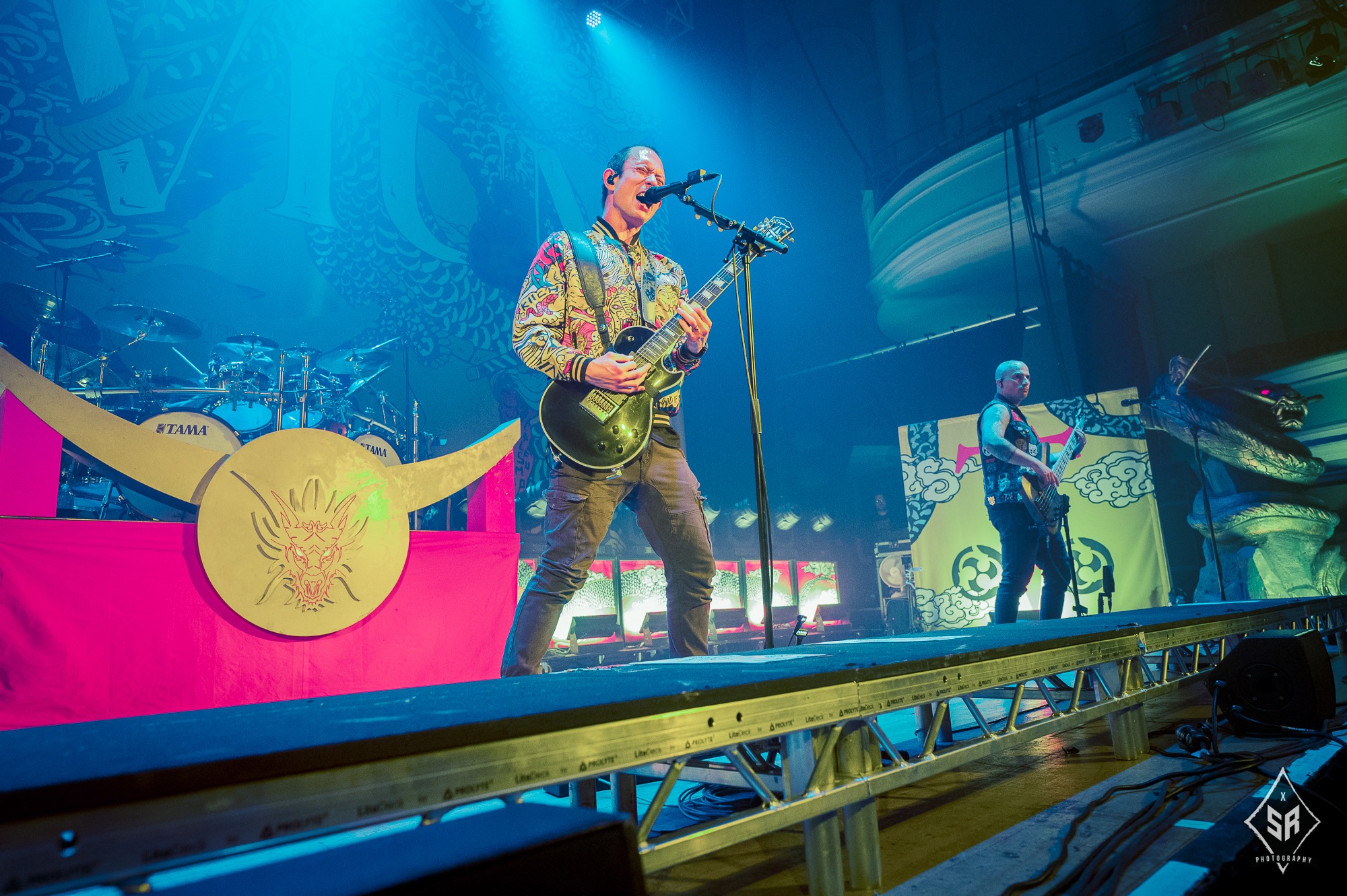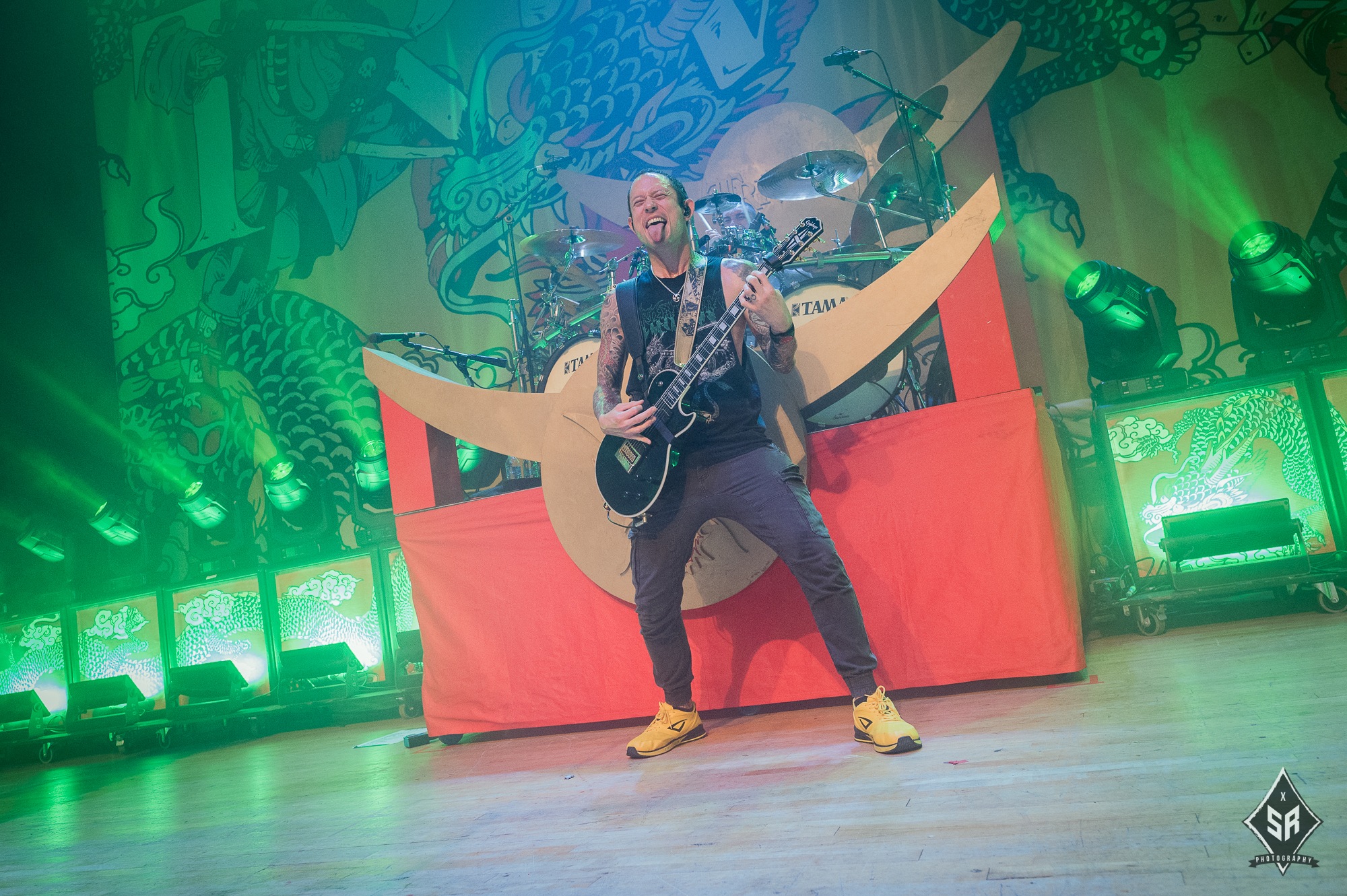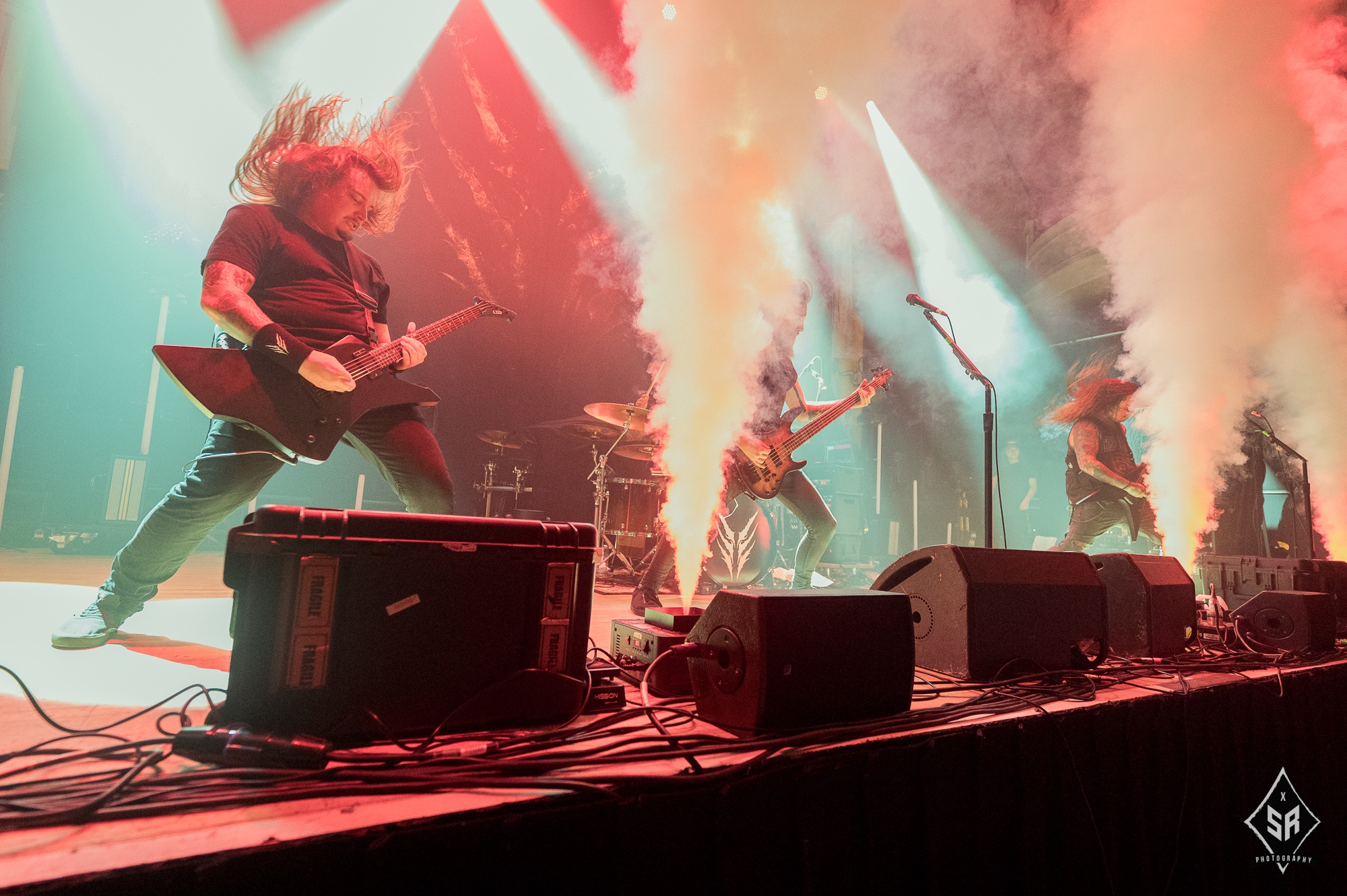 Down From The Sky rewinds the clock to the days of Shogun as the thundering call of “The vampires feed on the wars of mankind!” has the Stoke legions screaming back the words to Heafy, the opening drum salvo of Pull Harder On The Strings Of Your Martyr and its timeless chorus has the crowd feeling a kid on Christmas morning and Catastrophist‘s chorus simply soars like a phoenix.