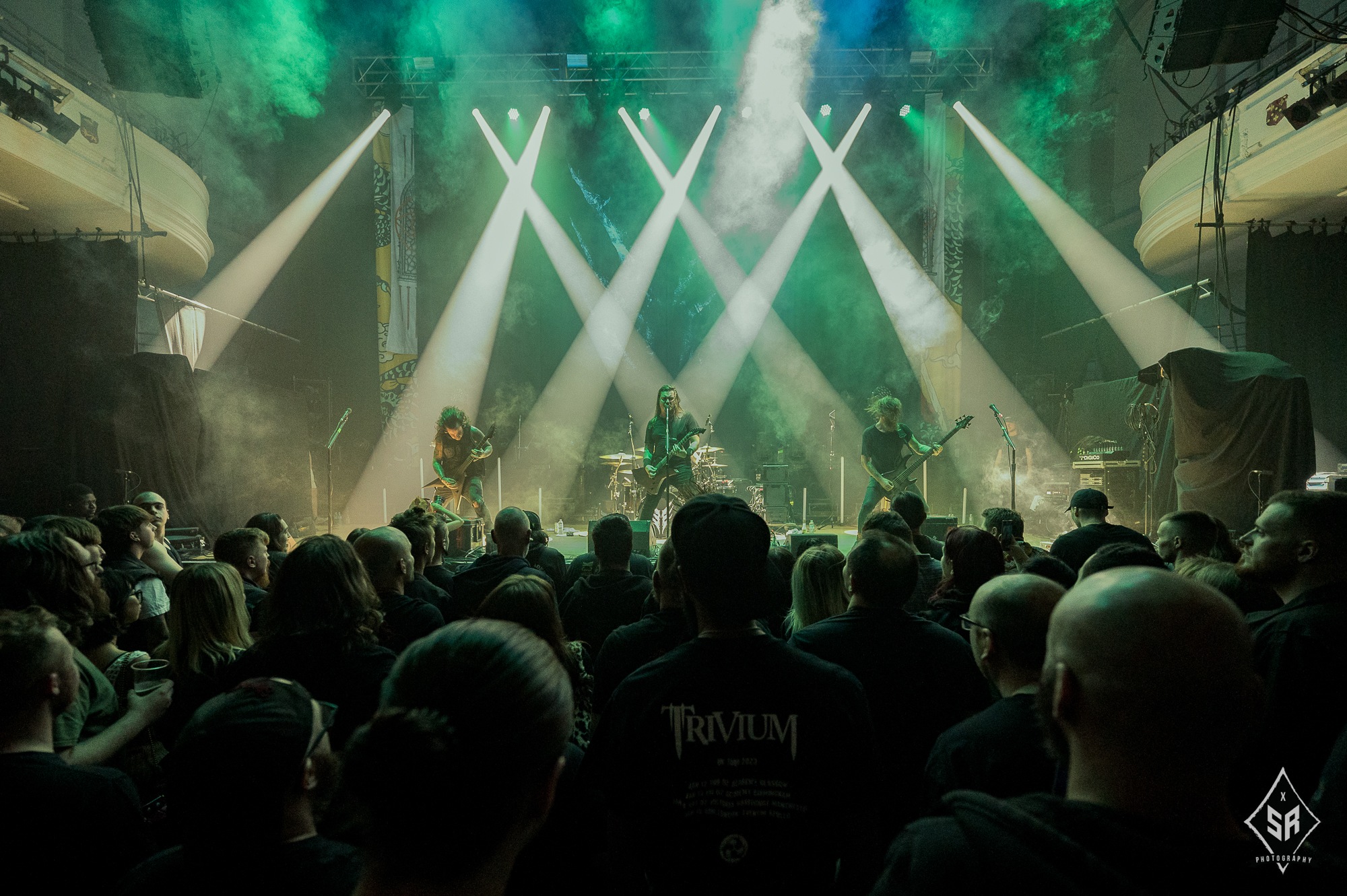 It’s no secret that TRIVIUM have special affection for our small island. Since erupting onto the scene with 2005’s Ascendancy, it was indeed the UK that really helped the Floridians establish themselves as one of the most exciting names in heavy music. Flash forward to 2023 and that affection is just as strong. Seven months after we saw TRIVIUM blow our minds in large venues across the land, including a storming set at Manchester’s O2 Victoria Warehouse, the band are on UK shores once more for a much more intimate affair. And at the historic Victoria Hall in Stoke-on-Trent, heavy music locals are ecstatic to have a band of this stature grace their home town.