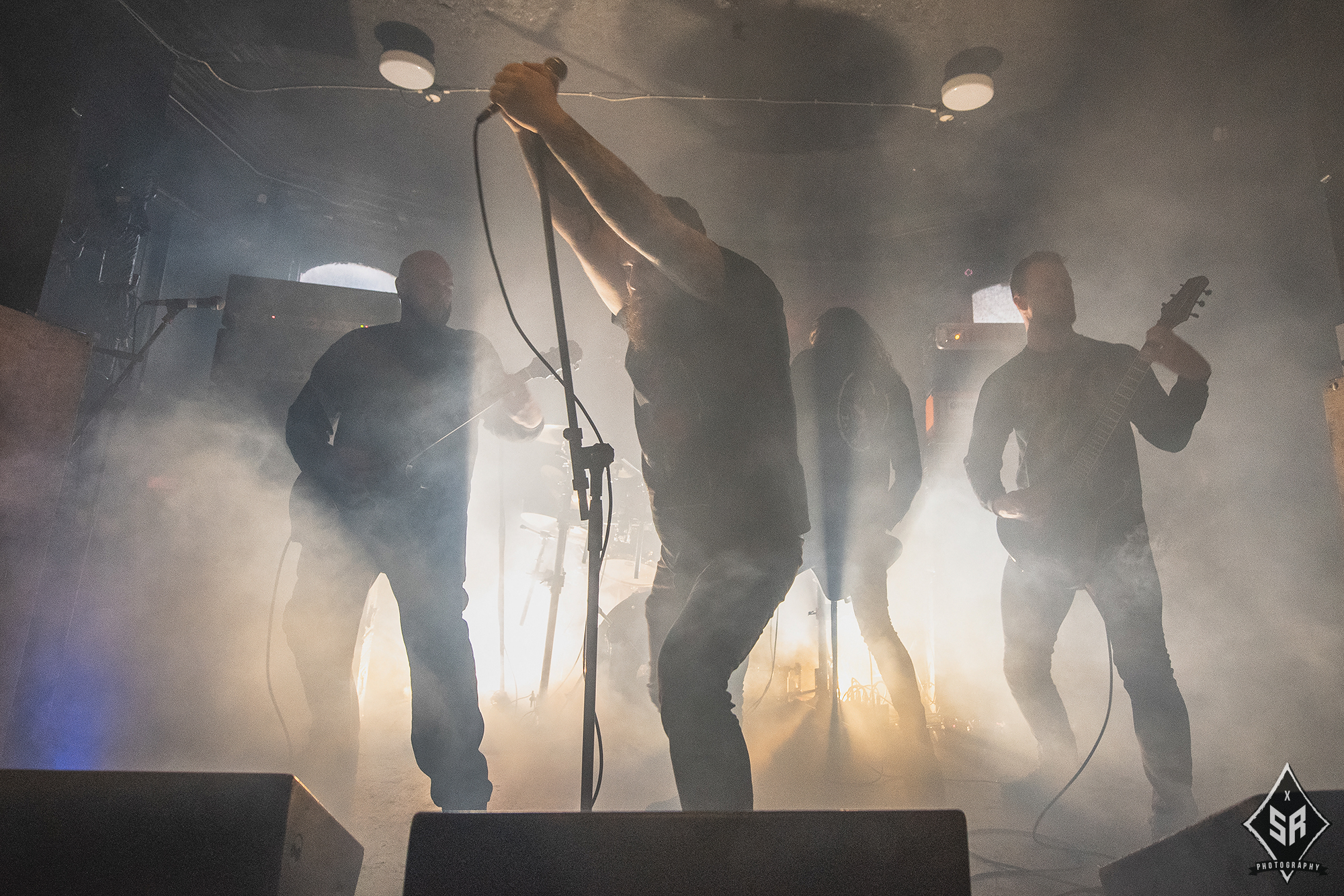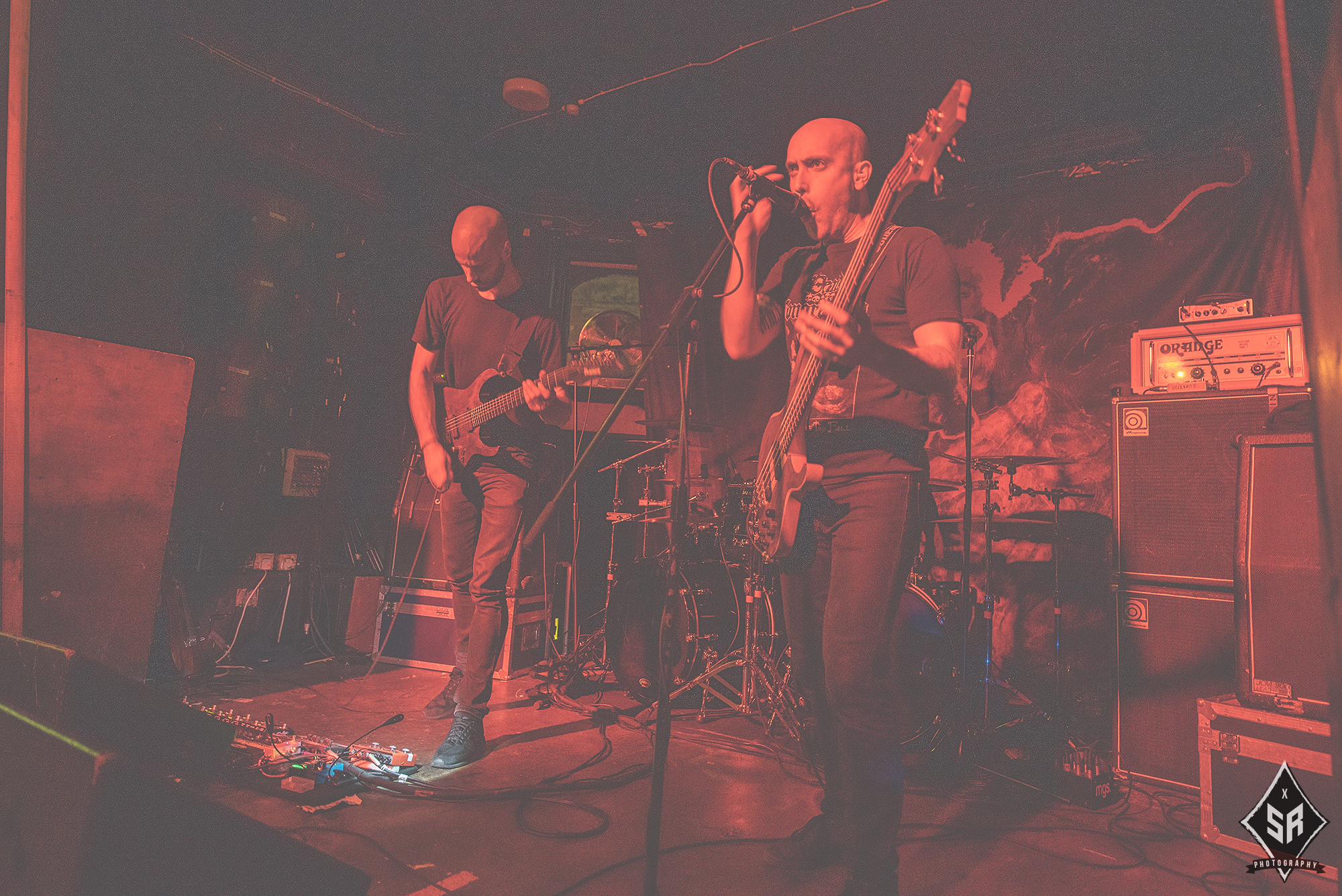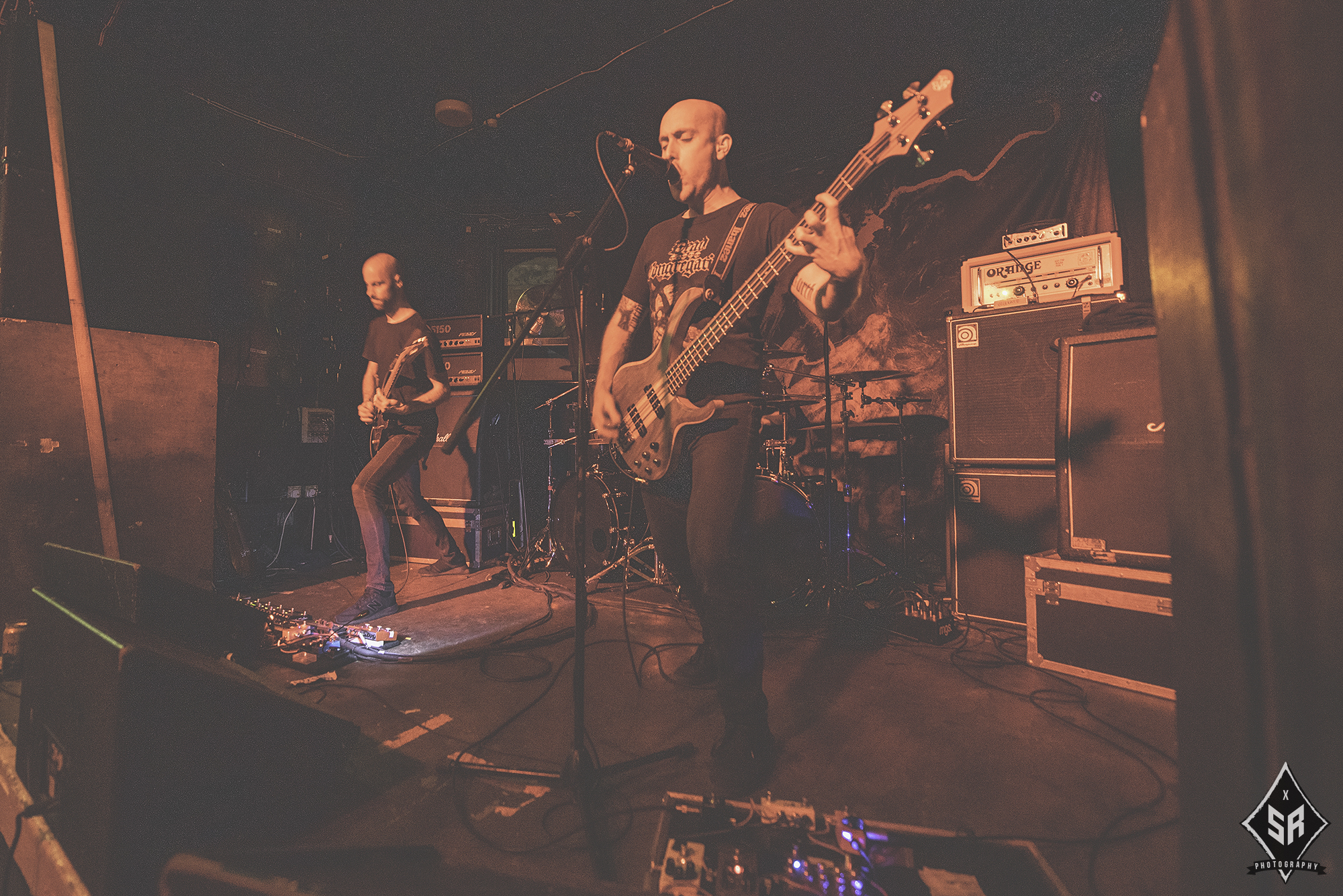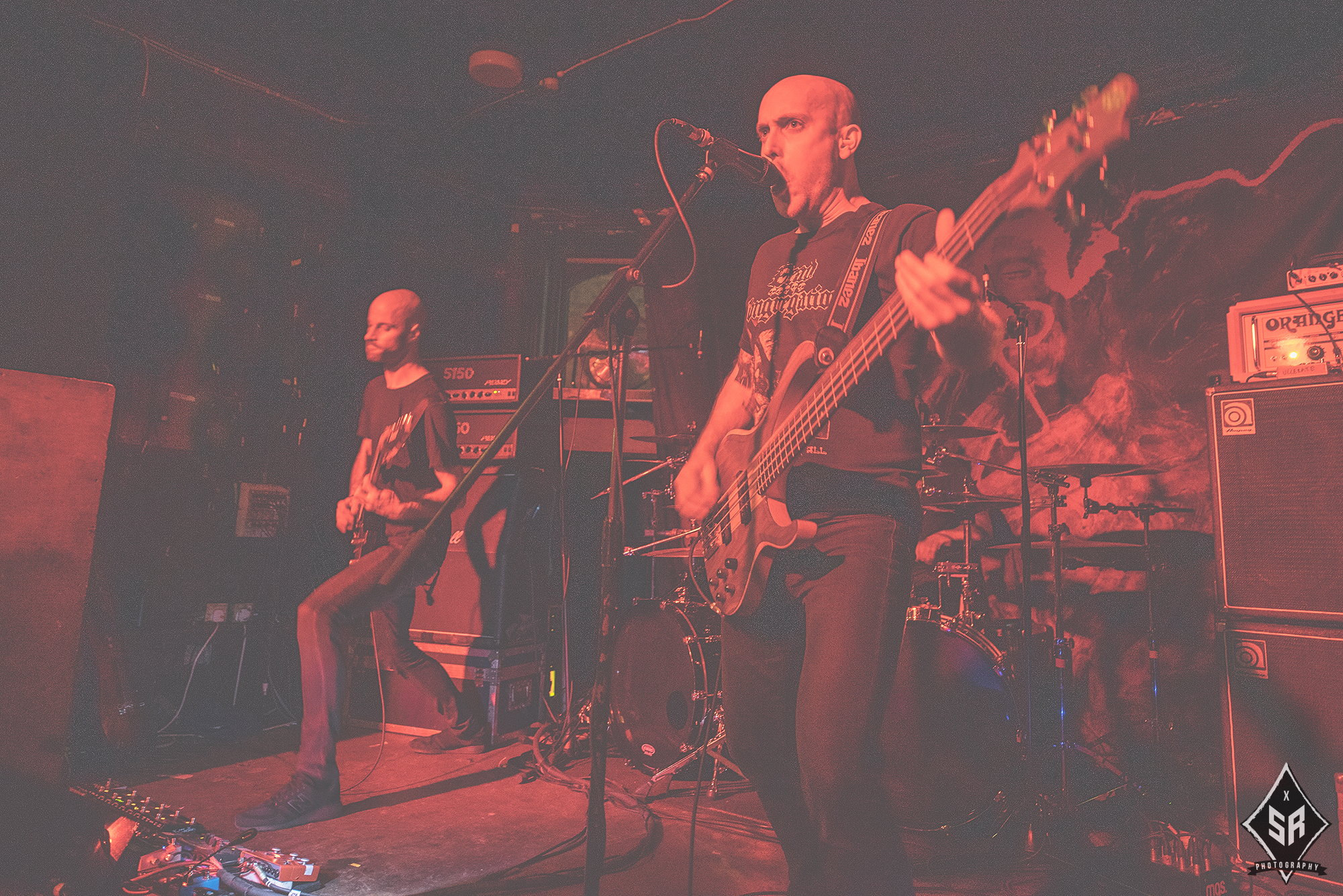 The weather outside may be pleasant but DEUS VERMIN are hell-bent on making everyone feel the polar opposite. The Leeds-based quartet proceed to dispatch a cacophonous wall of sound that is as explosive as it is transfixing. Guitarists LM and CG are relentless in their delivery of razor-sharp riffing that continuously pummel the ears, GH puts in a hell of a shift behind the drums, and AS‘s deep bass tones adds extra weight to the band’s already mighty sonic racket. At the heart of their twisted musical maelstrom, AL cuts an imposing figure on stage. His body twists and turns with every devilish riff and his delivering of ear-splitting shrieks and rumbling lows sound clear as day in the mix. Unfortunately, the abrupt end of the set as a result of the fire alarm going off, thanks to an abundance of smoke to heighten the atmosphere, takes the wind out of the band’s sails, but this but only puts a blemish on a bold and intimidating opening performance.