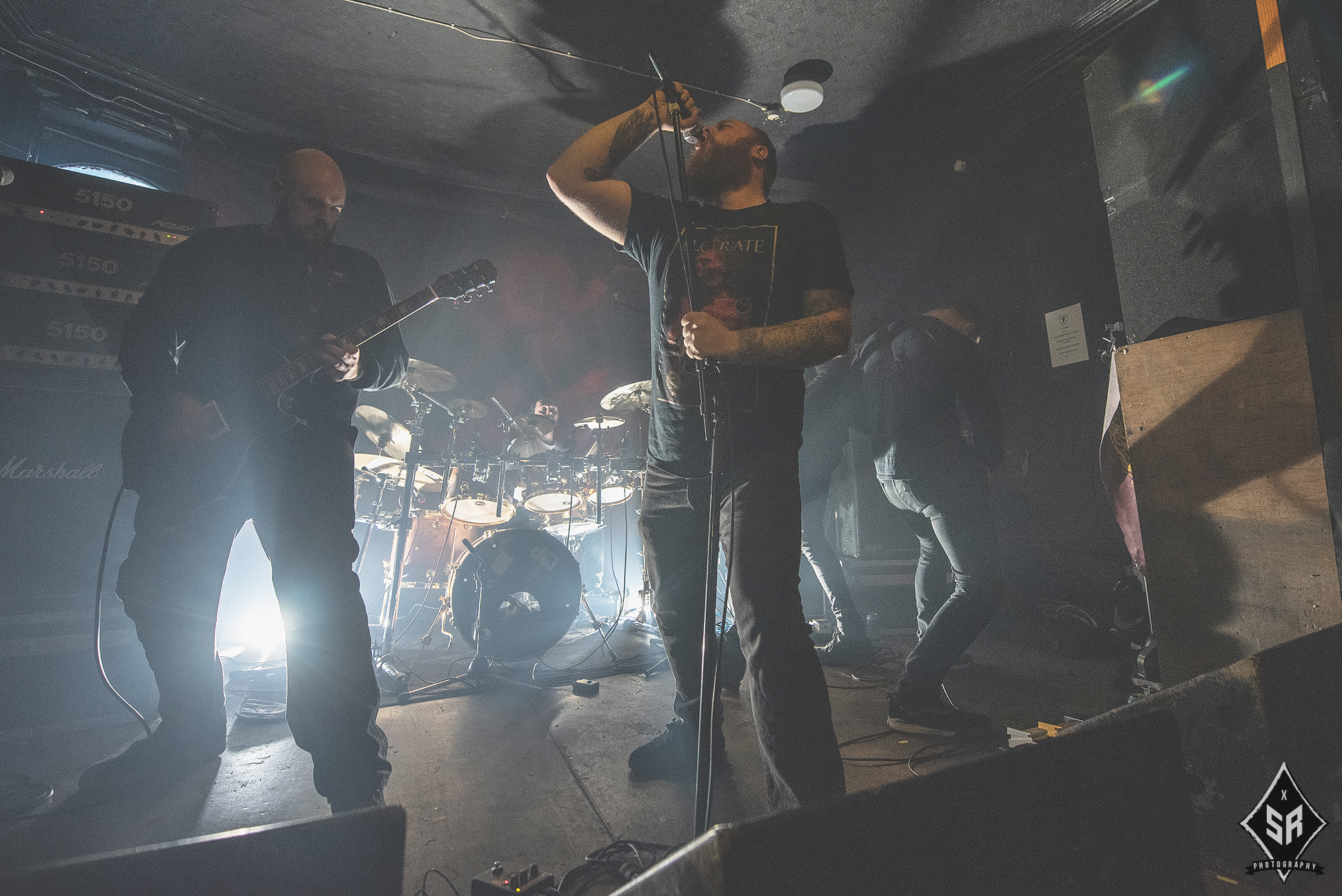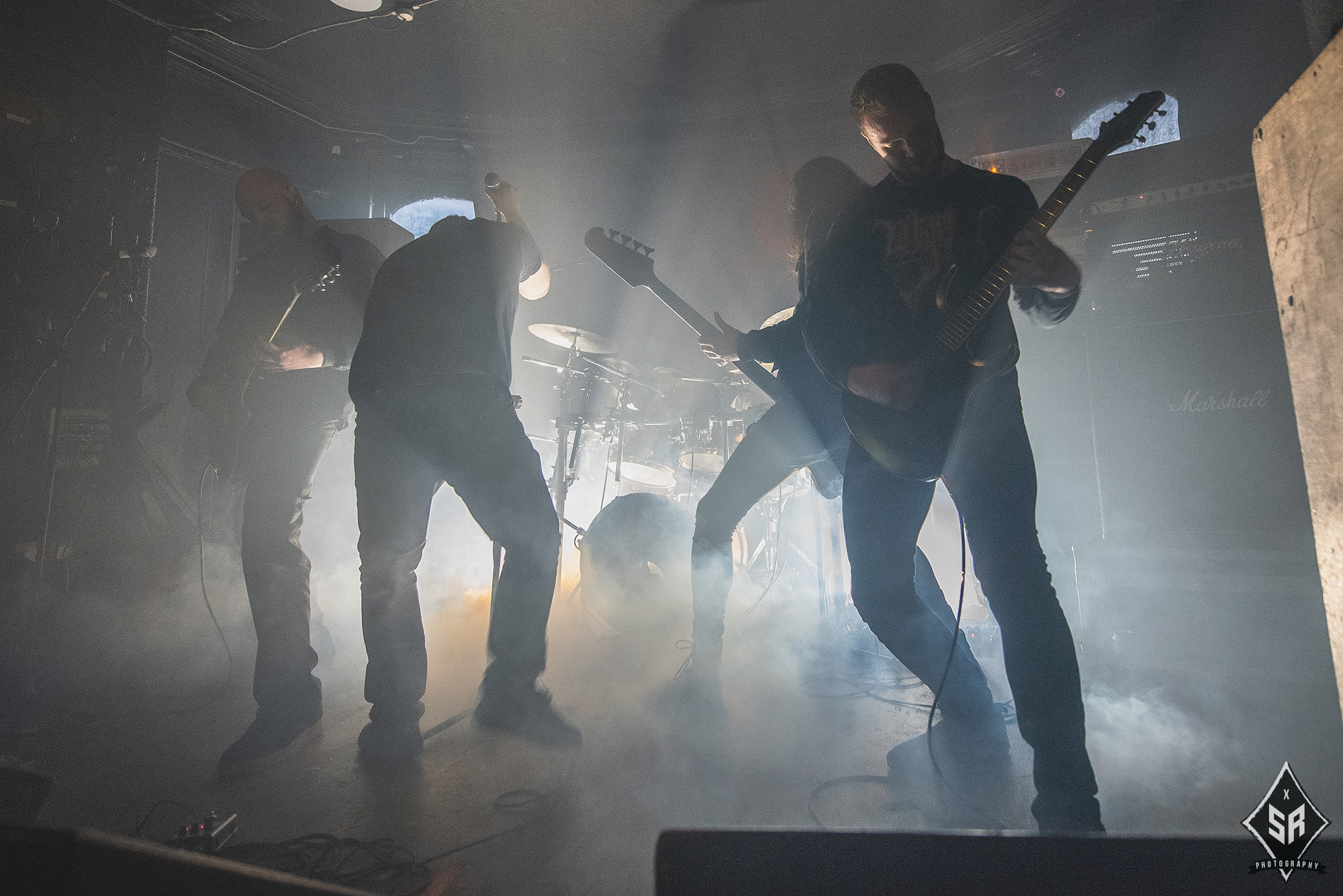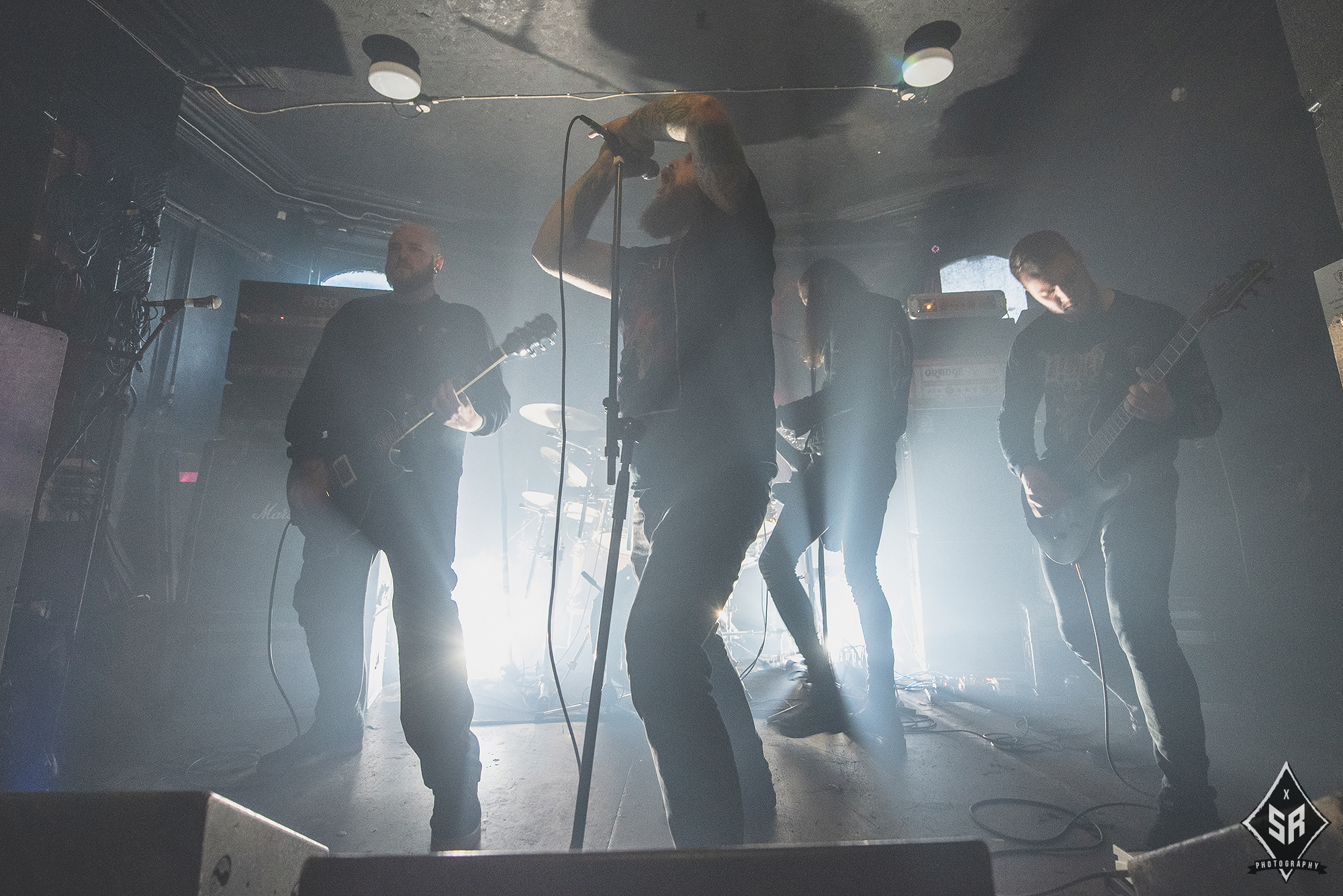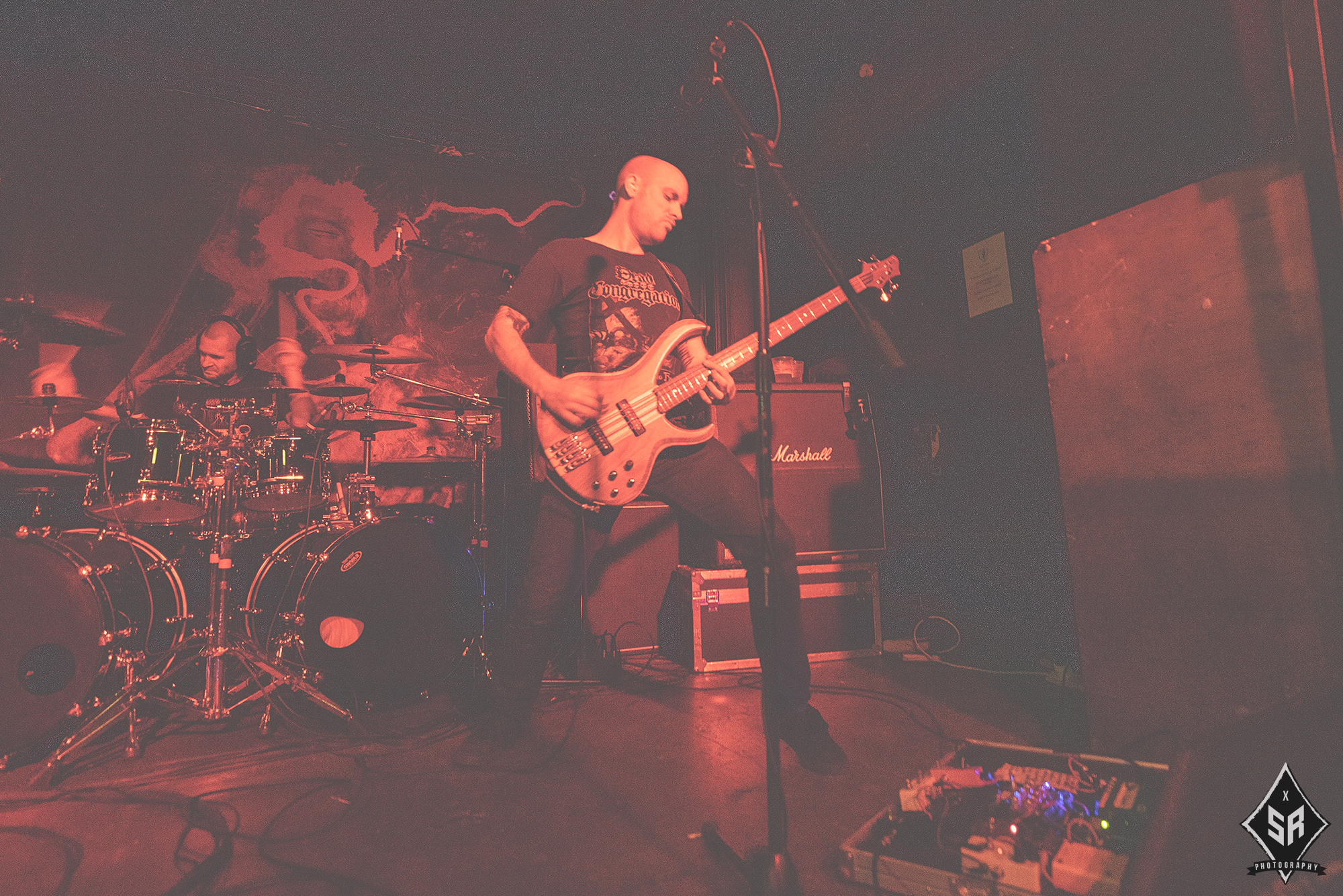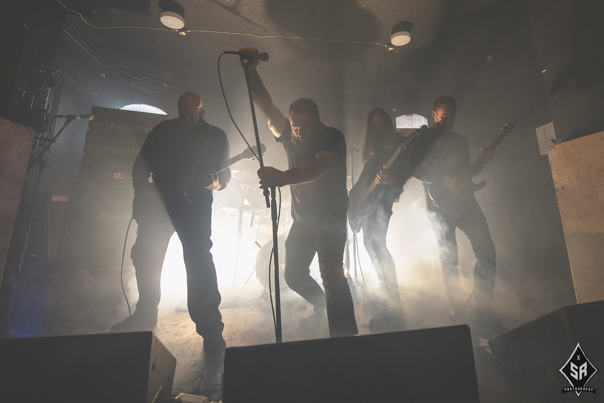 The weather outside may be pleasant but DEUS VERMIN are hell-bent on making everyone feel the polar opposite. The Leeds-based quartet proceed to dispatch a cacophonous wall of sound that is as explosive as it is transfixing. Guitarists LM and CG are relentless in their delivery of razor-sharp riffing that continuously pummel the ears, GH puts in a hell of a shift behind the drums, and AS‘s deep bass tones adds extra weight to the band’s already mighty sonic racket. At the heart of their twisted musical maelstrom, AL cuts an imposing figure on stage. His body twists and turns with every devilish riff and his delivering of ear-splitting shrieks and rumbling lows sound clear as day in the mix. Unfortunately, the abrupt end of the set as a result of the fire alarm going off, thanks to an abundance of smoke to heighten the atmosphere, takes the wind out of the band’s sails, but this but only puts a blemish on a bold and intimidating opening performance.