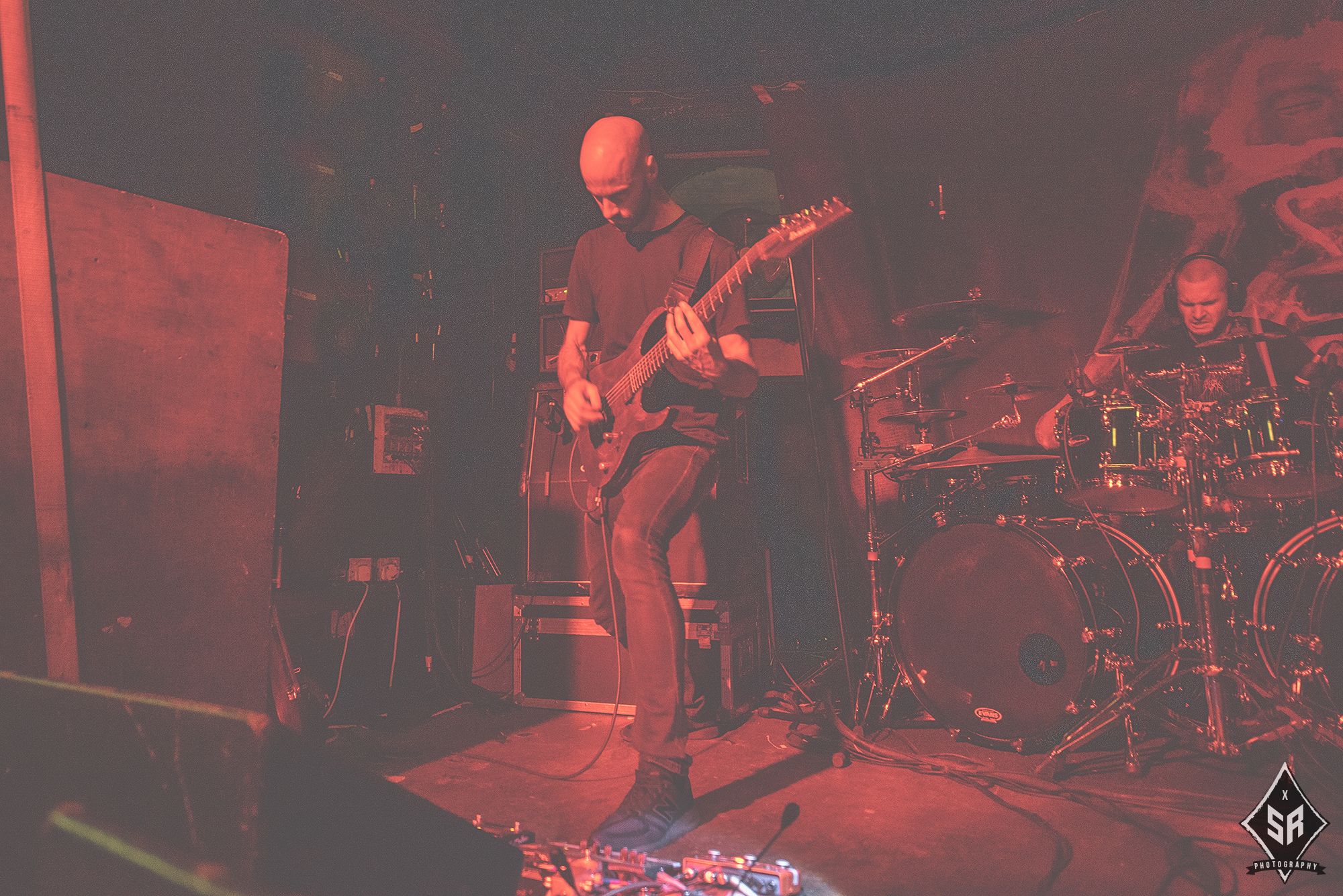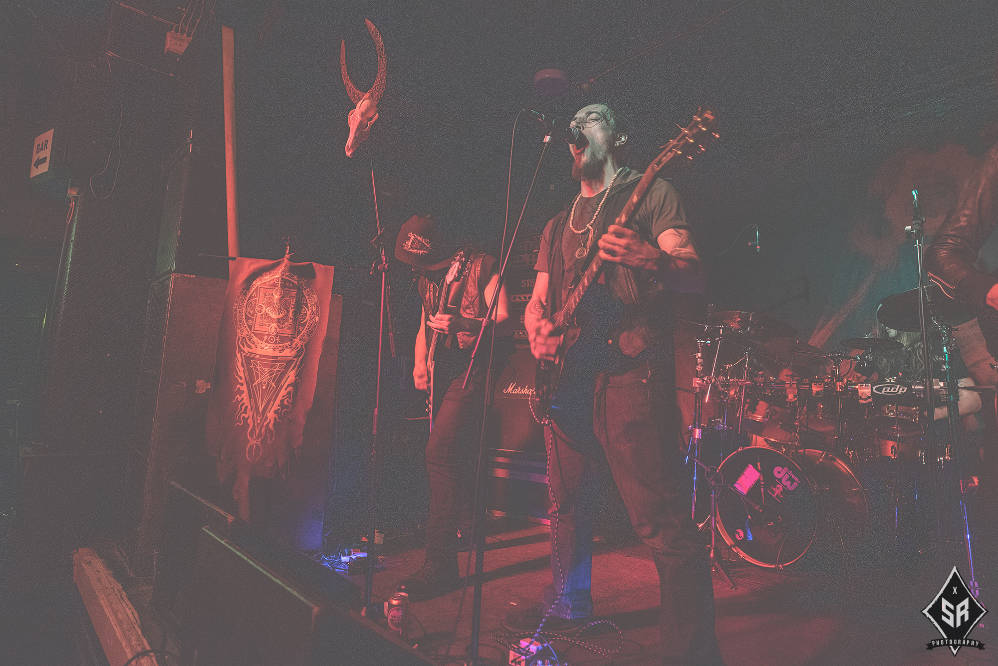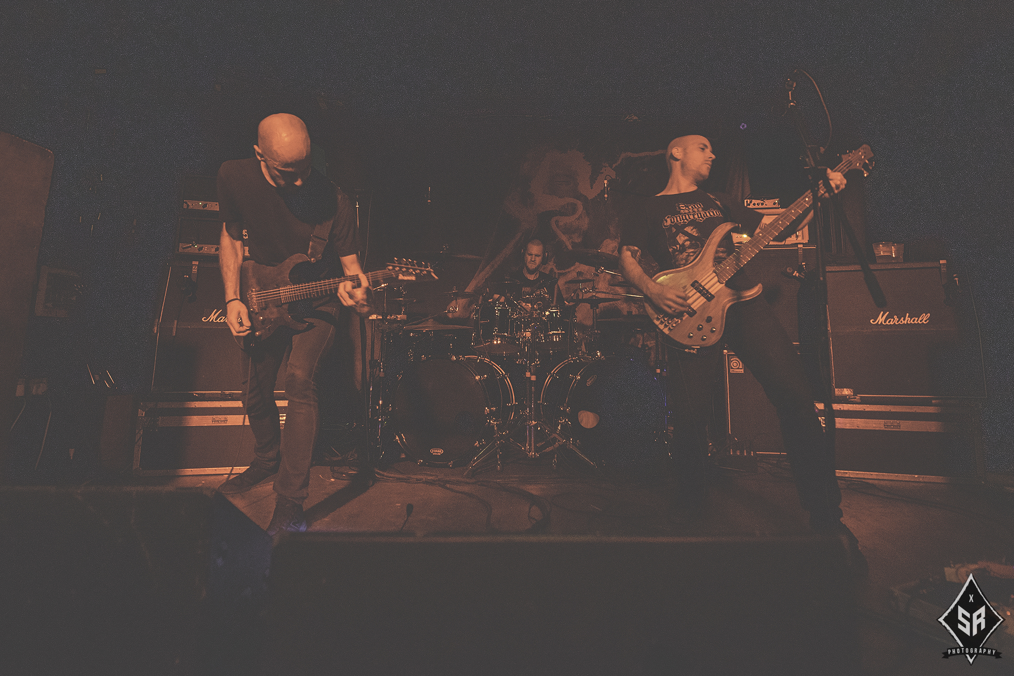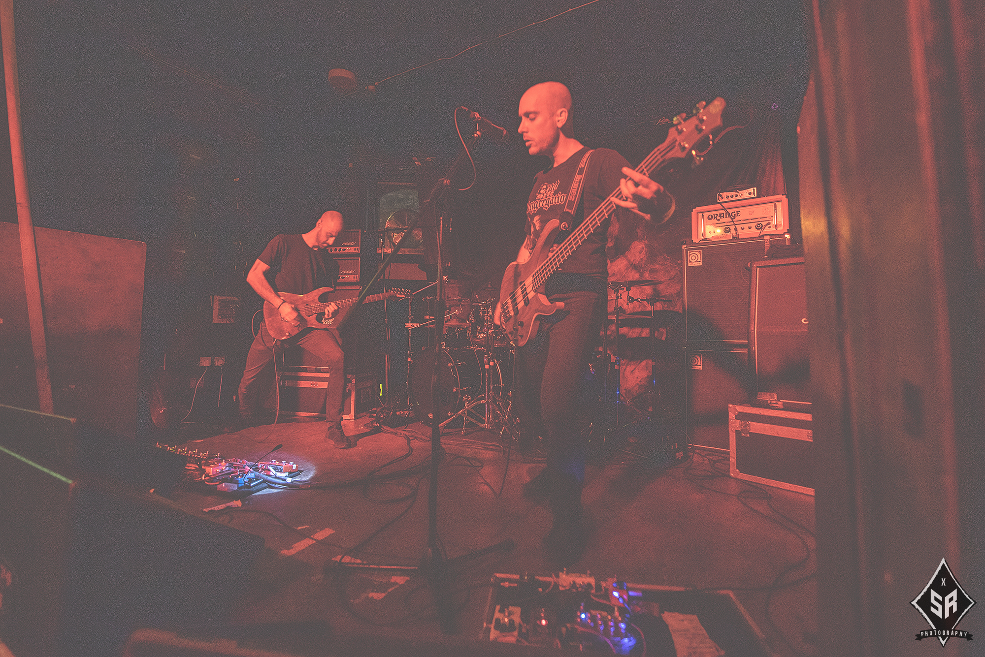 The weather outside may be pleasant but DEUS VERMIN are hell-bent on making everyone feel the polar opposite. The Leeds-based quartet proceed to dispatch a cacophonous wall of sound that is as explosive as it is transfixing. Guitarists LM and CG are relentless in their delivery of razor-sharp riffing that continuously pummel the ears, GH puts in a hell of a shift behind the drums, and AS‘s deep bass tones adds extra weight to the band’s already mighty sonic racket. At the heart of their twisted musical maelstrom, AL cuts an imposing figure on stage. His body twists and turns with every devilish riff and his delivering of ear-splitting shrieks and rumbling lows sound clear as day in the mix. Unfortunately, the abrupt end of the set as a result of the fire alarm going off, thanks to an abundance of smoke to heighten the atmosphere, takes the wind out of the band’s sails, but this but only puts a blemish on a bold and intimidating opening performance.