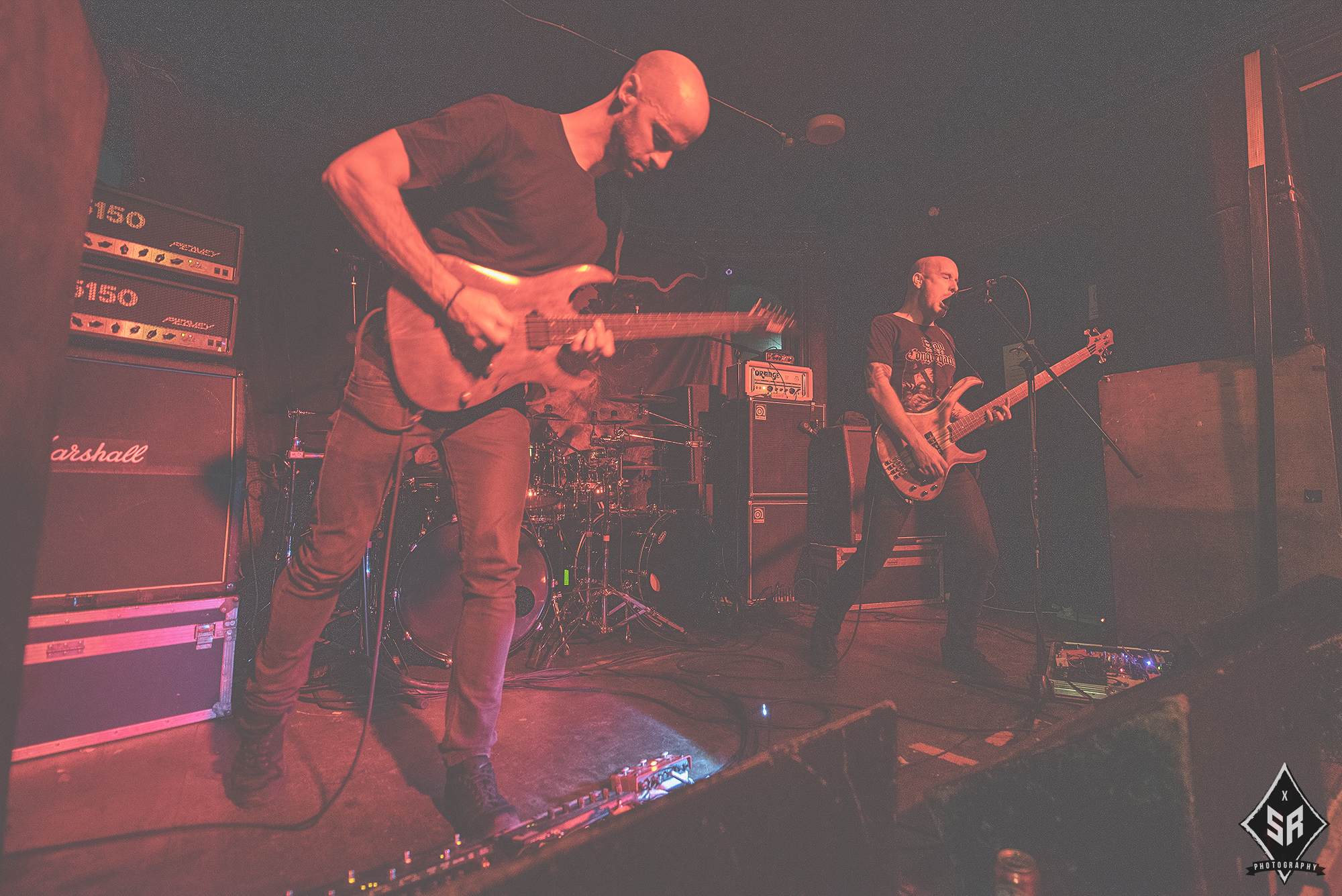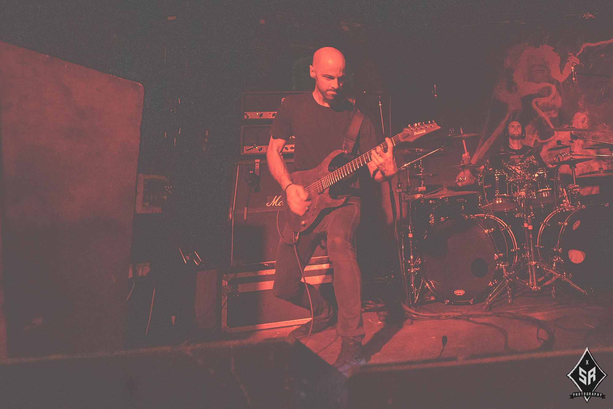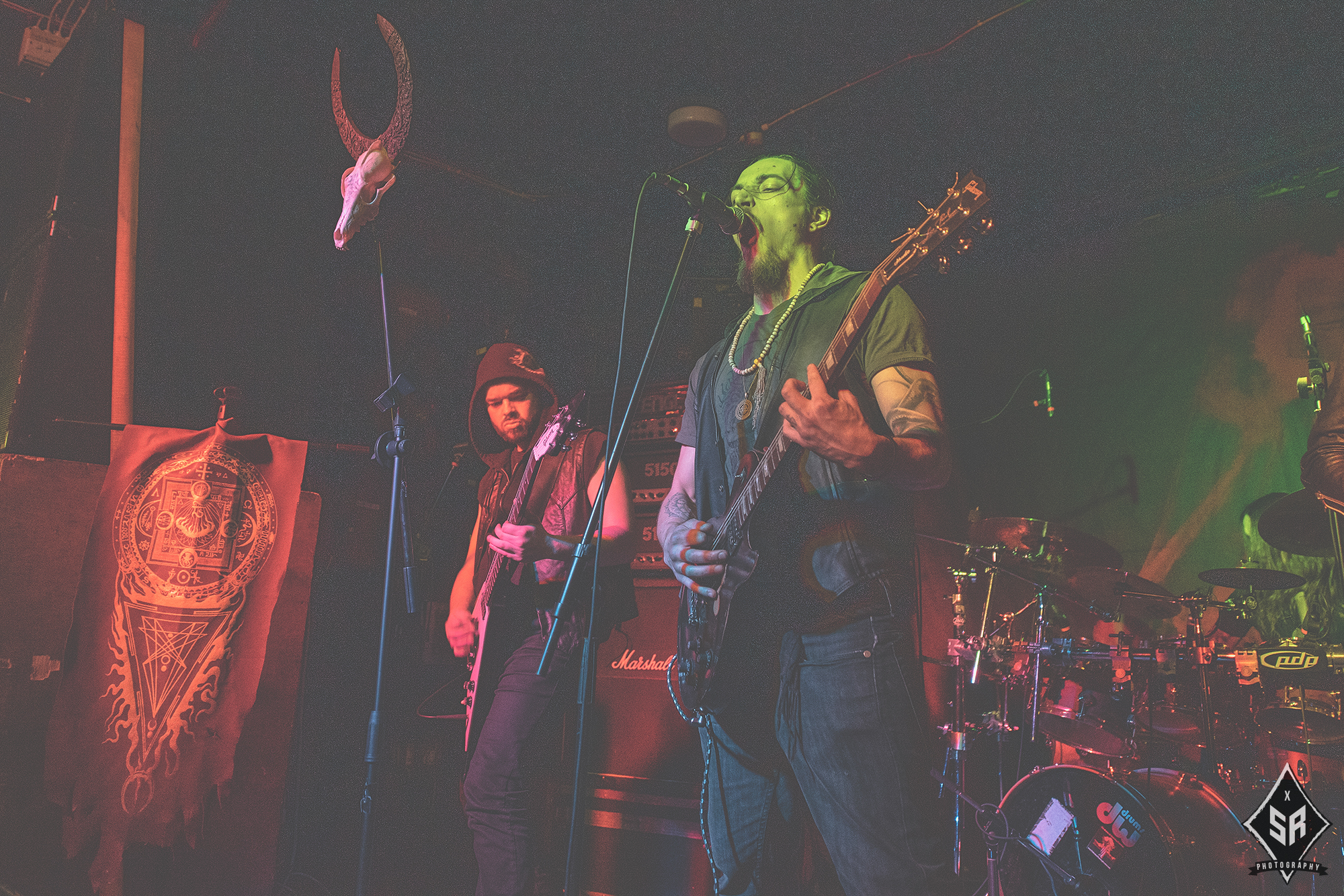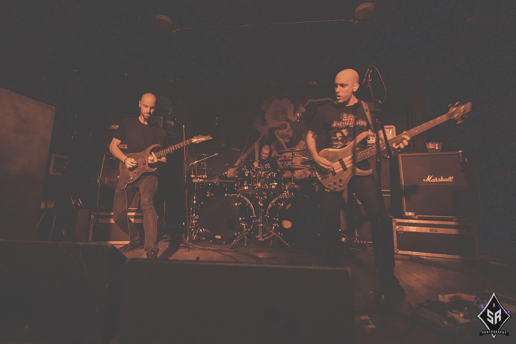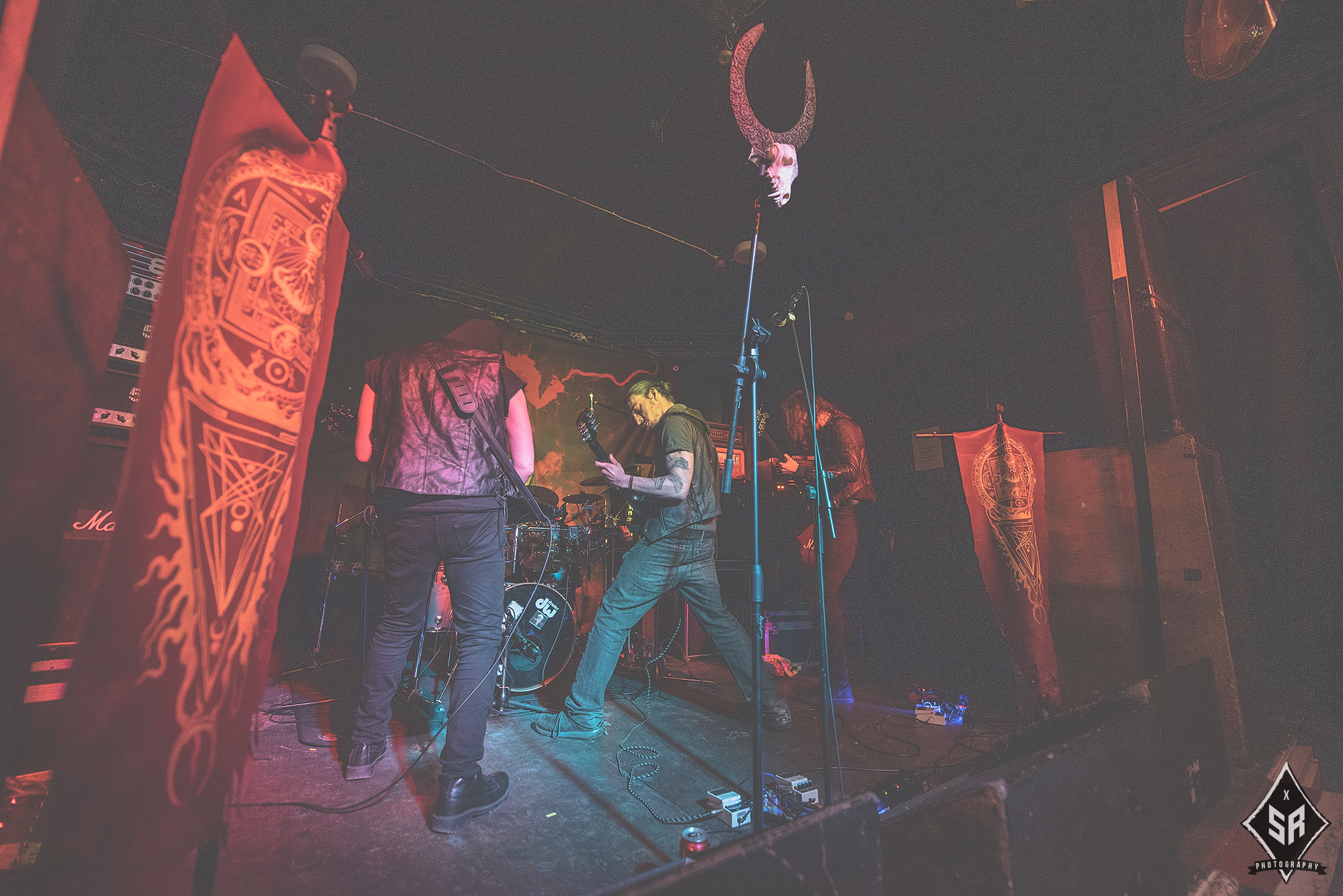 The weather outside may be pleasant but DEUS VERMIN are hell-bent on making everyone feel the polar opposite. The Leeds-based quartet proceed to dispatch a cacophonous wall of sound that is as explosive as it is transfixing. Guitarists LM and CG are relentless in their delivery of razor-sharp riffing that continuously pummel the ears, GH puts in a hell of a shift behind the drums, and AS‘s deep bass tones adds extra weight to the band’s already mighty sonic racket. At the heart of their twisted musical maelstrom, AL cuts an imposing figure on stage. His body twists and turns with every devilish riff and his delivering of ear-splitting shrieks and rumbling lows sound clear as day in the mix. Unfortunately, the abrupt end of the set as a result of the fire alarm going off, thanks to an abundance of smoke to heighten the atmosphere, takes the wind out of the band’s sails, but this but only puts a blemish on a bold and intimidating opening performance.