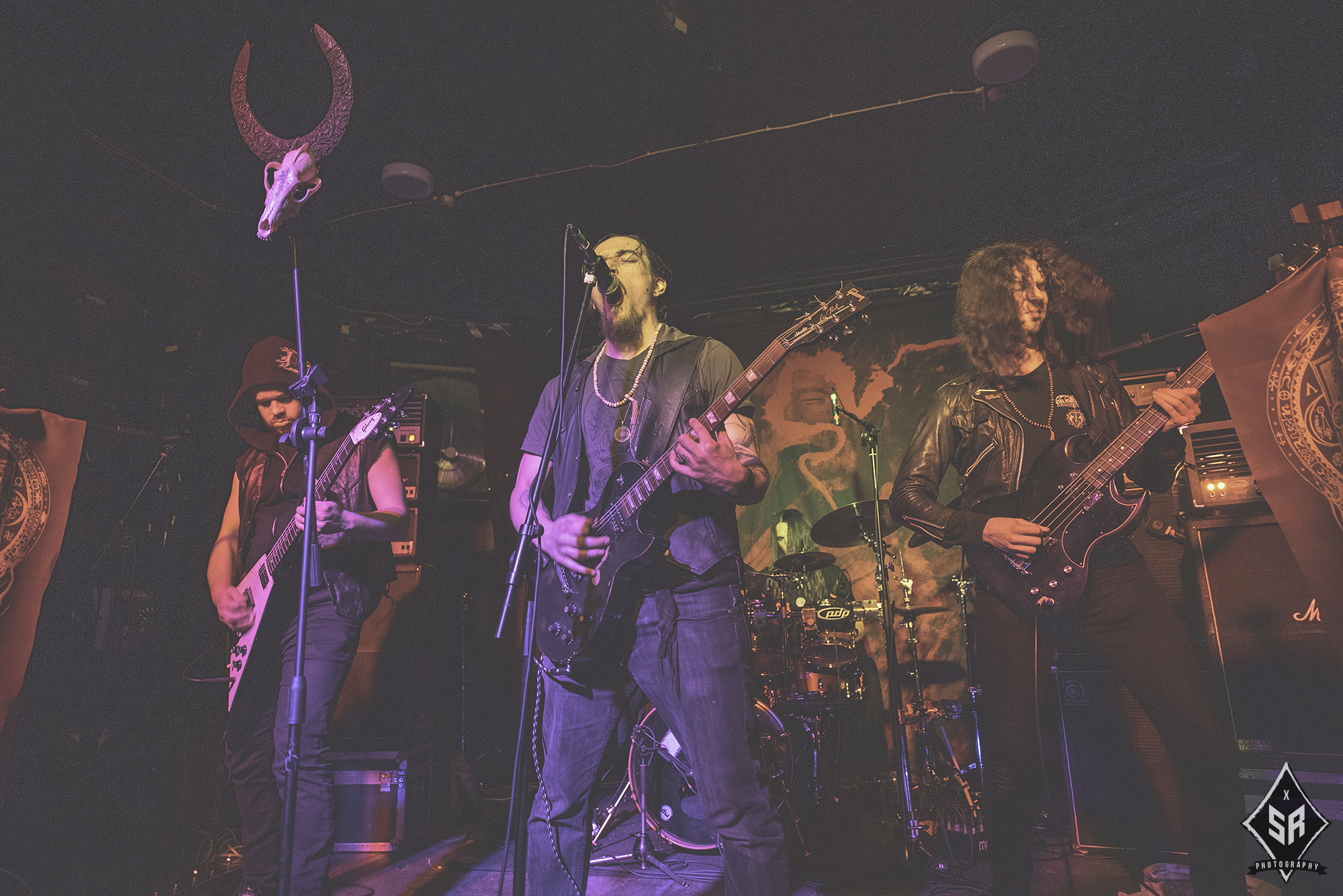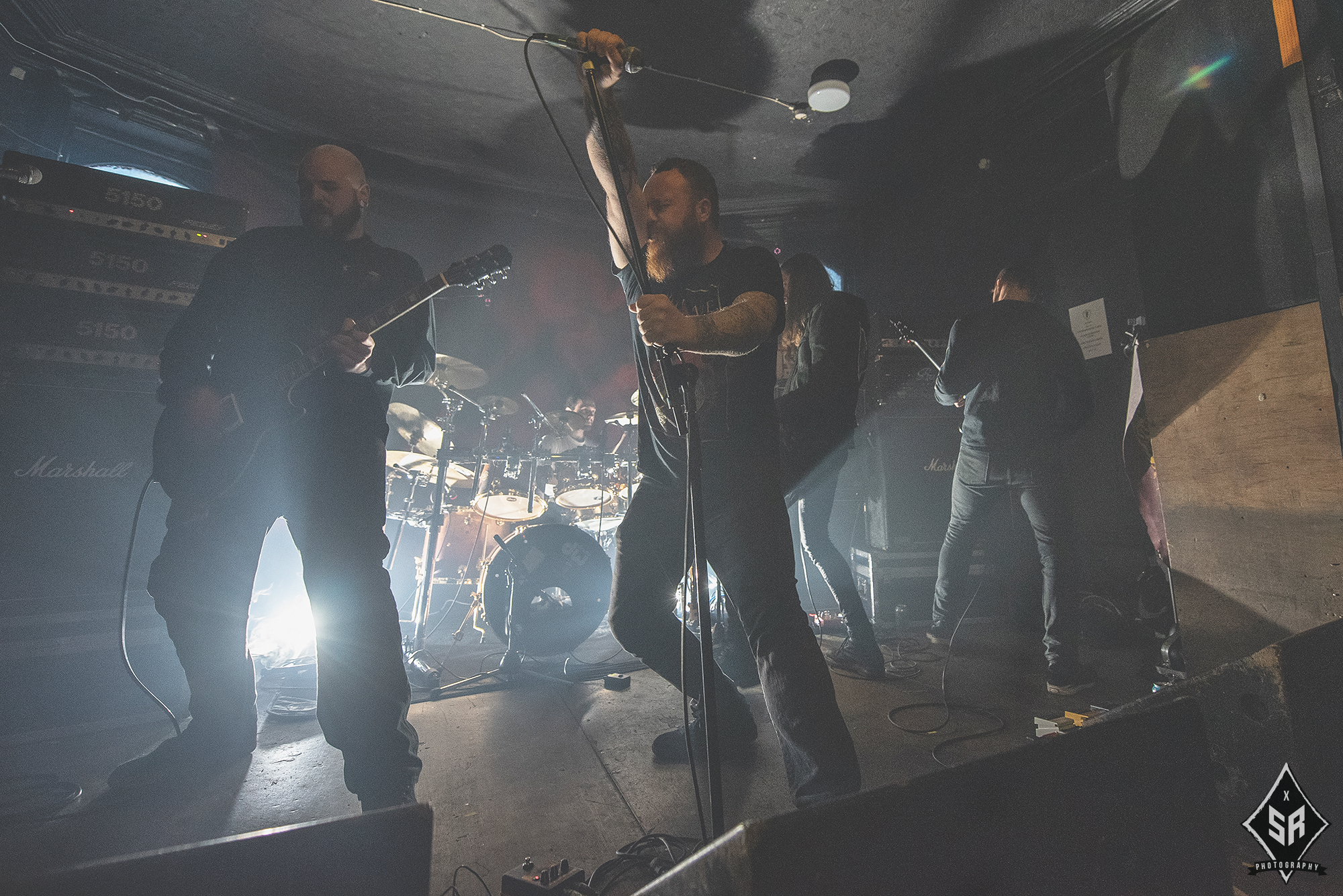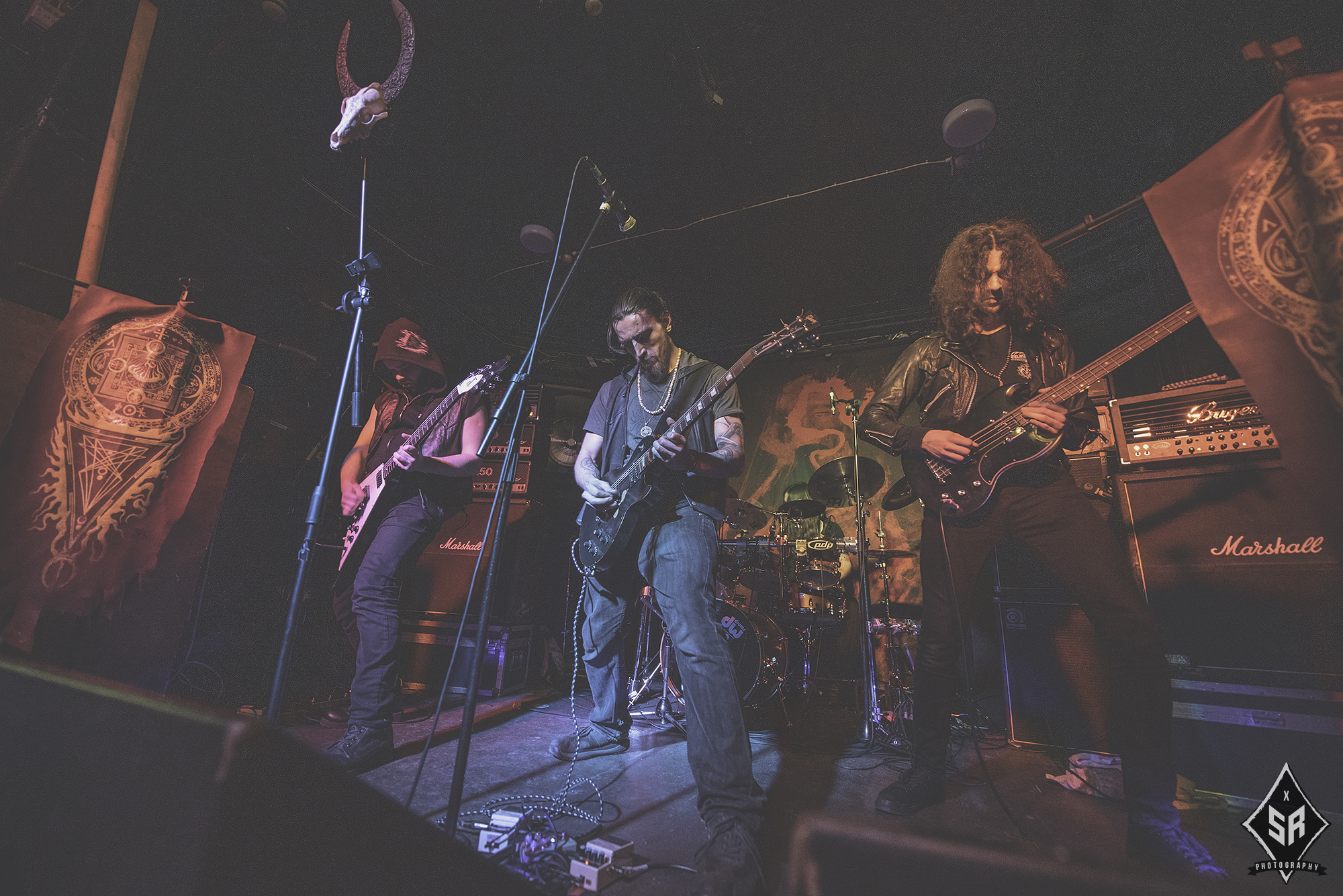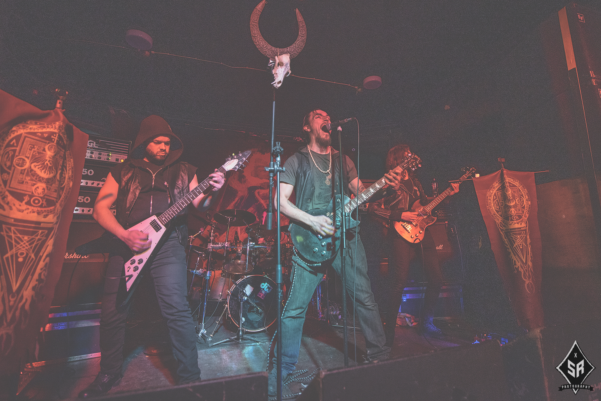 The weather outside may be pleasant but DEUS VERMIN are hell-bent on making everyone feel the polar opposite. The Leeds-based quartet proceed to dispatch a cacophonous wall of sound that is as explosive as it is transfixing. Guitarists LM and CG are relentless in their delivery of razor-sharp riffing that continuously pummel the ears, GH puts in a hell of a shift behind the drums, and AS‘s deep bass tones adds extra weight to the band’s already mighty sonic racket. At the heart of their twisted musical maelstrom, AL cuts an imposing figure on stage. His body twists and turns with every devilish riff and his delivering of ear-splitting shrieks and rumbling lows sound clear as day in the mix. Unfortunately, the abrupt end of the set as a result of the fire alarm going off, thanks to an abundance of smoke to heighten the atmosphere, takes the wind out of the band’s sails, but this but only puts a blemish on a bold and intimidating opening performance.