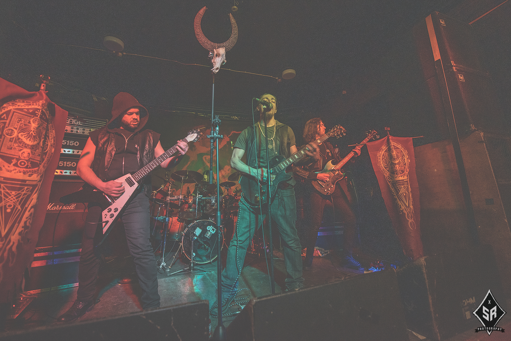 With the smoke, quite literally cleared, LUNAR MANTRA take to the stage and proceed to give a solid performance. The Scottish quartet’s mix of black metal and ambience conjured a sinister atmosphere and this was maintained throughout their set. Powerful blasts from the drums intertwine with the dual riffing from guitarists P.T. And R.C. that keep the pace flowing in the top gear whilst the former dispatches his vocal deliveries to great effect. Moments of ambience integrate nicely with the typical ferocity found within black metal, allowing the performance to feel organic and dynamic whilst also helping the band punch all the more harder. It’s a gripping performance and one that showcases that LUNAR MANTRA are a fine addition in the UK’s healthy black metal scene.