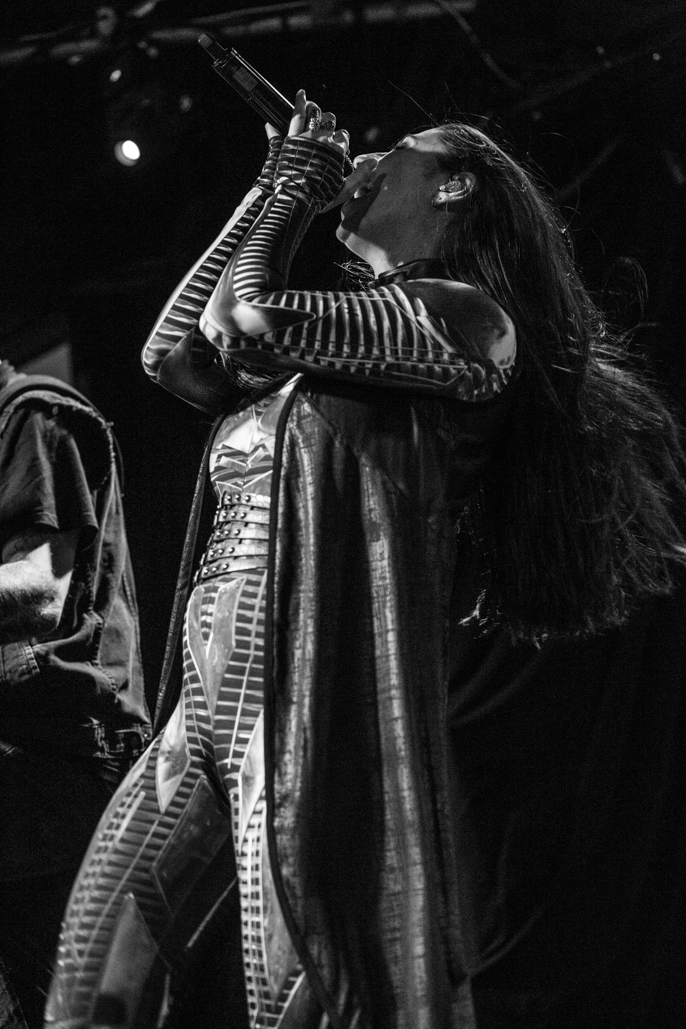 Just before Canadian power metallers UNLEASH THE ARCHERS take the stage, you can feel the lofty expectations in the air. The five-piece immediately ignites the performance to remember with the self-titled song from Abyss. This dynamite-laden anthem is hampered by singer Brittney Slayes‘ vocals being criminally too quiet. Fortunately, this is rectified very quickly, and just as well. Slayes‘ voice is fantastic on record but live, they’re jaw-droppingly incredible. Effortlessly, she smashes out sustained falsettos and belting vibratos, wielding her enviable vocal talent like a broadsword. Soulbound and Faster than Light from the same album continue the rampage, dazzling the audience, who eats up every note from the band.