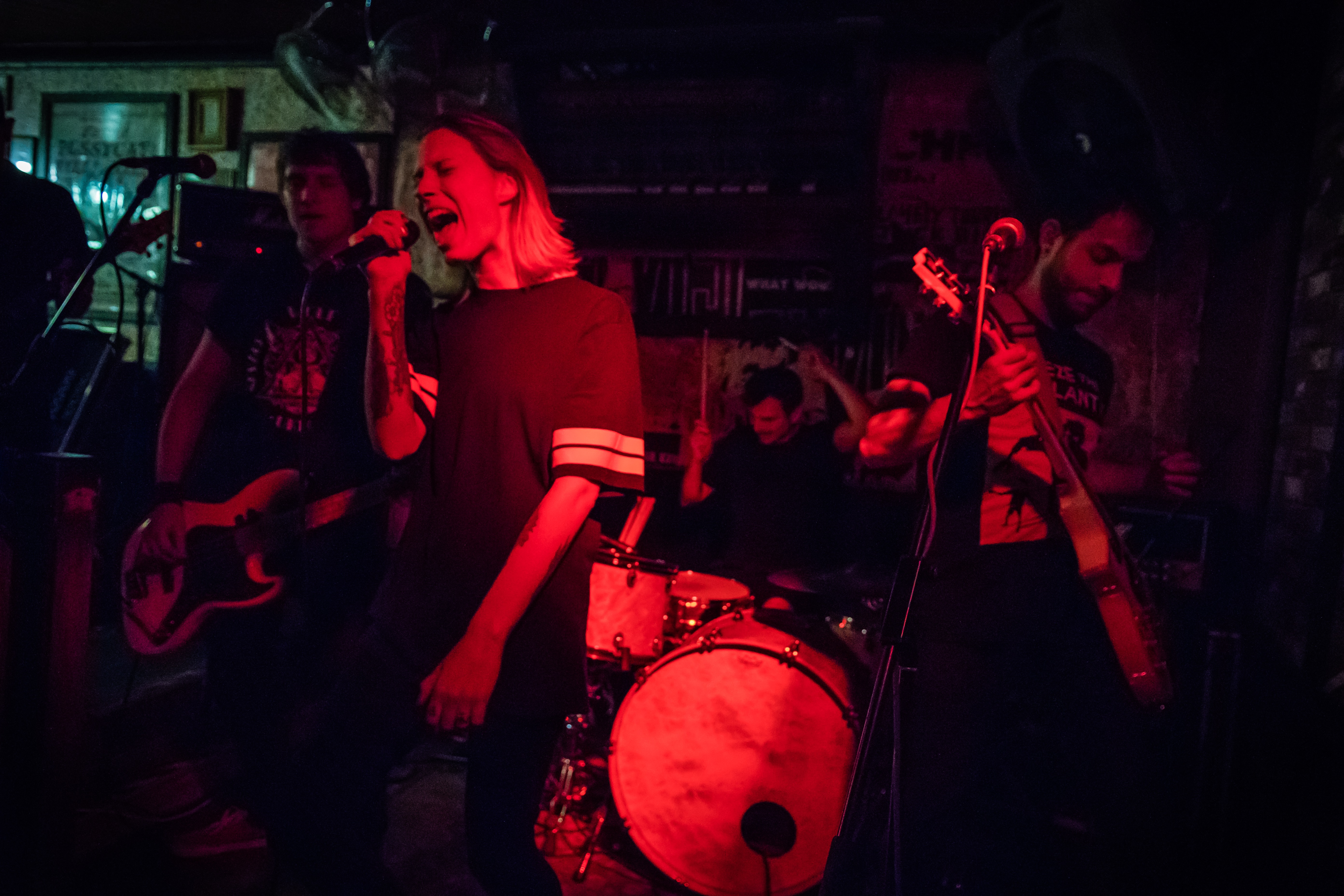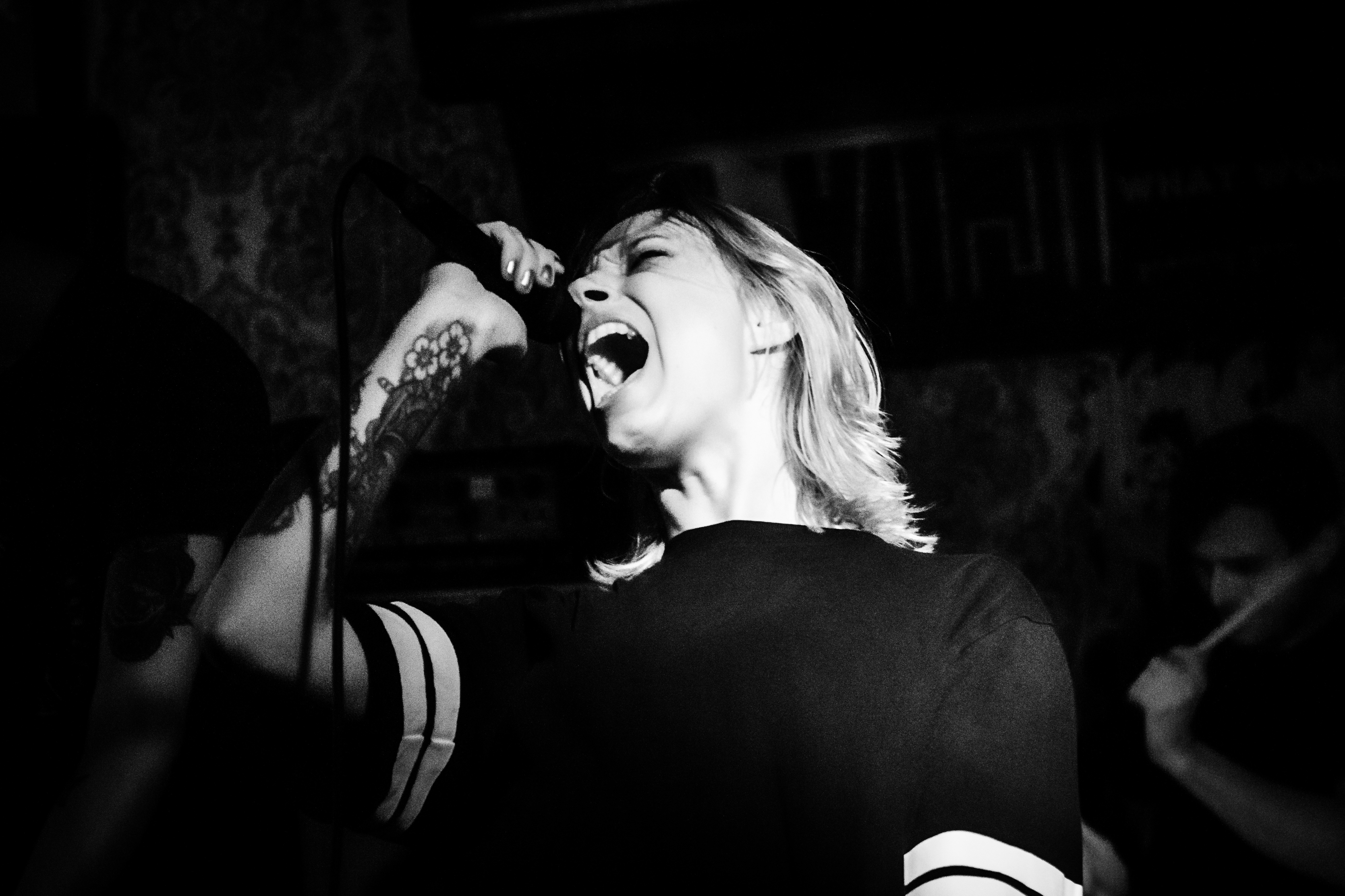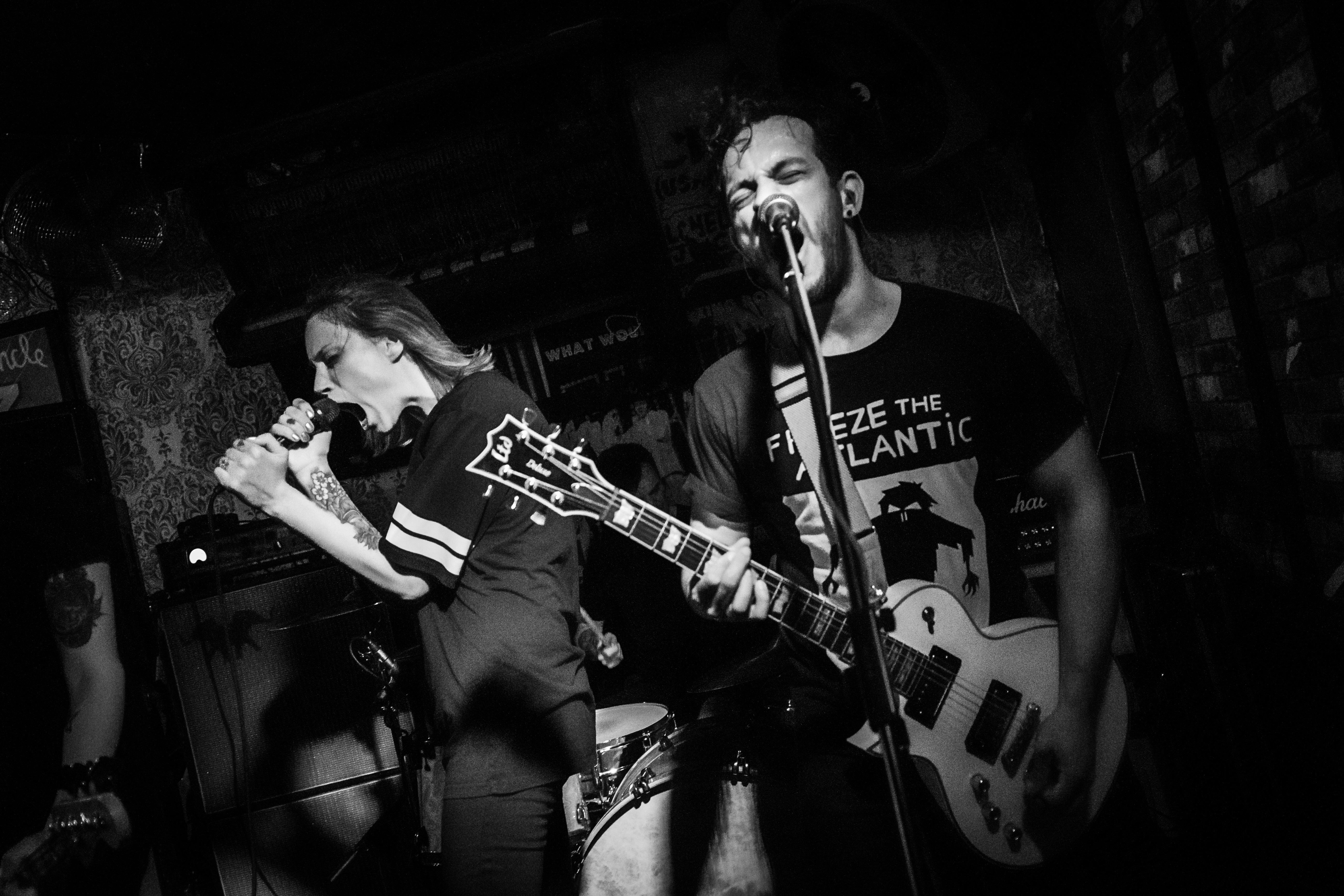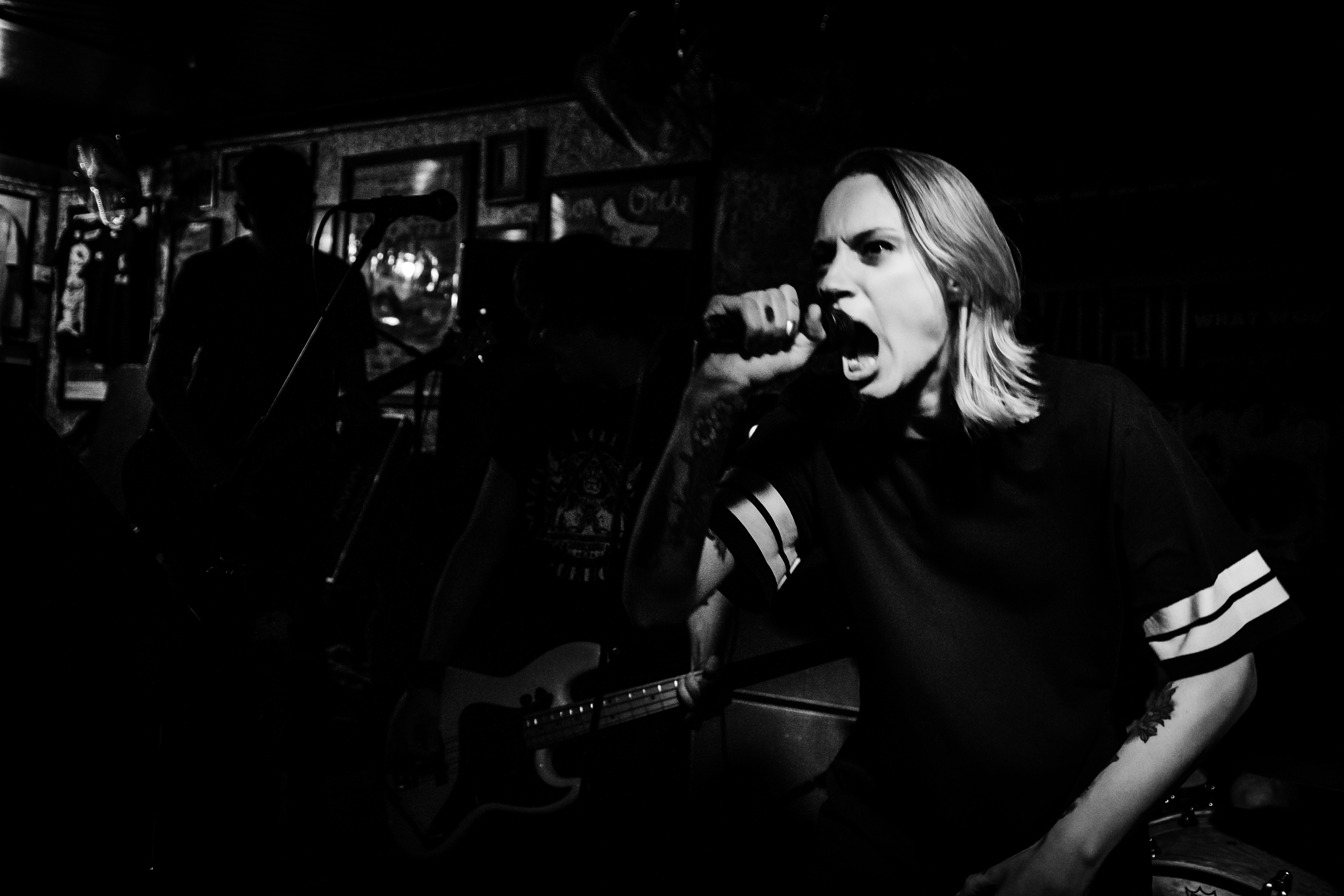 Picking up the pace with a set of absolute worship towards the likes of RISE AGAINST, DRONES come at the crowd with a lot of energy and intent. There is a clear intention for the band to throw as much as they can at the crowd but the treacherous layout of Mother’s Ruin means that the crowd are reduced to standing in place whilst frontwoman Lois McDougal paces the venue and sings at unsuspecting punters waiting at the bar. The guitar leads cut through the mix well, and the bass is typically rapid as one would expect from a punk act like DRONES. The overwhelming feeling at the young stalwarts set is how much fun they would be a venue more accommodating to their high energy assault.