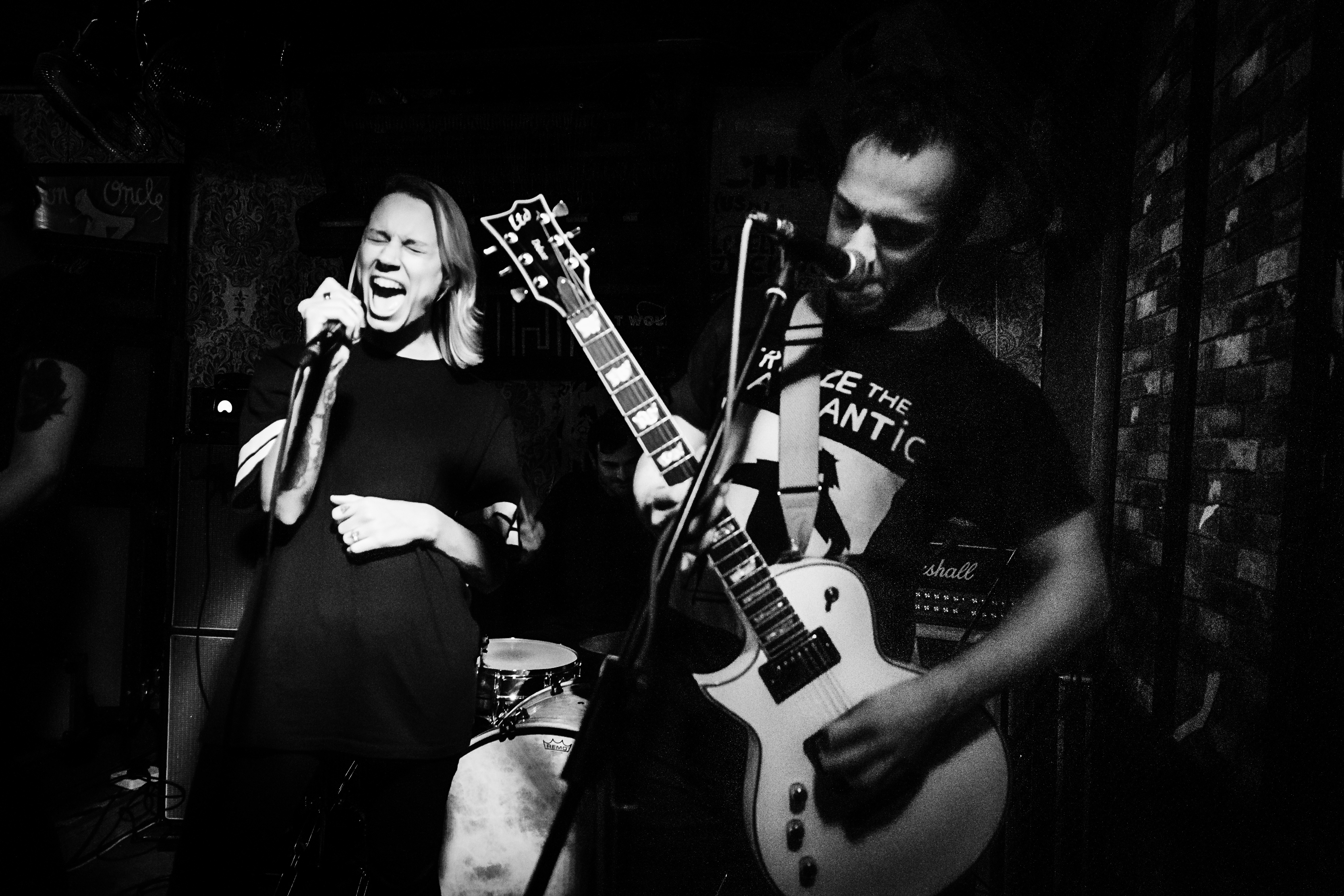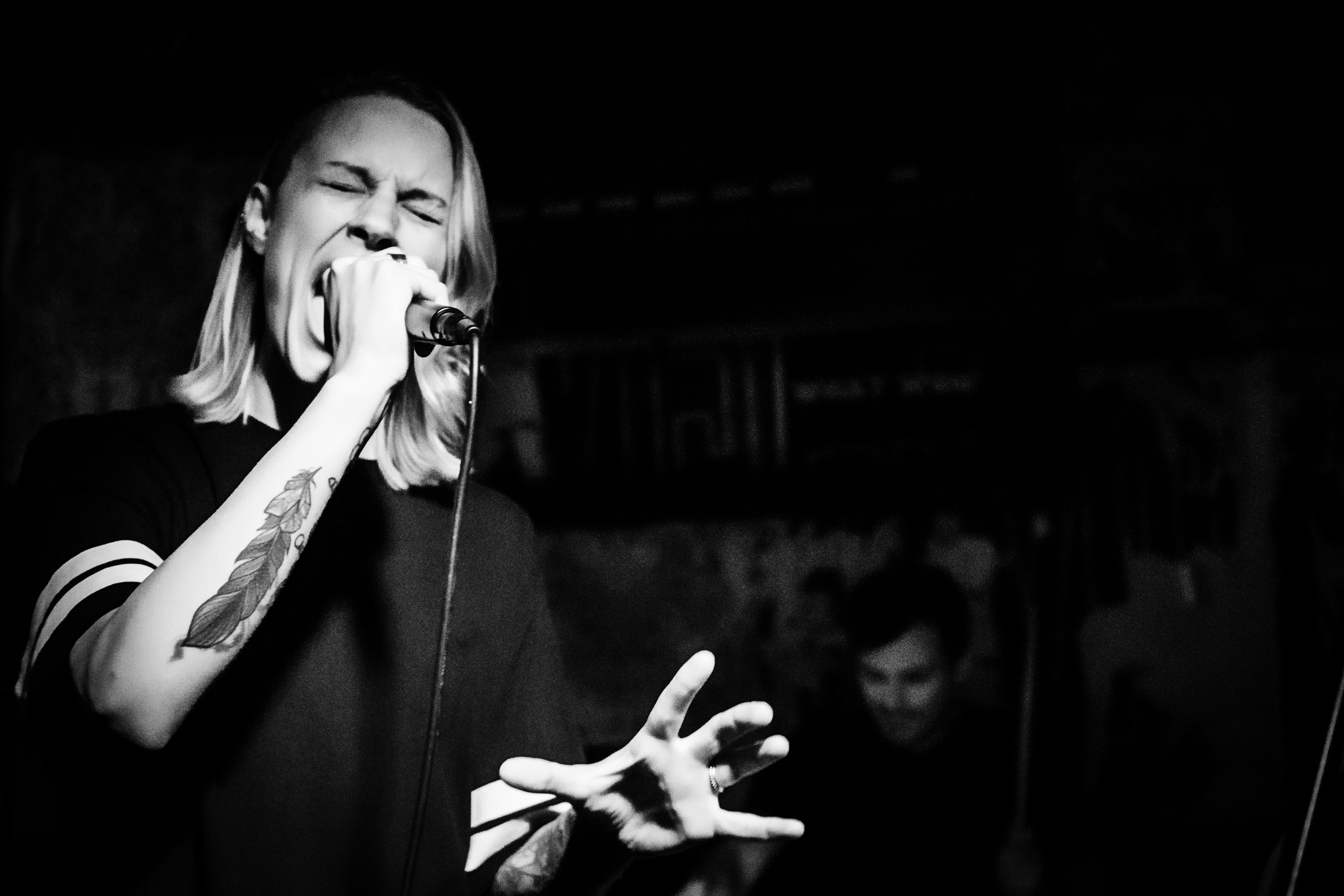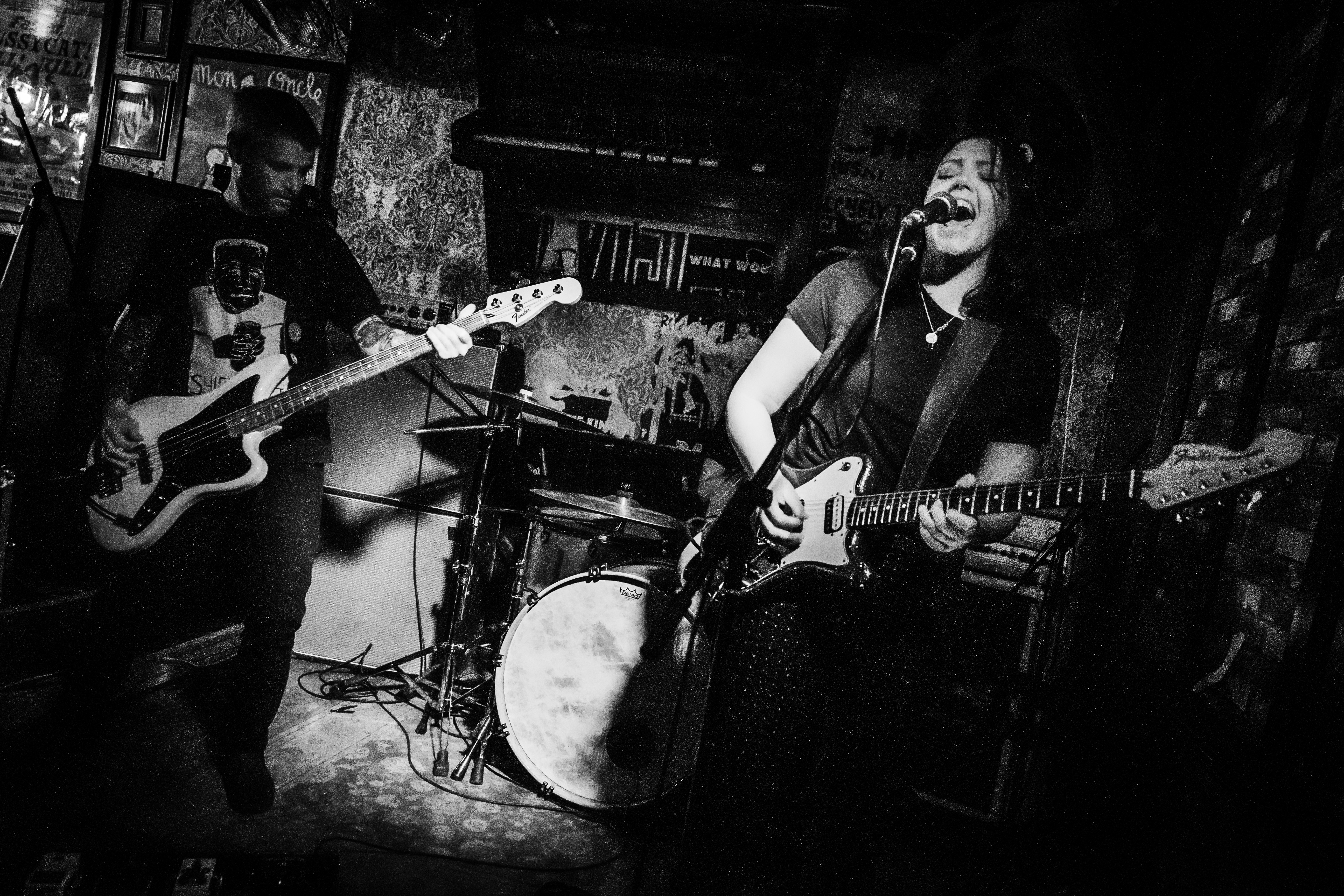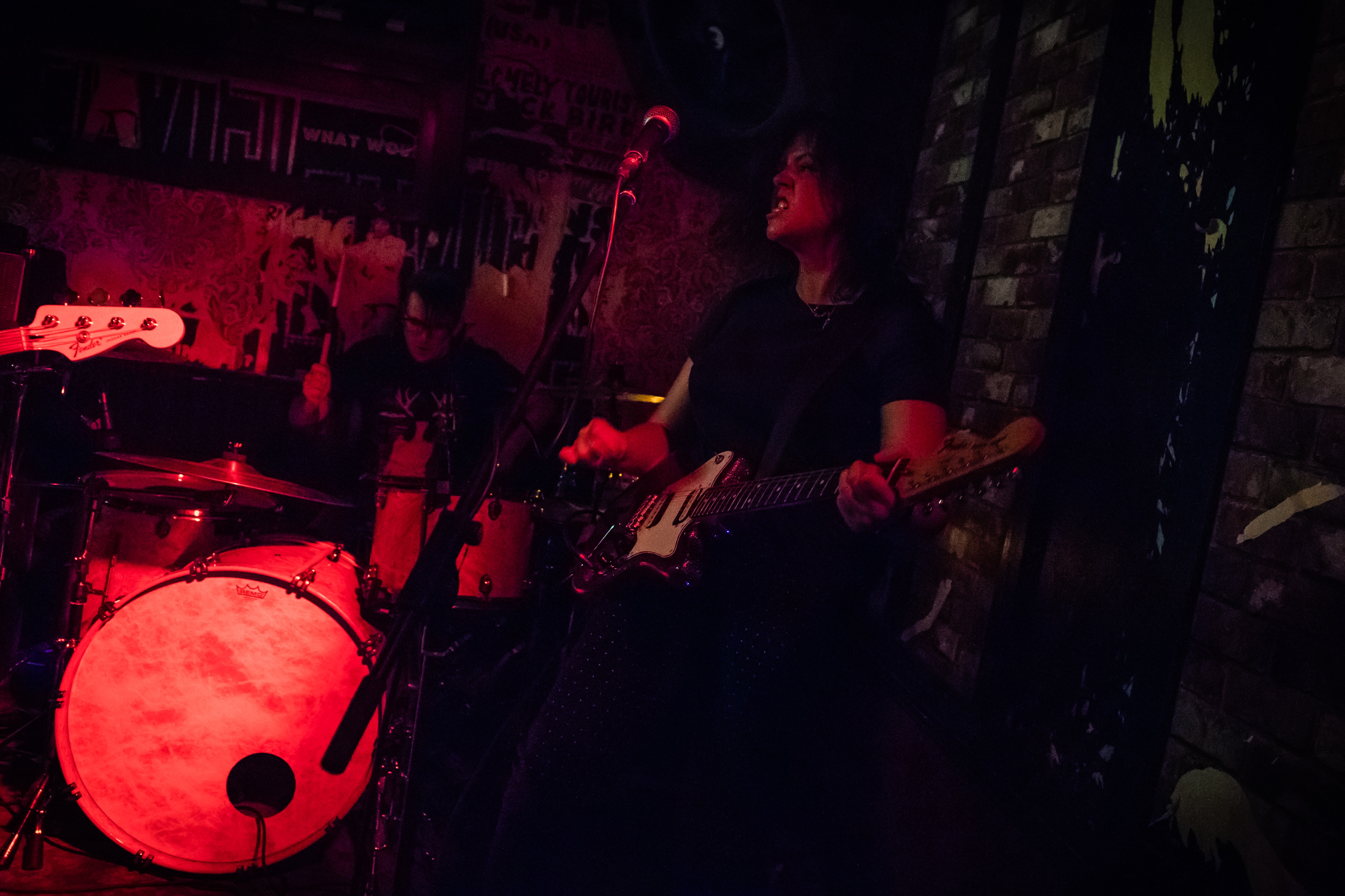 Picking up the pace with a set of absolute worship towards the likes of RISE AGAINST, DRONES come at the crowd with a lot of energy and intent. There is a clear intention for the band to throw as much as they can at the crowd but the treacherous layout of Mother’s Ruin means that the crowd are reduced to standing in place whilst frontwoman Lois McDougal paces the venue and sings at unsuspecting punters waiting at the bar. The guitar leads cut through the mix well, and the bass is typically rapid as one would expect from a punk act like DRONES. The overwhelming feeling at the young stalwarts set is how much fun they would be a venue more accommodating to their high energy assault.