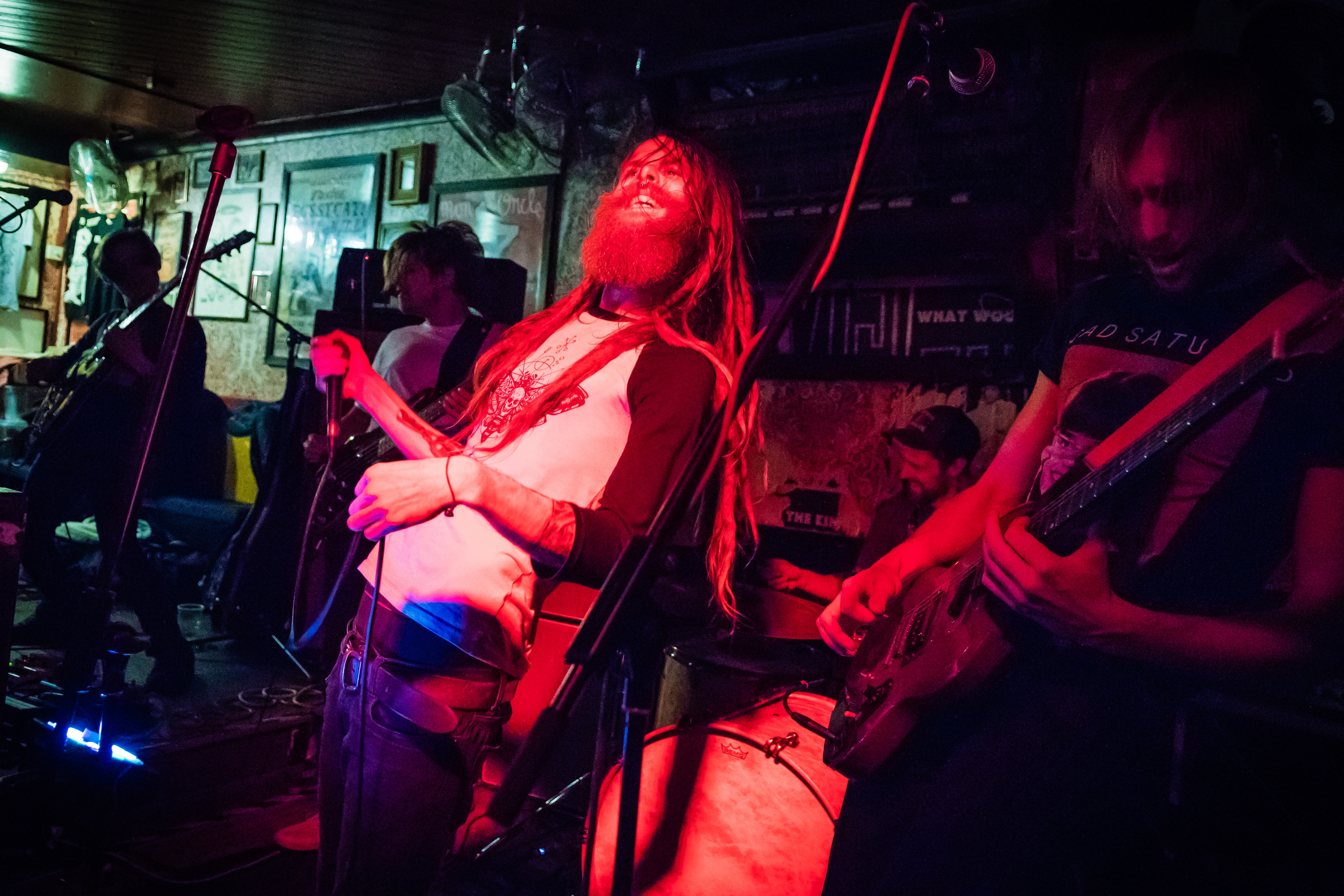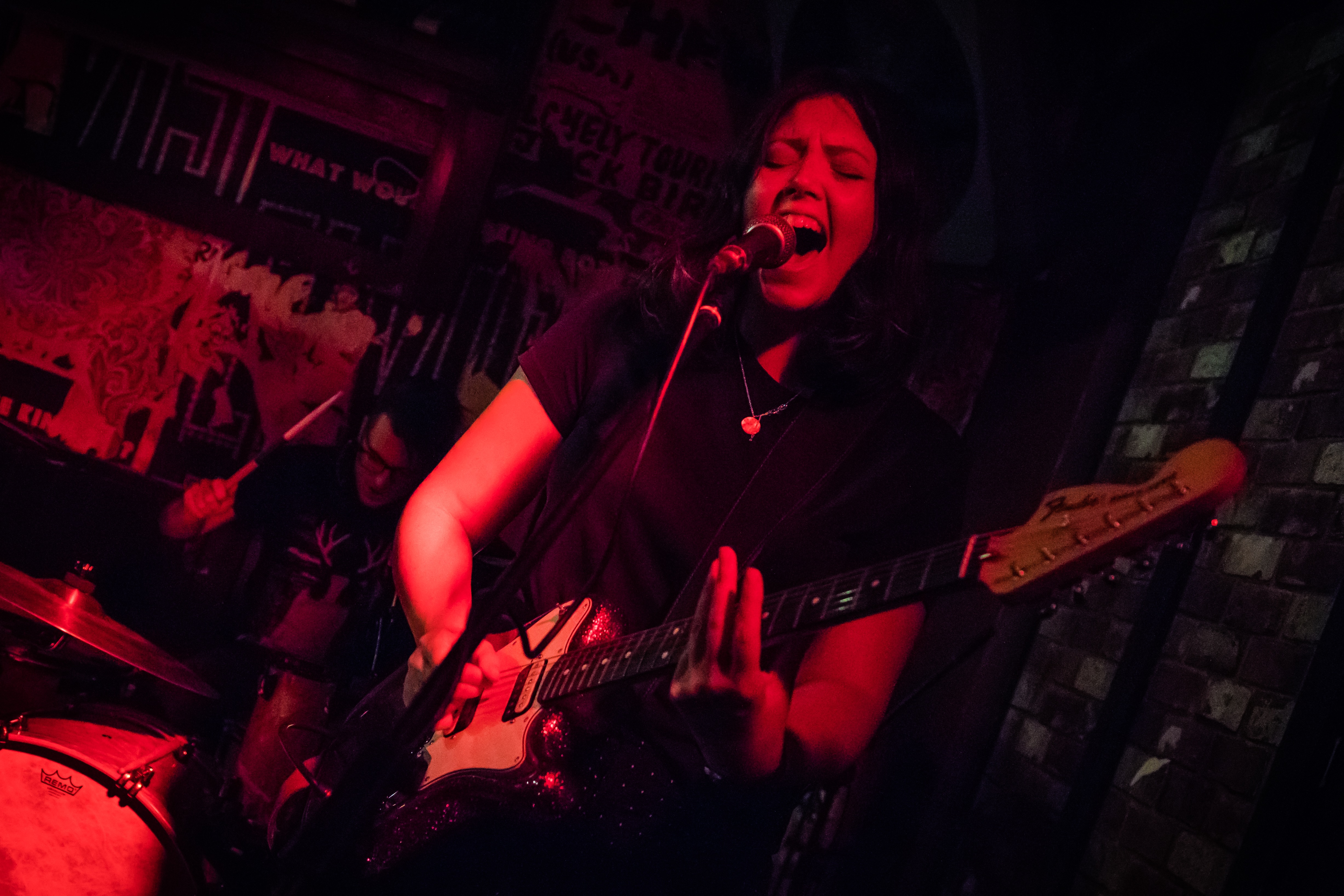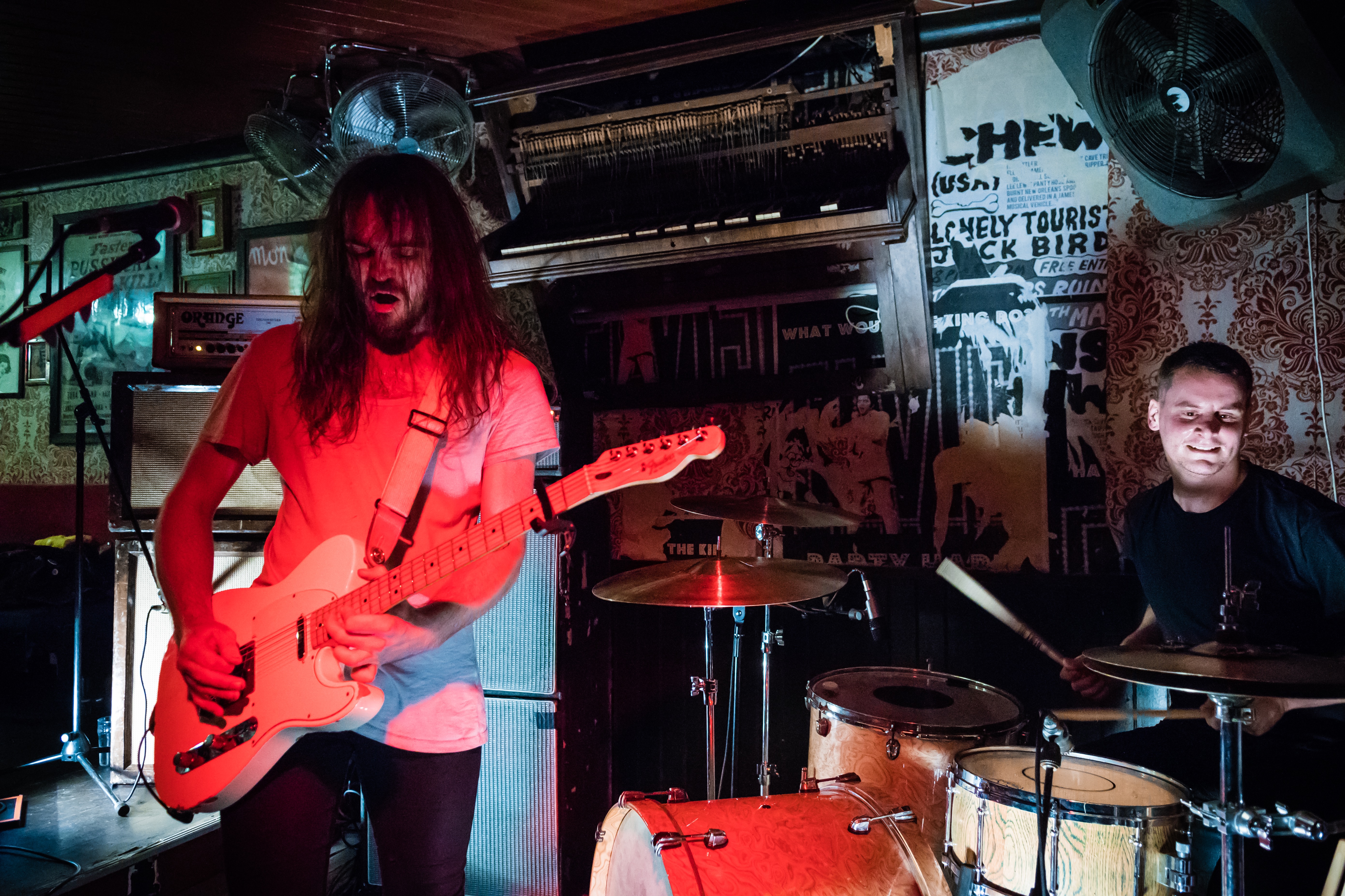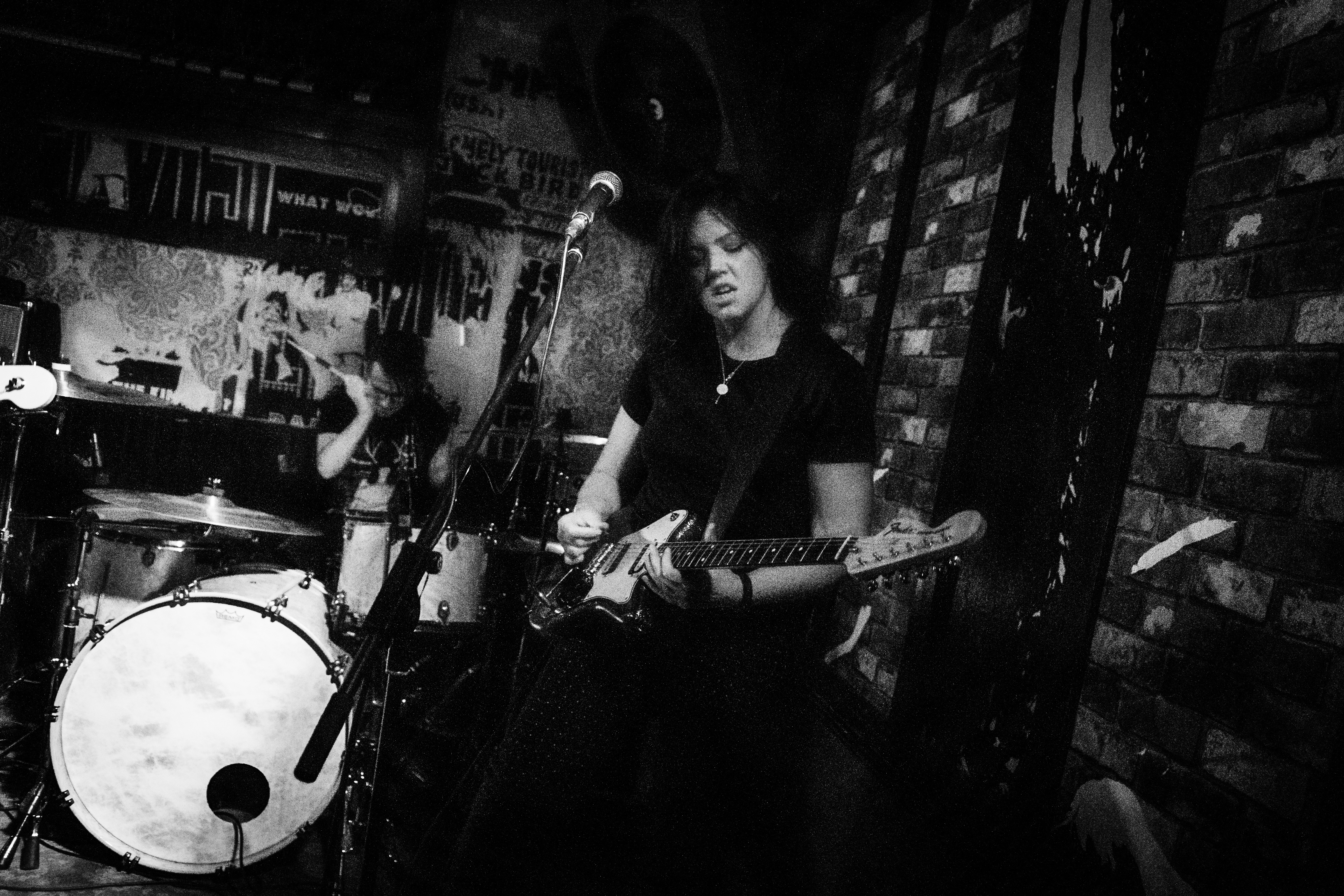 Picking up the pace with a set of absolute worship towards the likes of RISE AGAINST, DRONES come at the crowd with a lot of energy and intent. There is a clear intention for the band to throw as much as they can at the crowd but the treacherous layout of Mother’s Ruin means that the crowd are reduced to standing in place whilst frontwoman Lois McDougal paces the venue and sings at unsuspecting punters waiting at the bar. The guitar leads cut through the mix well, and the bass is typically rapid as one would expect from a punk act like DRONES. The overwhelming feeling at the young stalwarts set is how much fun they would be a venue more accommodating to their high energy assault.