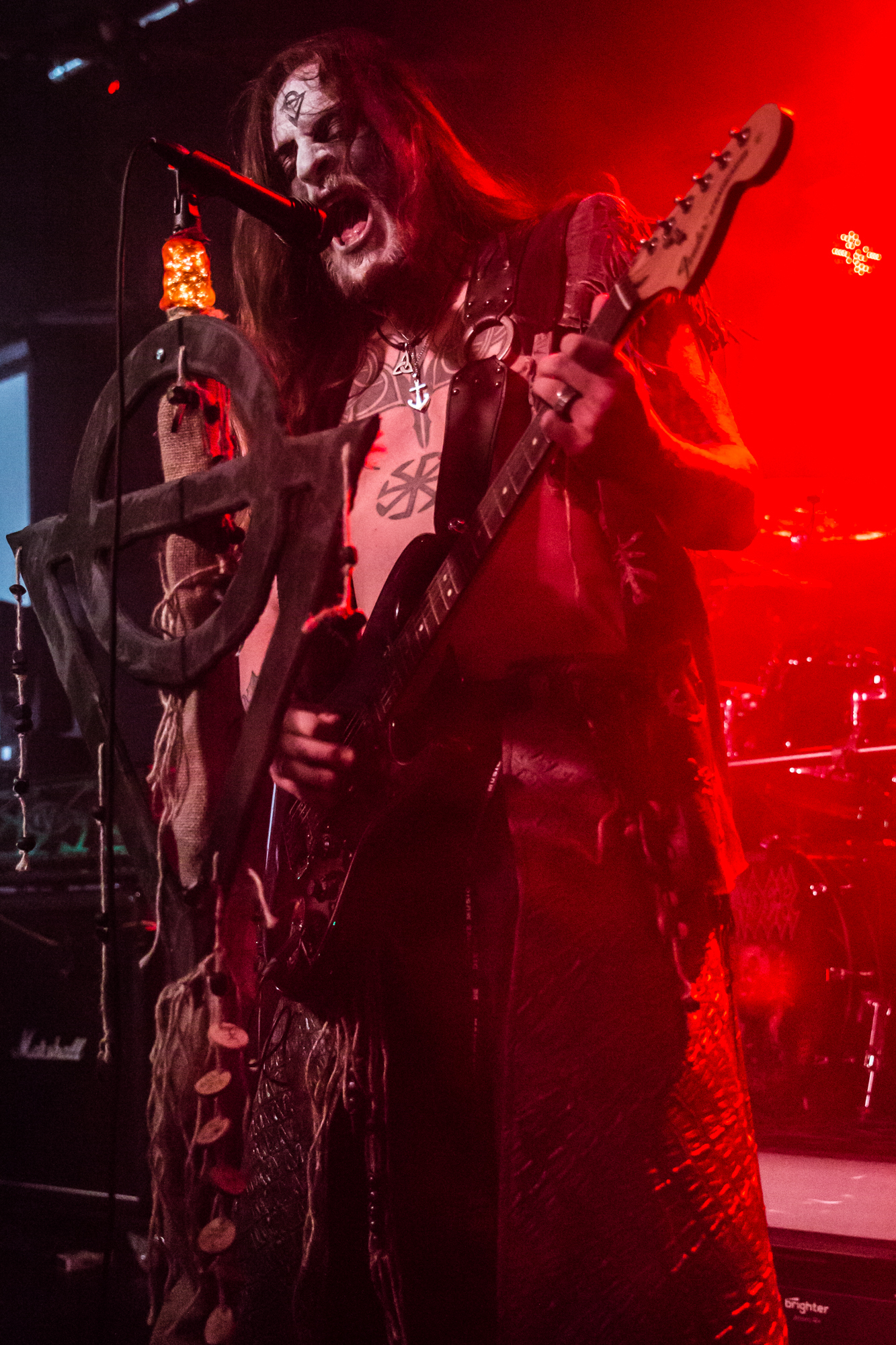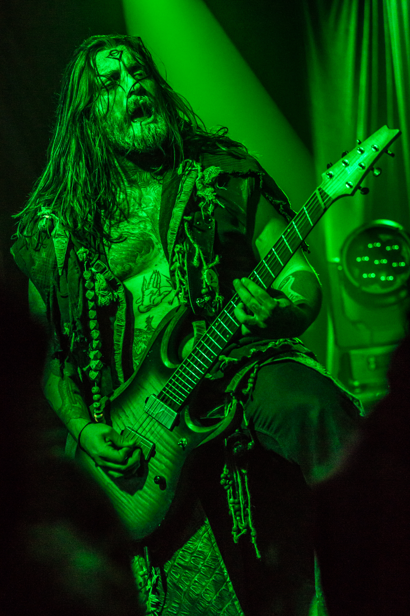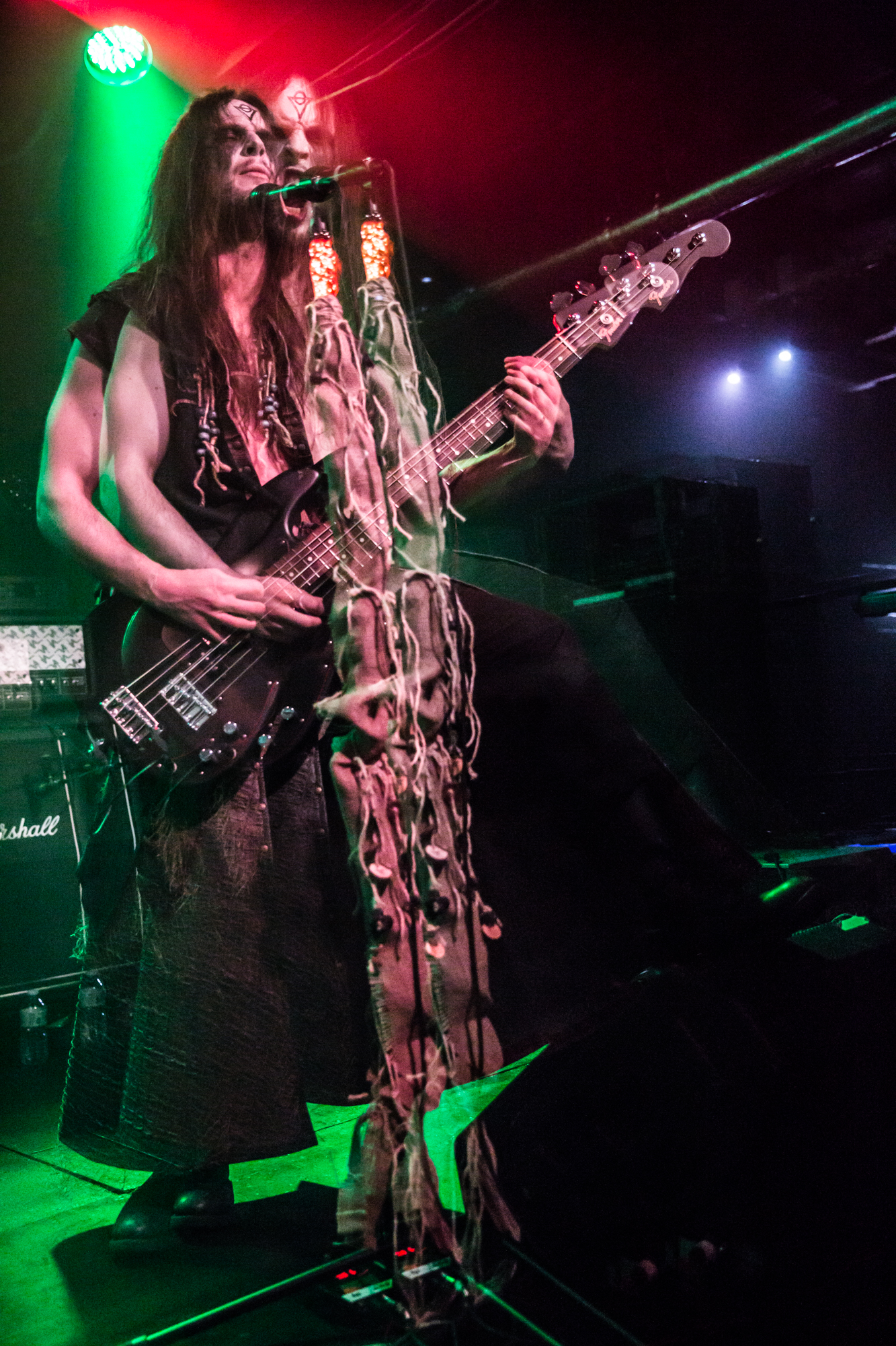 Support comes from French black/death metallers SKAPHOS. The quintet formed in 2018 and has three albums bearing their name, of which the latest, Cult of Uzura comes out next month. Bedecked in raggedy post-apocalypse garb and corpsepaint, their interpretation of the subgenre is built on a dense inventory of riffs that lurch from the spiteful to the dissonant. Blastbeats and tremolo picking are served in abundance, alongside haunting atmospheres and smart deployment of introspective melodies. It’s refreshing to hear such inspired and ambitious black/death metal for such a popular extreme metal headliner. SLAY‘s sound is fantastic, really clarifying their intriguing Lovecraftian hymns. This is a solid forty minute set of anguished, challenging black/death metal that hopefully supplies SKAPHOS with deserved recognition.
