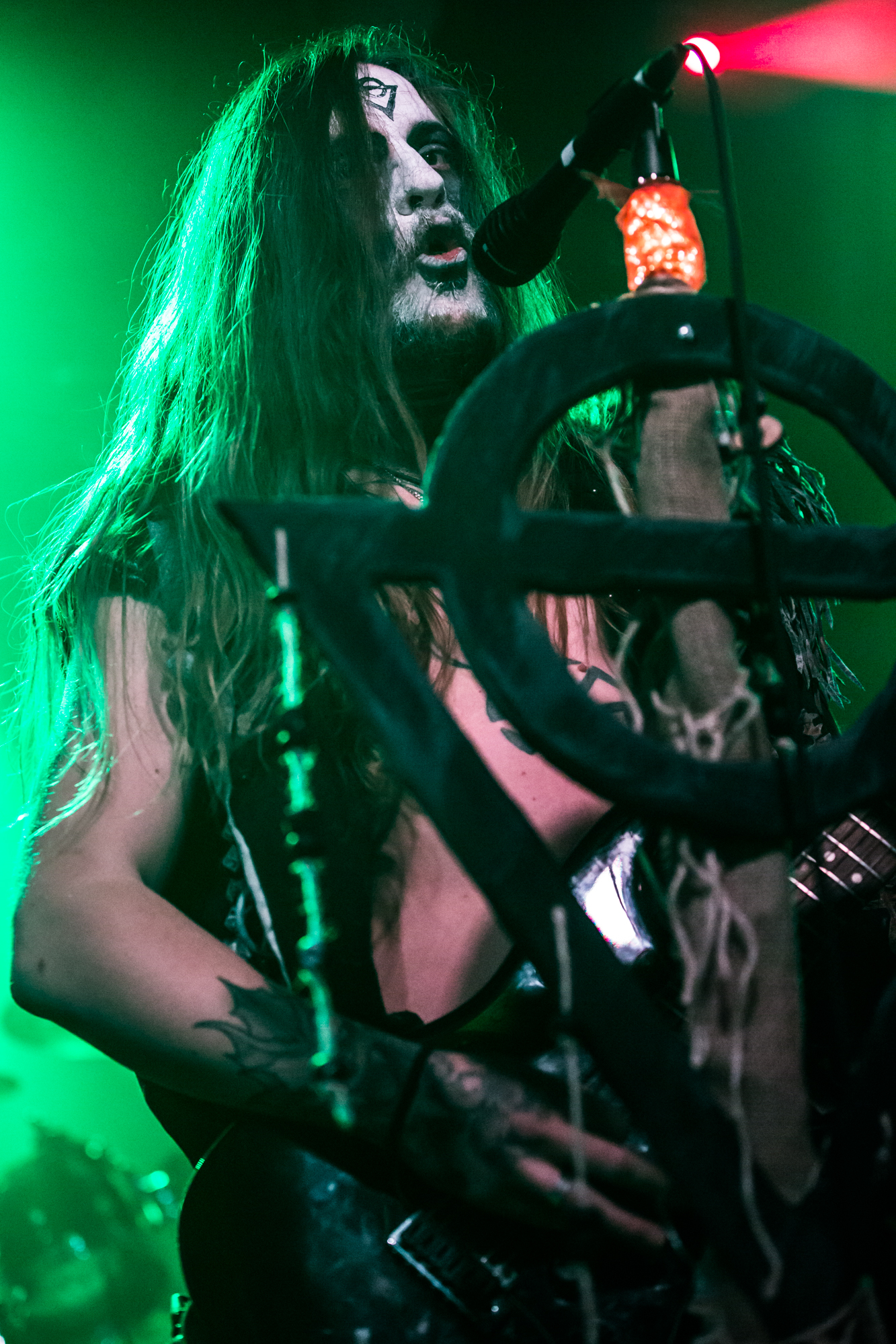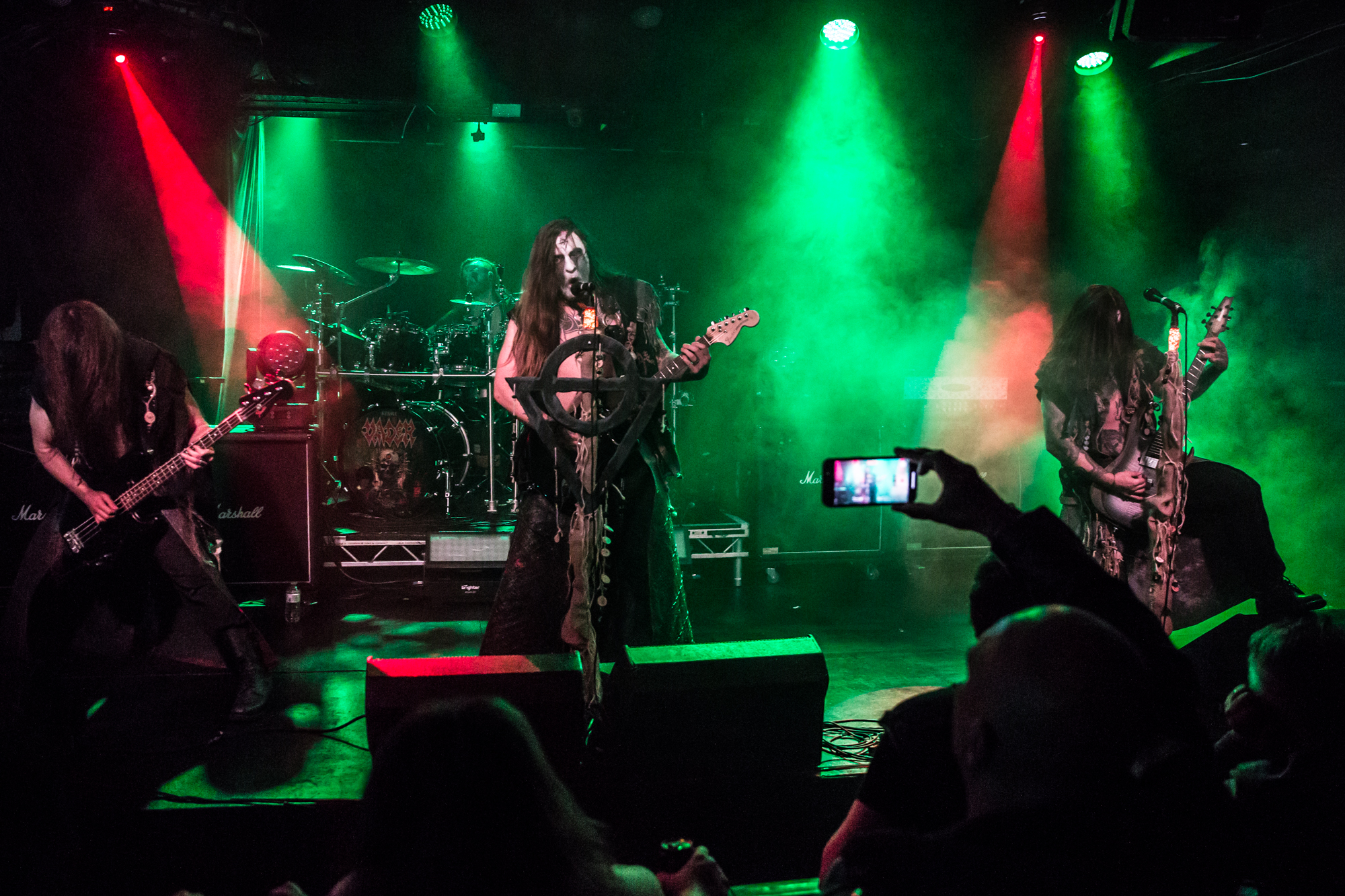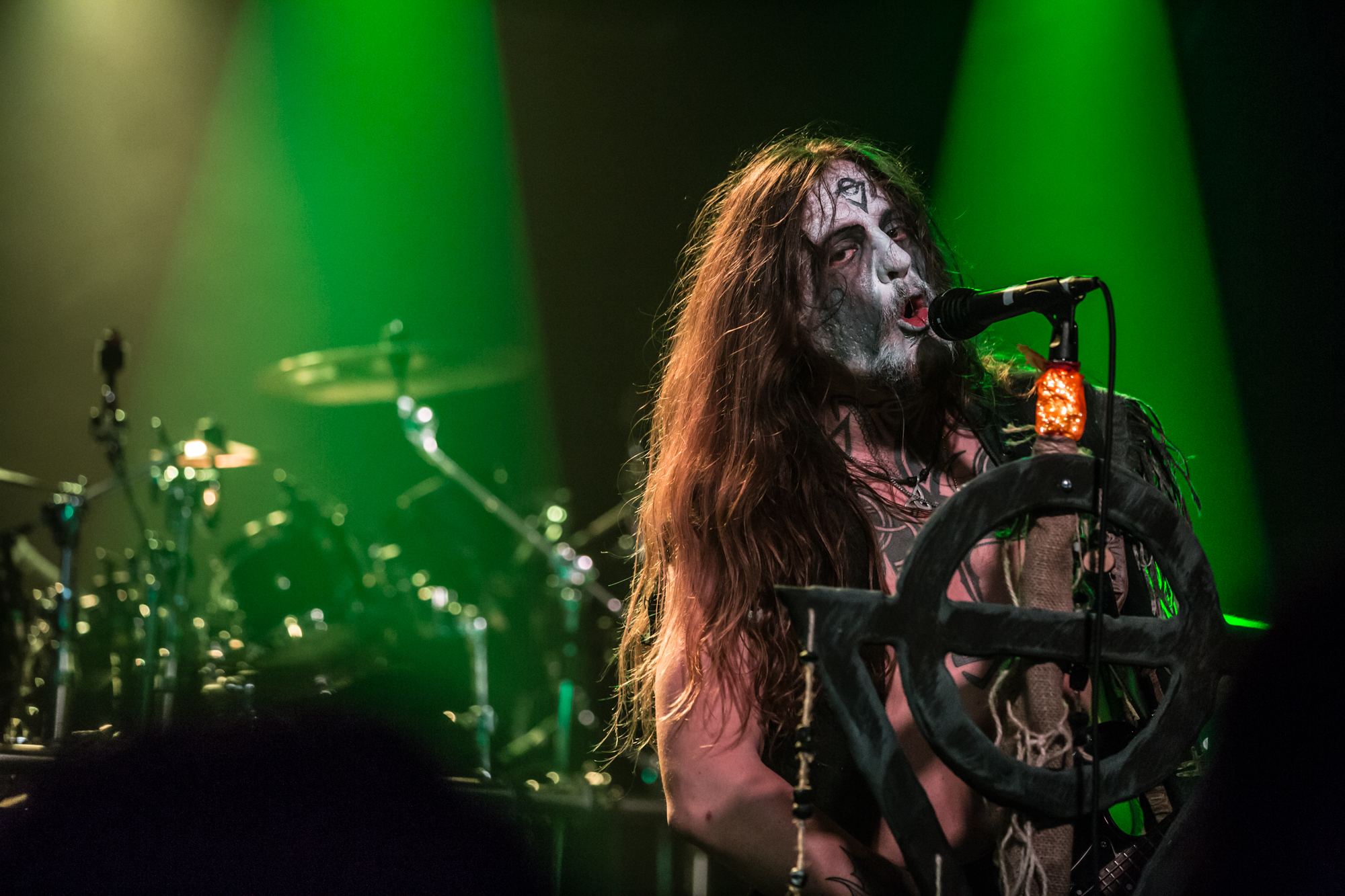 Support comes from French black/death metallers SKAPHOS. The quintet formed in 2018 and has three albums bearing their name, of which the latest, Cult of Uzura comes out next month. Bedecked in raggedy post-apocalypse garb and corpsepaint, their interpretation of the subgenre is built on a dense inventory of riffs that lurch from the spiteful to the dissonant. Blastbeats and tremolo picking are served in abundance, alongside haunting atmospheres and smart deployment of introspective melodies. It’s refreshing to hear such inspired and ambitious black/death metal for such a popular extreme metal headliner. SLAY‘s sound is fantastic, really clarifying their intriguing Lovecraftian hymns. This is a solid forty minute set of anguished, challenging black/death metal that hopefully supplies SKAPHOS with deserved recognition.