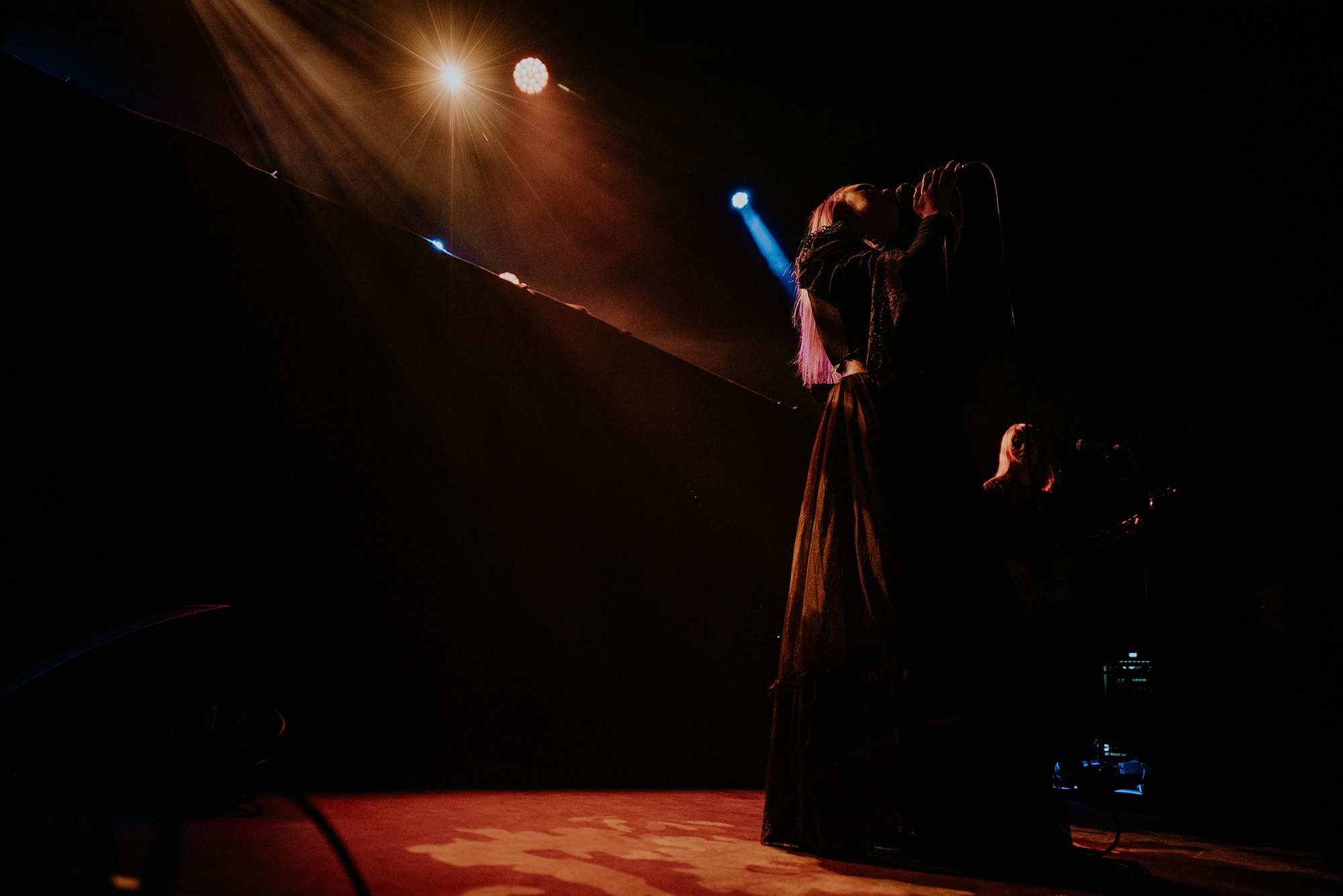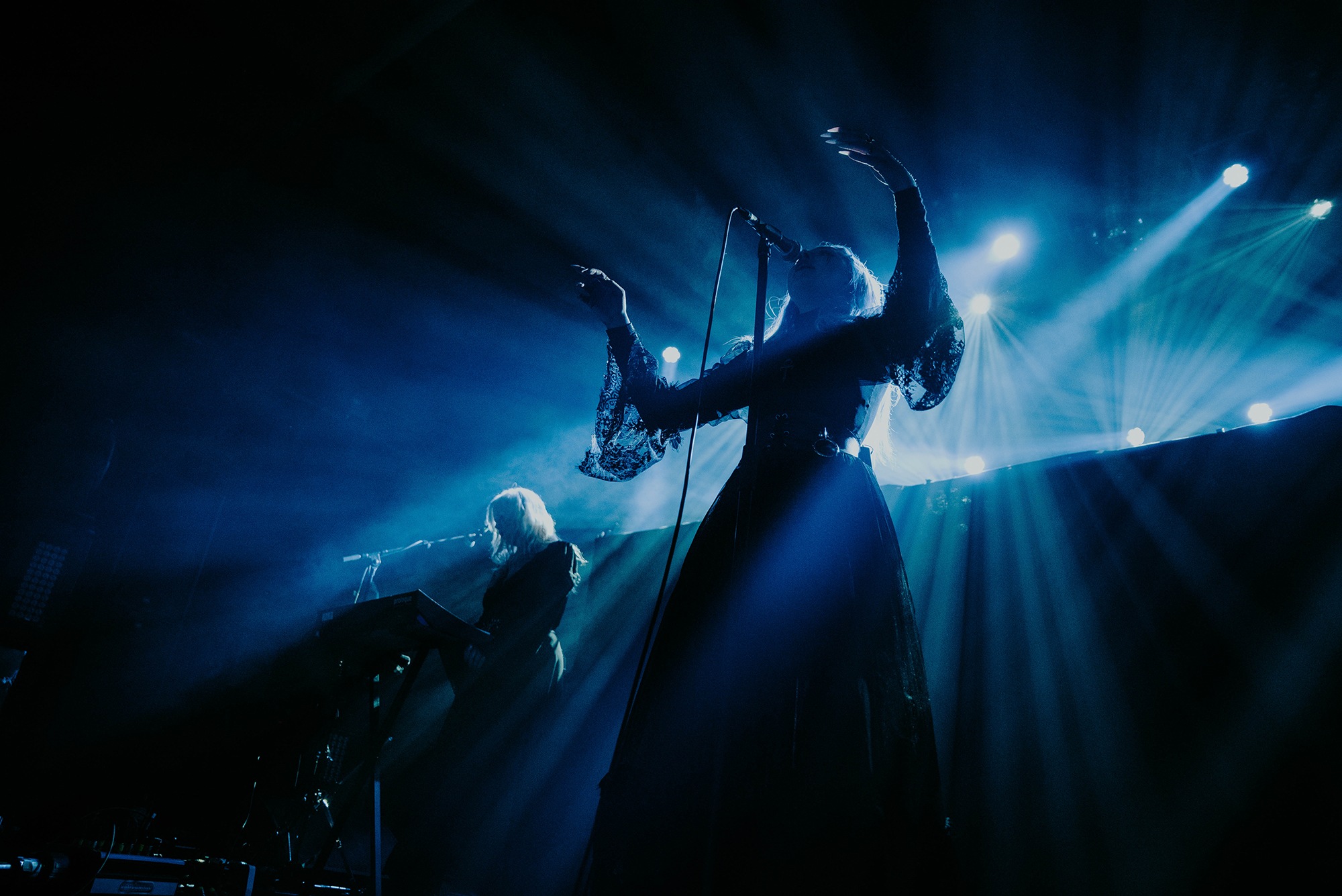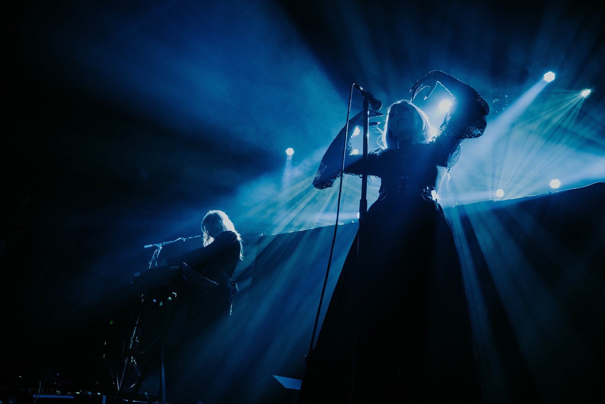 The combination of post-punk and gothic metal haunt the beads of the venue’s chandelier. Laufey Soffía’s ethereal vocals float across the auditorium. Opening with their eponymous track, the translation for Lady Of The Cold is positively ghostly. The majesty Sólveig Matthildur Kristjánsdóttir holds over the synthesisers adds further sense of grace. Moving into Stormurinn, Soffía’s subtle movements billow through her lace dress. We’re prepared for a slower movement to sit and experience in appreciative silence. Yet Soffía soon takes to the microphone and unleashes powerful screams. The only downfall to the set at this point is Margrét Rósa Dóru-Harrýsdóttir’s bass sits too far forward within the mix to the point it dominates every track.