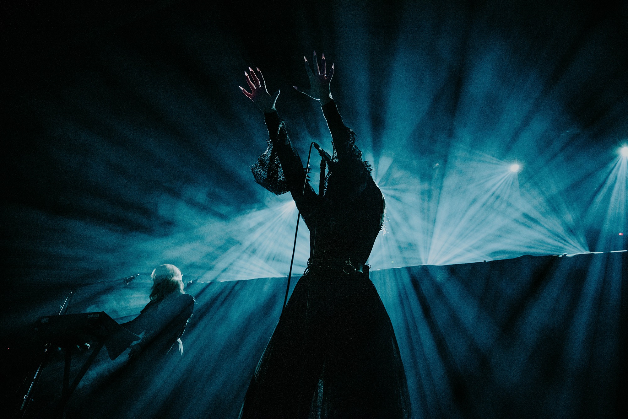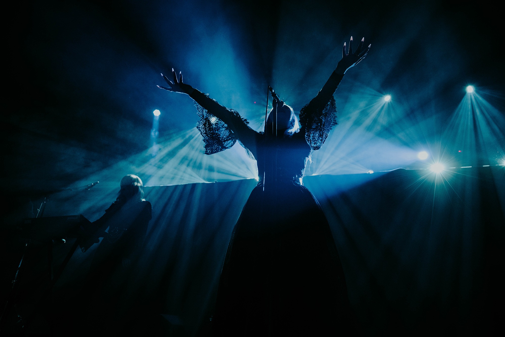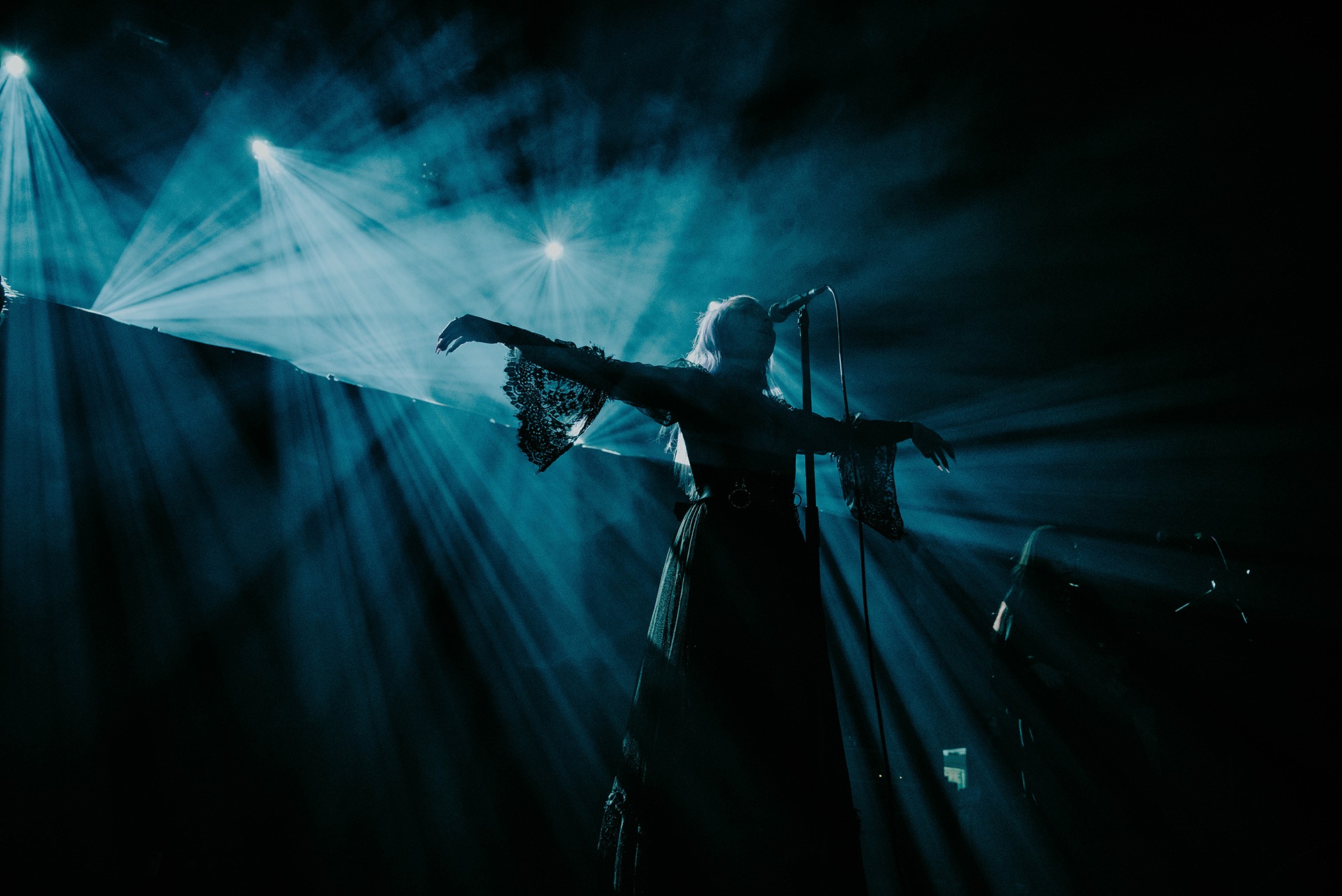 The combination of post-punk and gothic metal haunt the beads of the venue’s chandelier. Laufey Soffía’s ethereal vocals float across the auditorium. Opening with their eponymous track, the translation for Lady Of The Cold is positively ghostly. The majesty Sólveig Matthildur Kristjánsdóttir holds over the synthesisers adds further sense of grace. Moving into Stormurinn, Soffía’s subtle movements billow through her lace dress. We’re prepared for a slower movement to sit and experience in appreciative silence. Yet Soffía soon takes to the microphone and unleashes powerful screams. The only downfall to the set at this point is Margrét Rósa Dóru-Harrýsdóttir’s bass sits too far forward within the mix to the point it dominates every track.