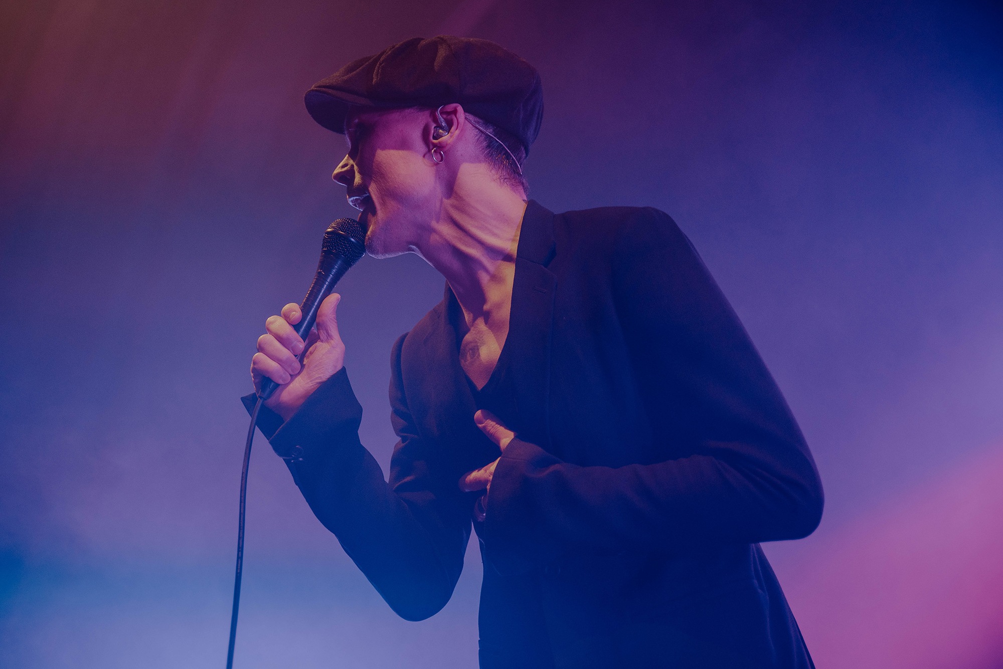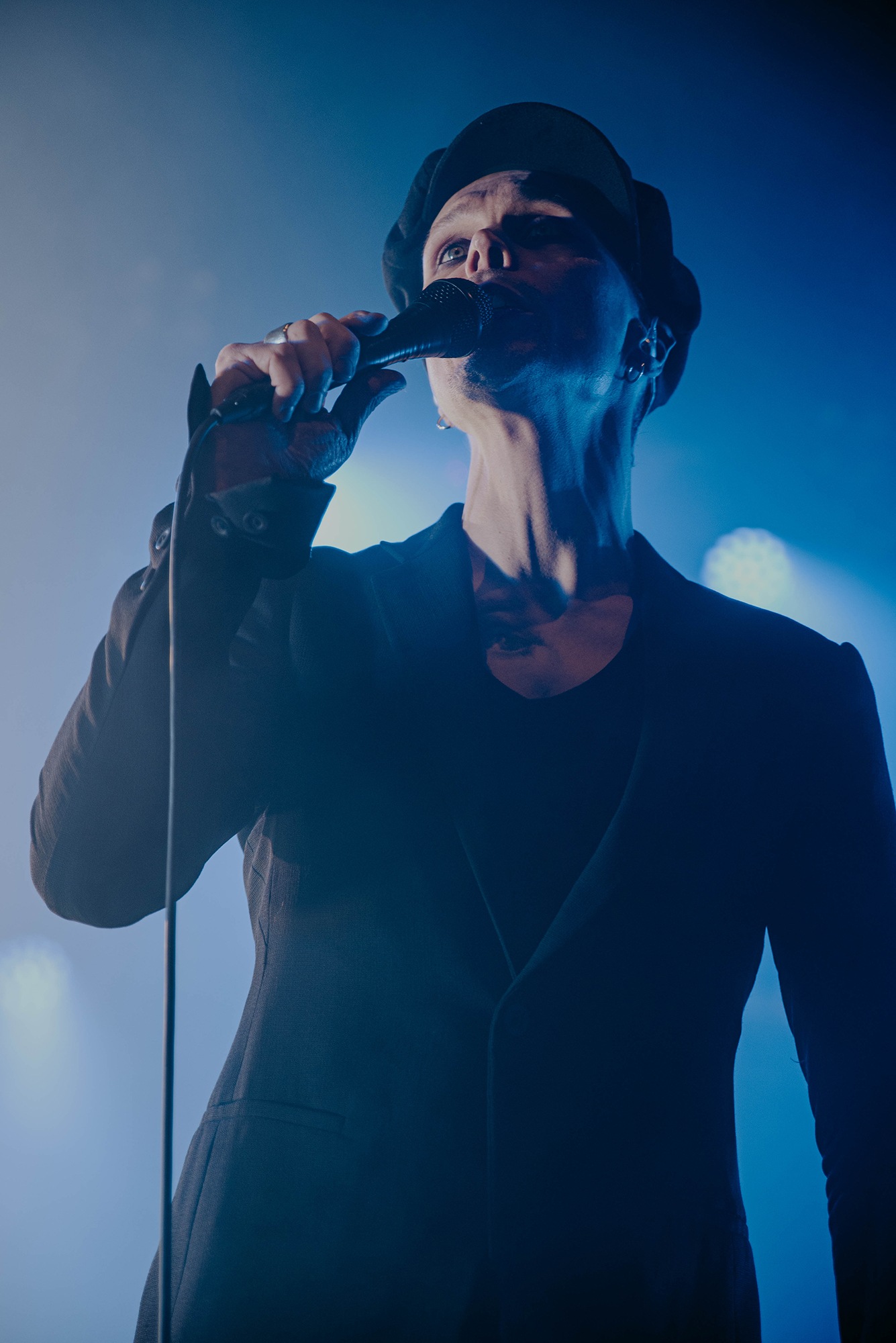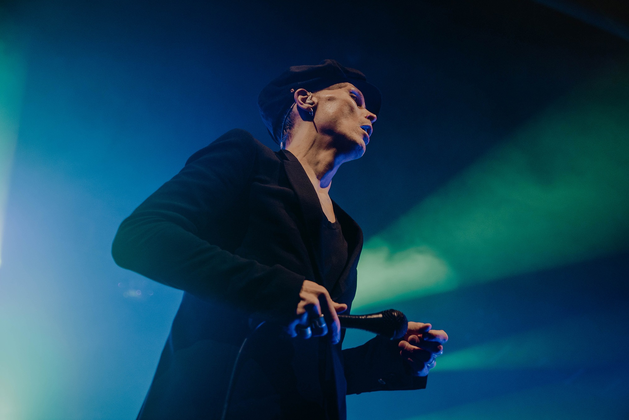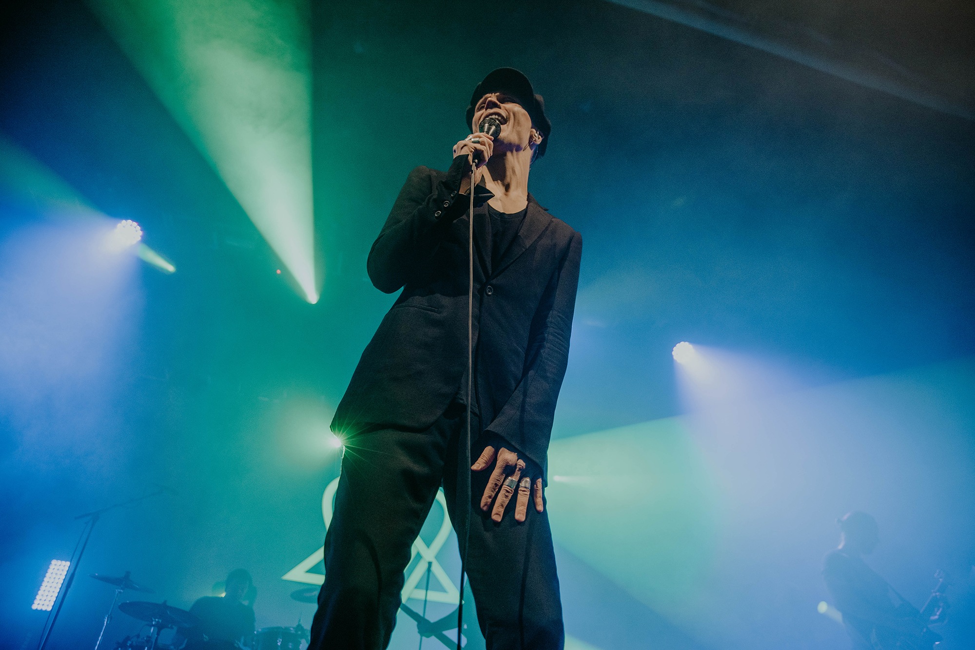 The man of the hour strides onto the stage in an all black ensemble and takes his place front and centre. VILLE VALO casts a nod to his backing band and the intro of single Echolocate Your Love dominates the room. Lifting the microphone to his lips, the crooner leans forward and addresses his adoring fans who “howl heartsick lupine lullabies”, his voice sounding as velveteen as it does on record. We miss the bass in the voice of “pinpoint the poison” at the end of the chorus. However as we’re taken into Neon Noir, the “flash-dance macabre to love’s soliloquy” is in full swing. Fans sing every word back to VILLE VALO and the show feels effortless. The stand up Heartagram at the back of the stage flushes tones of pinks and blues adding to the sensation we are simply bathing within our love eternal.