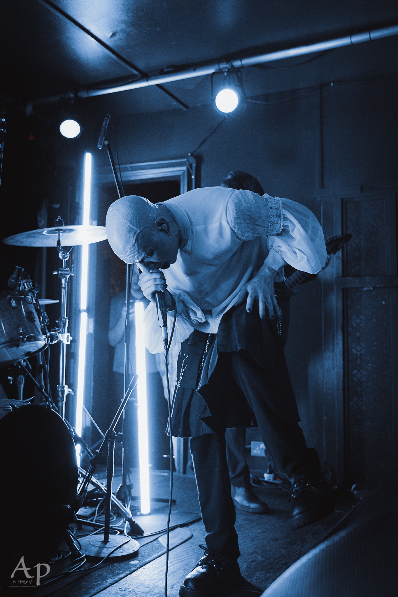 By comparison, MODERN ERROR layer their metalcore with synths and glitching electronics while leaning further into soaring choruses than ambience or gazing elements. There’s a strange discrepancy between the more EDM tinged moments and their emotive choruses but to their credit, it works. Sitting somewhere between the dance metalcore of NORTHLANE and BAD OMENS, who push a similar sound to near breaking point, MODERN ERROR still succeed in stamping their own identity clearly on the music. Cuts chiefly come from last year’s well-received (though ultimately overshadowed by the aforementioned BAD OMENS) Victims Of A Modern Age, and while the songs are consistently solid at worst the mix isn’t entirely in their favour. For some reason there’s occasionally no bass at all and it entirely robs parts of their impact they should’ve had. Glitchy interludes and songs alike are paired with tube lights to elevate the experience beyond the usual confines of an intimate venue and overall it’s an enjoyable, emotional set from a band that it seems are starting to discover and deliver on their promise despite flagging in its second half.Â