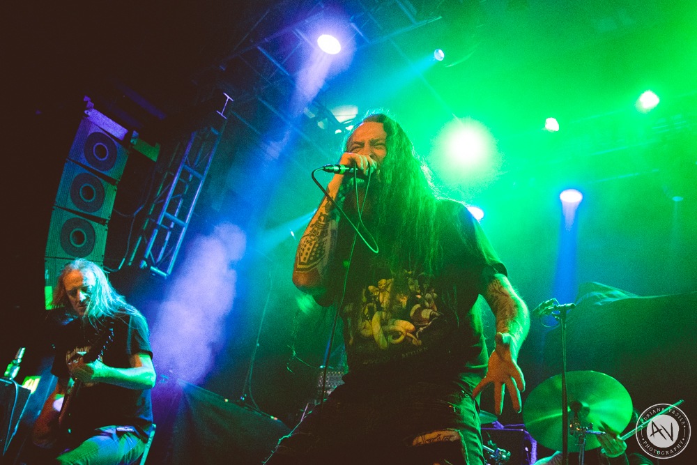 Piling into the venue like sardines in a tin, it’s either swim to the front on the shoulders of giants or shimmy like you’re 2D platforming your way through this level of madness. But save for a handful of fans, there’s few here who’ve forsaken the bars across the road at 6pm on a Saturday to see death metal stalwarts BENEDICTION – the blank faces do more than enough to show they’re here for one band, and one band only.