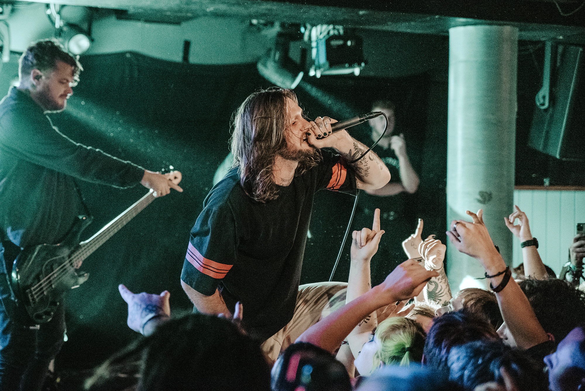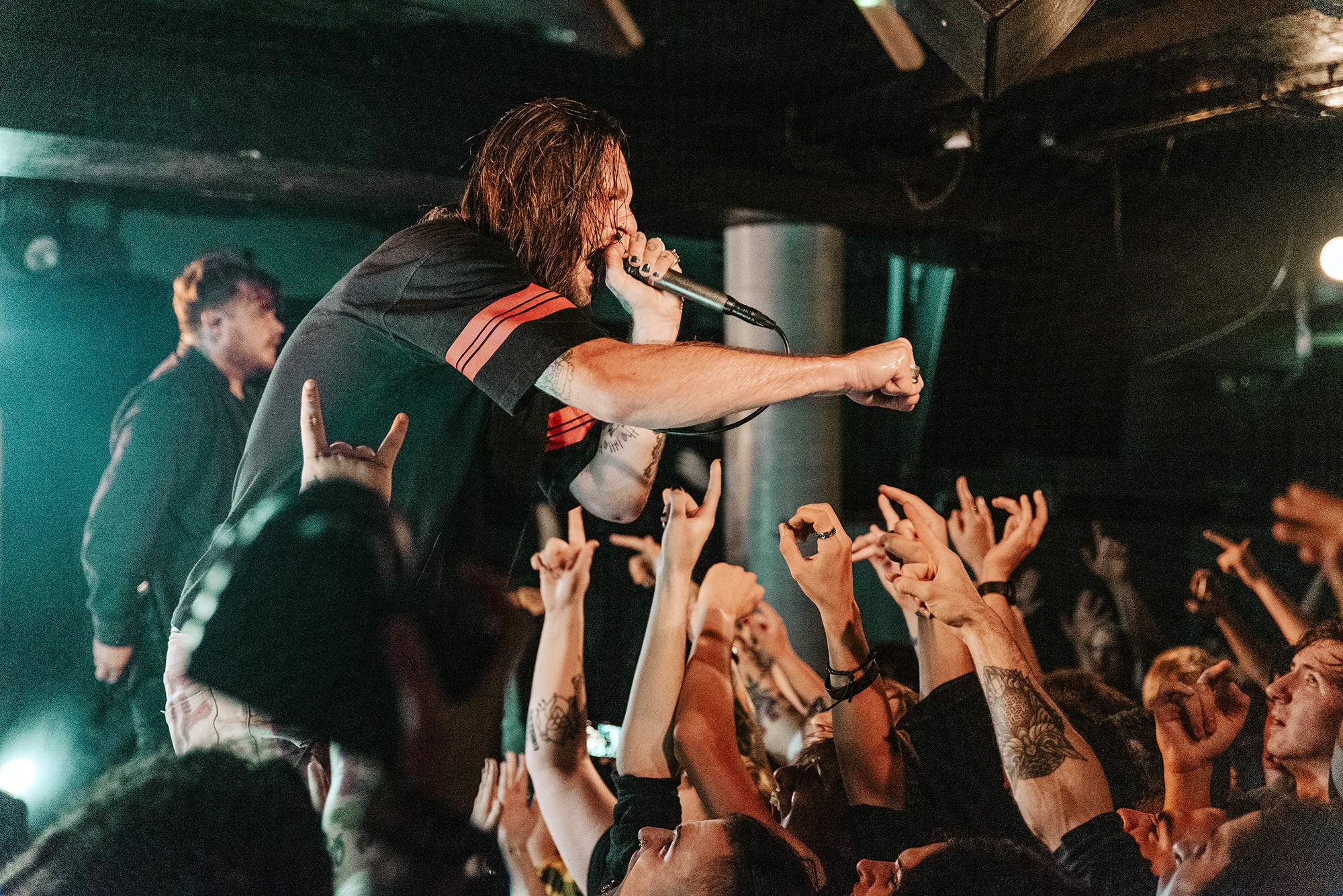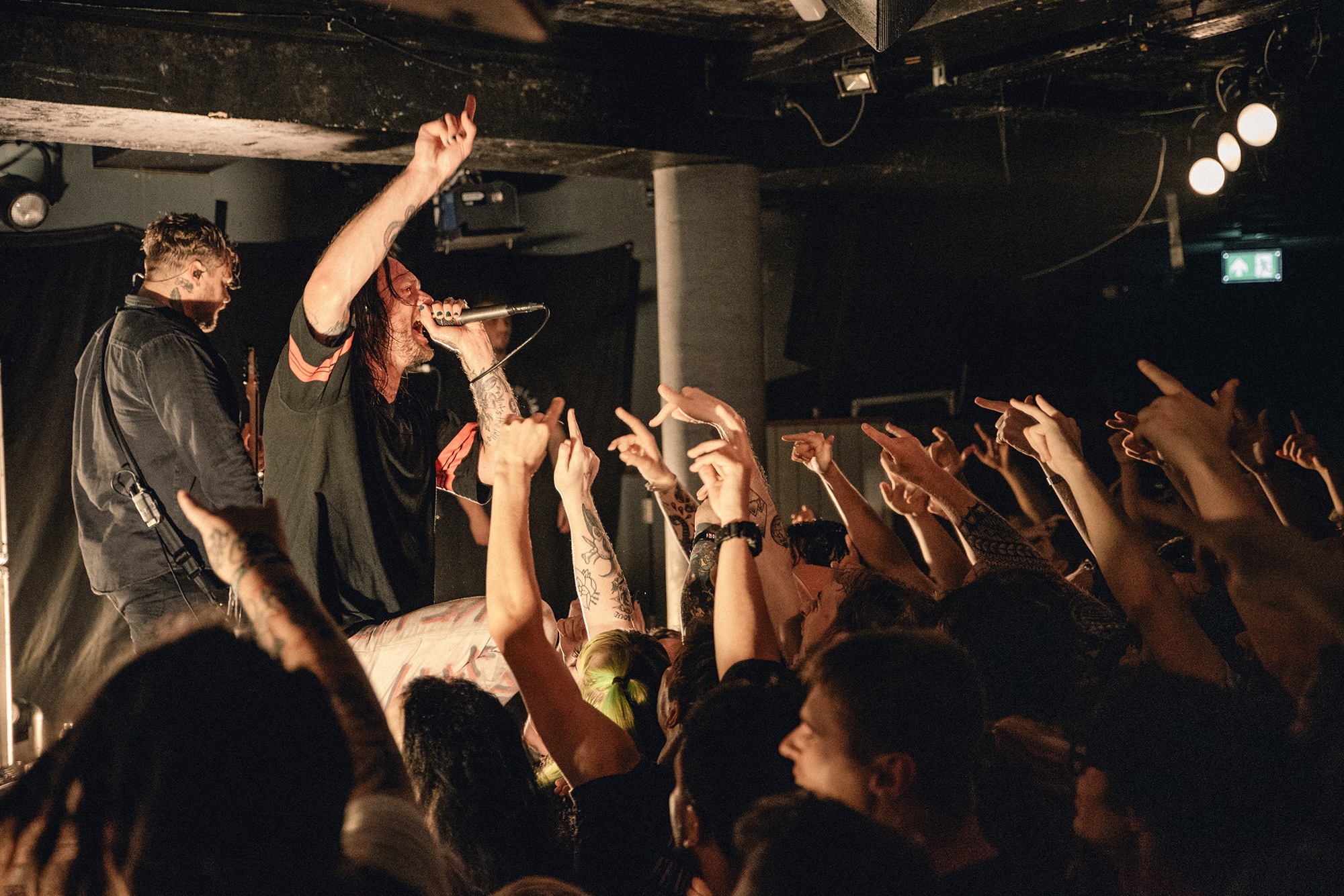 From the moment LOATHE take to the stage, it’s carnage – the crowd moves as one, surging forwards as pits open. Their blend of savagery and serenity leans heavily towards the former tonight and vocalist Kadeem France stalks what little stage there is. Aggressive Evolution is all jagged edges and furious screams before the chorus threatens to take the roof off and bulldoze its way into the pub above. The DEFTONES-esque Two Way Mirror should be transcendent and for the most part it’s great but there’s occasional moments where vocals are lost in the swirling guitars. An occasionally murky mix prevents their jagged edges from being as sharp as they could, though that doesn’t bother anyone. They’re a band on top form tonight and it’s a storming showcase that they’ve got the creativity, determination and a larger than life stage presence to take them far.
