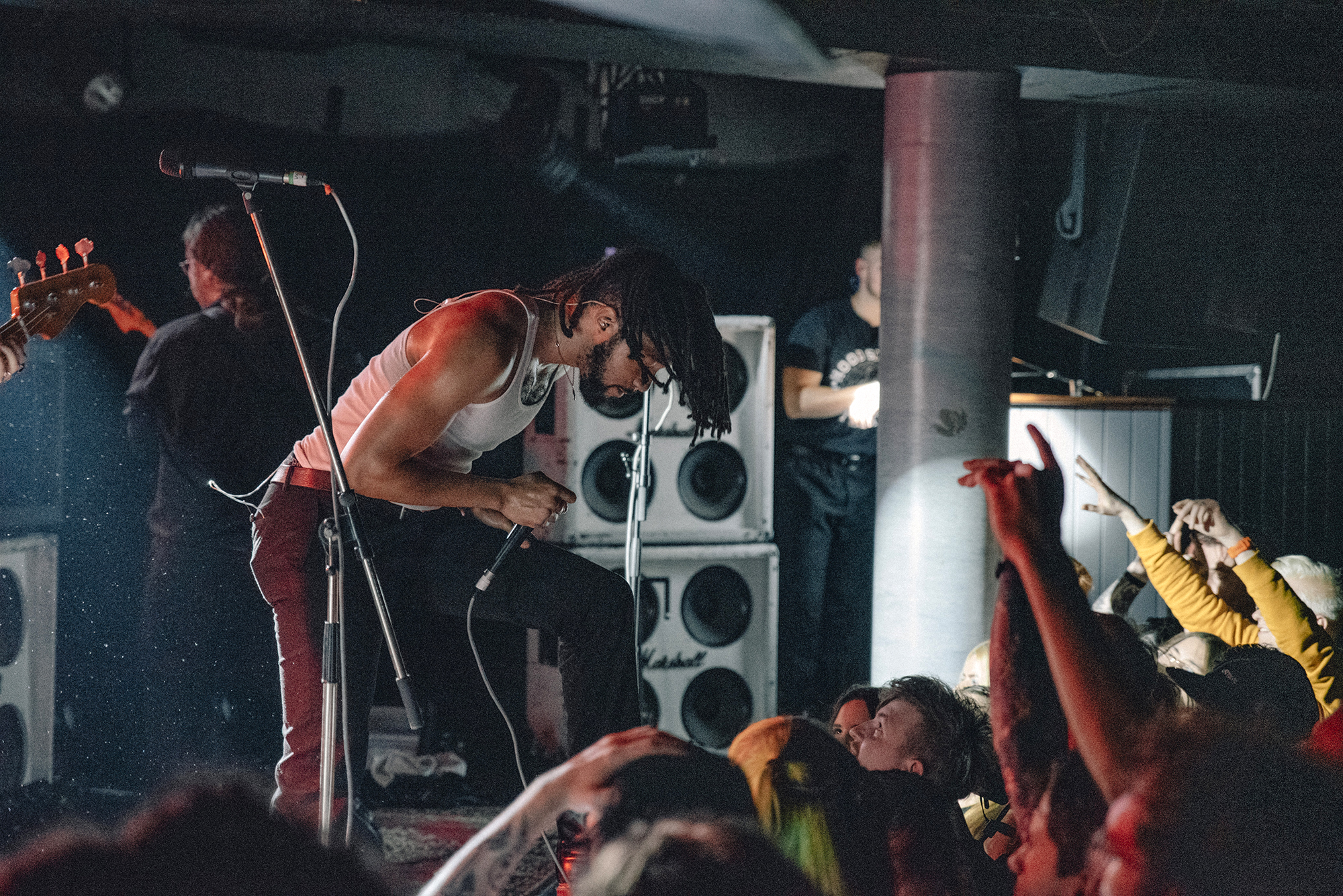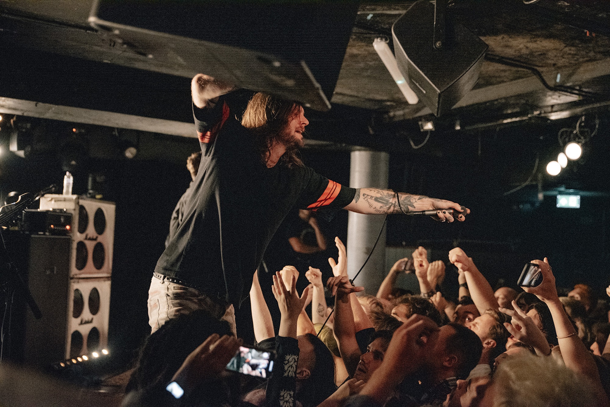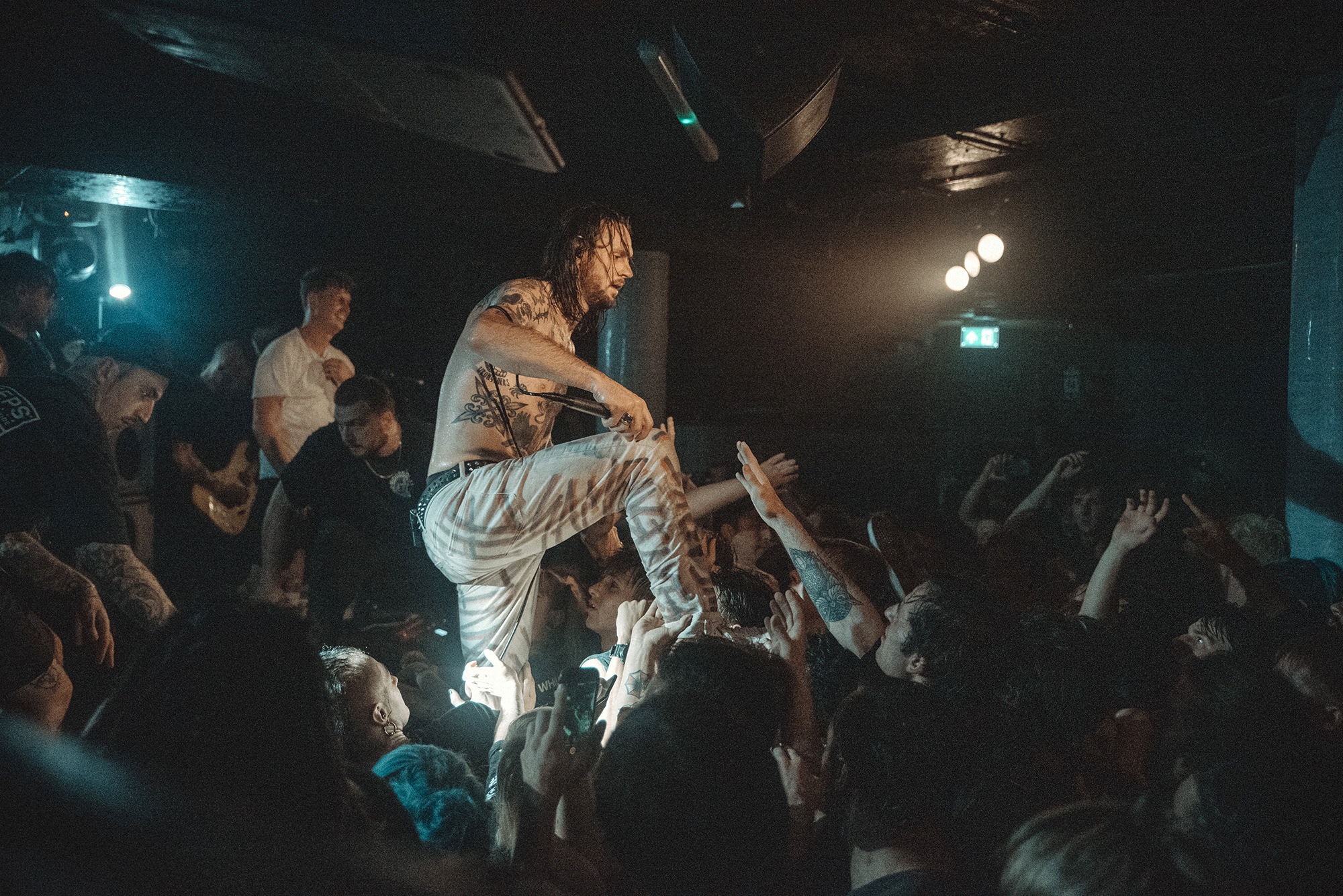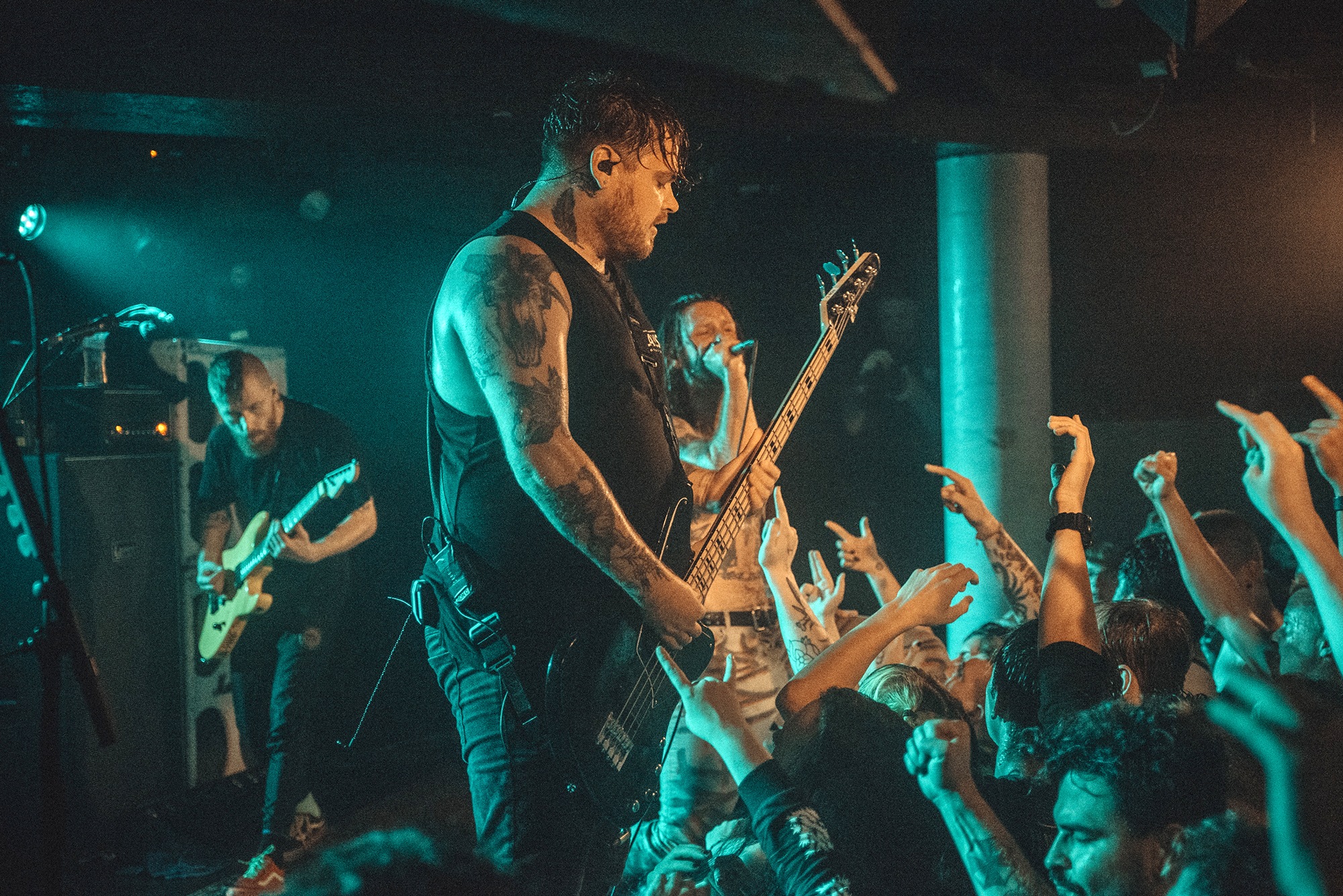From the moment LOATHE take to the stage, it’s carnage – the crowd moves as one, surging forwards as pits open. Their blend of savagery and serenity leans heavily towards the former tonight and vocalist Kadeem France stalks what little stage there is. Aggressive Evolution is all jagged edges and furious screams before the chorus threatens to take the roof off and bulldoze its way into the pub above. The DEFTONES-esque Two Way Mirror should be transcendent and for the most part it’s great but there’s occasional moments where vocals are lost in the swirling guitars. An occasionally murky mix prevents their jagged edges from being as sharp as they could, though that doesn’t bother anyone. They’re a band on top form tonight and it’s a storming showcase that they’ve got the creativity, determination and a larger than life stage presence to take them far.