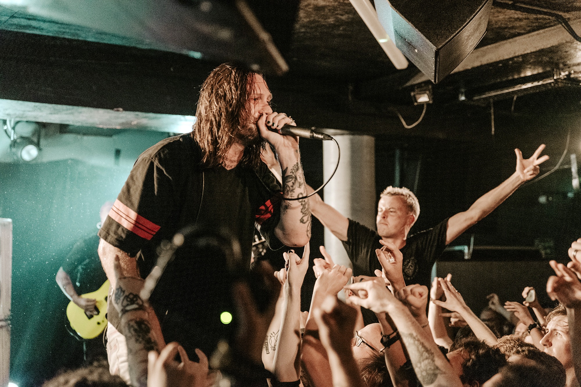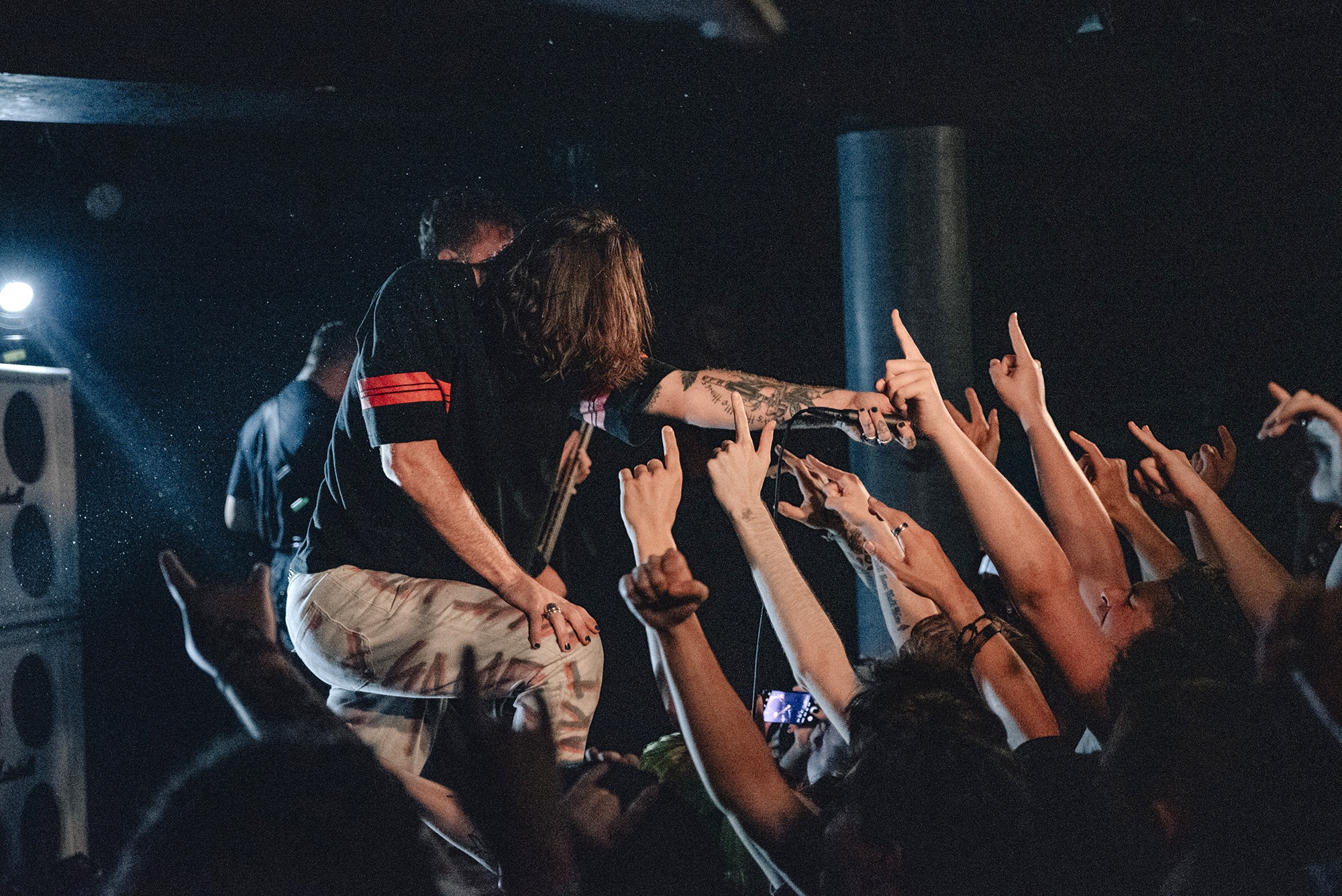 Of course tonight’s headliners WHILE SHE SLEEPS get nothing sort of a hero’s welcome from the sold-out crowd. The pit kicks off before the guitars enter for opener Sleeps Society and the energy is nonstop from there. Loz invites the crowd to join him on stage, declaring it’s as much theirs as the band’s and naturally, that’s taken literally. Within seconds of Anti-Social there’s crowdsurfers and stage divers while Brainwashed caps off an incendiary opening trifecta, Loz making his way overhead as the song concludes to chants of “Yorkshire! Yorkshire!”. There’s frequent technical difficulties but it doesn’t faze them and they persevere, cracking jokes and pushing through regardless.