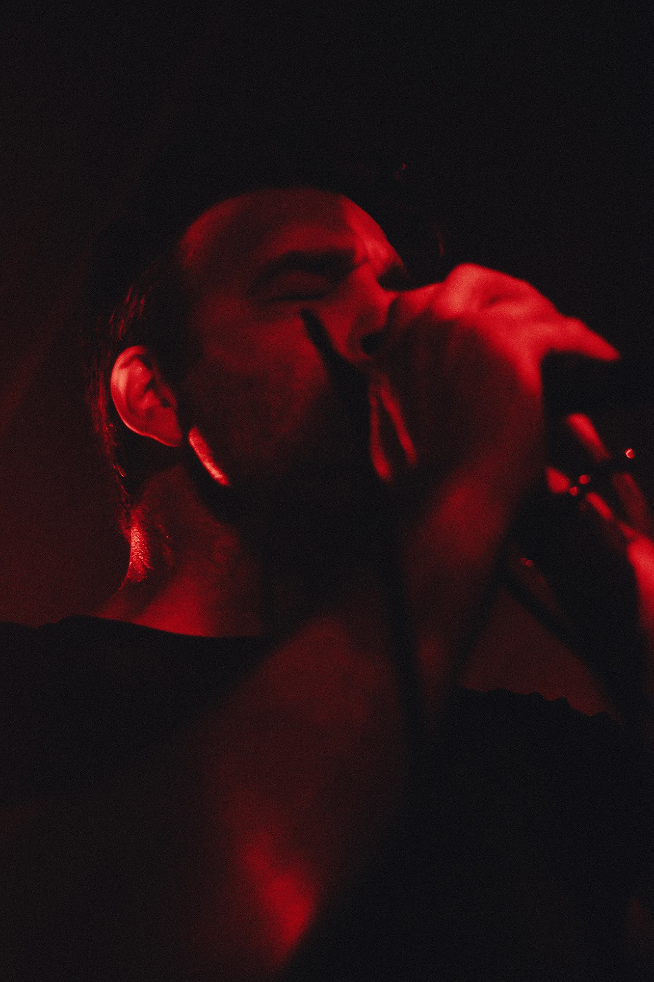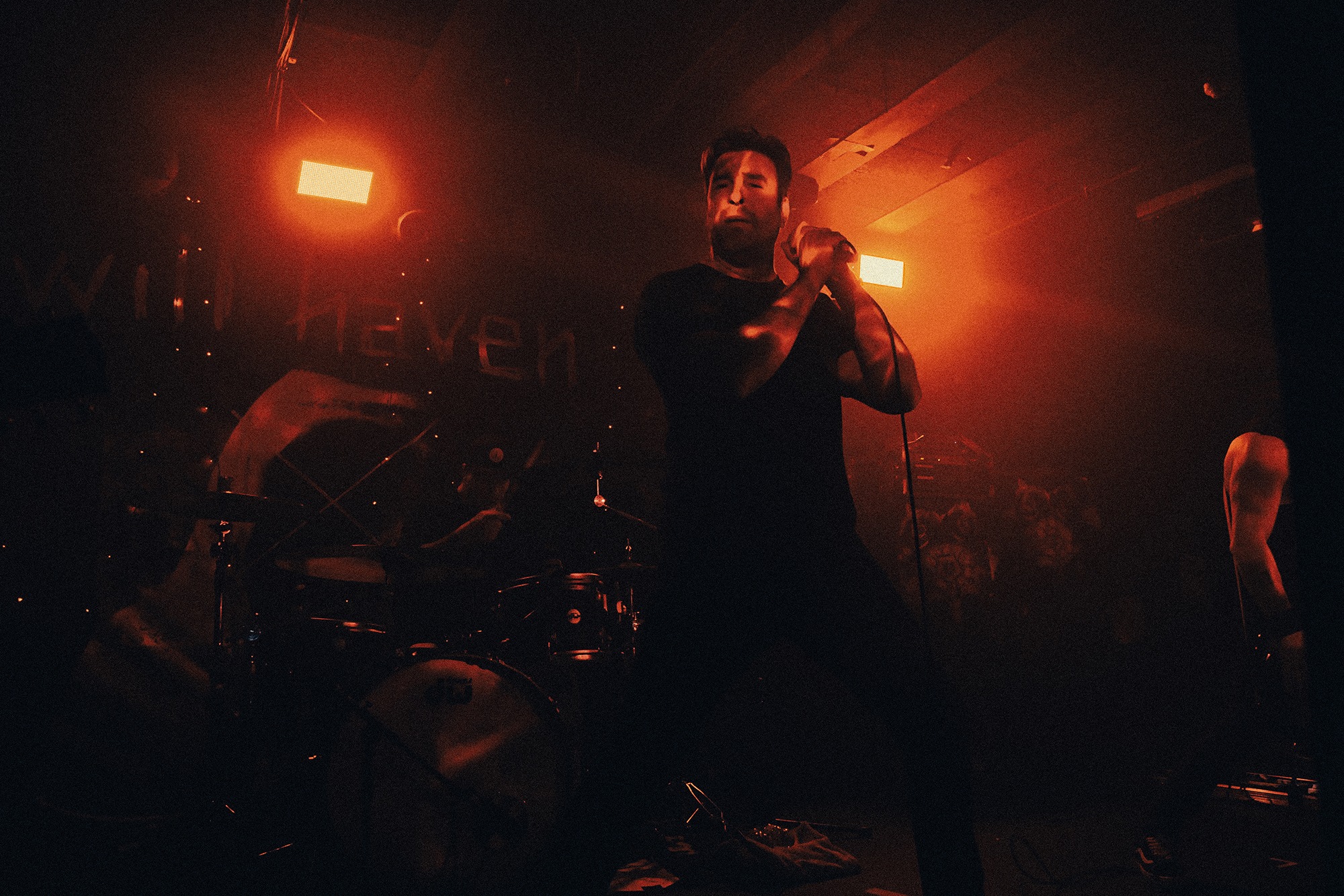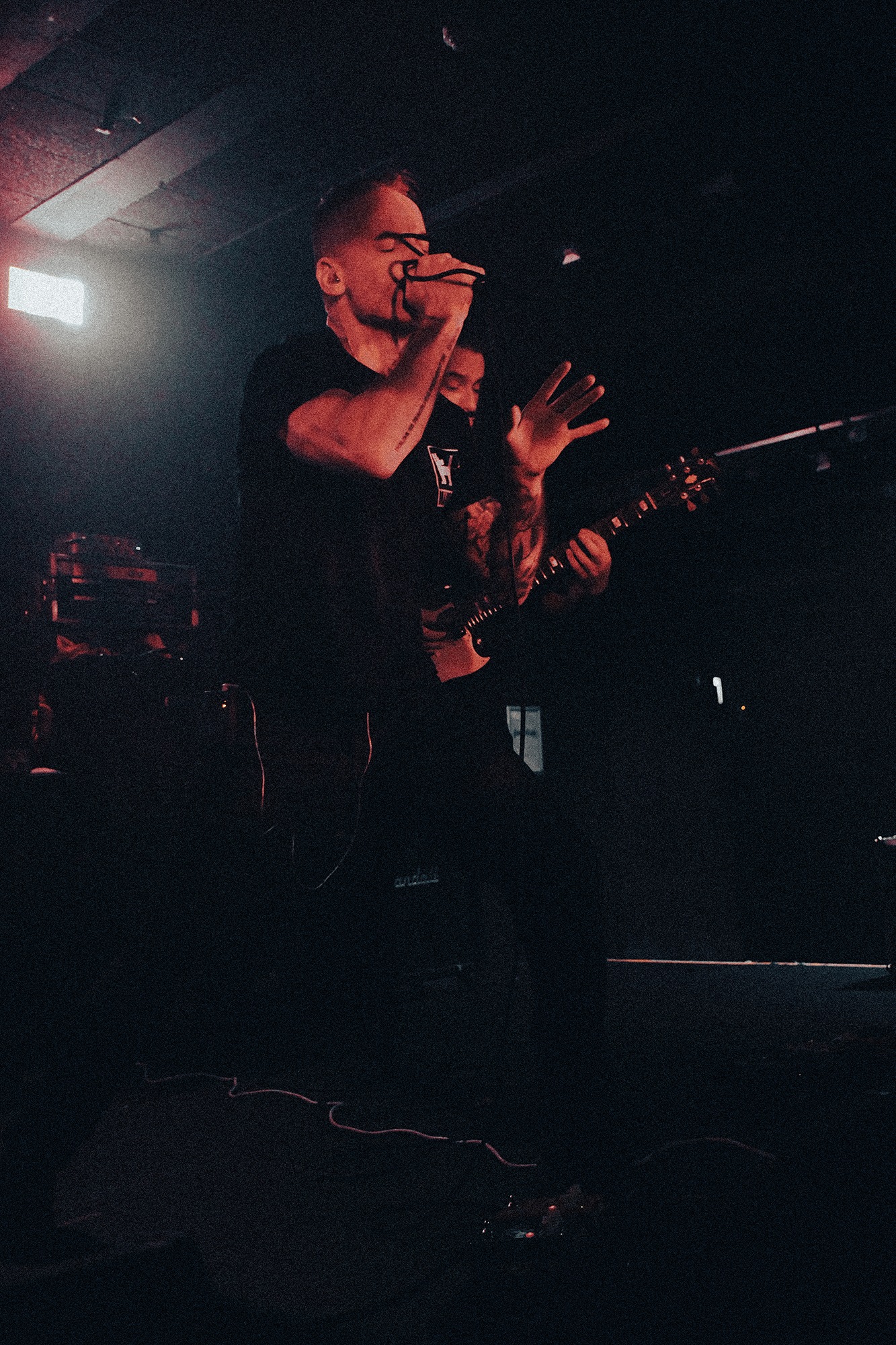 Emerging to an ominous red lit stage at last are WILL HAVEN, going headfirst into Luna and For All Future Time, vocalist Grady Avenell scrunches up his face as though in pain at every word he utters. Frequent switches between fast thrashing grooves and slow sparce blows throw you about along with the music nodding and headbanging throughout, all of which accompanied by Avenell’s yearning, emotional screams. A selection of fans battle to be closer to the stage, vying for his attention as they repeat his words back to him, successfully so as he reaches his mic into the crowd occasionally allowing them to take over. Avenell looks ever appreciative after tracks finish, clapping with his microphone to everyone in the room.
