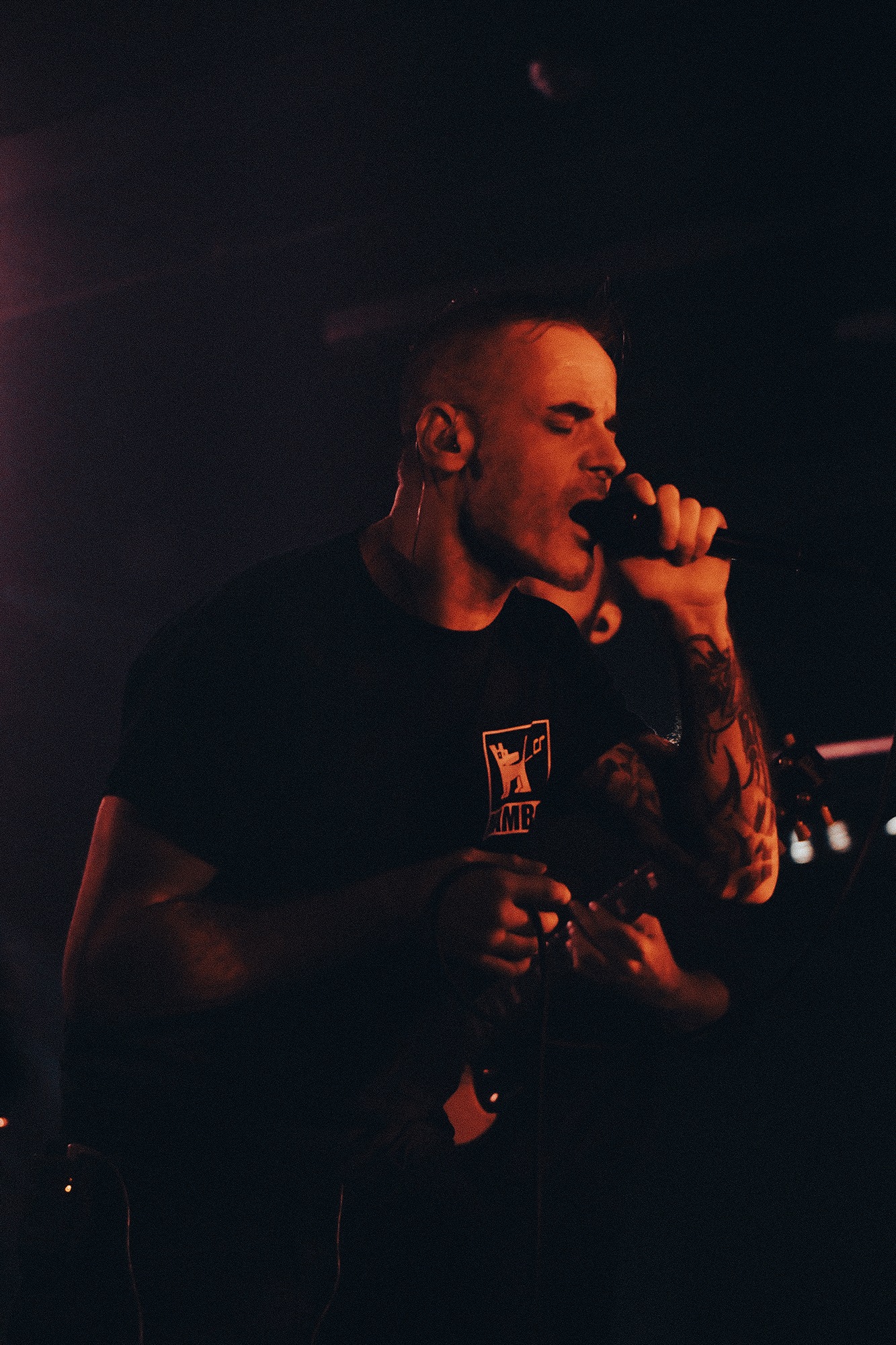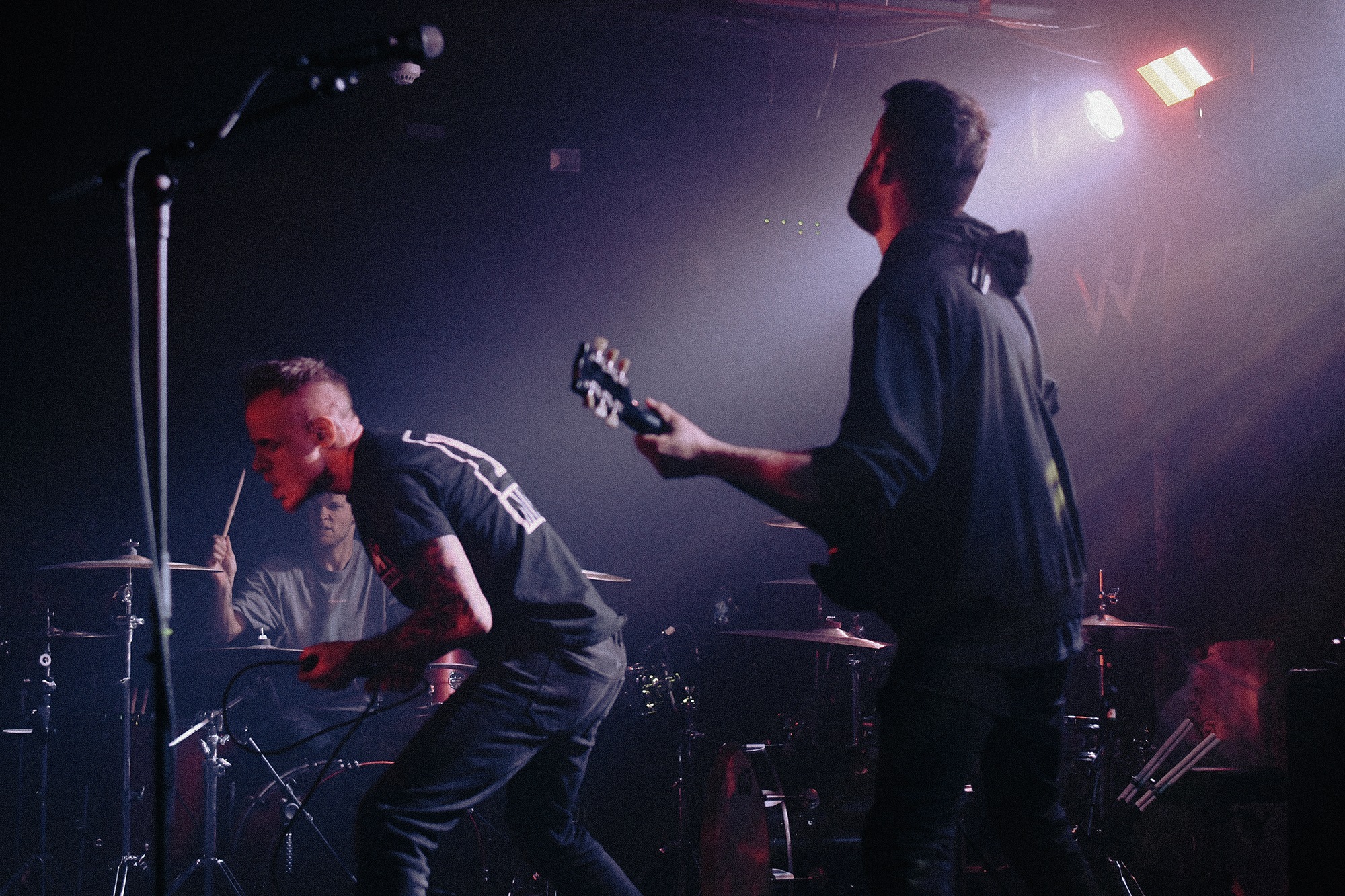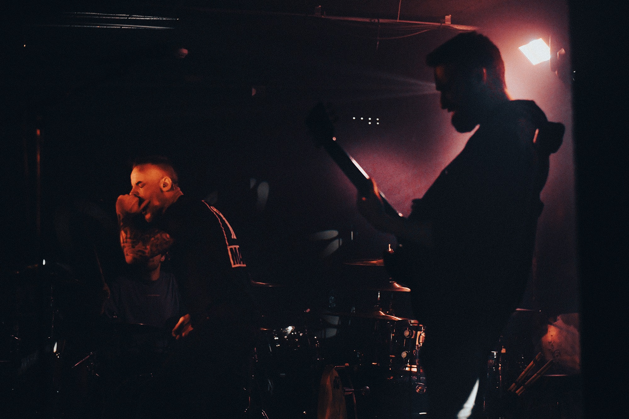 Emerging to an ominous red lit stage at last are WILL HAVEN, going headfirst into Luna and For All Future Time, vocalist Grady Avenell scrunches up his face as though in pain at every word he utters. Frequent switches between fast thrashing grooves and slow sparce blows throw you about along with the music nodding and headbanging throughout, all of which accompanied by Avenell’s yearning, emotional screams. A selection of fans battle to be closer to the stage, vying for his attention as they repeat his words back to him, successfully so as he reaches his mic into the crowd occasionally allowing them to take over. Avenell looks ever appreciative after tracks finish, clapping with his microphone to everyone in the room.
