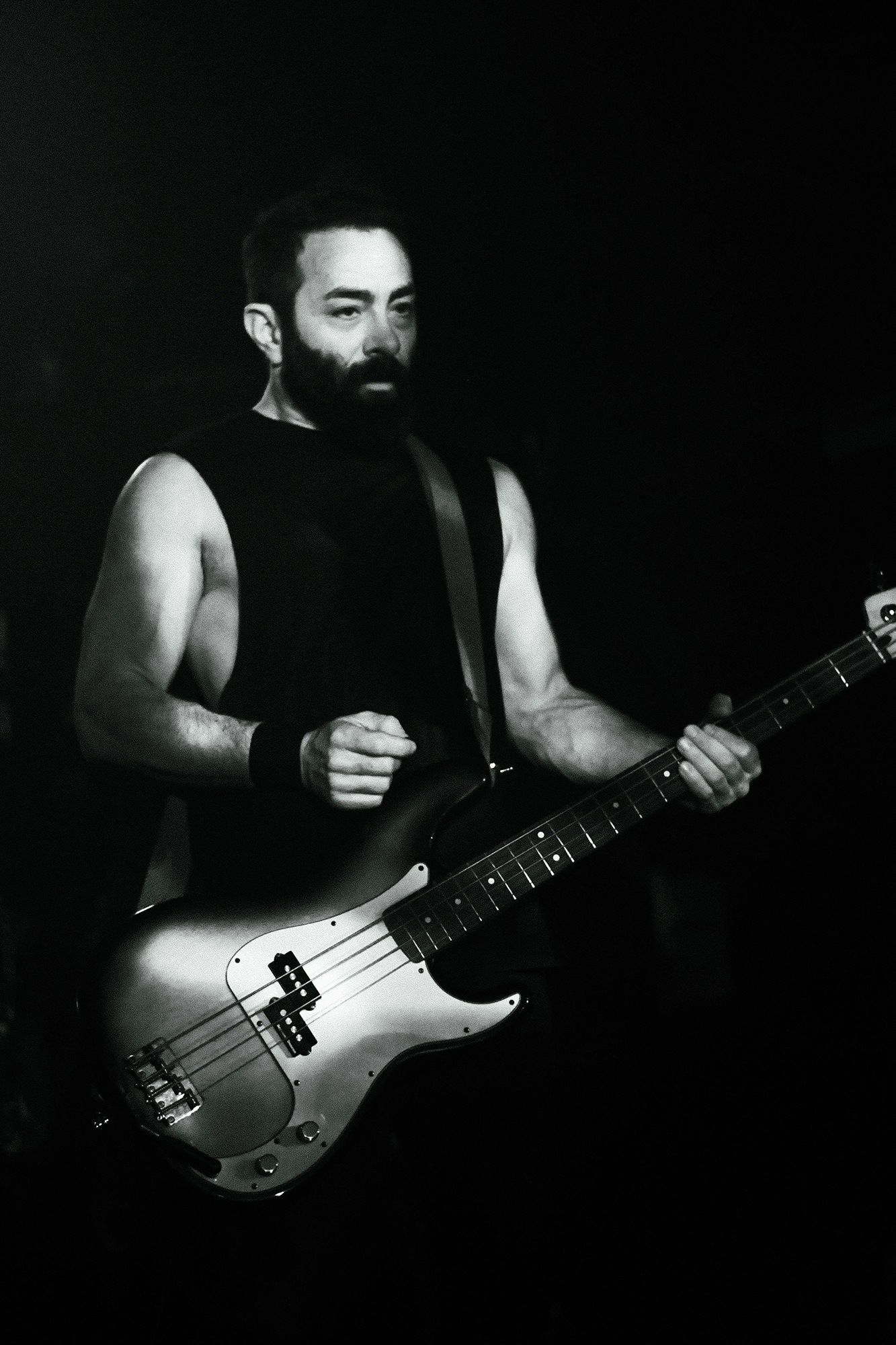 A false start for technical issues during the intro of I’ve Seen My Fate gives the room notice of what’s next, as they clamour with the realisation. “Now you’re ready for us to do it for real” jokes bassist Adrien Contreras before the fan favourite, with a sea of heads banging during the monumental chugging groove. They continue with the trend of interspersing all the tracks off the new album with older ones, and there is little disparity in the reception to both, with the centre of the room always fluid with bouncing bodies and words bellowed out into the room. Guitarist Jeff Irwin battling early contempt for technical issues throws his full body around while headbanging during the slow half time grooves in Stick Up Kid, while drummer Mitch Wheeler’s sparse grooves and periodical moments of flashy bravado give space for the barraging riffs to hit you deep in your core.
